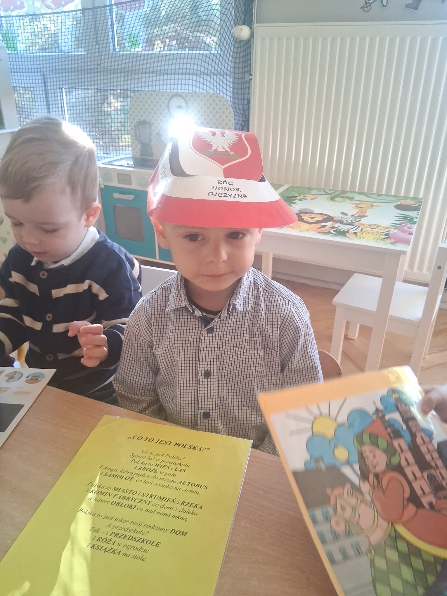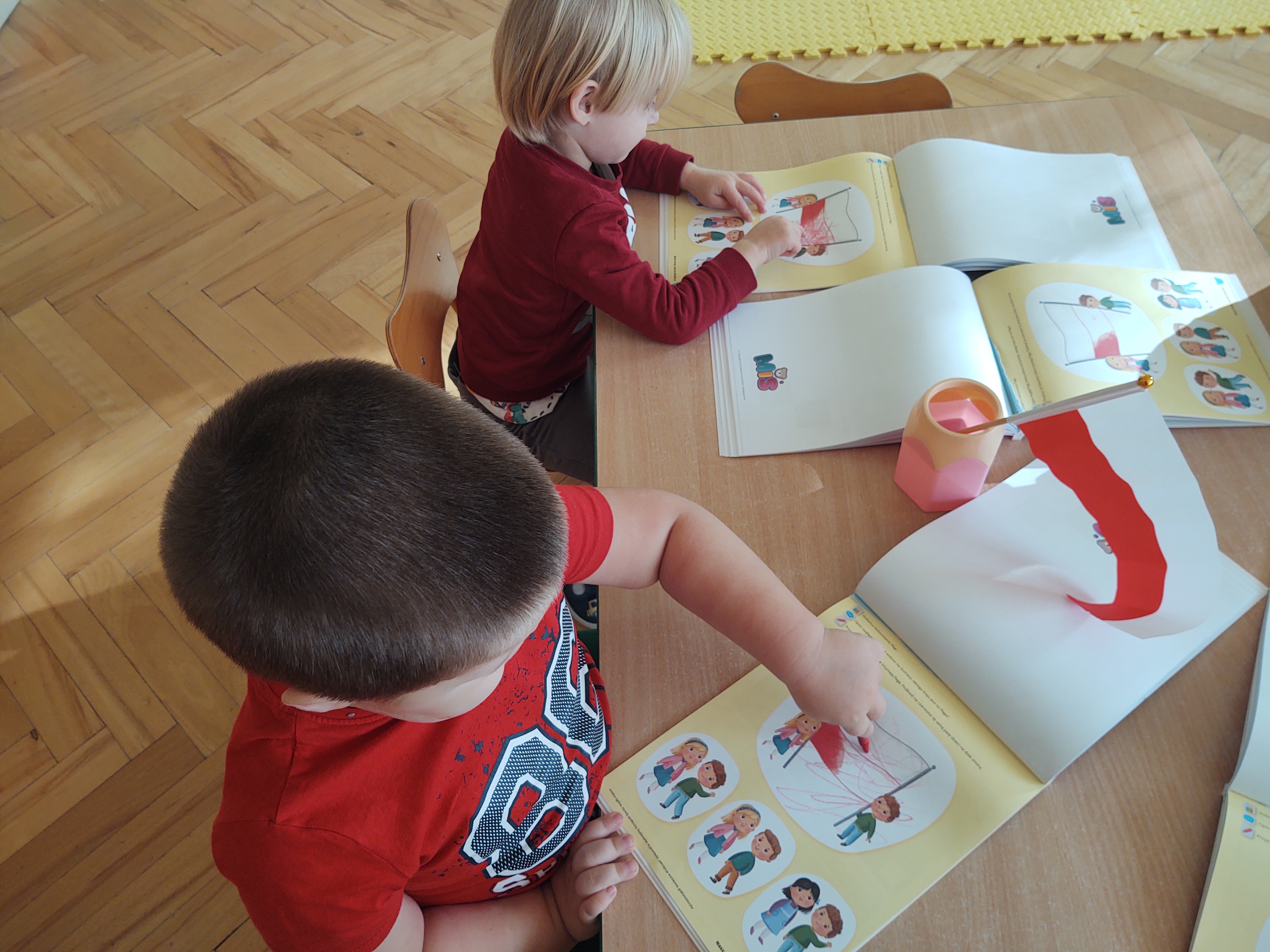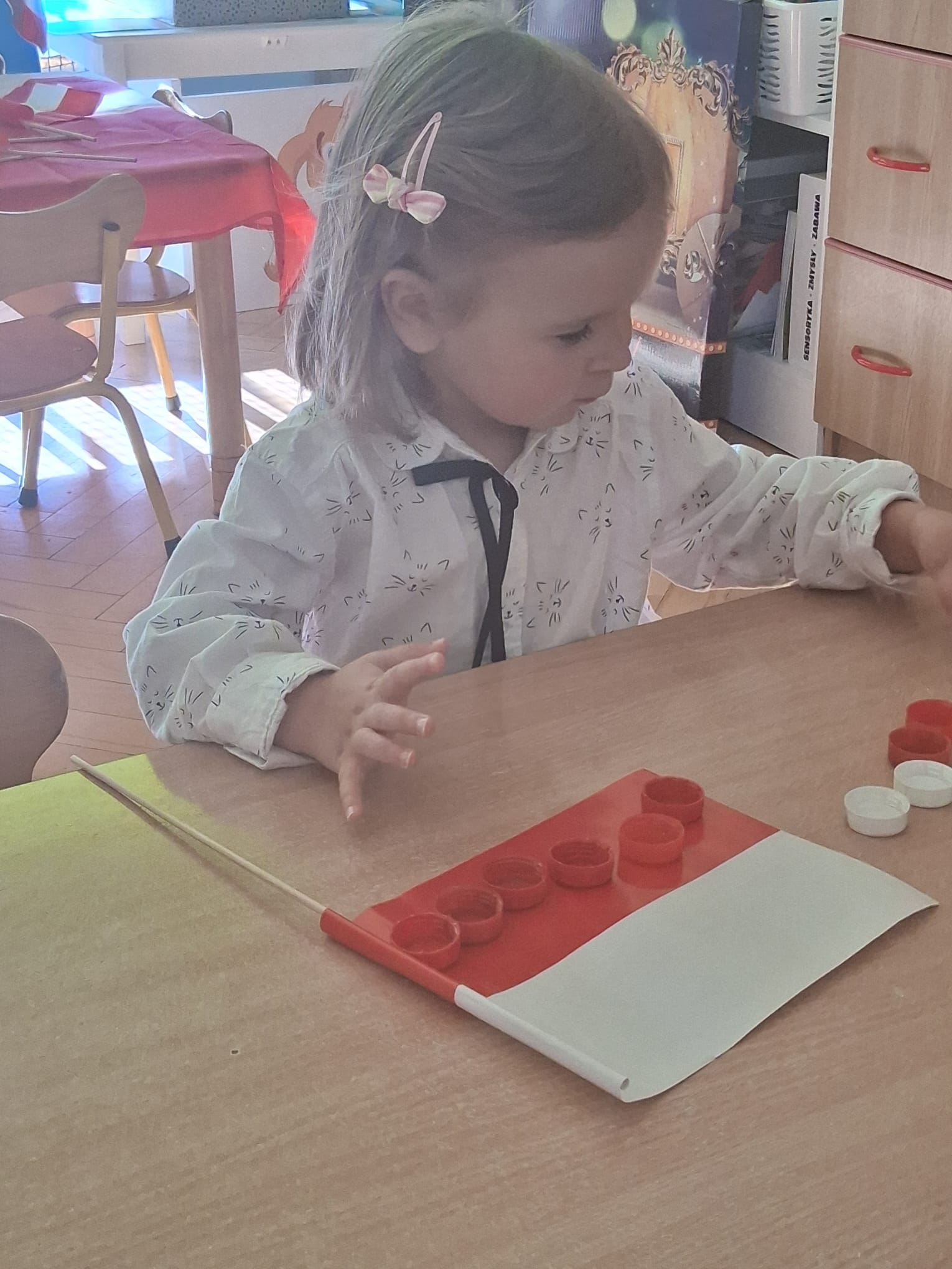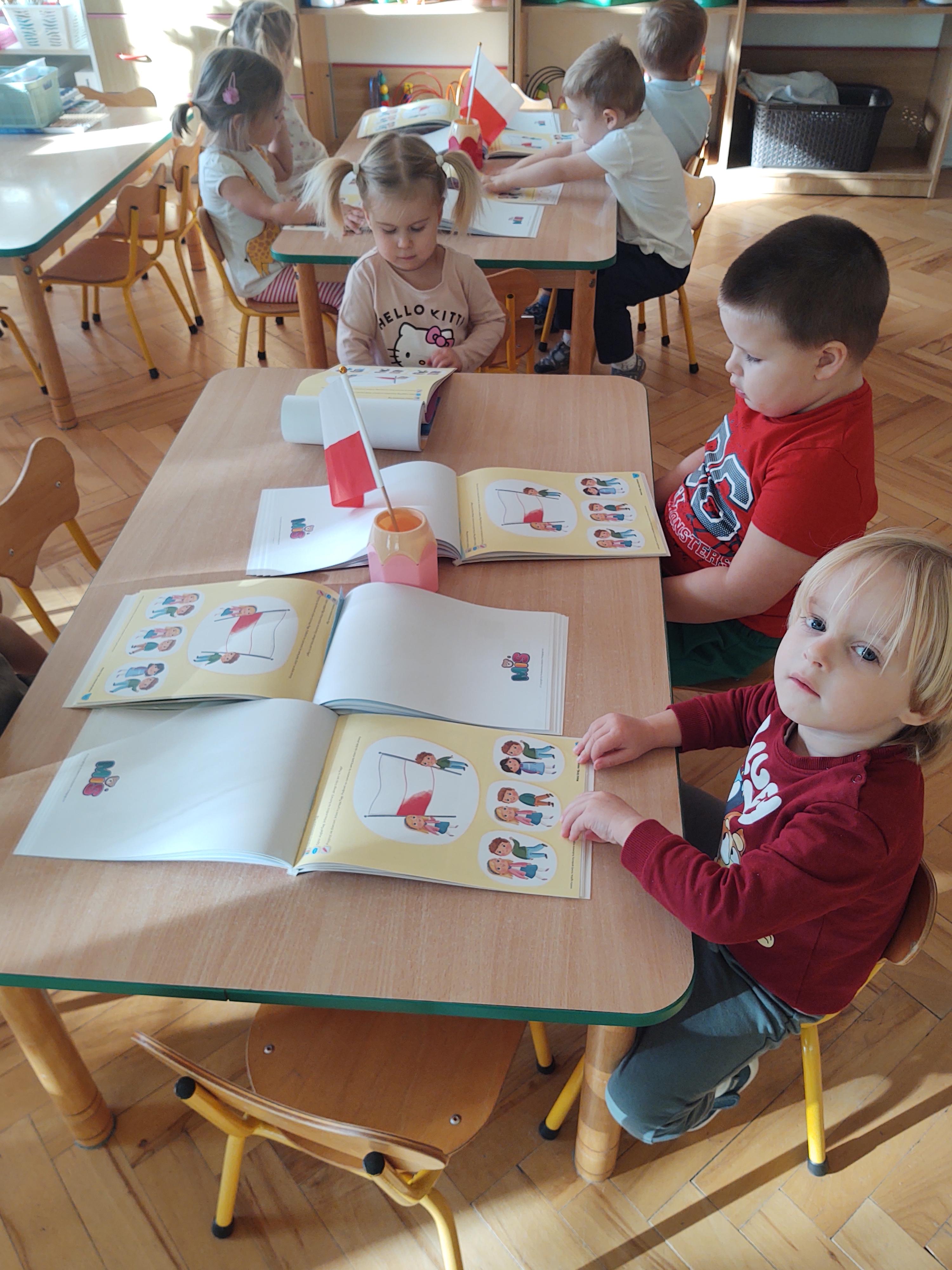 Dzieci poznały więc piosenkę „Mały Polak – przedszkolak”, która w przystępny sposób wprowadziła je w tematykę patriotyczną, brały udział w zabawie „Polska moim domem”, zastanawiały się „Co nazwiemy domem?”, słuchały wiersza „Co to jest Polska?”, a także poznały nasze barwy i symbole narodowe – hymn, flagę i godło Polski. Uczyliśmy się na pamięć wiersza ,,Kto ty jesteś, Polak mały...?.