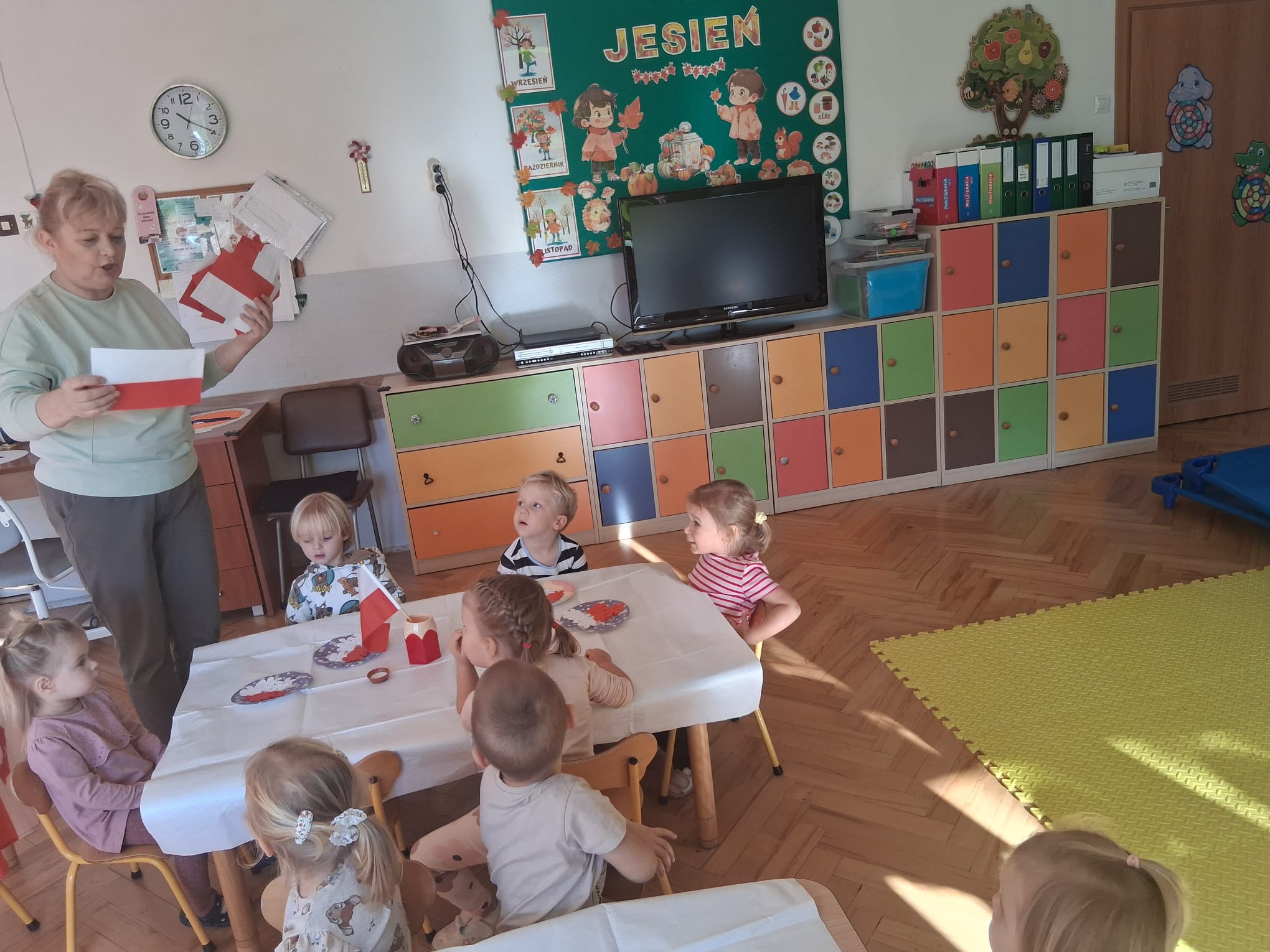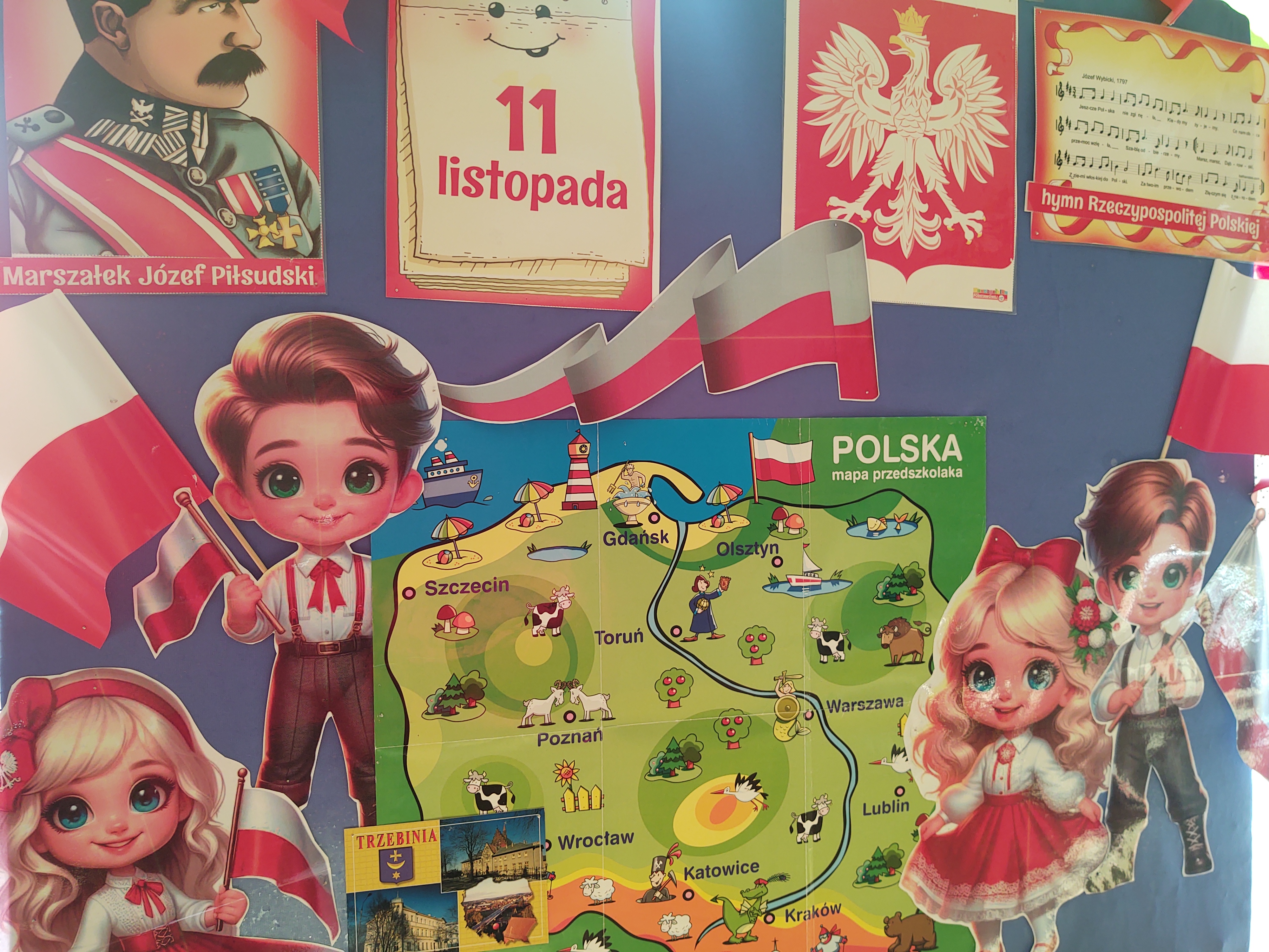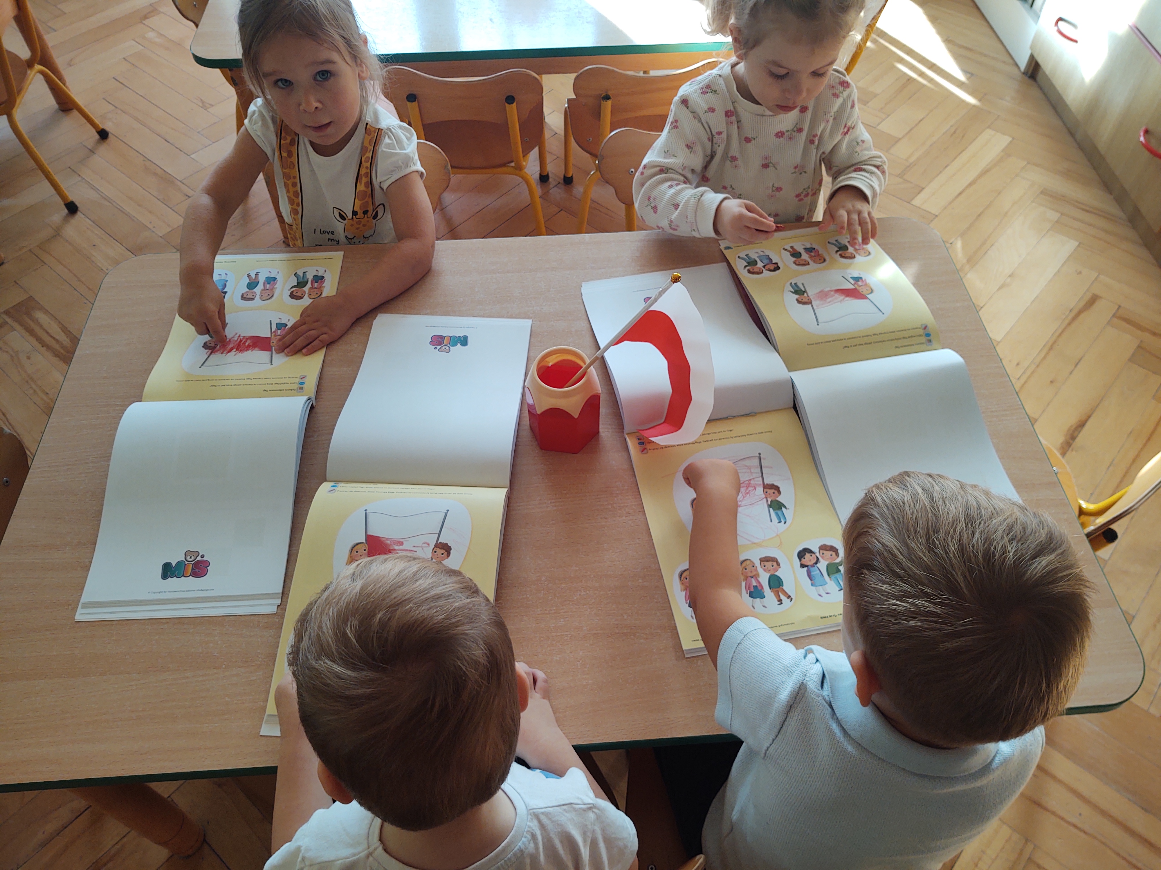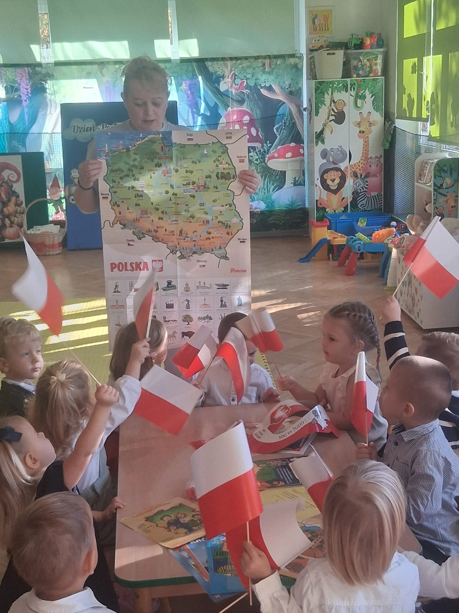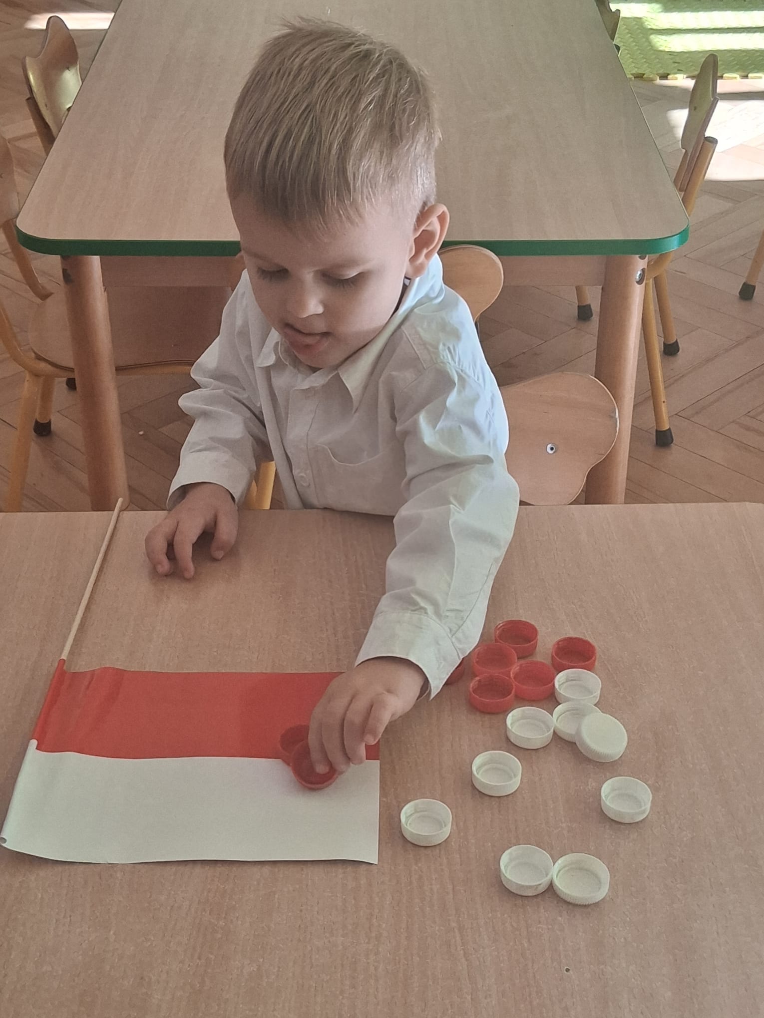 Dzieci poznały więc piosenkę „Mały Polak – przedszkolak”, która w przystępny sposób wprowadziła je w tematykę patriotyczną, brały udział w zabawie „Polska moim domem”, zastanawiały się „Co nazwiemy domem?”, słuchały wiersza „Co to jest Polska?”, a także poznały nasze barwy i symbole narodowe – hymn, flagę i godło Polski. Uczyliśmy się na pamięć wiersza ,,Kto ty jesteś, Polak mały...?.