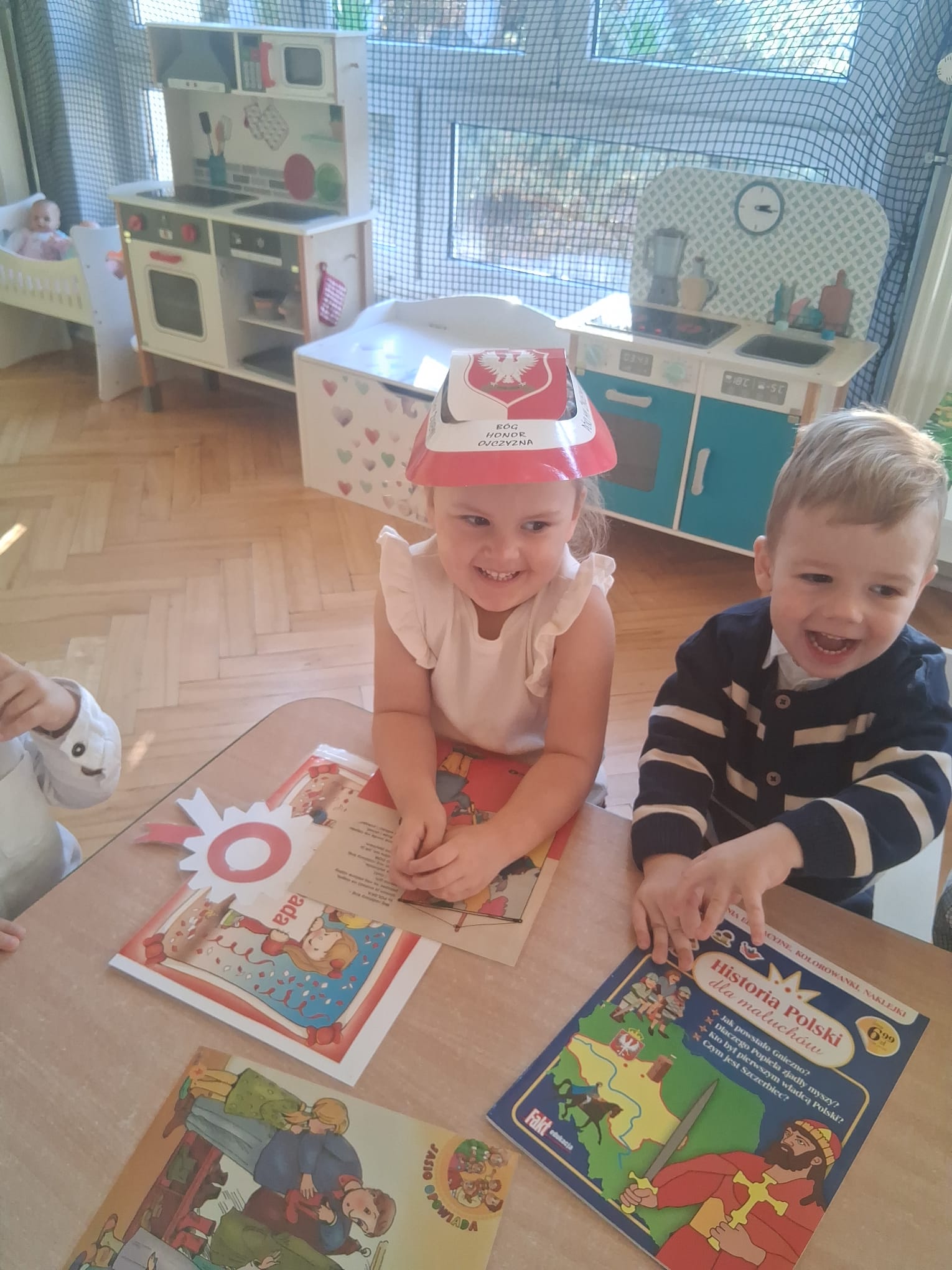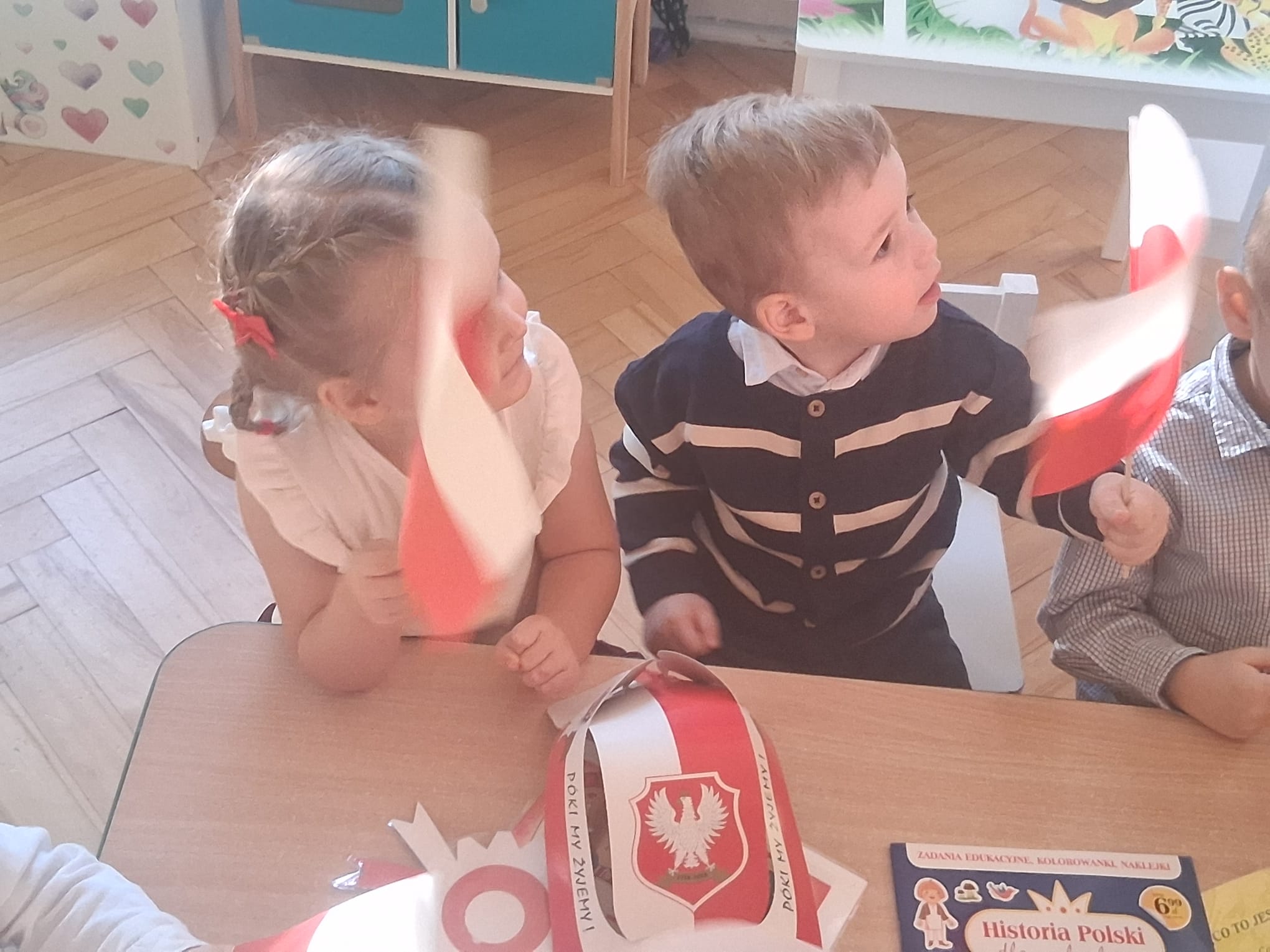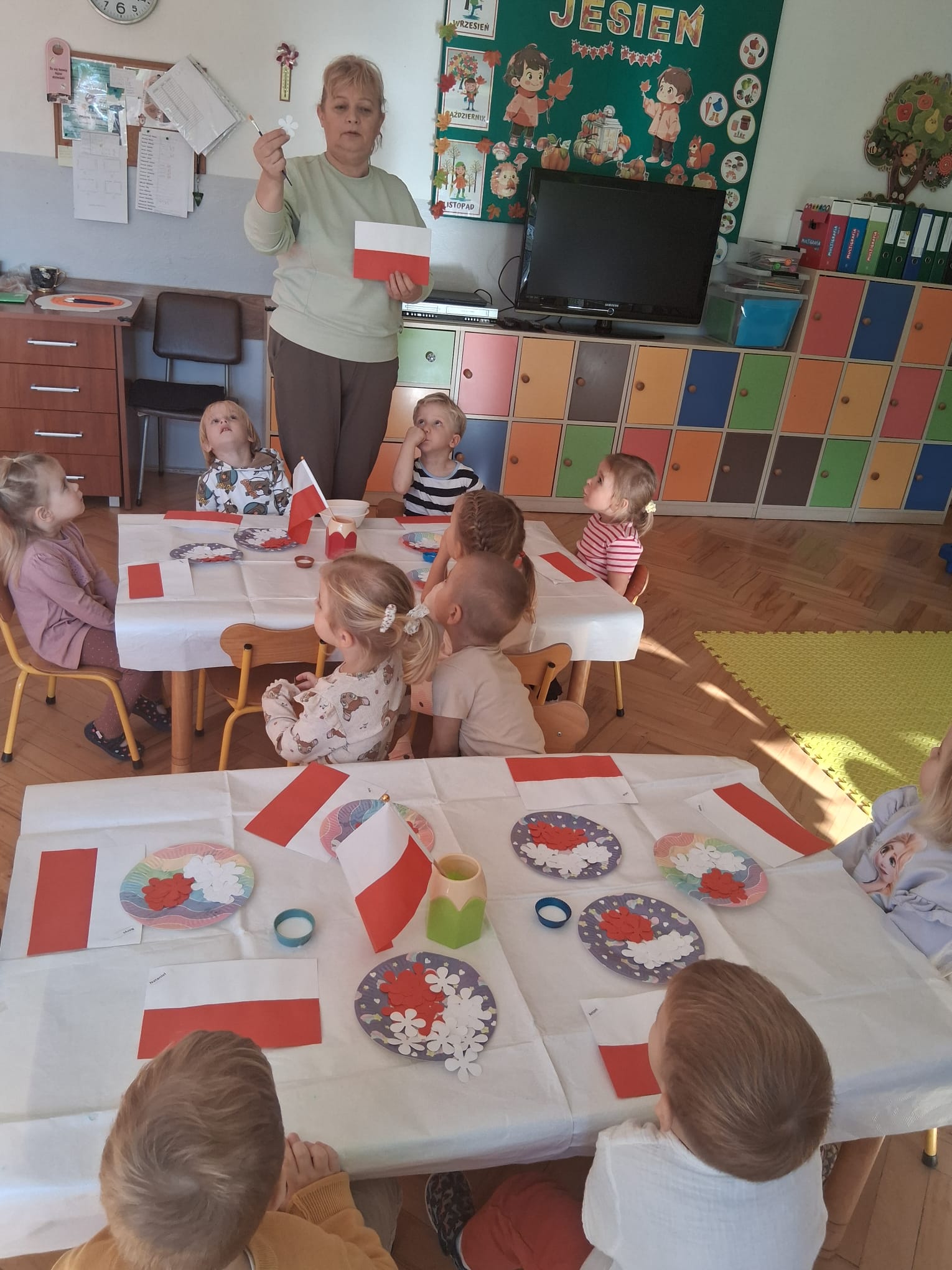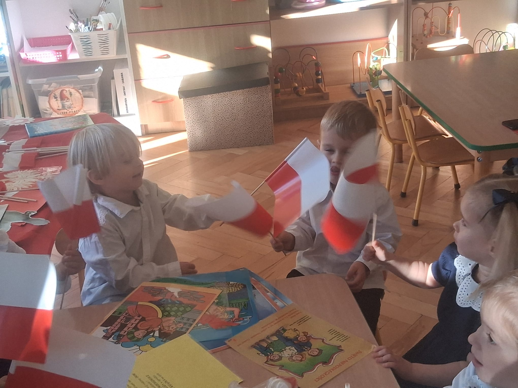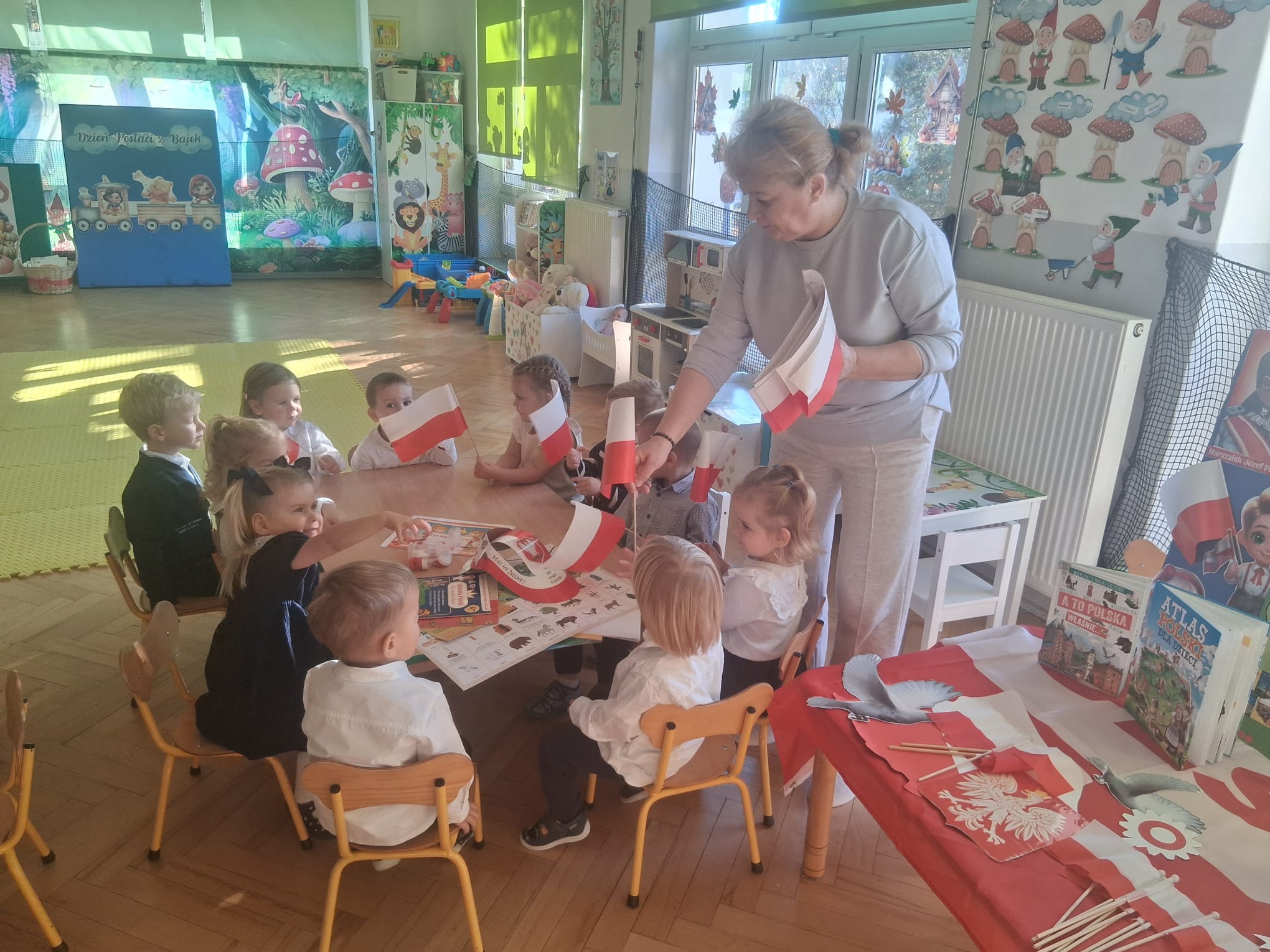 Dzieci poznały więc piosenkę „Mały Polak – przedszkolak”, która w przystępny sposób wprowadziła je w tematykę patriotyczną, brały udział w zabawie „Polska moim domem”, zastanawiały się „Co nazwiemy domem?”, słuchały wiersza „Co to jest Polska?”, a także poznały nasze barwy i symbole narodowe – hymn, flagę i godło Polski. Uczyliśmy się na pamięć wiersza ,,Kto ty jesteś, Polak mały...?.