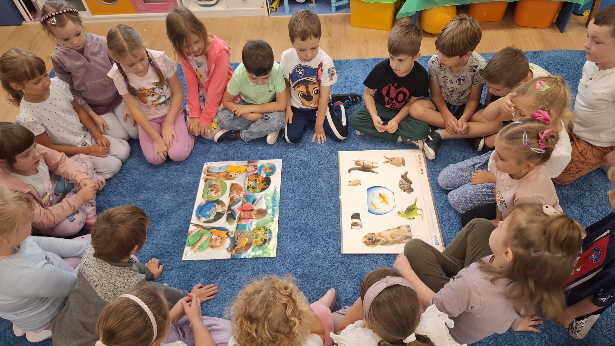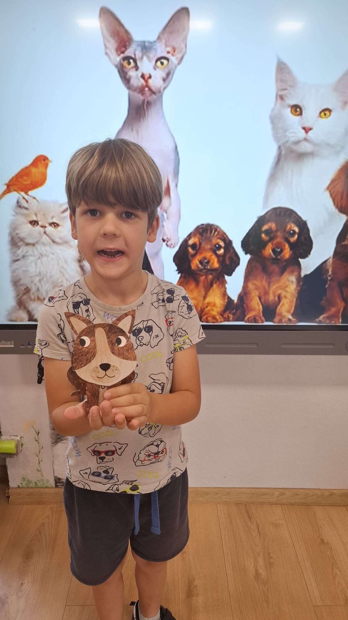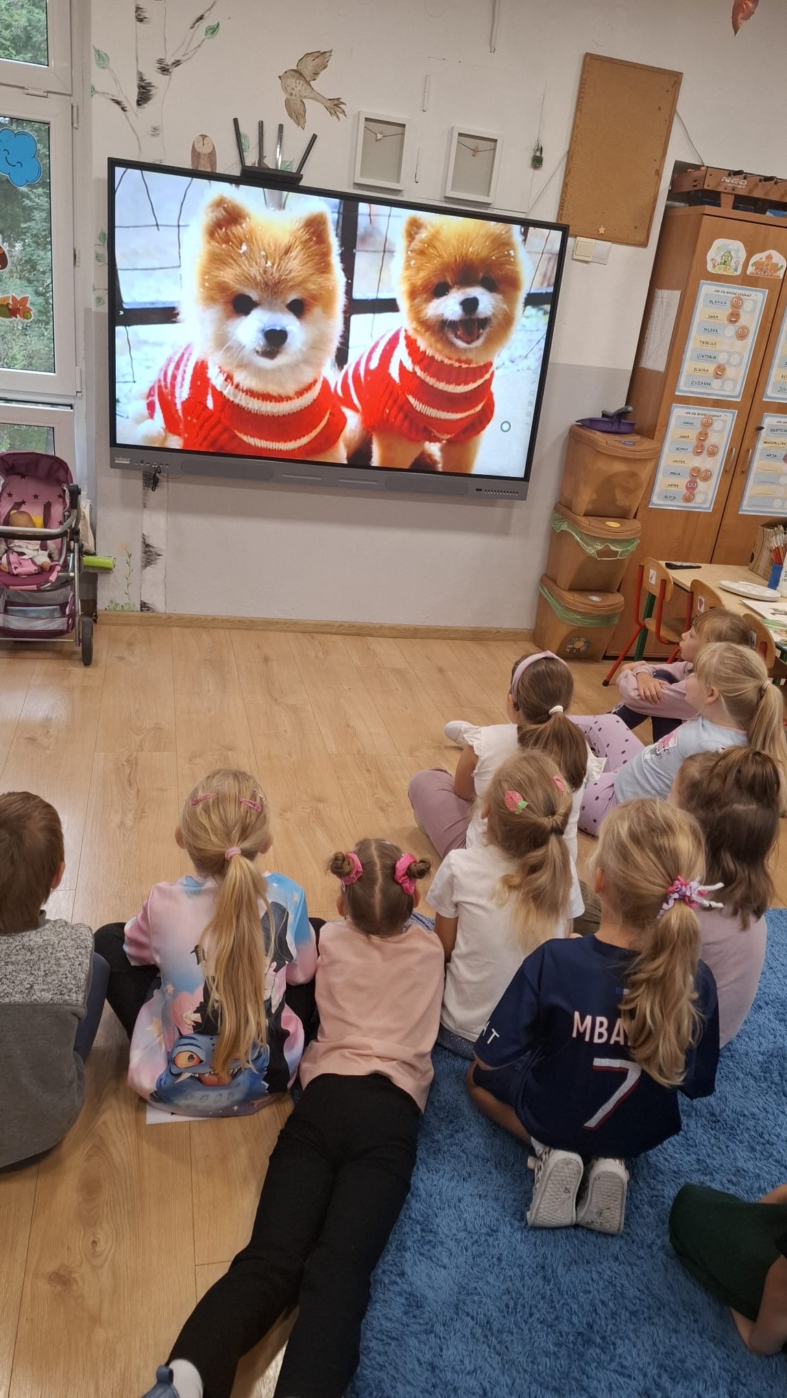 Minął trzeci tydzień w przedszkolu. Podczas zajęć rozmawialiśmy o pasjach, zainteresowaniach i sposobach spędzania czasu wolnego. Dzieci rozwiązywały również zagadki dotyczące zwierząt domowych.