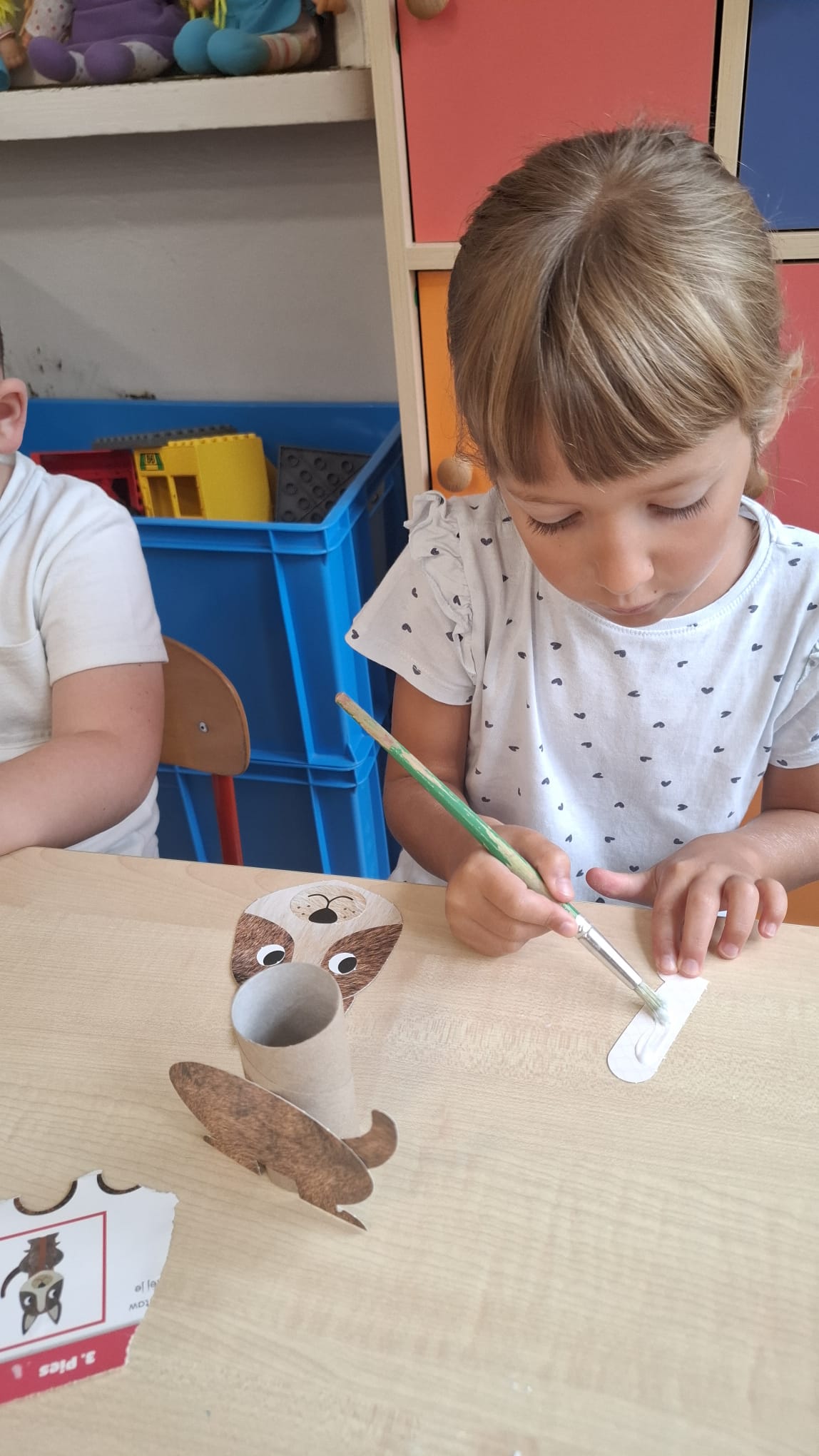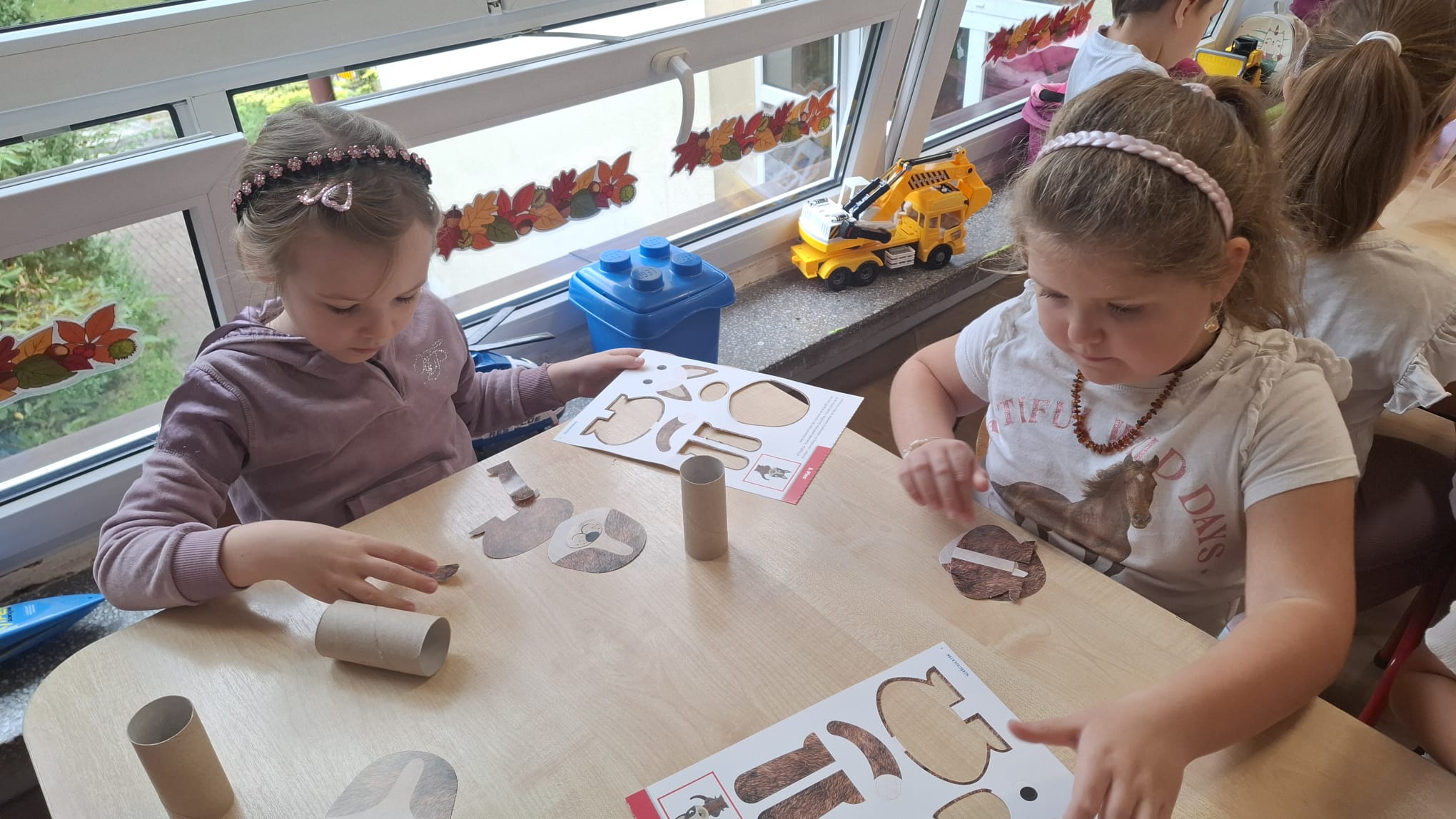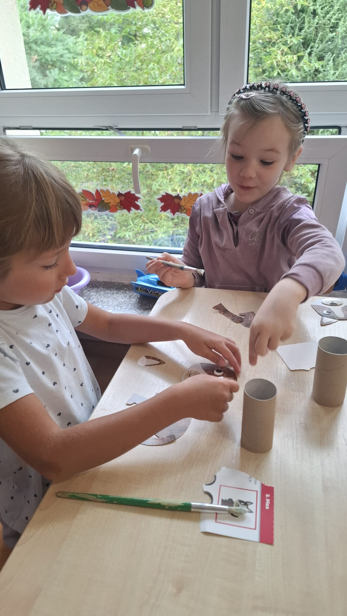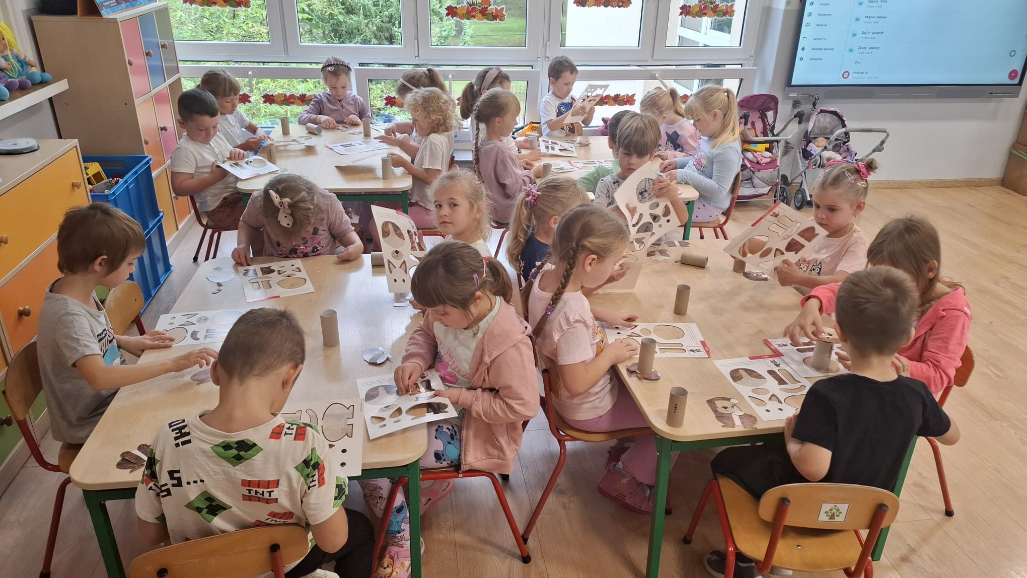 Każdy dzień zaczynały wspólnym odśpiewaniem powitanki ,,Nasze pasje, nasze bziki”. W poniedziałek starszaki uczyły się koncentracji i pracy w ciszy, ilustrowały ruchem słowa nauczyciela. Podczas porannej gimnastyki kształtowały sprawność fizyczną i wykonywały ćwiczenia wpływające na zachowanie prawidłowej postawy ciała. Następnie wysłuchały opowiadania Marii Pawlisz i rozmawiały o swoich zainteresowaniach oraz sposobach na spędzanie wolnego czasu. Opowiadały o swoich pupilach i dzieliły się spostrzeżeniami dotyczącymi opieki nad nimi. Podczas zabaw ,,Przeżyjmy to razem” i ,,Poznajmy się” przełamywały swoją nieśmiałość, wypowiadając się na forum grupy, oraz integrowały się podczas wspólnego tańca do muzyki. Na dworze uczyły się współpracy w zespole w czasie zabaw ruchowych i zręcznościowych. W środę tworzyły konstrukcję z klocków według różnych kryteriów, pobudzając tym samym logiczne myślenie. Piątek był skupiony na temacie zwierząt domowych. Dzieci wysłuchały wiersza Anny Edyk ,,Przywiązanie” oraz rozmawiały o odpowiedzialności w stosunku do zwierząt oraz o tym, jak ważna jest empatia. Wypowiadały się na temat porzucania zwierząt i zamykania ich w schroniskach, kształtowały w sobie prawidłową postawę emocjonalną. Podczas zabaw przy stolikach łączyły zwierzęta z przedmiotami, które można wykorzystać do dbania o nie lub zabawy z nimi.