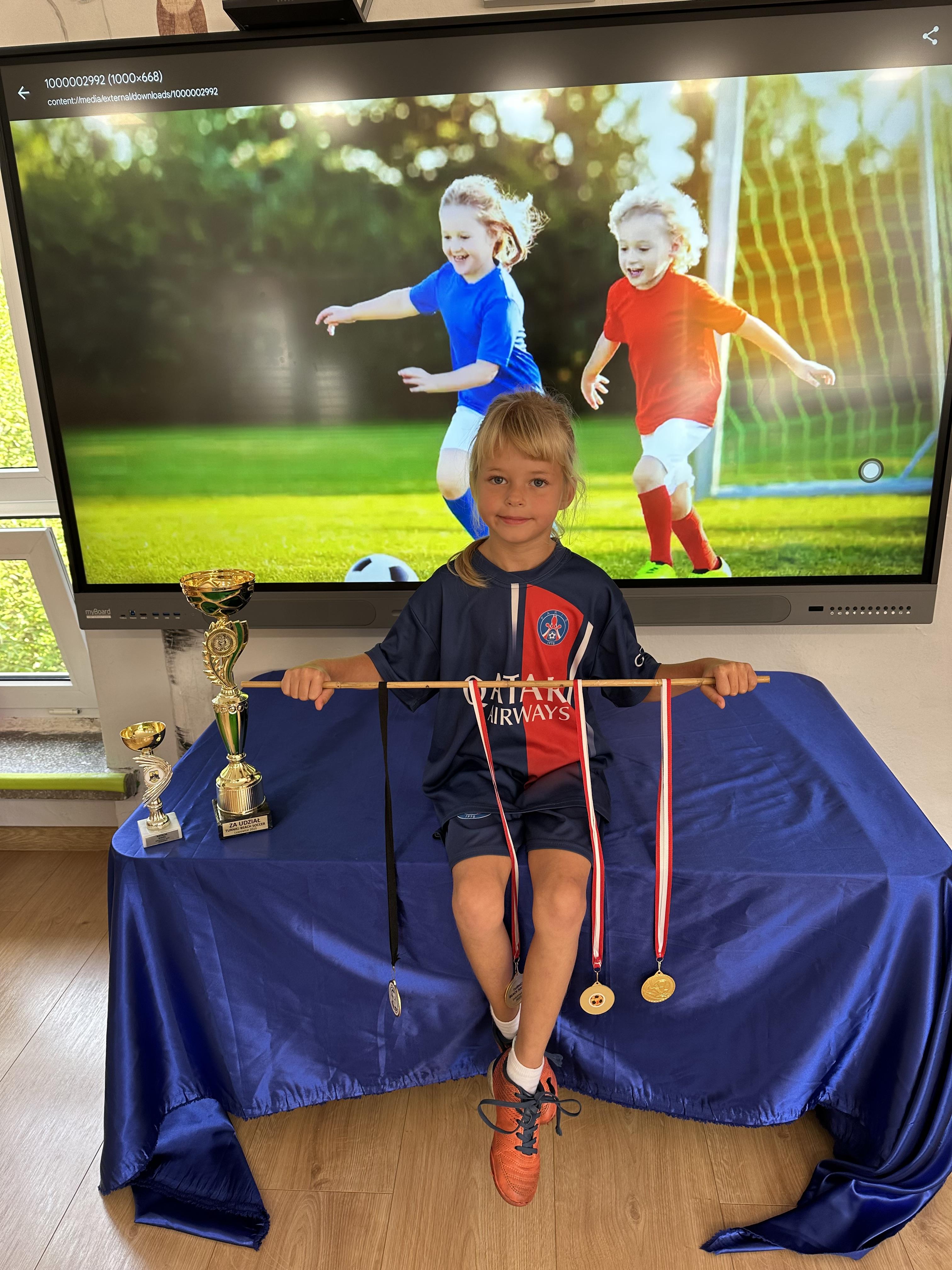 -Natalka z kolei jest miłośniczką sportu i uczęszcza na zajęcia piłki nożnej „Maluchy kochają sport” w Trzebini. Pokazała rówieśnikom swój strój sportowy, medale i puchary, które zdobyła.