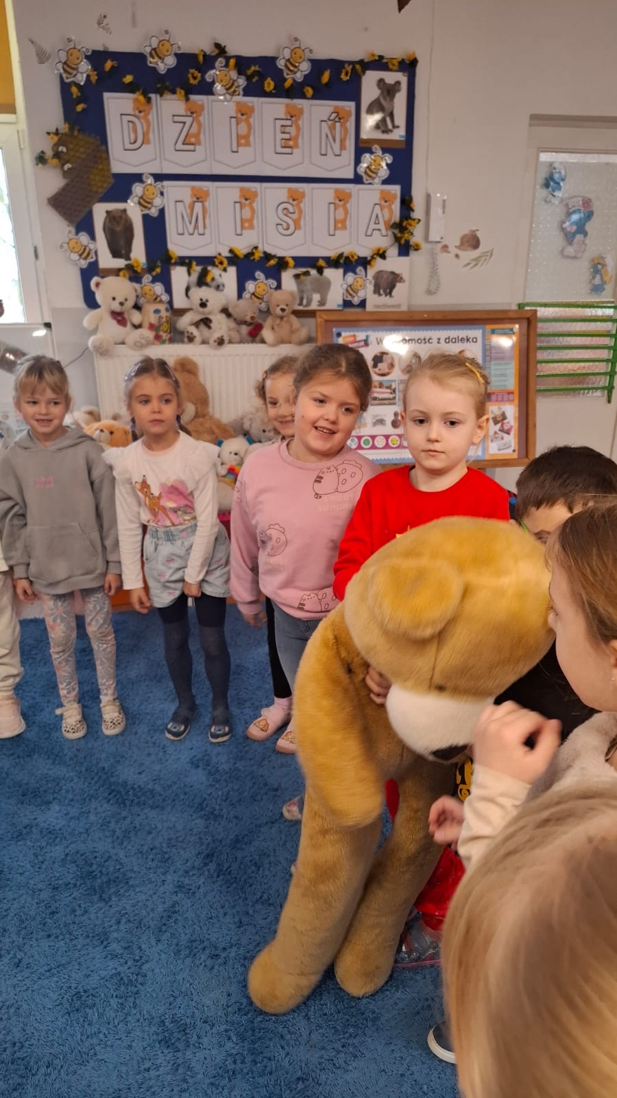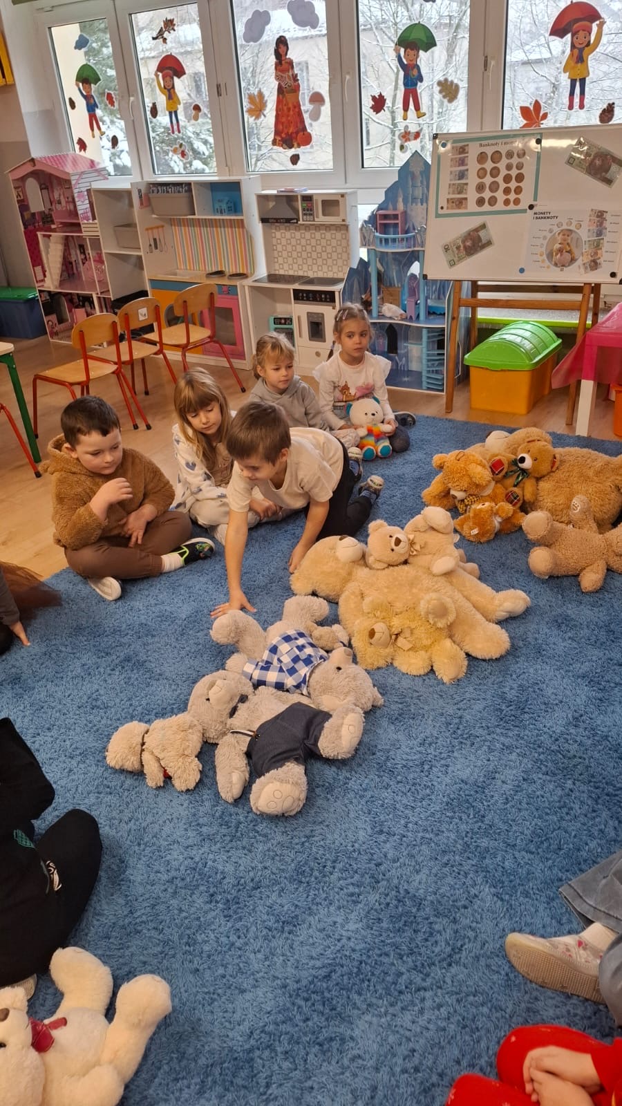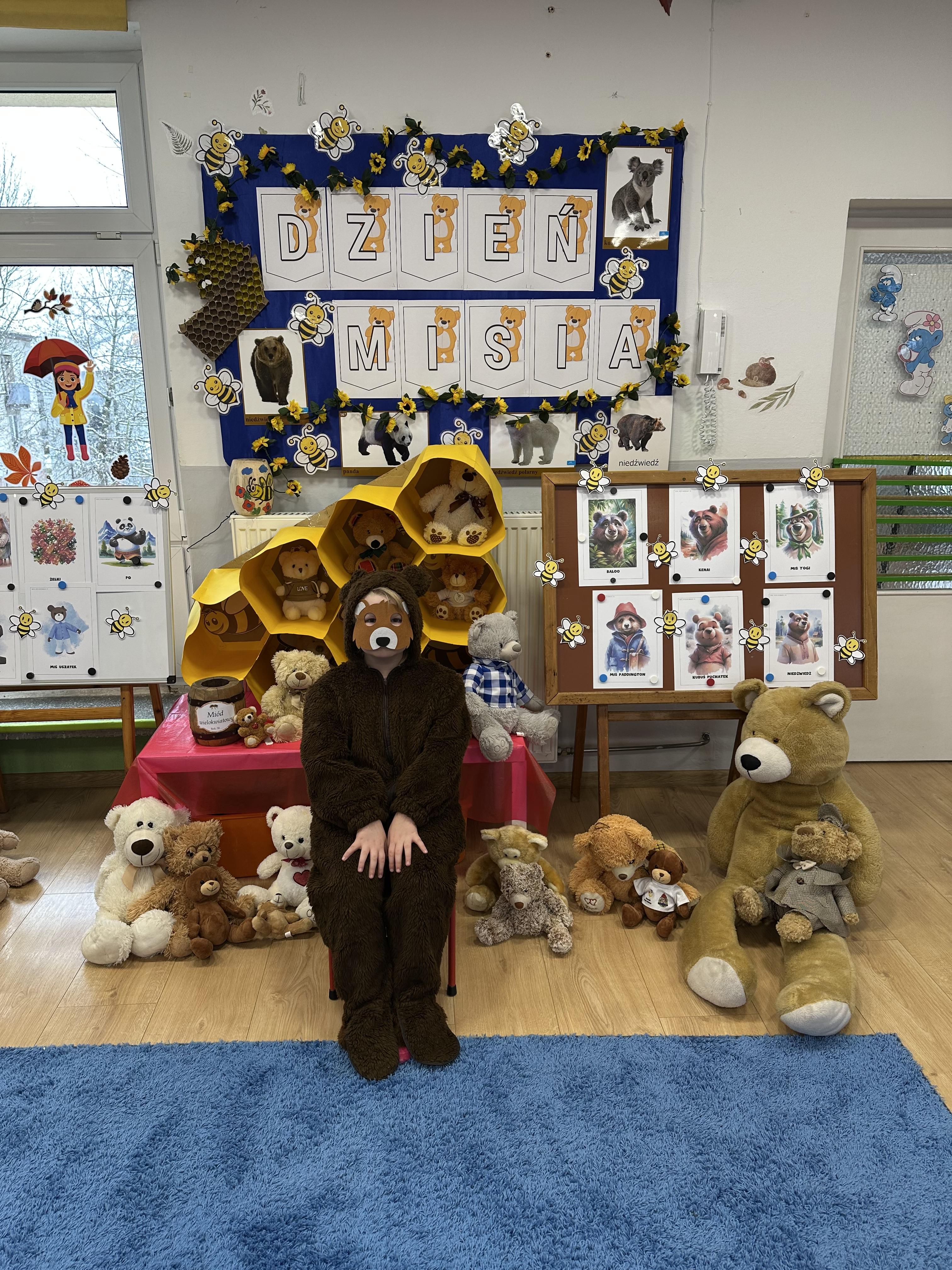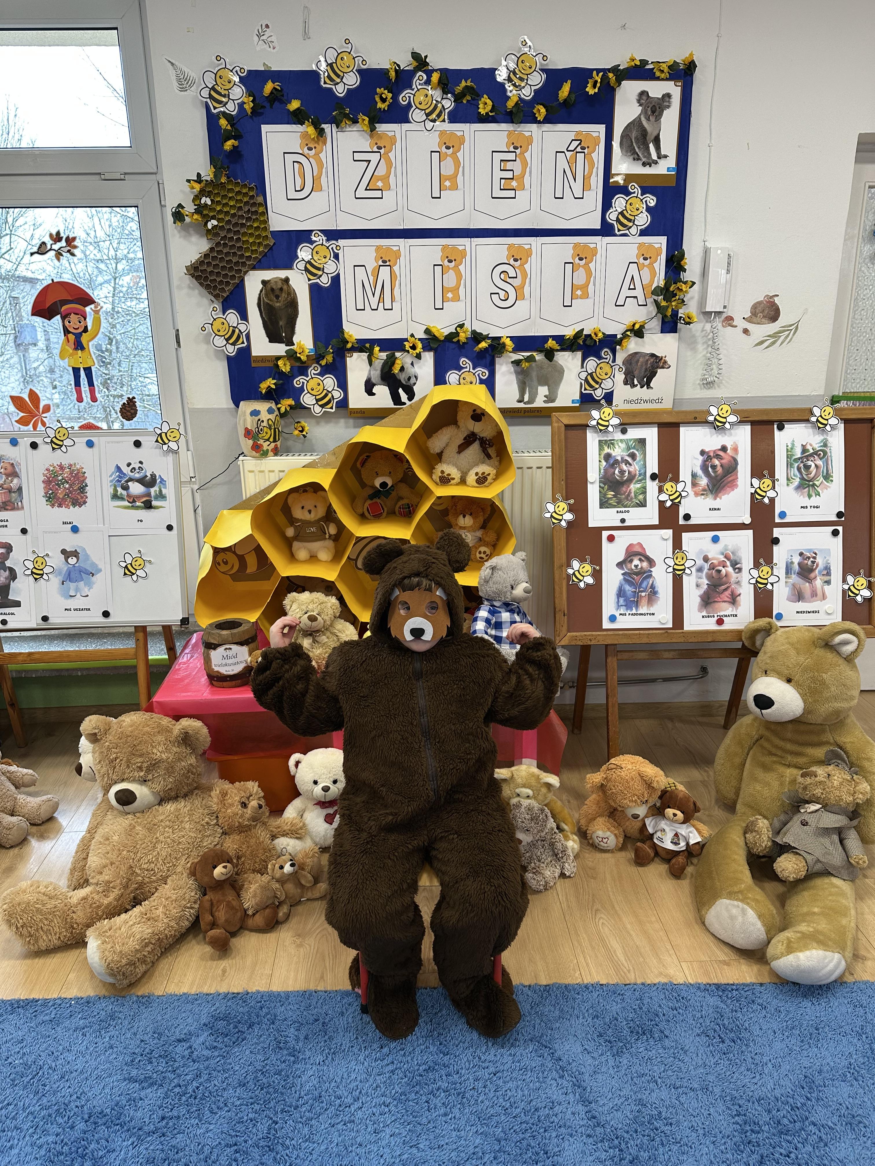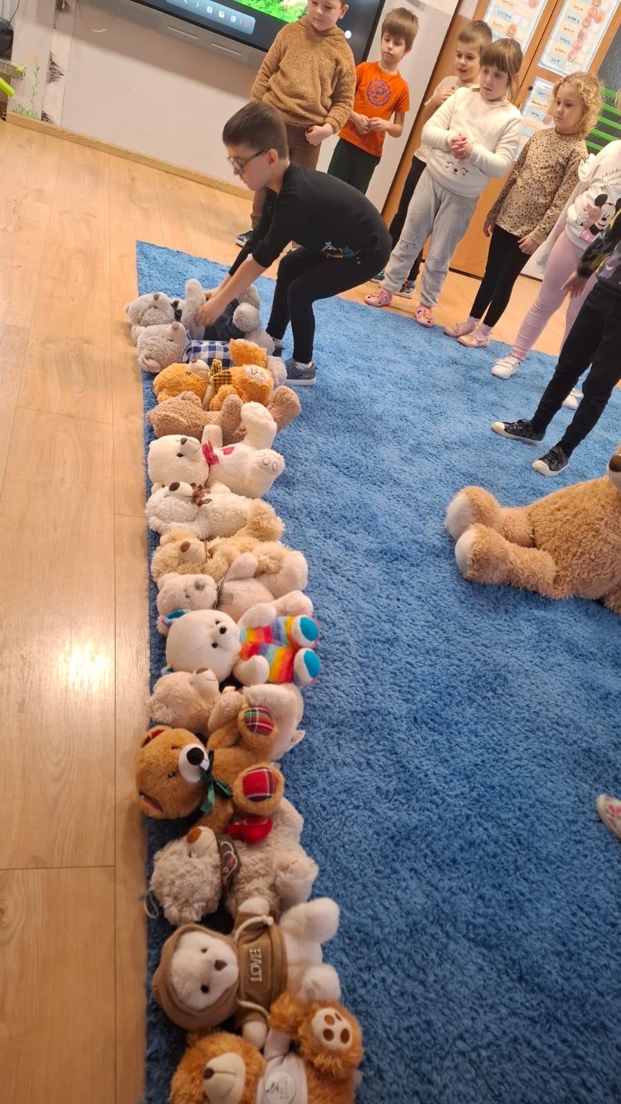 W piątek w naszej grupie świętowaliśmy Dzień Pluszowego Misia. Dzieci przyszły do przedszkola ze swoimi ulubionymi maskotkami, które towarzyszyły im podczas całego dnia zajęć i zabaw. Po śniadaniu przedszkolaki obejrzały film edukacyjny wprowadzający w tematykę święta. Następnie brały udział w zabawach kołowych, takich jak „Stary niedźwiedź” oraz „Jedna łapka, druga łapka”. Podczas zajęć dydaktycznych dzieci doskonaliły również umiejętności matematyczne – klasyfikowały misie według kolorów, układały je od największego do najmniejszego, a także grały w gry edukacyjne „Misiowe memory” oraz „Misiowy quiz”. Kolejnym punktem programu była zabawa muzyczna „Kto przytuli misia”, która dostarczyła dzieciom wiele radości. Po obiedzie przedszkolaki wybierały teksty literackie o misiach, które następnie czytał nauczyciel. Oglądały również ilustracje misiów znanych z bajek i starały się odgadnąć, z jakich tytułów pochodzą. Nie zabrakło także aktywności ruchowych – dzieci uczestniczyły w zabawach „Podaj misia” i „Przenieś misia”, które zawierały elementy rywalizacji. Dużo radości przyniósł również „Taniec z misiem” wykonywany według wylosowanych wcześniej wskazówek. Na zakończenie dnia każde dziecko wykonało pracę plastyczną „Miś”. Dzień upłynął w atmosferze radości, przytulnych wspomnień i wspólnej zabawy, a pluszowi towarzysze byli tego dnia najważniejszymi gośćmi w przedszkolu.