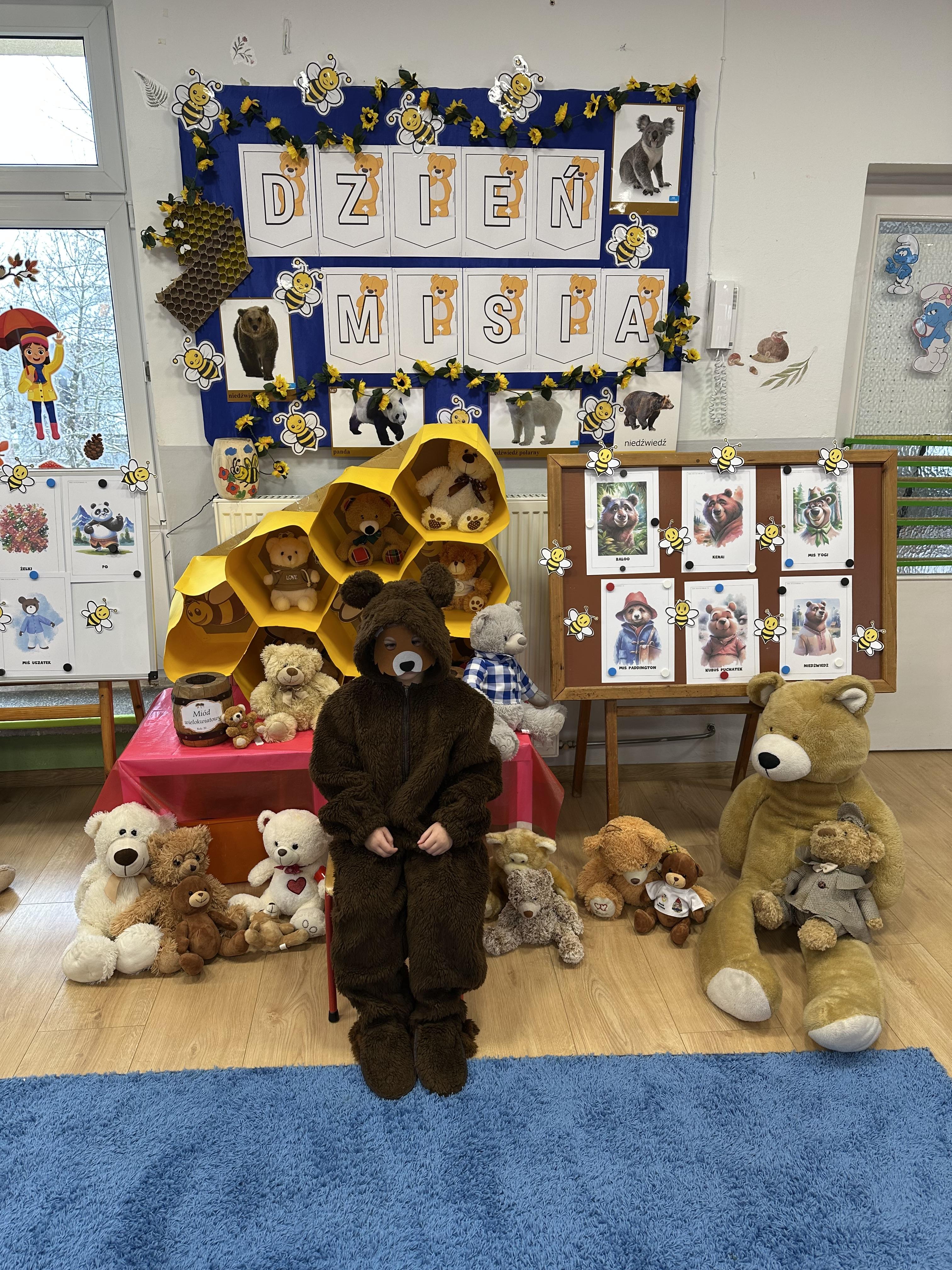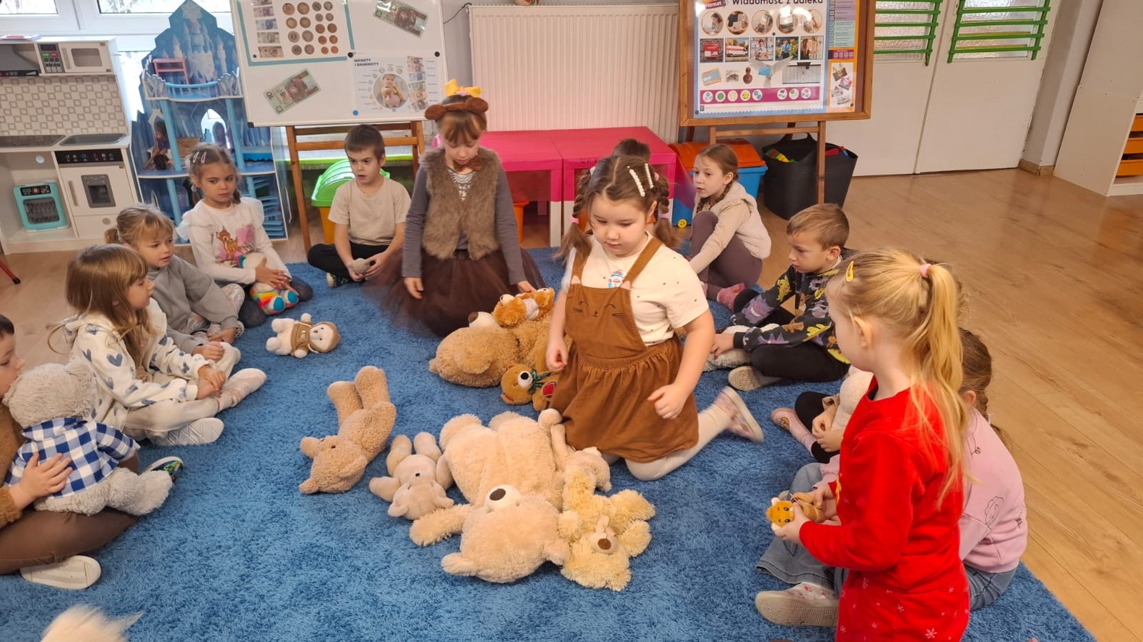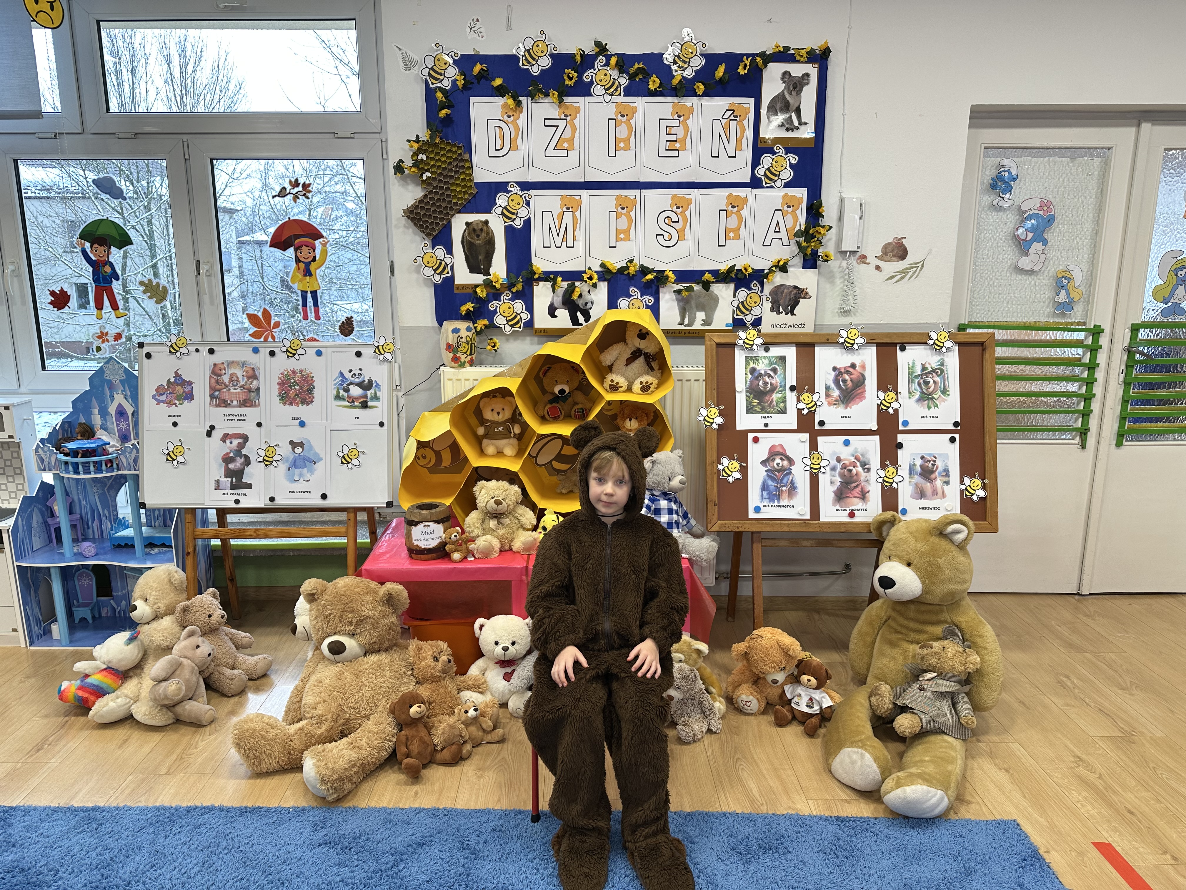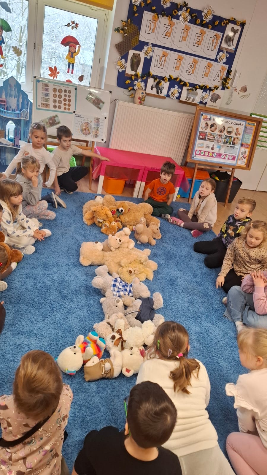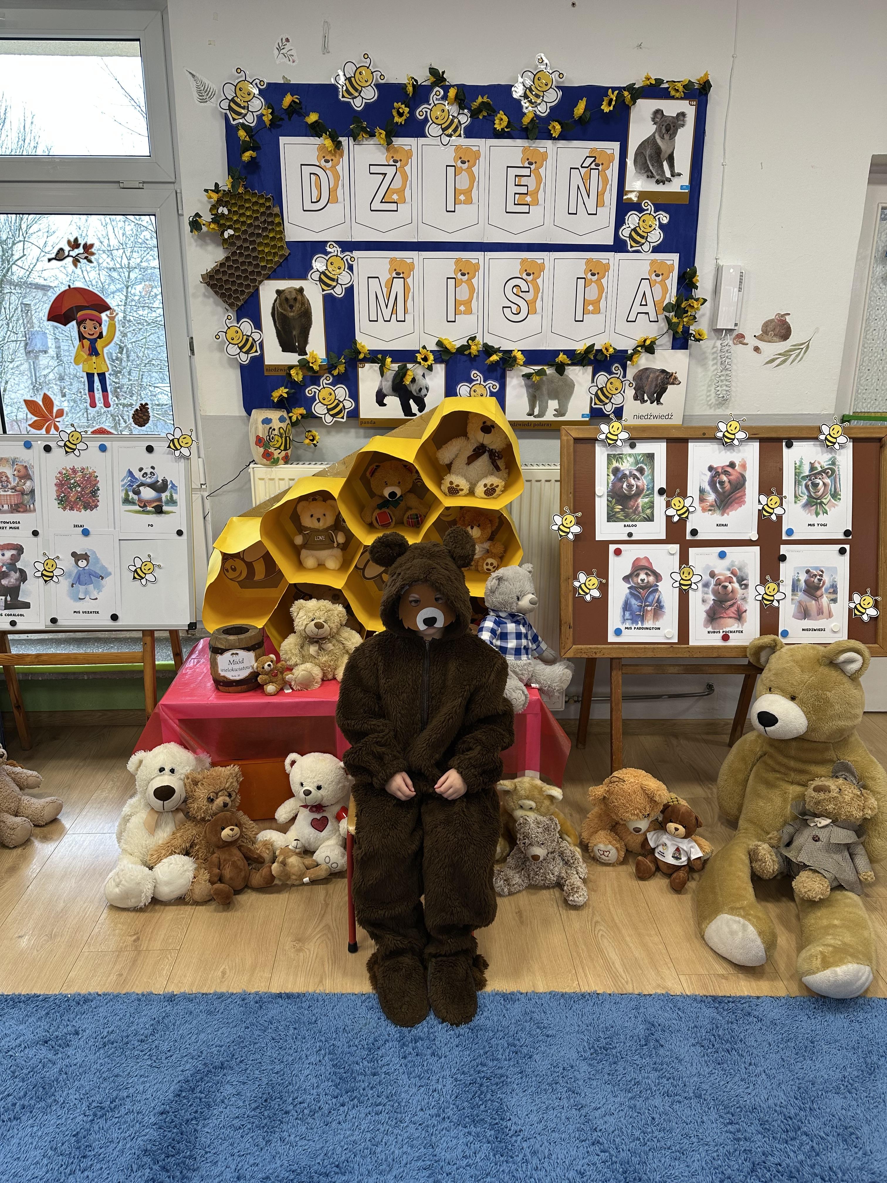 W piątek w naszej grupie świętowaliśmy Dzień Pluszowego Misia. Dzieci przyszły do przedszkola ze swoimi ulubionymi maskotkami, które towarzyszyły im podczas całego dnia zajęć i zabaw. Po śniadaniu przedszkolaki obejrzały film edukacyjny wprowadzający w tematykę święta. Następnie brały udział w zabawach kołowych, takich jak „Stary niedźwiedź” oraz „Jedna łapka, druga łapka”. Podczas zajęć dydaktycznych dzieci doskonaliły również umiejętności matematyczne – klasyfikowały misie według kolorów, układały je od największego do najmniejszego, a także grały w gry edukacyjne „Misiowe memory” oraz „Misiowy quiz”. Kolejnym punktem programu była zabawa muzyczna „Kto przytuli misia”, która dostarczyła dzieciom wiele radości. Po obiedzie przedszkolaki wybierały teksty literackie o misiach, które następnie czytał nauczyciel. Oglądały również ilustracje misiów znanych z bajek i starały się odgadnąć, z jakich tytułów pochodzą. Nie zabrakło także aktywności ruchowych – dzieci uczestniczyły w zabawach „Podaj misia” i „Przenieś misia”, które zawierały elementy rywalizacji. Dużo radości przyniósł również „Taniec z misiem” wykonywany według wylosowanych wcześniej wskazówek. Na zakończenie dnia każde dziecko wykonało pracę plastyczną „Miś”. Dzień upłynął w atmosferze radości, przytulnych wspomnień i wspólnej zabawy, a pluszowi towarzysze byli tego dnia najważniejszymi gośćmi w przedszkolu.