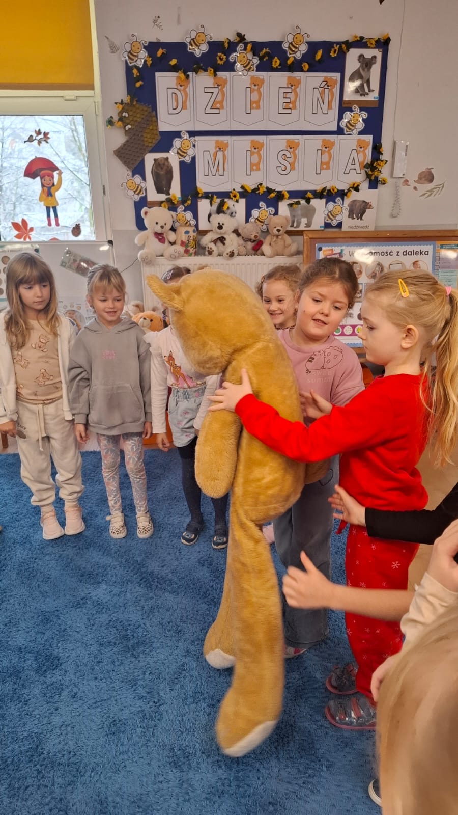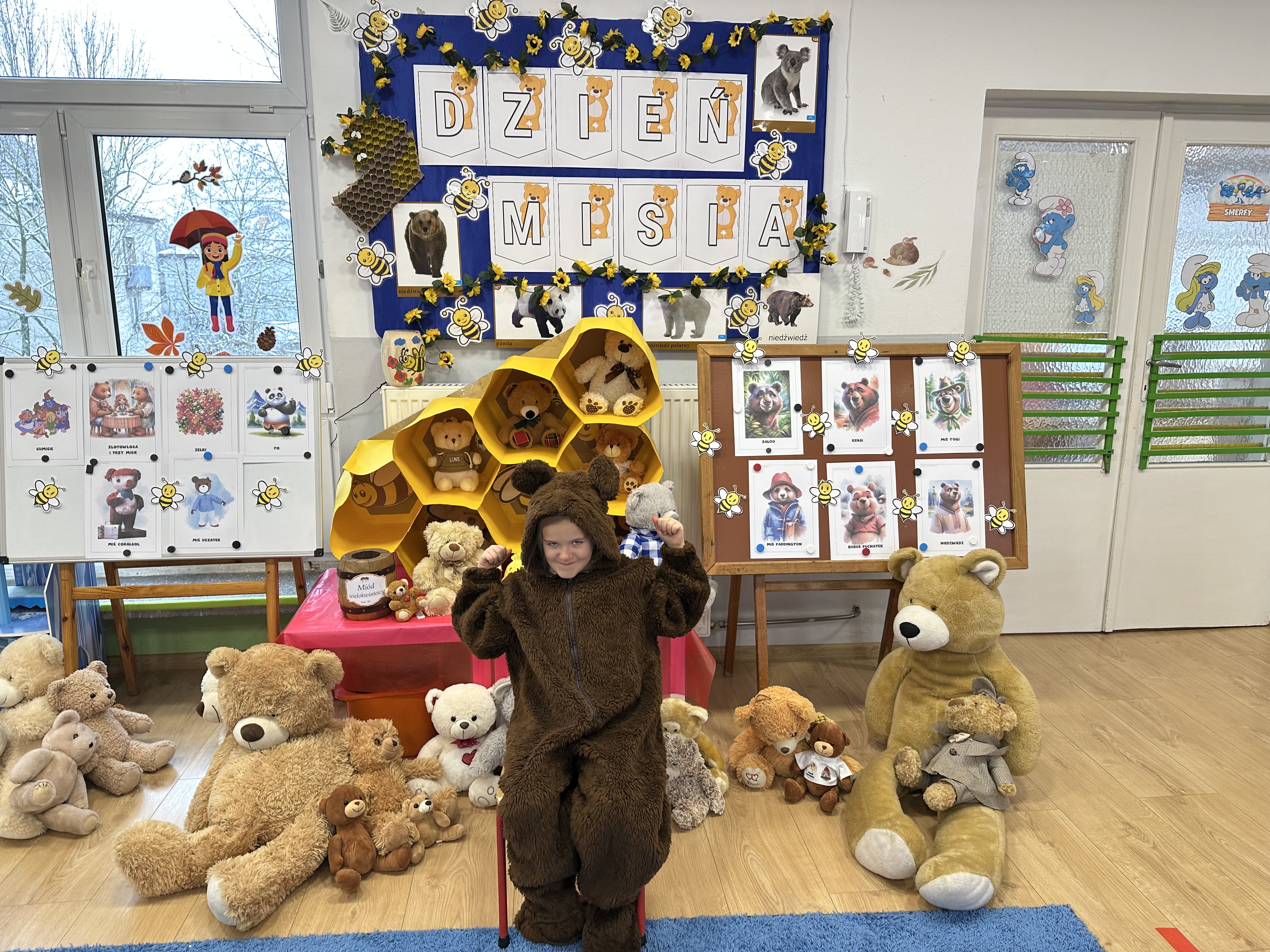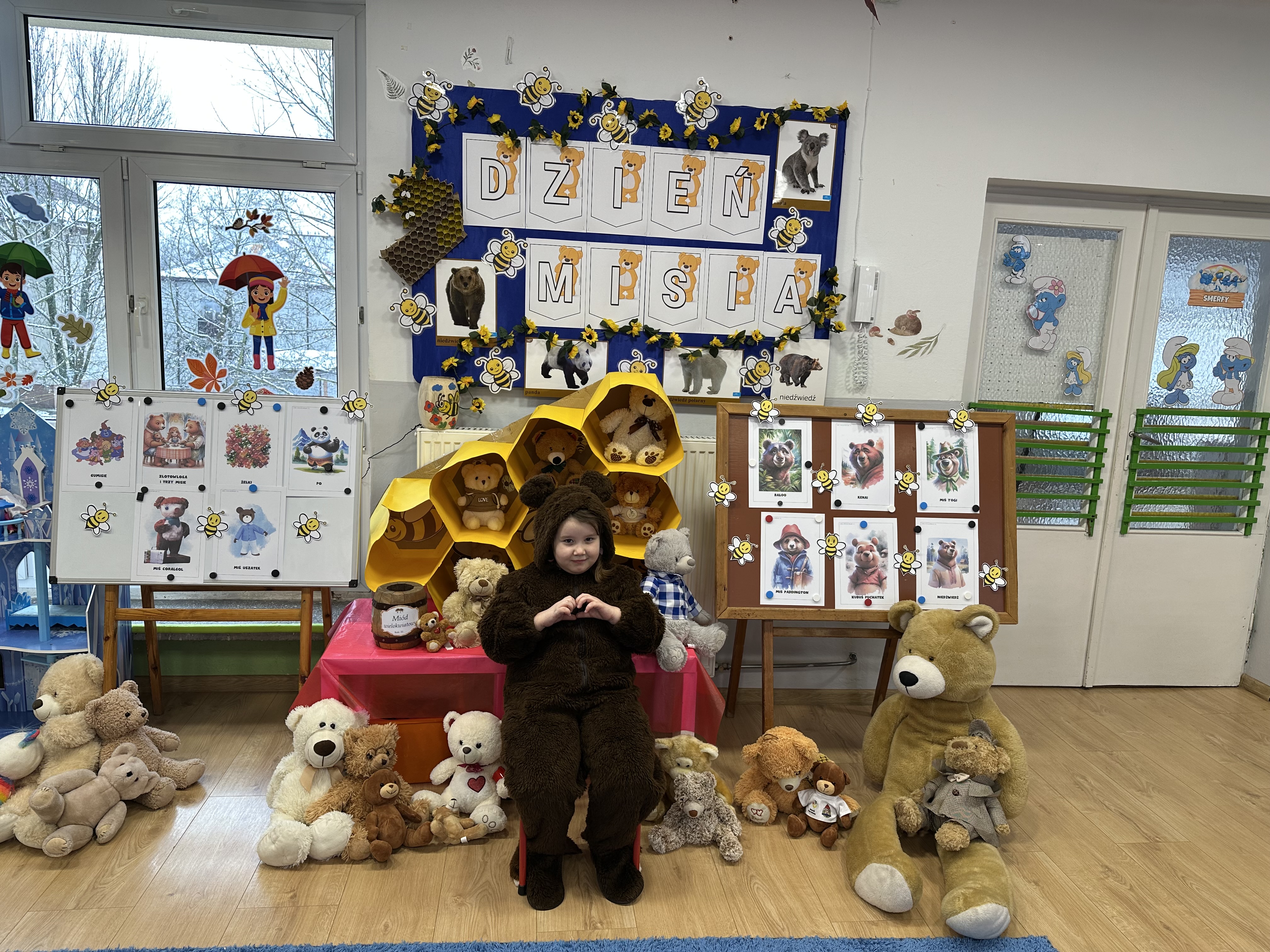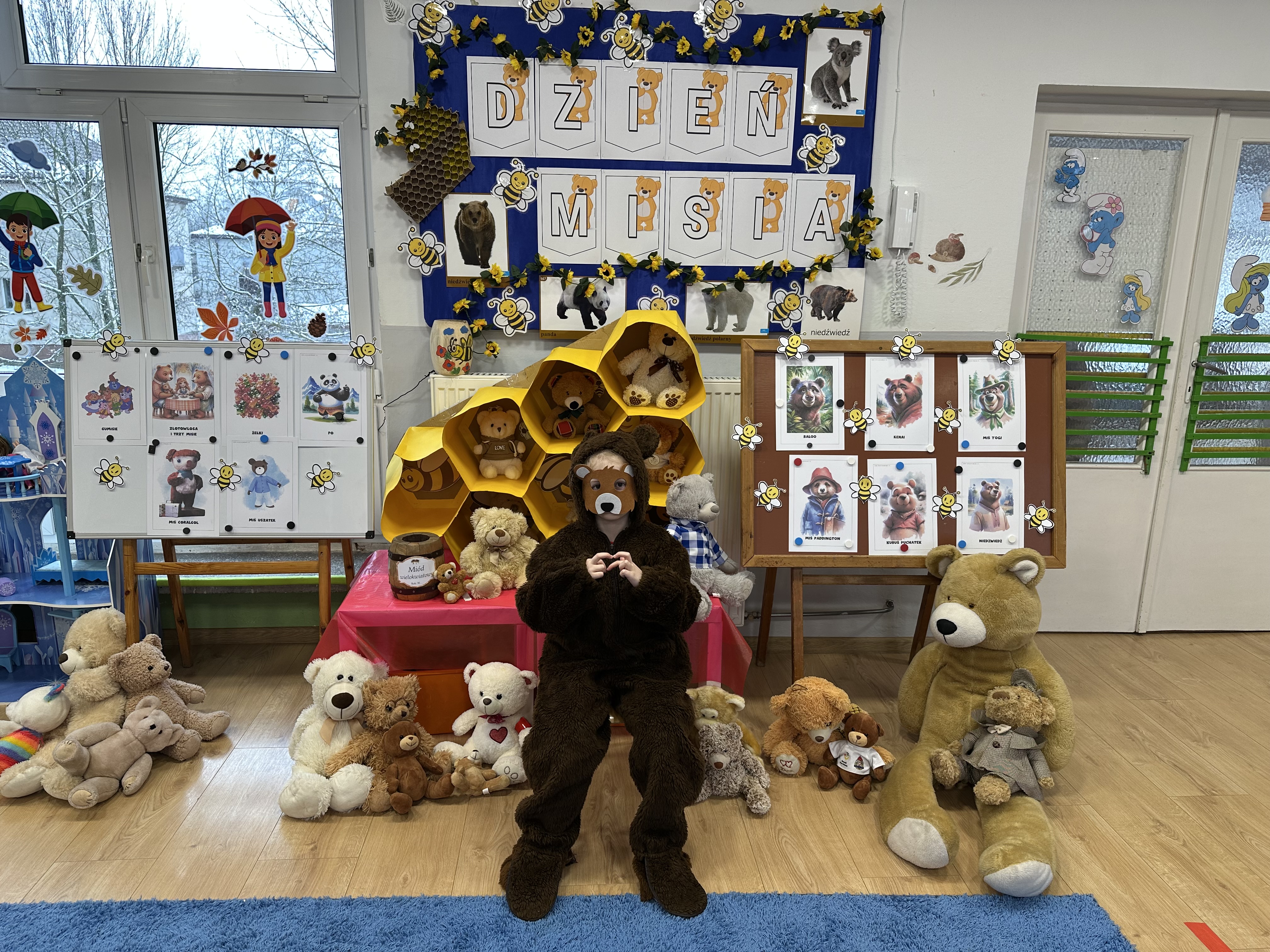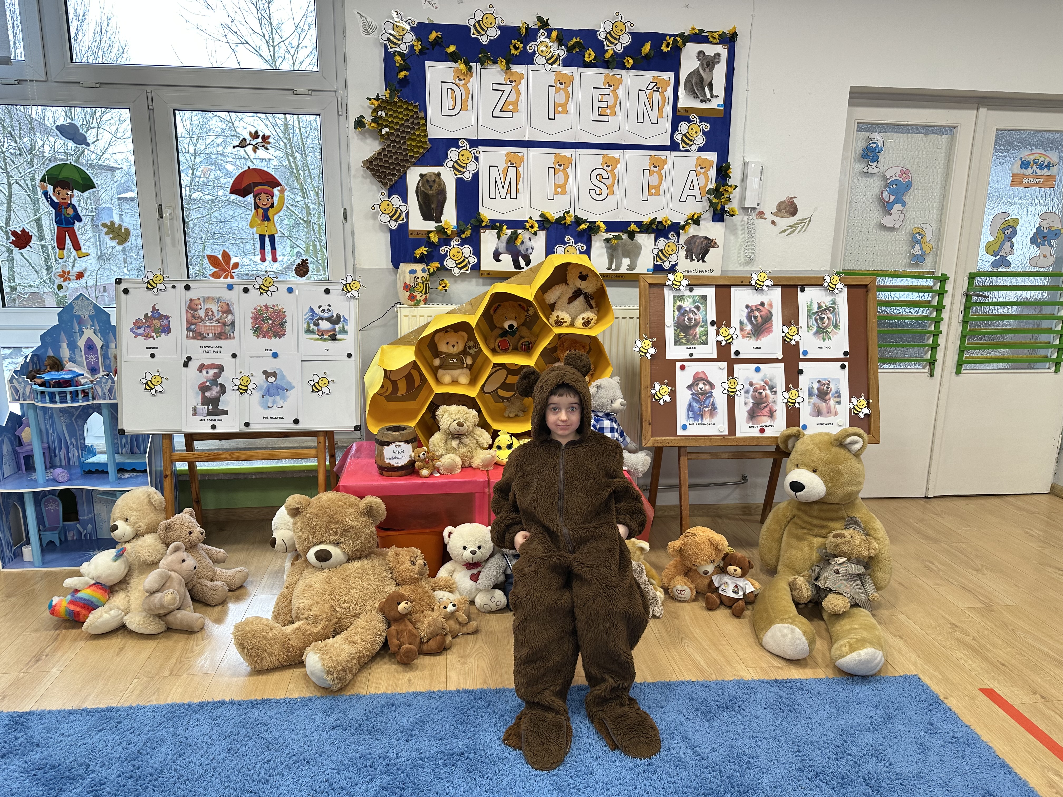 W piątek w naszej grupie świętowaliśmy Dzień Pluszowego Misia. Dzieci przyszły do przedszkola ze swoimi ulubionymi maskotkami, które towarzyszyły im podczas całego dnia zajęć i zabaw. Po śniadaniu przedszkolaki obejrzały film edukacyjny wprowadzający w tematykę święta. Następnie brały udział w zabawach kołowych, takich jak „Stary niedźwiedź” oraz „Jedna łapka, druga łapka”. Podczas zajęć dydaktycznych dzieci doskonaliły również umiejętności matematyczne – klasyfikowały misie według kolorów, układały je od największego do najmniejszego, a także grały w gry edukacyjne „Misiowe memory” oraz „Misiowy quiz”. Kolejnym punktem programu była zabawa muzyczna „Kto przytuli misia”, która dostarczyła dzieciom wiele radości. Po obiedzie przedszkolaki wybierały teksty literackie o misiach, które następnie czytał nauczyciel. Oglądały również ilustracje misiów znanych z bajek i starały się odgadnąć, z jakich tytułów pochodzą. Nie zabrakło także aktywności ruchowych – dzieci uczestniczyły w zabawach „Podaj misia” i „Przenieś misia”, które zawierały elementy rywalizacji. Dużo radości przyniósł również „Taniec z misiem” wykonywany według wylosowanych wcześniej wskazówek. Na zakończenie dnia każde dziecko wykonało pracę plastyczną „Miś”. Dzień upłynął w atmosferze radości, przytulnych wspomnień i wspólnej zabawy, a pluszowi towarzysze byli tego dnia najważniejszymi gośćmi w przedszkolu.