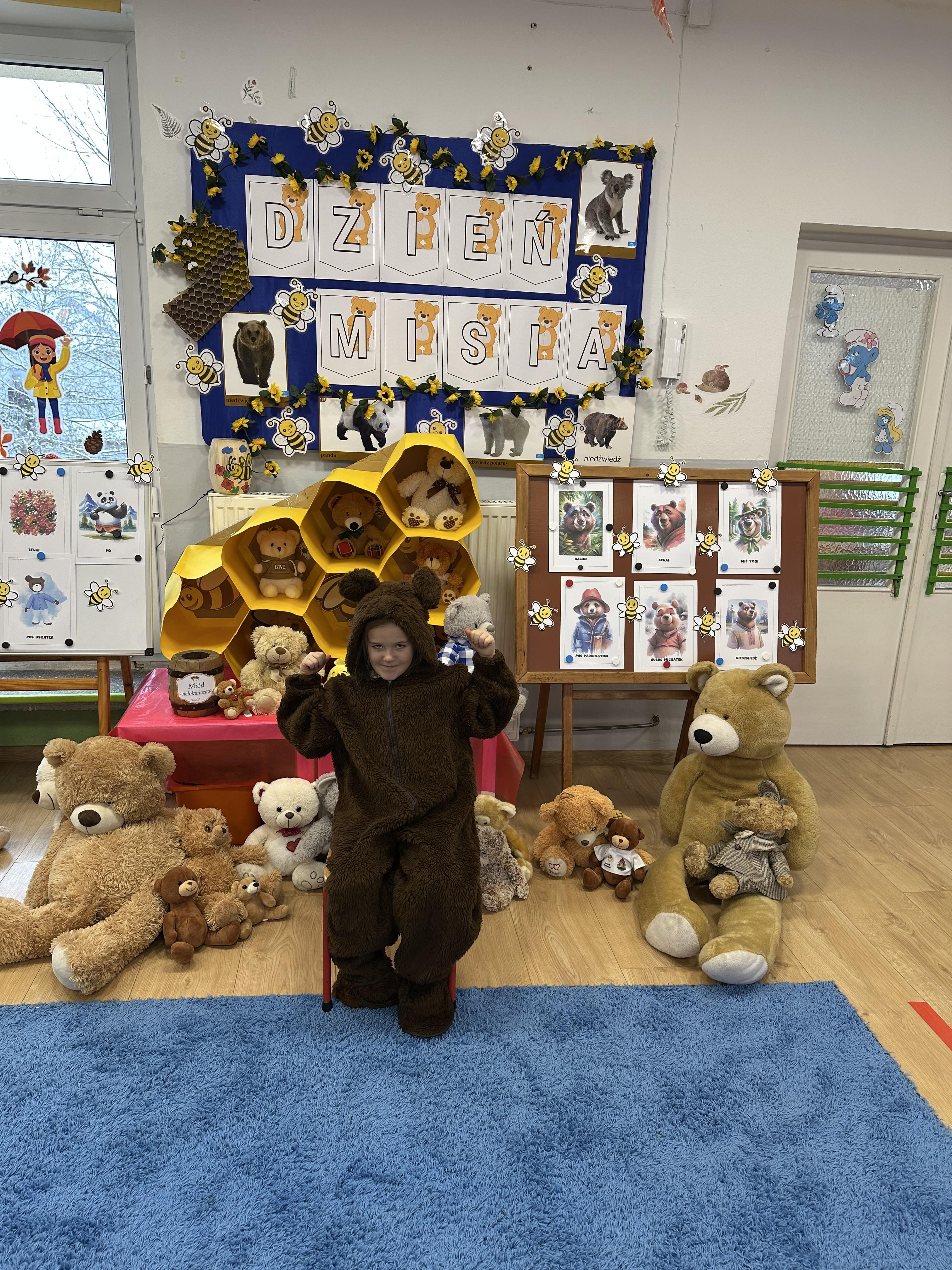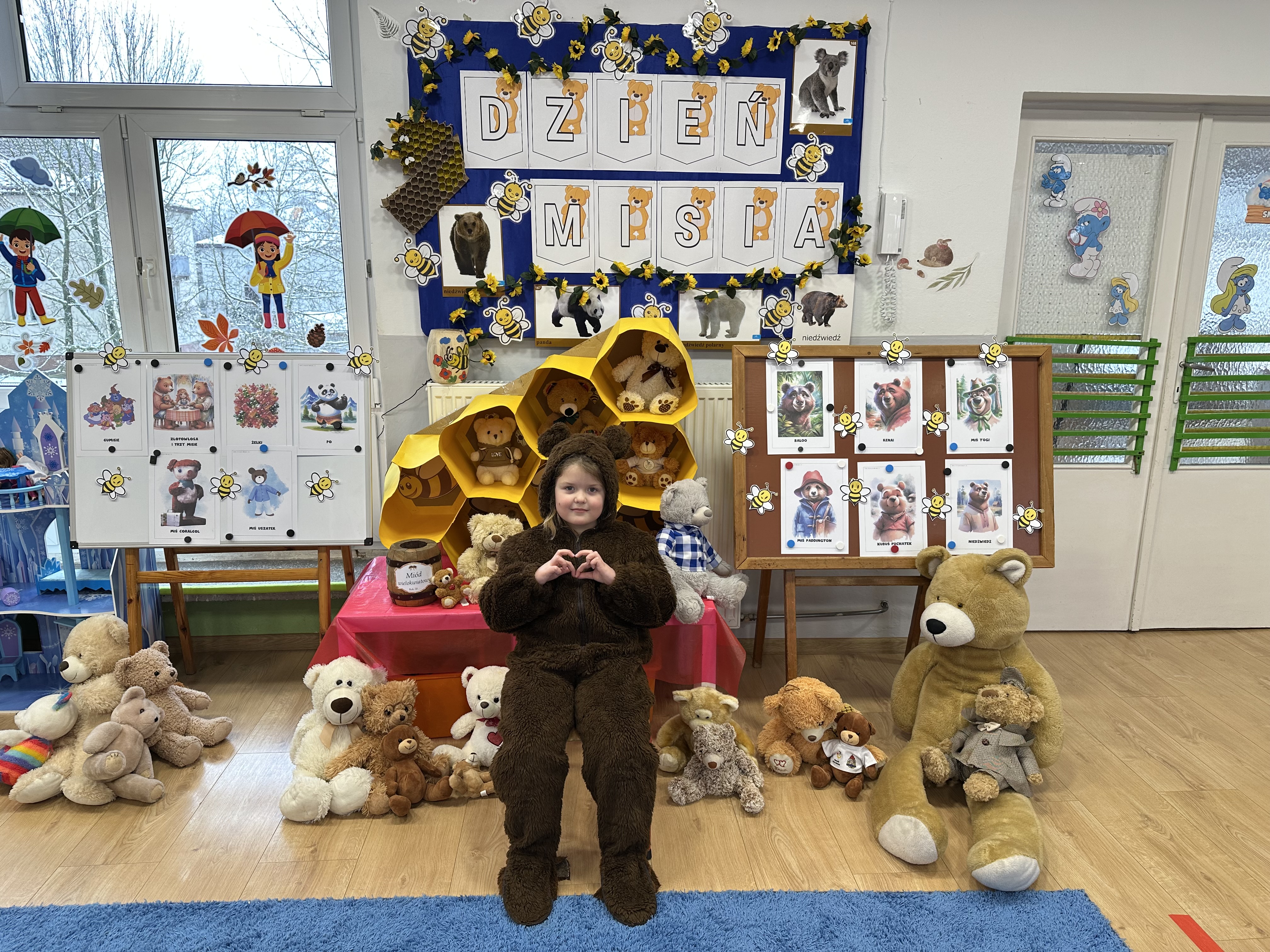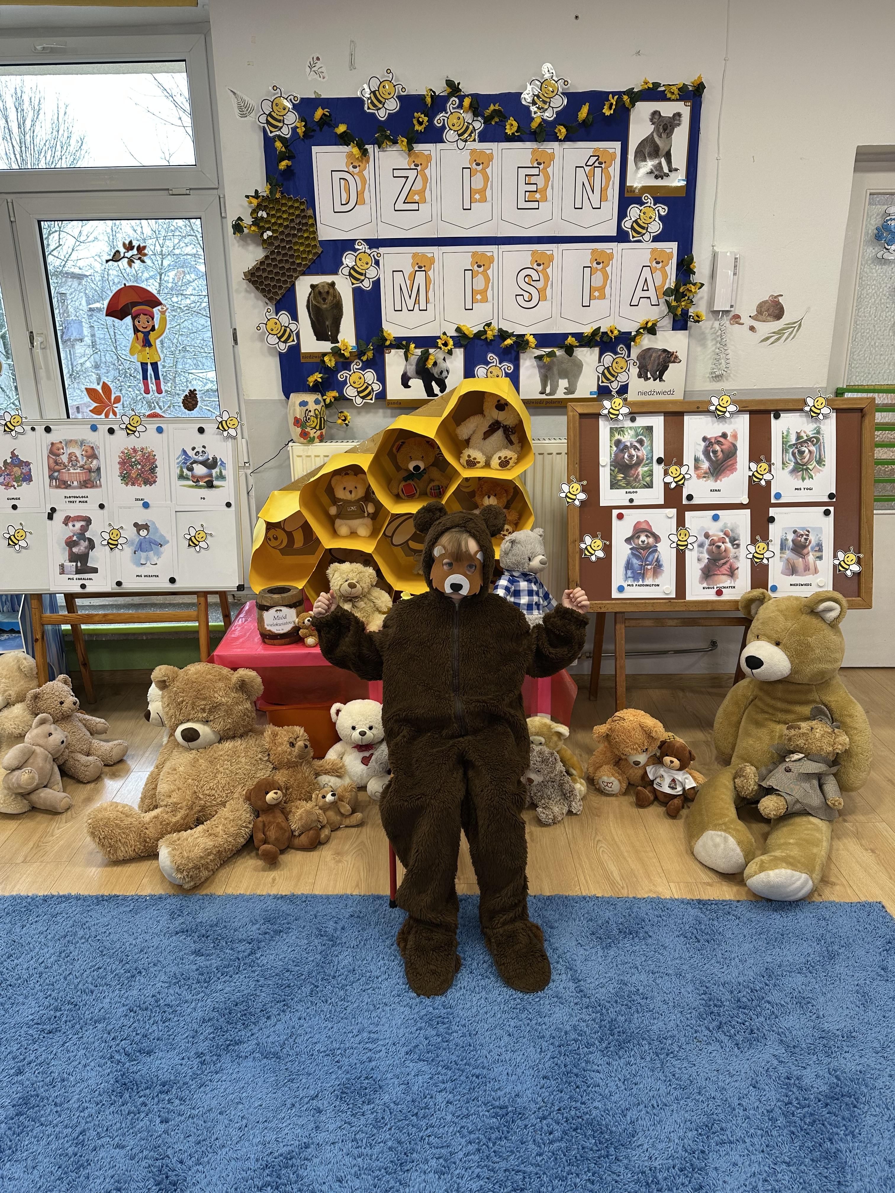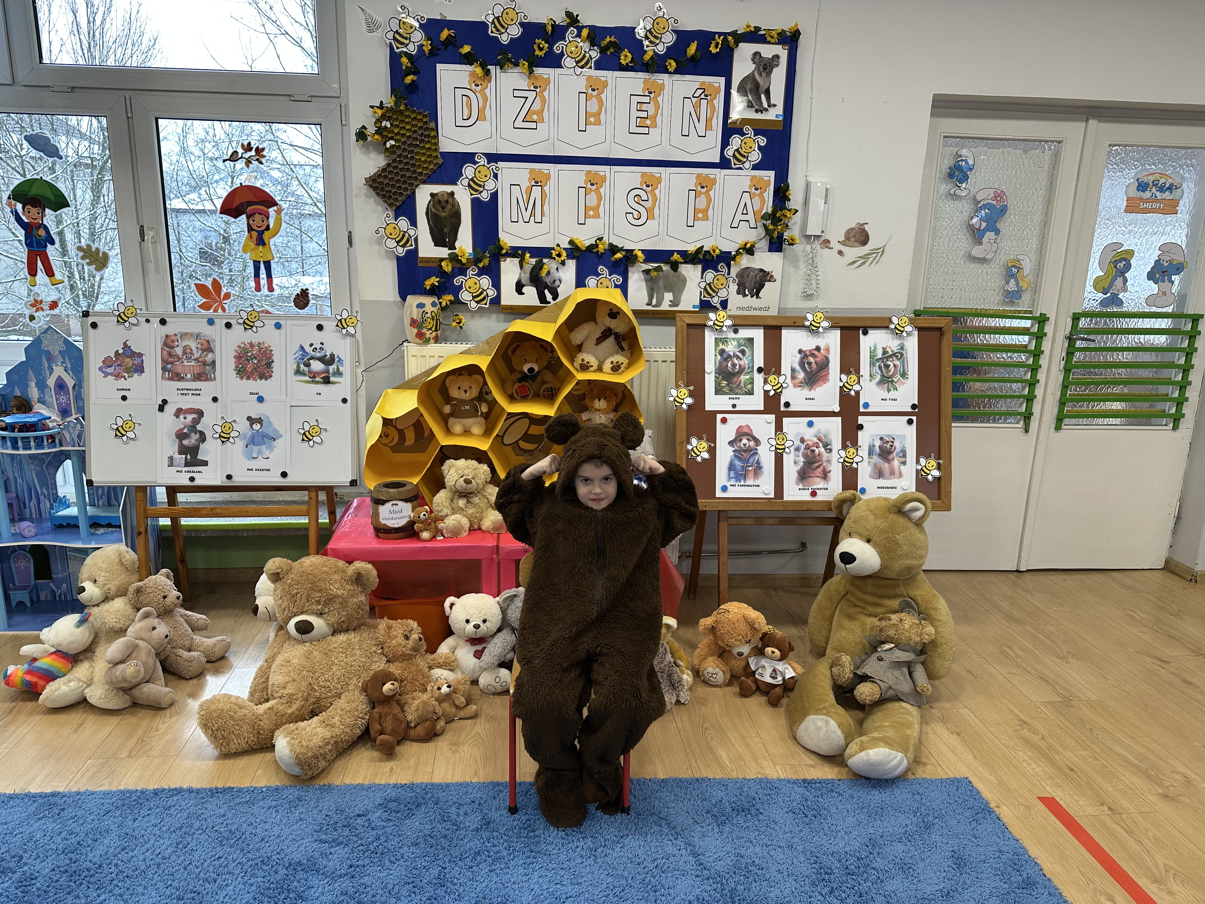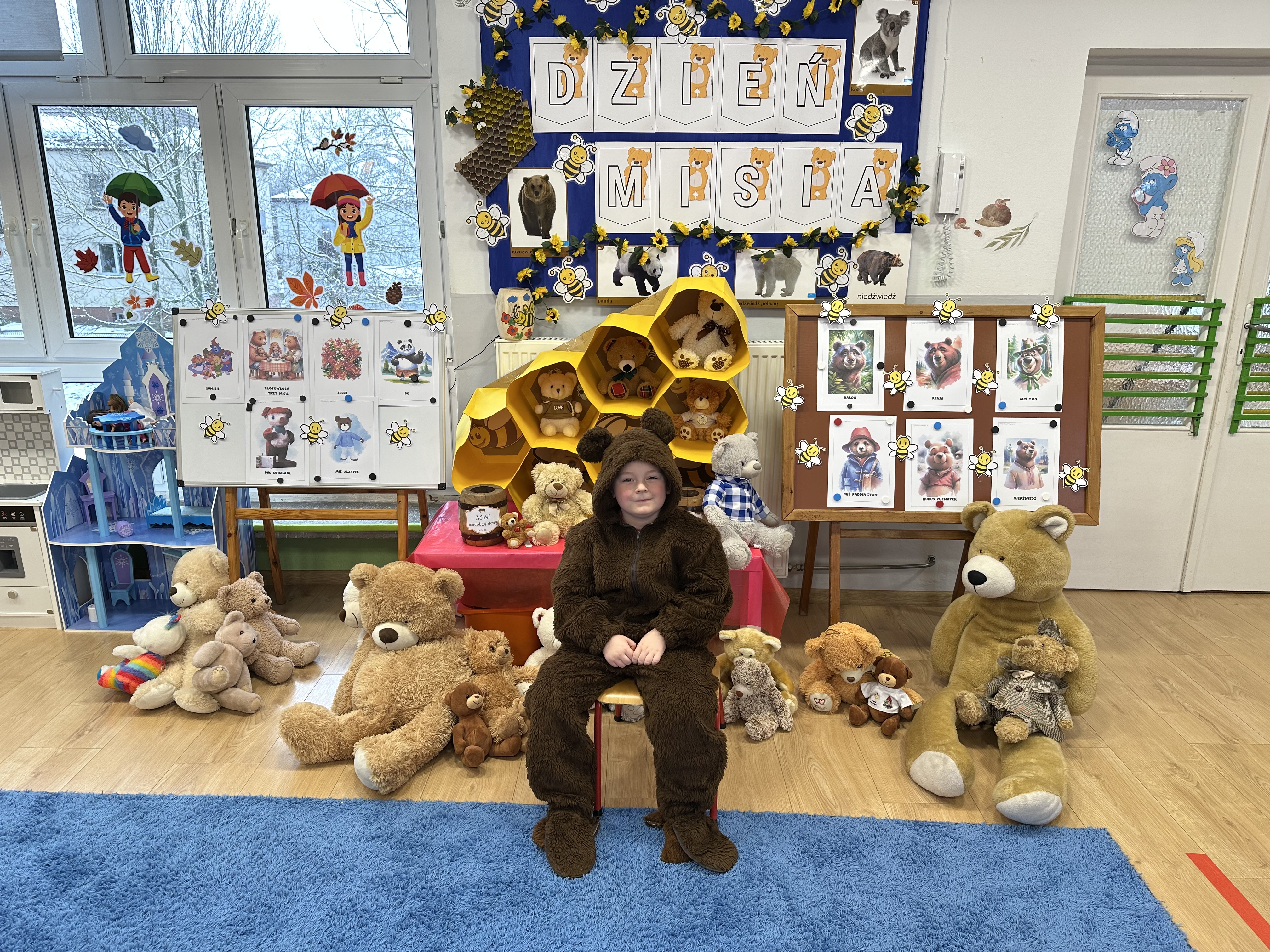 W piątek w naszej grupie świętowaliśmy Dzień Pluszowego Misia. Dzieci przyszły do przedszkola ze swoimi ulubionymi maskotkami, które towarzyszyły im podczas całego dnia zajęć i zabaw. Po śniadaniu przedszkolaki obejrzały film edukacyjny wprowadzający w tematykę święta. Następnie brały udział w zabawach kołowych, takich jak „Stary niedźwiedź” oraz „Jedna łapka, druga łapka”. Podczas zajęć dydaktycznych dzieci doskonaliły również umiejętności matematyczne – klasyfikowały misie według kolorów, układały je od największego do najmniejszego, a także grały w gry edukacyjne „Misiowe memory” oraz „Misiowy quiz”. Kolejnym punktem programu była zabawa muzyczna „Kto przytuli misia”, która dostarczyła dzieciom wiele radości. Po obiedzie przedszkolaki wybierały teksty literackie o misiach, które następnie czytał nauczyciel. Oglądały również ilustracje misiów znanych z bajek i starały się odgadnąć, z jakich tytułów pochodzą. Nie zabrakło także aktywności ruchowych – dzieci uczestniczyły w zabawach „Podaj misia” i „Przenieś misia”, które zawierały elementy rywalizacji. Dużo radości przyniósł również „Taniec z misiem” wykonywany według wylosowanych wcześniej wskazówek. Na zakończenie dnia każde dziecko wykonało pracę plastyczną „Miś”. Dzień upłynął w atmosferze radości, przytulnych wspomnień i wspólnej zabawy, a pluszowi towarzysze byli tego dnia najważniejszymi gośćmi w przedszkolu.