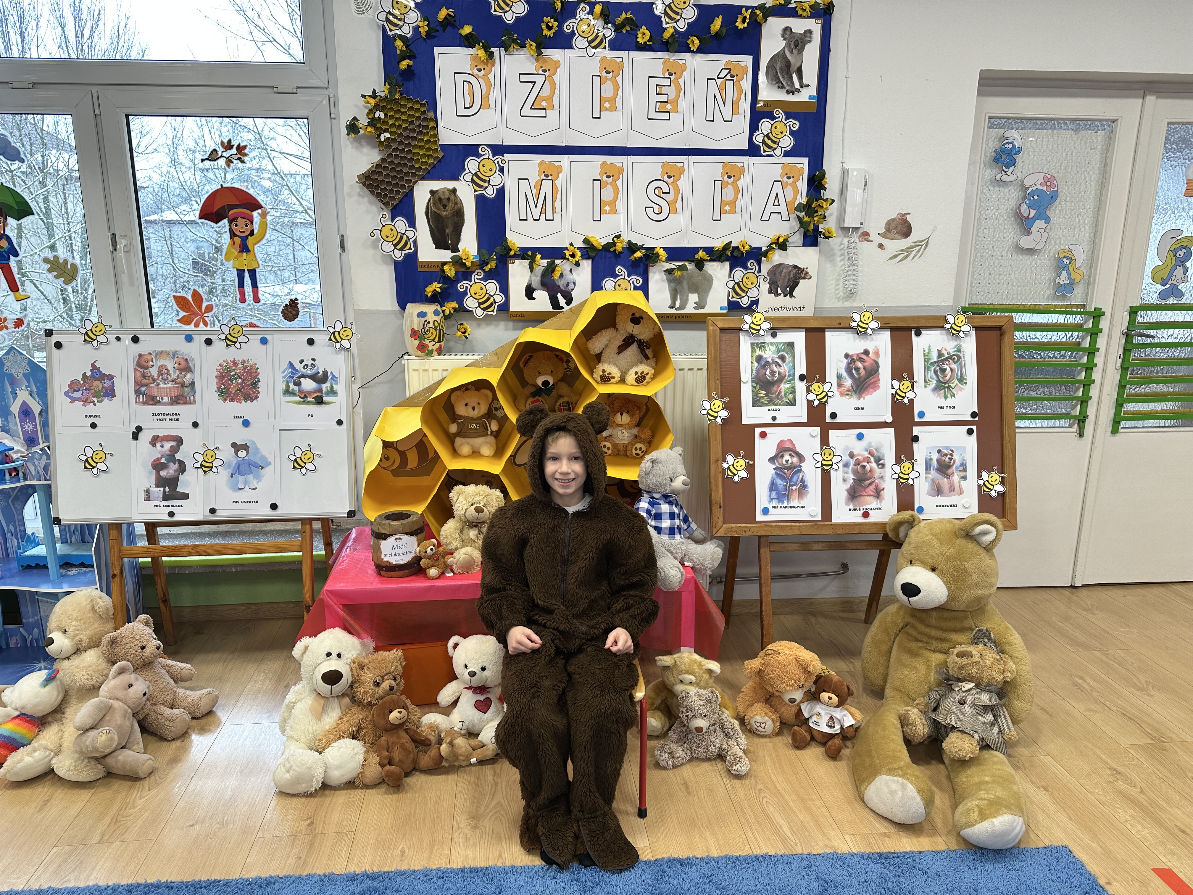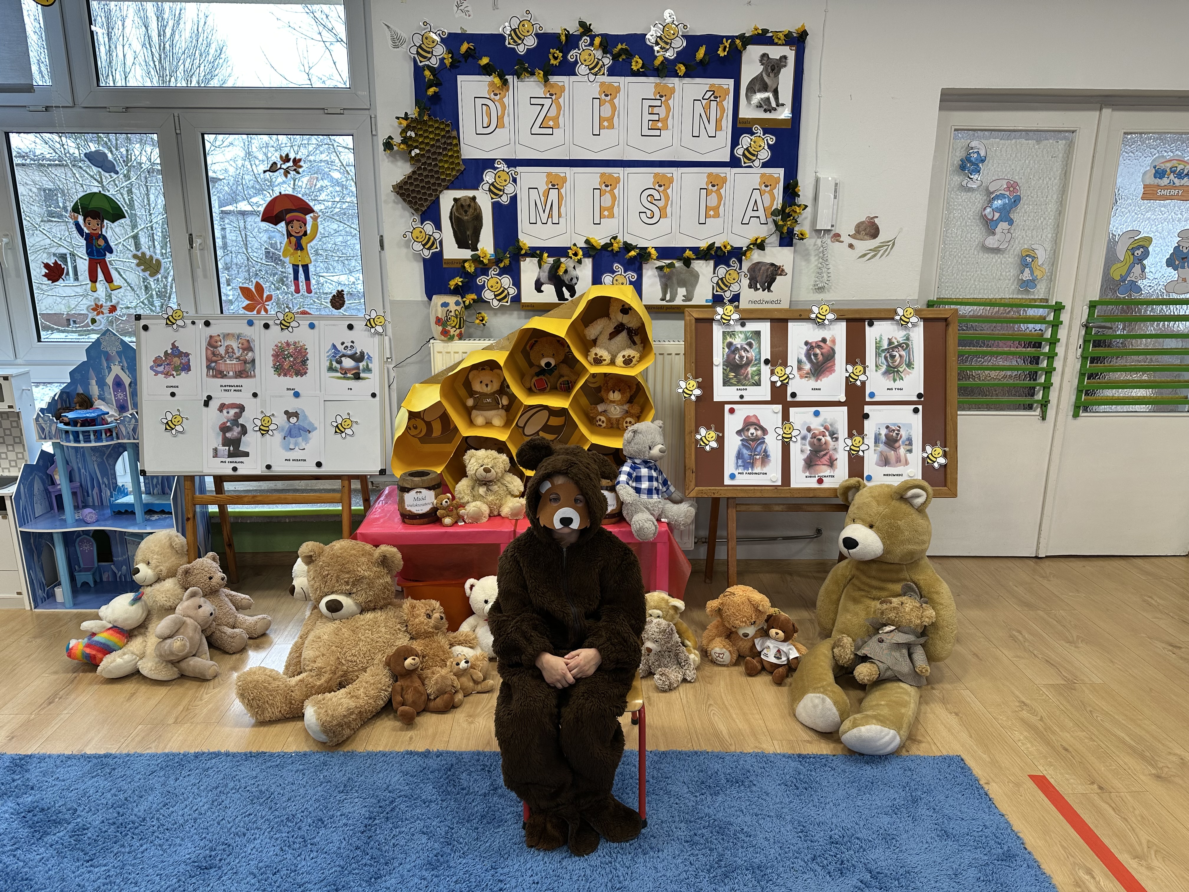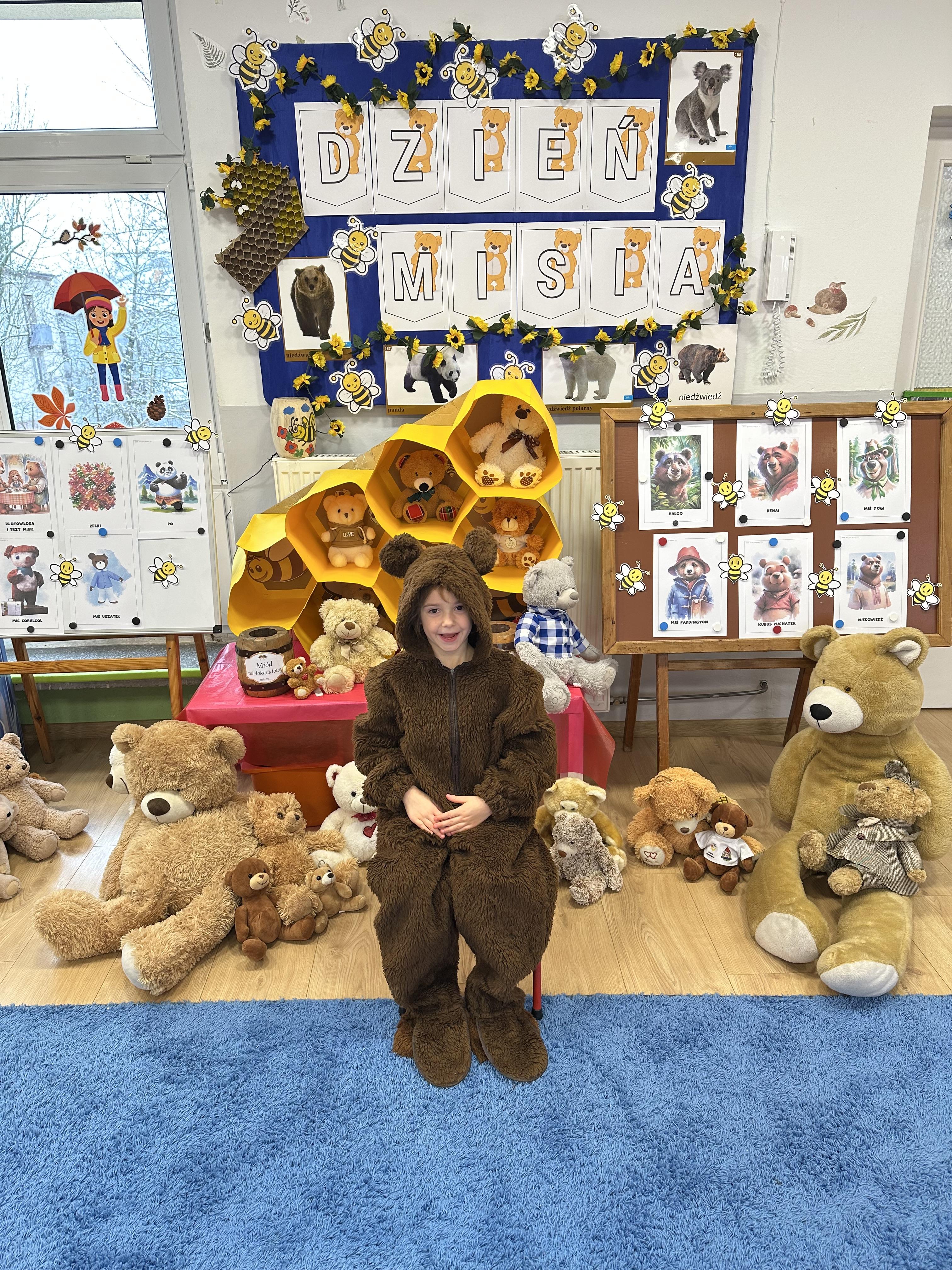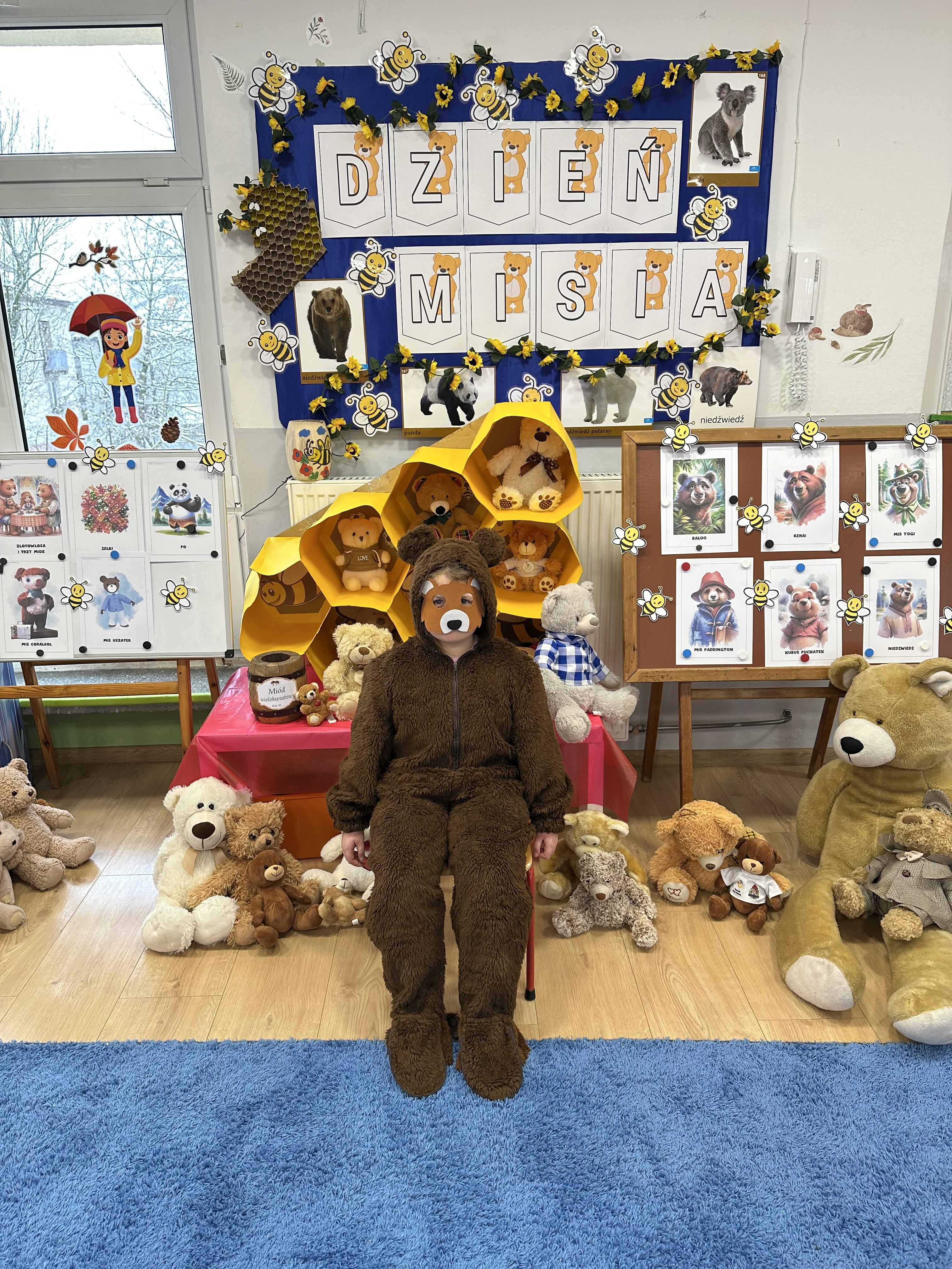 W piątek w naszej grupie świętowaliśmy Dzień Pluszowego Misia. Dzieci przyszły do przedszkola ze swoimi ulubionymi maskotkami, które towarzyszyły im podczas całego dnia zajęć i zabaw. Po śniadaniu przedszkolaki obejrzały film edukacyjny wprowadzający w tematykę święta. Następnie brały udział w zabawach kołowych, takich jak „Stary niedźwiedź” oraz „Jedna łapka, druga łapka”. Podczas zajęć dydaktycznych dzieci doskonaliły również umiejętności matematyczne – klasyfikowały misie według kolorów, układały je od największego do najmniejszego, a także grały w gry edukacyjne „Misiowe memory” oraz „Misiowy quiz”. Kolejnym punktem programu była zabawa muzyczna „Kto przytuli misia”, która dostarczyła dzieciom wiele radości. Po obiedzie przedszkolaki wybierały teksty literackie o misiach, które następnie czytał nauczyciel. Oglądały również ilustracje misiów znanych z bajek i starały się odgadnąć, z jakich tytułów pochodzą. Nie zabrakło także aktywności ruchowych – dzieci uczestniczyły w zabawach „Podaj misia” i „Przenieś misia”, które zawierały elementy rywalizacji. Dużo radości przyniósł również „Taniec z misiem” wykonywany według wylosowanych wcześniej wskazówek. Na zakończenie dnia każde dziecko wykonało pracę plastyczną „Miś”. Dzień upłynął w atmosferze radości, przytulnych wspomnień i wspólnej zabawy, a pluszowi towarzysze byli tego dnia najważniejszymi gośćmi w przedszkolu.