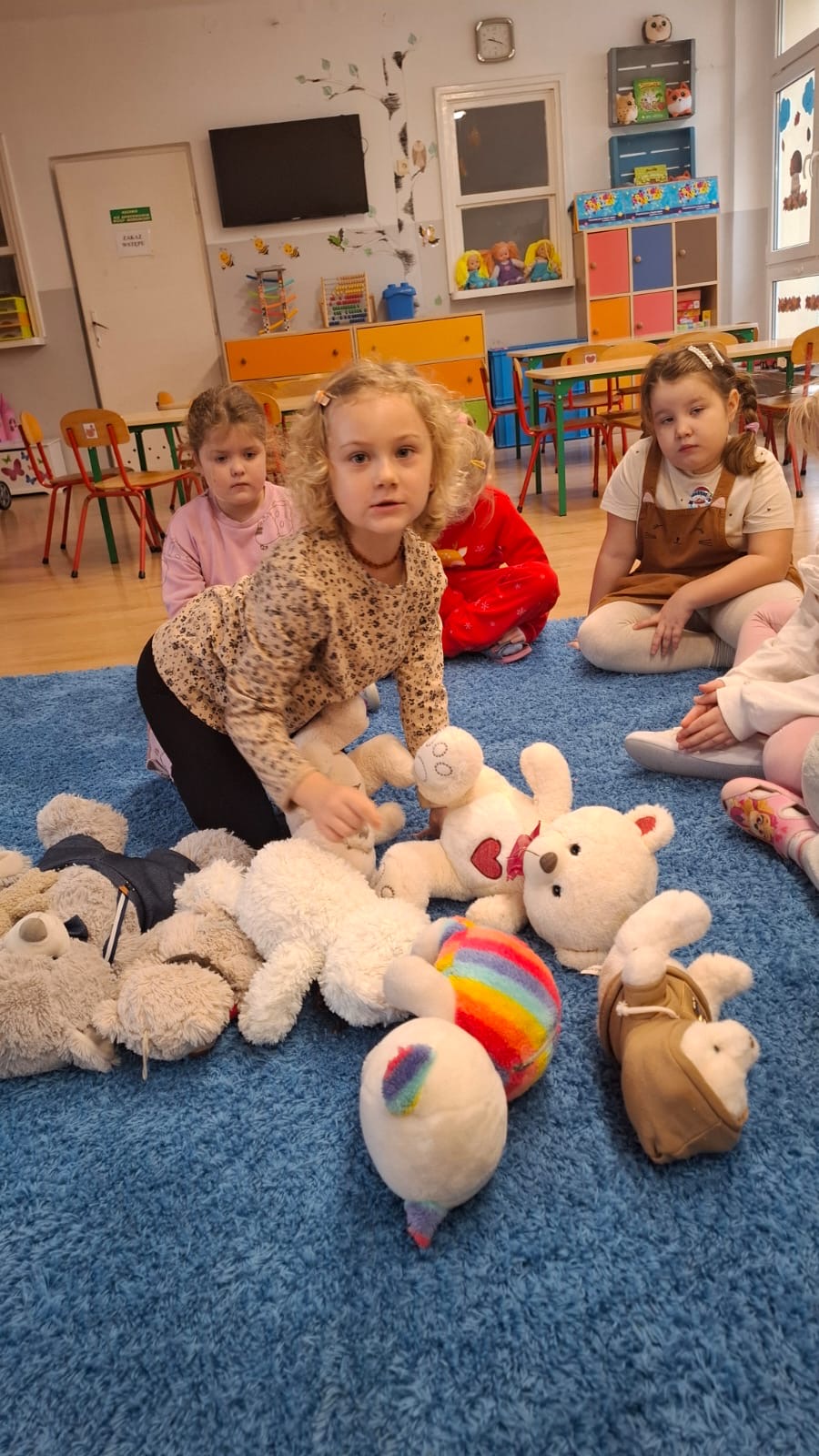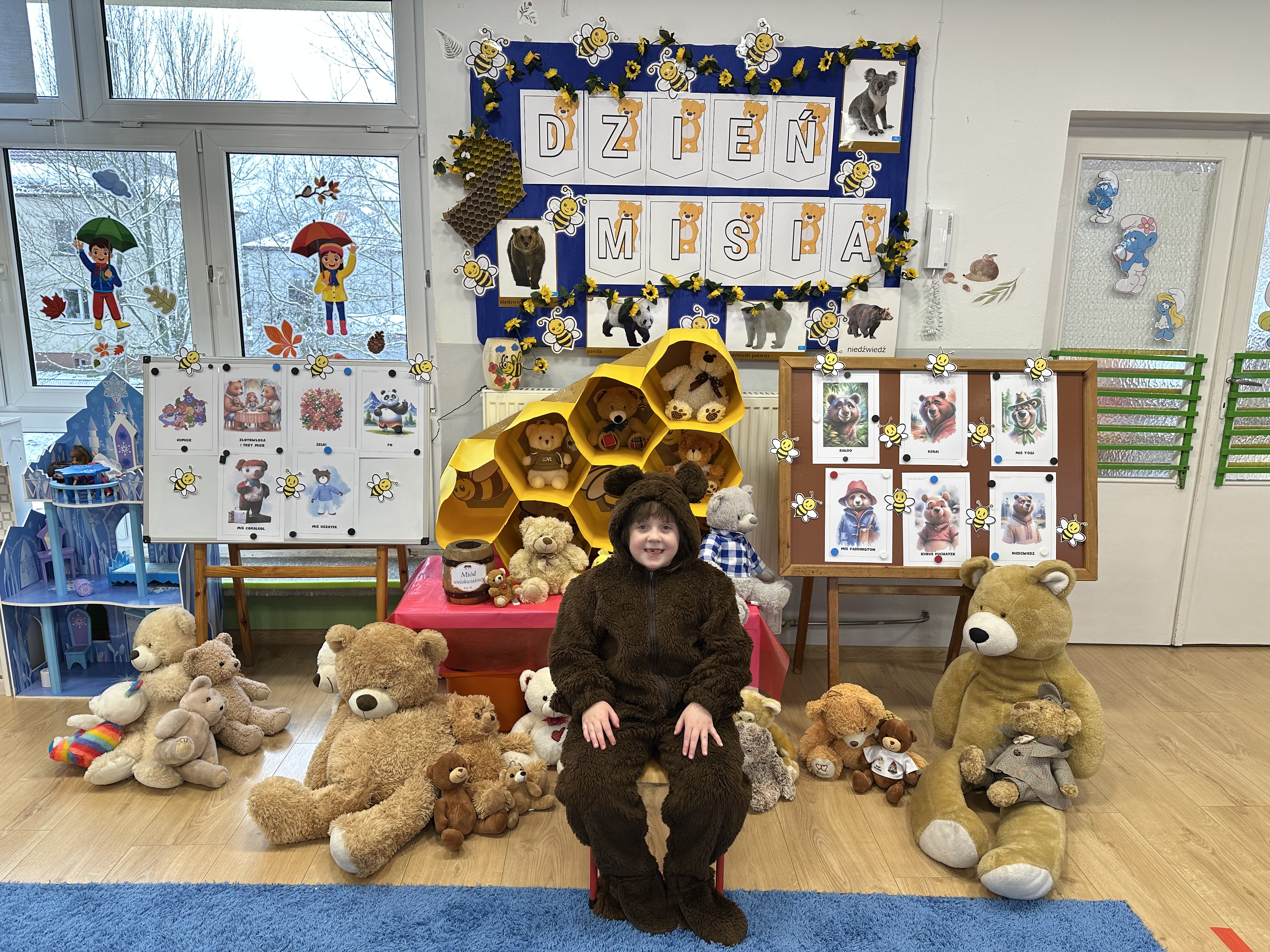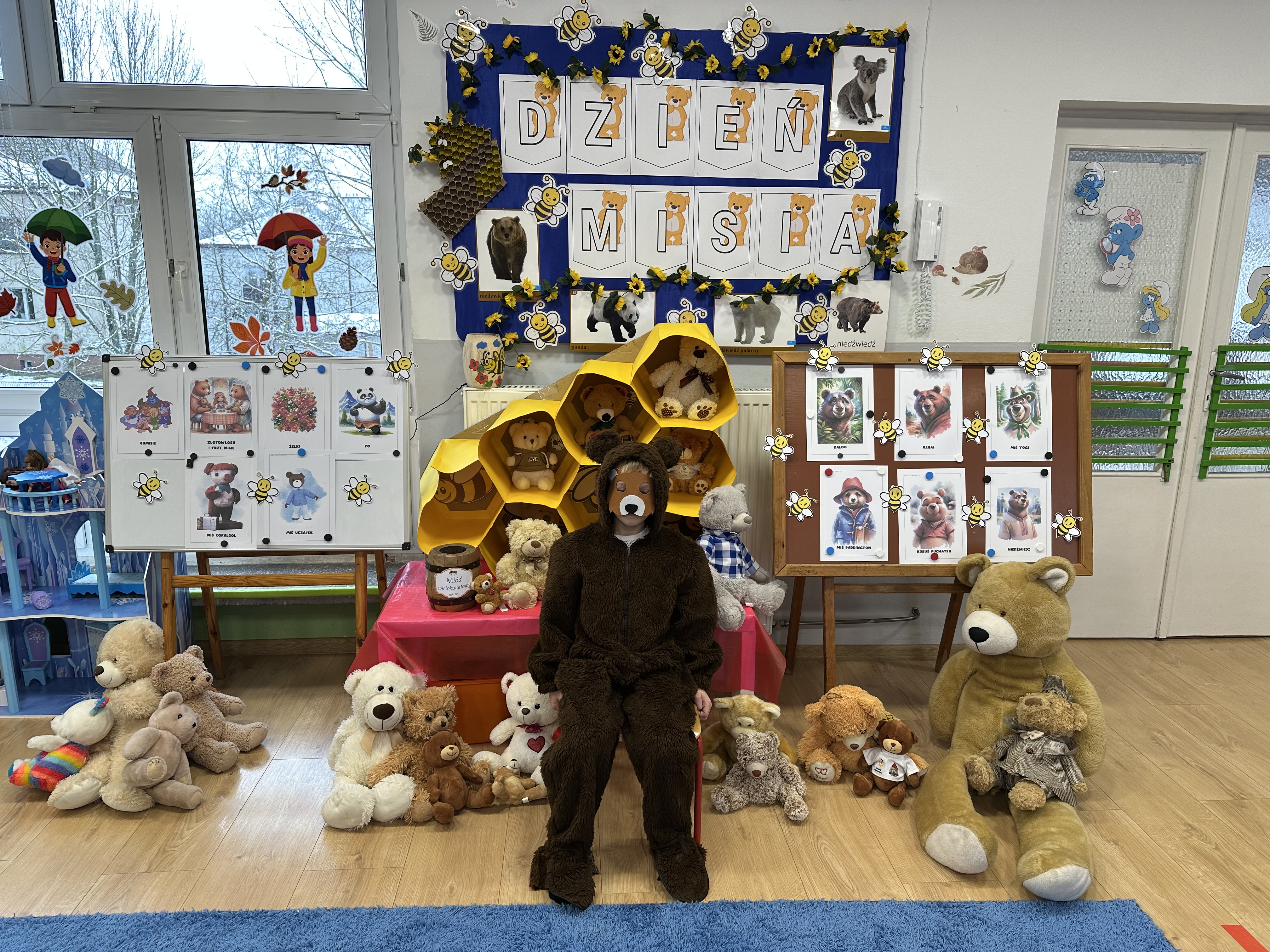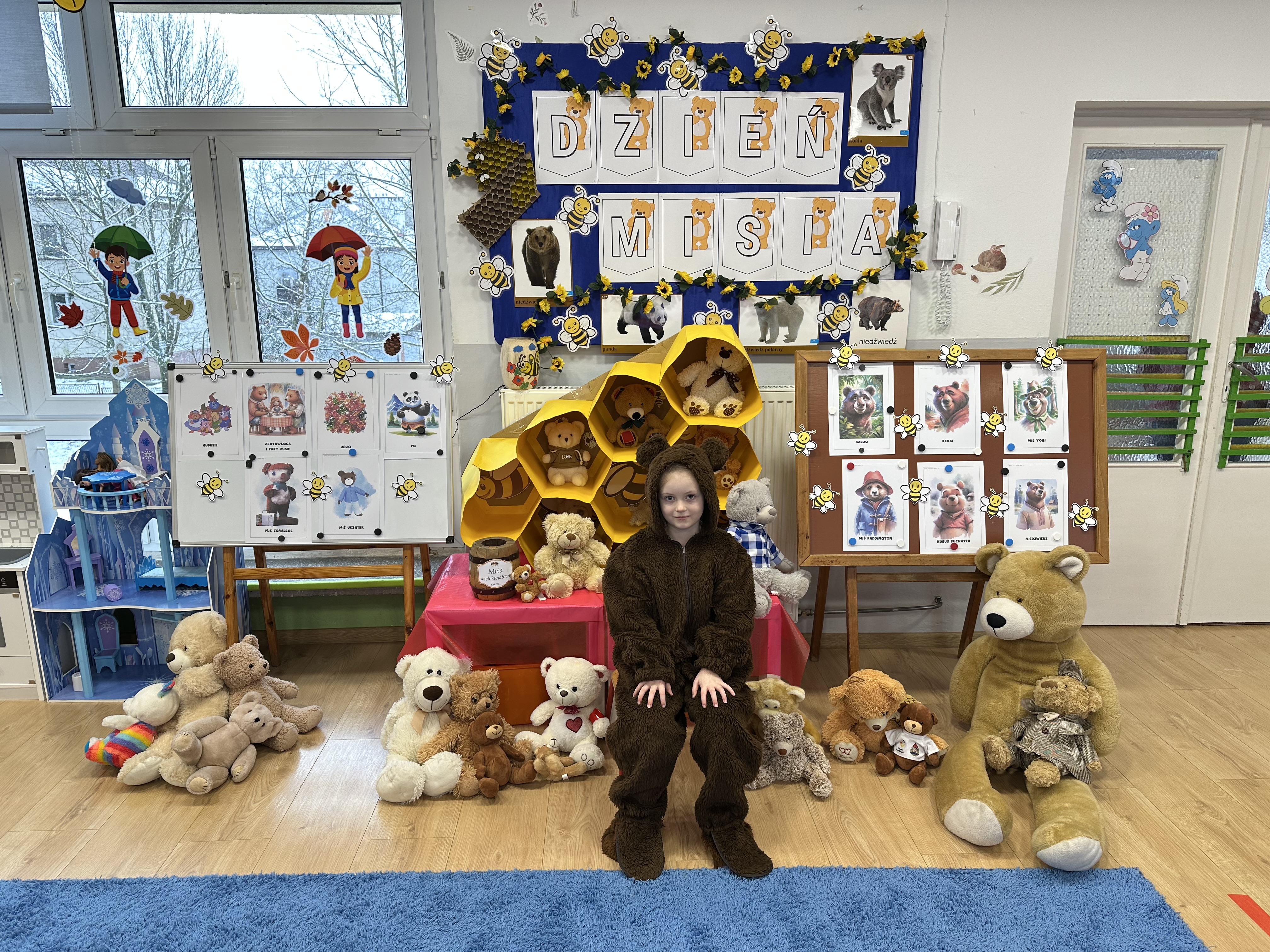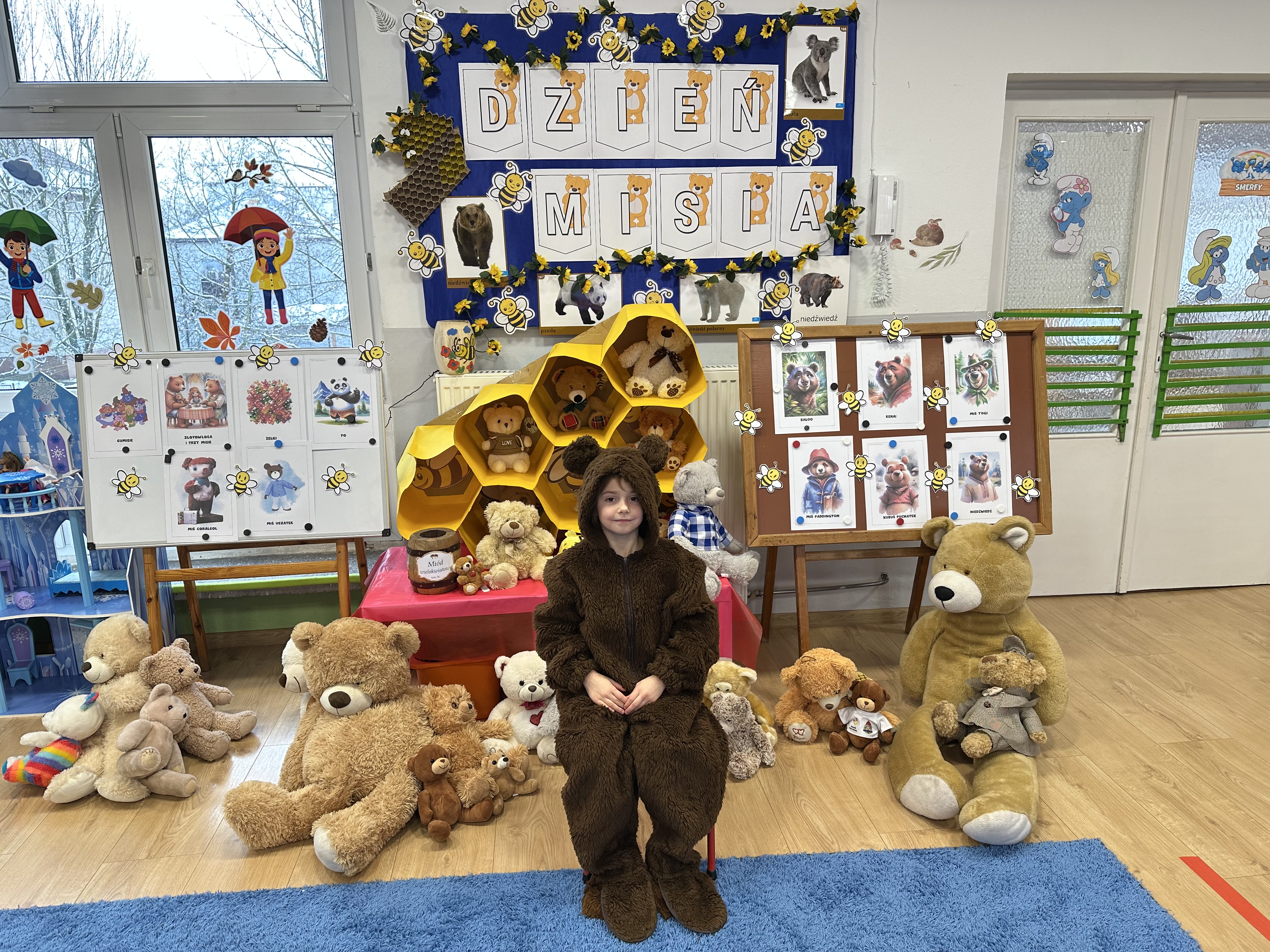 W piątek w naszej grupie świętowaliśmy Dzień Pluszowego Misia. Dzieci przyszły do przedszkola ze swoimi ulubionymi maskotkami, które towarzyszyły im podczas całego dnia zajęć i zabaw. Po śniadaniu przedszkolaki obejrzały film edukacyjny wprowadzający w tematykę święta. Następnie brały udział w zabawach kołowych, takich jak „Stary niedźwiedź” oraz „Jedna łapka, druga łapka”. Podczas zajęć dydaktycznych dzieci doskonaliły również umiejętności matematyczne – klasyfikowały misie według kolorów, układały je od największego do najmniejszego, a także grały w gry edukacyjne „Misiowe memory” oraz „Misiowy quiz”. Kolejnym punktem programu była zabawa muzyczna „Kto przytuli misia”, która dostarczyła dzieciom wiele radości. Po obiedzie przedszkolaki wybierały teksty literackie o misiach, które następnie czytał nauczyciel. Oglądały również ilustracje misiów znanych z bajek i starały się odgadnąć, z jakich tytułów pochodzą. Nie zabrakło także aktywności ruchowych – dzieci uczestniczyły w zabawach „Podaj misia” i „Przenieś misia”, które zawierały elementy rywalizacji. Dużo radości przyniósł również „Taniec z misiem” wykonywany według wylosowanych wcześniej wskazówek. Na zakończenie dnia każde dziecko wykonało pracę plastyczną „Miś”. Dzień upłynął w atmosferze radości, przytulnych wspomnień i wspólnej zabawy, a pluszowi towarzysze byli tego dnia najważniejszymi gośćmi w przedszkolu.