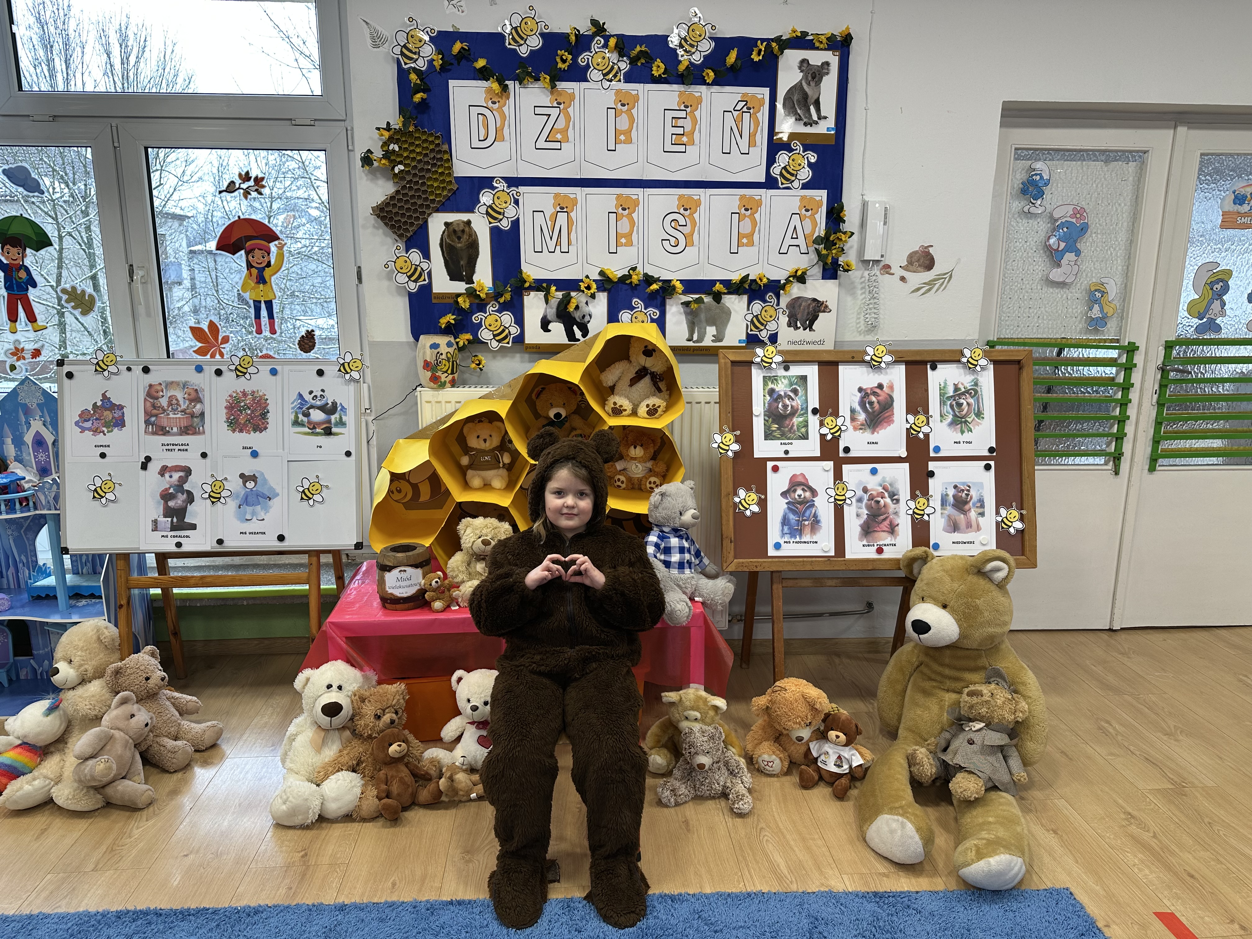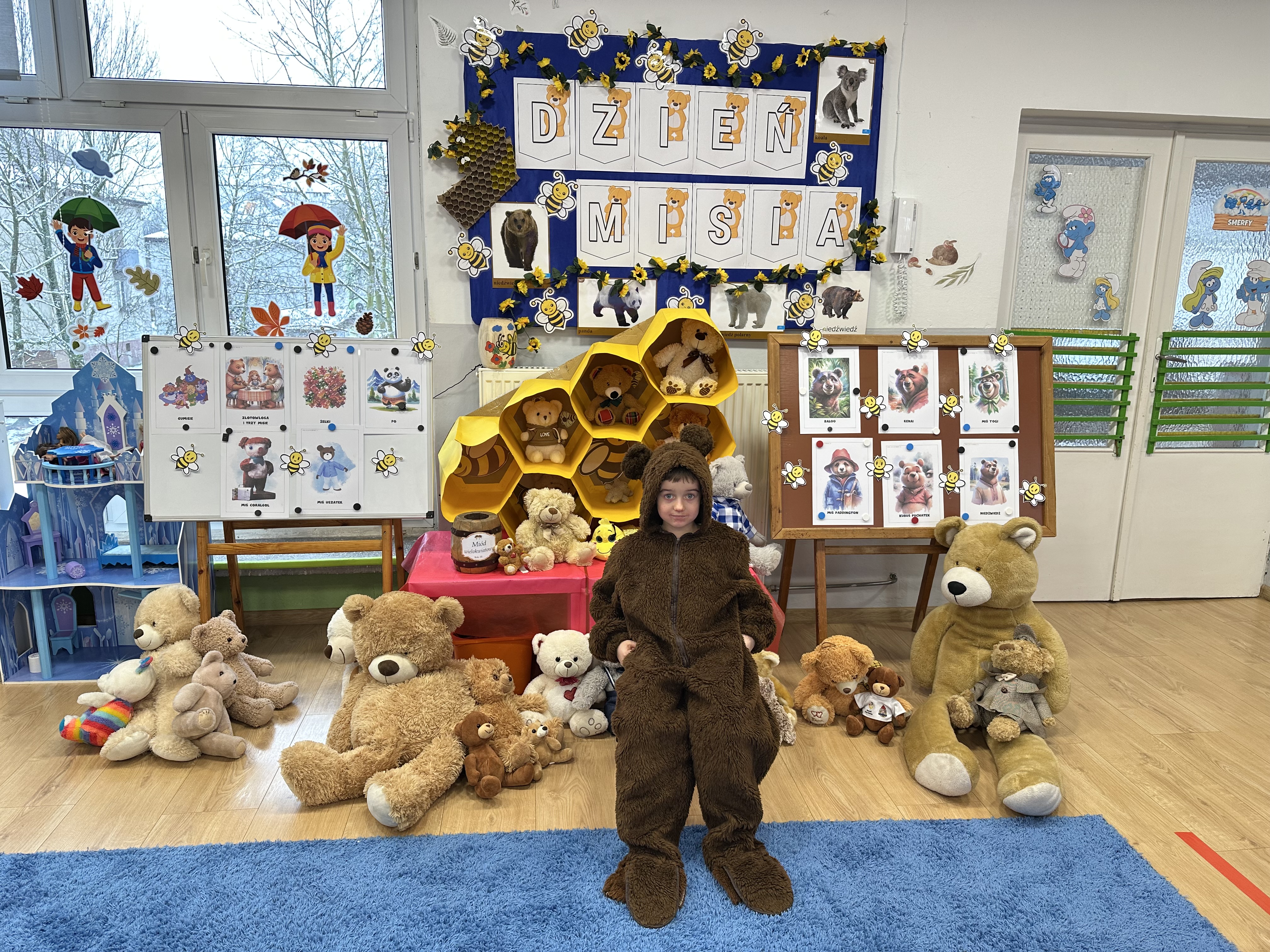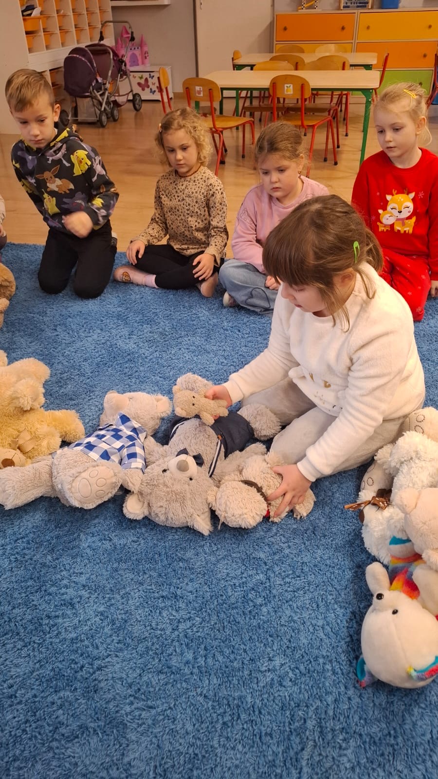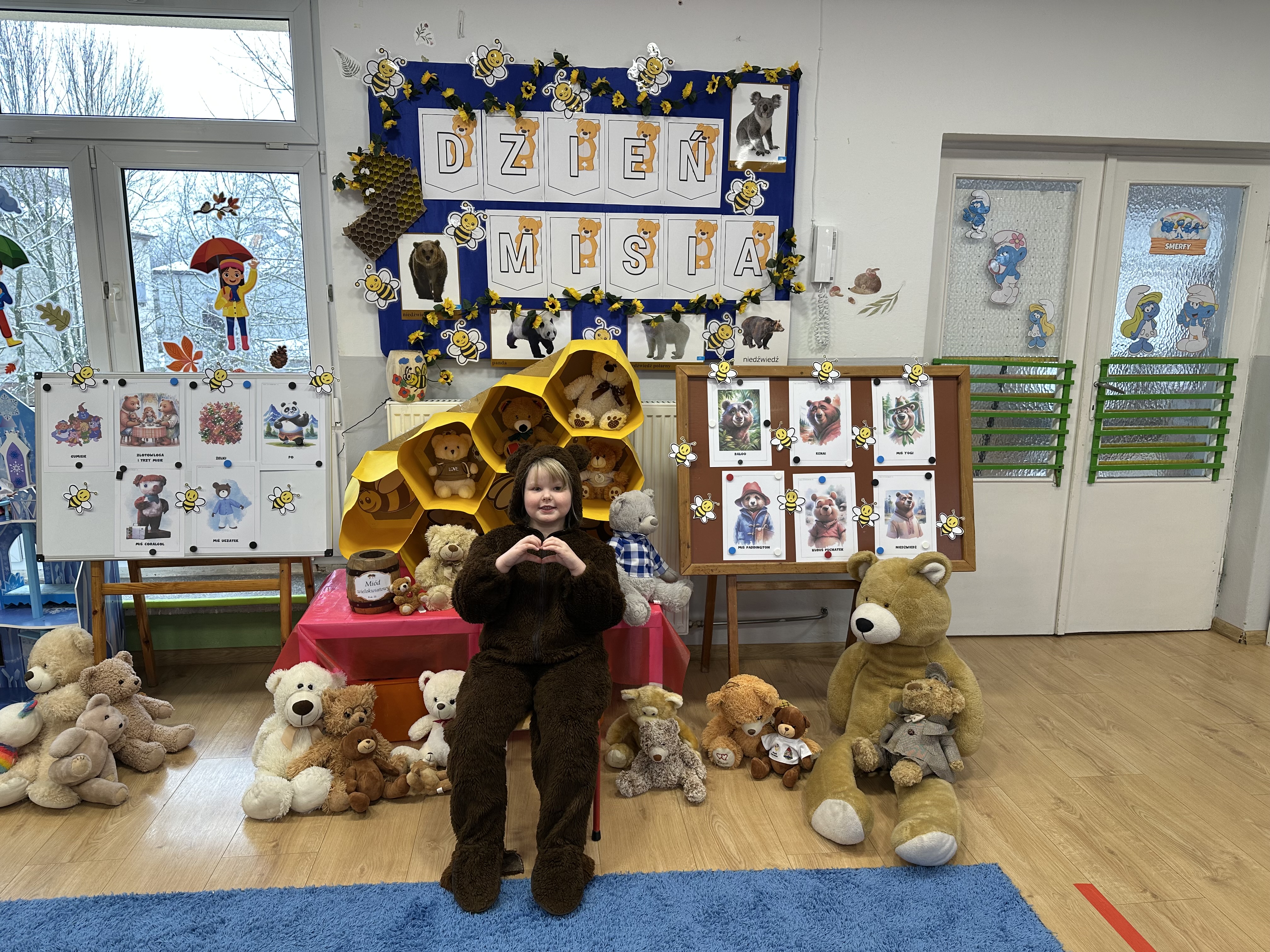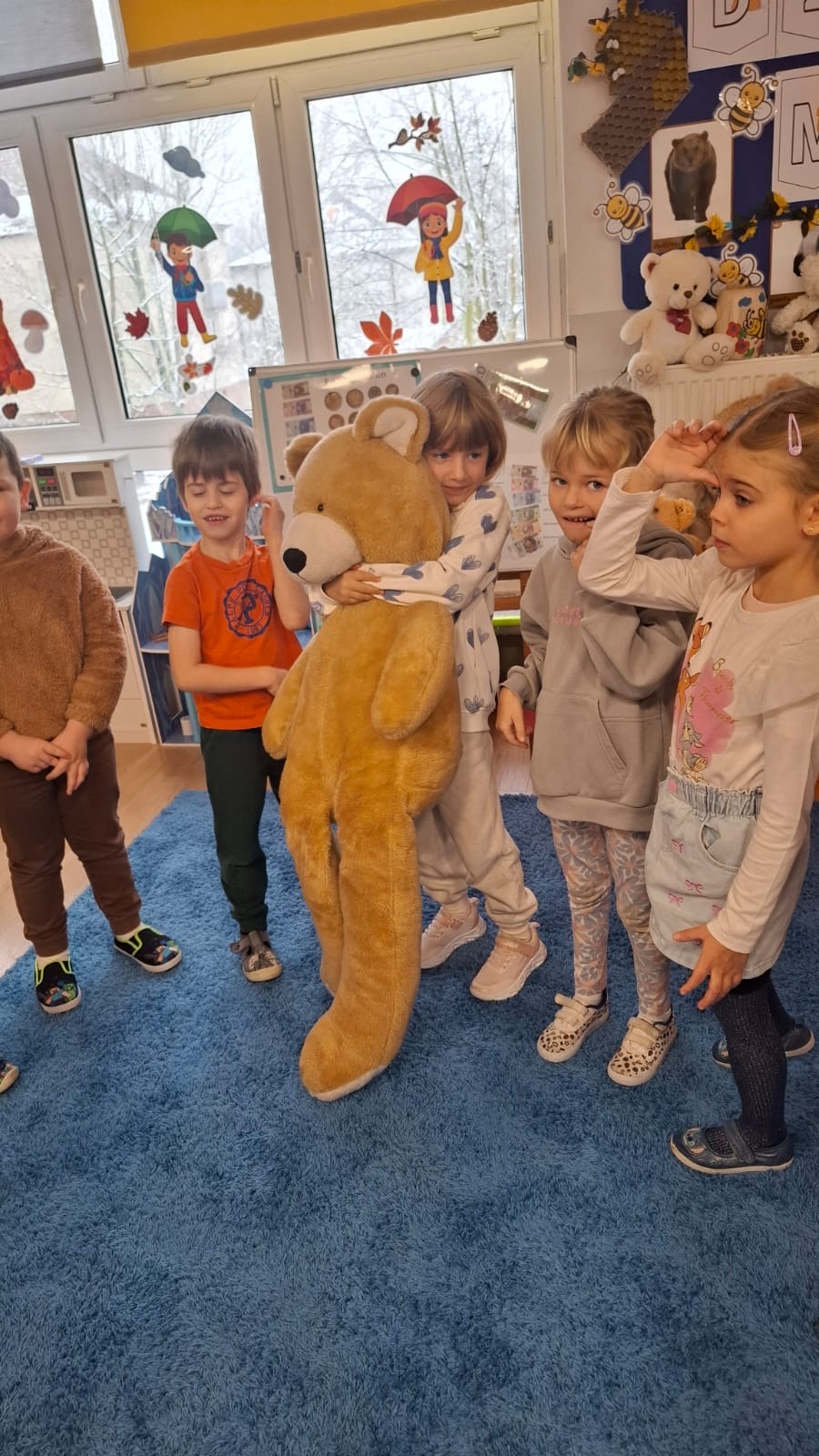 W piątek w naszej grupie świętowaliśmy Dzień Pluszowego Misia. Dzieci przyszły do przedszkola ze swoimi ulubionymi maskotkami, które towarzyszyły im podczas całego dnia zajęć i zabaw. Po śniadaniu przedszkolaki obejrzały film edukacyjny wprowadzający w tematykę święta. Następnie brały udział w zabawach kołowych, takich jak „Stary niedźwiedź” oraz „Jedna łapka, druga łapka”. Podczas zajęć dydaktycznych dzieci doskonaliły również umiejętności matematyczne – klasyfikowały misie według kolorów, układały je od największego do najmniejszego, a także grały w gry edukacyjne „Misiowe memory” oraz „Misiowy quiz”. Kolejnym punktem programu była zabawa muzyczna „Kto przytuli misia”, która dostarczyła dzieciom wiele radości. Po obiedzie przedszkolaki wybierały teksty literackie o misiach, które następnie czytał nauczyciel. Oglądały również ilustracje misiów znanych z bajek i starały się odgadnąć, z jakich tytułów pochodzą. Nie zabrakło także aktywności ruchowych – dzieci uczestniczyły w zabawach „Podaj misia” i „Przenieś misia”, które zawierały elementy rywalizacji. Dużo radości przyniósł również „Taniec z misiem” wykonywany według wylosowanych wcześniej wskazówek. Na zakończenie dnia każde dziecko wykonało pracę plastyczną „Miś”. Dzień upłynął w atmosferze radości, przytulnych wspomnień i wspólnej zabawy, a pluszowi towarzysze byli tego dnia najważniejszymi gośćmi w przedszkolu.