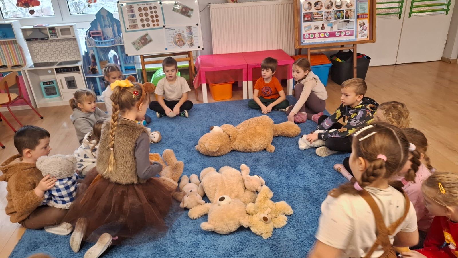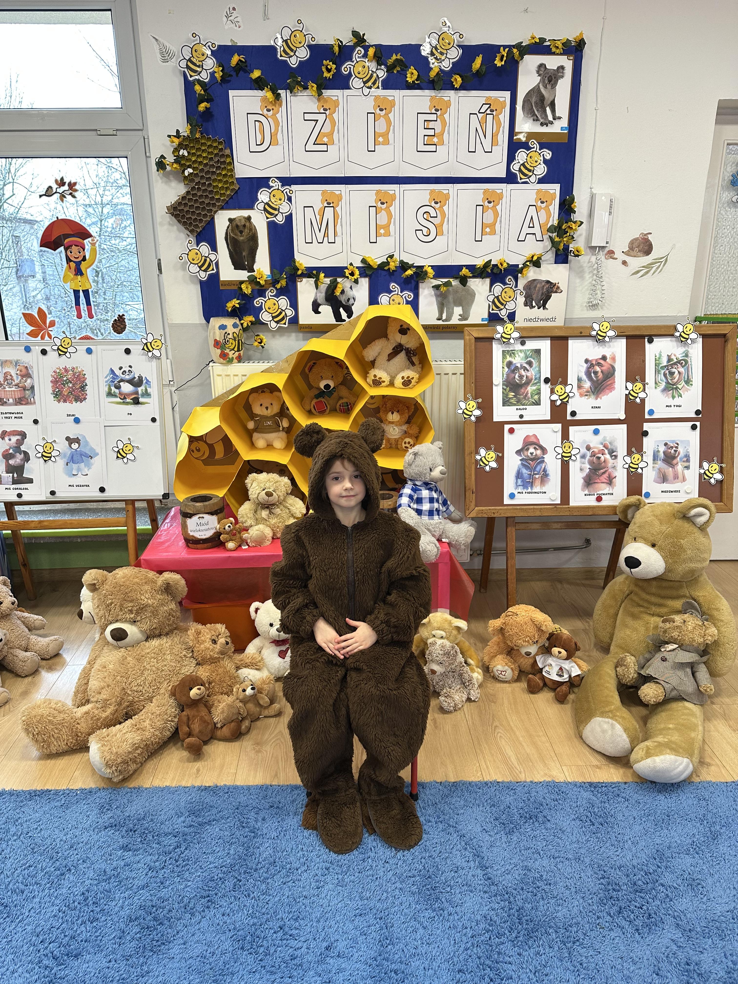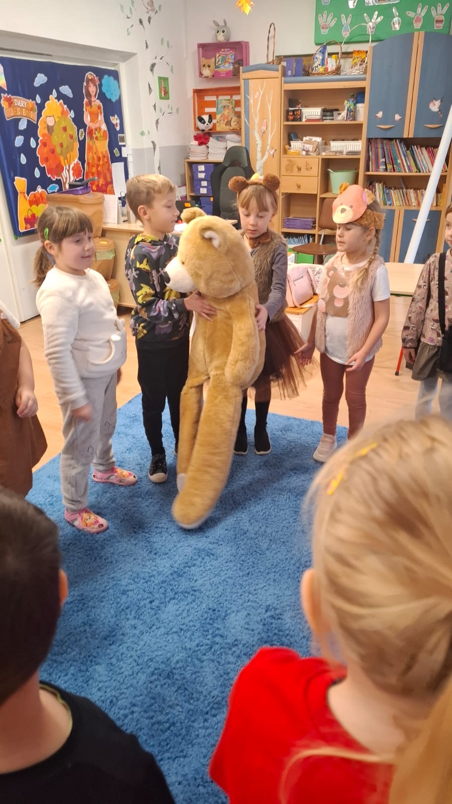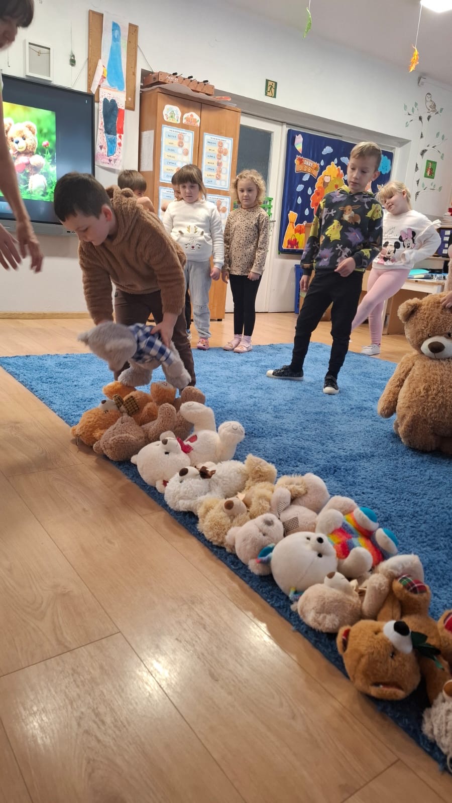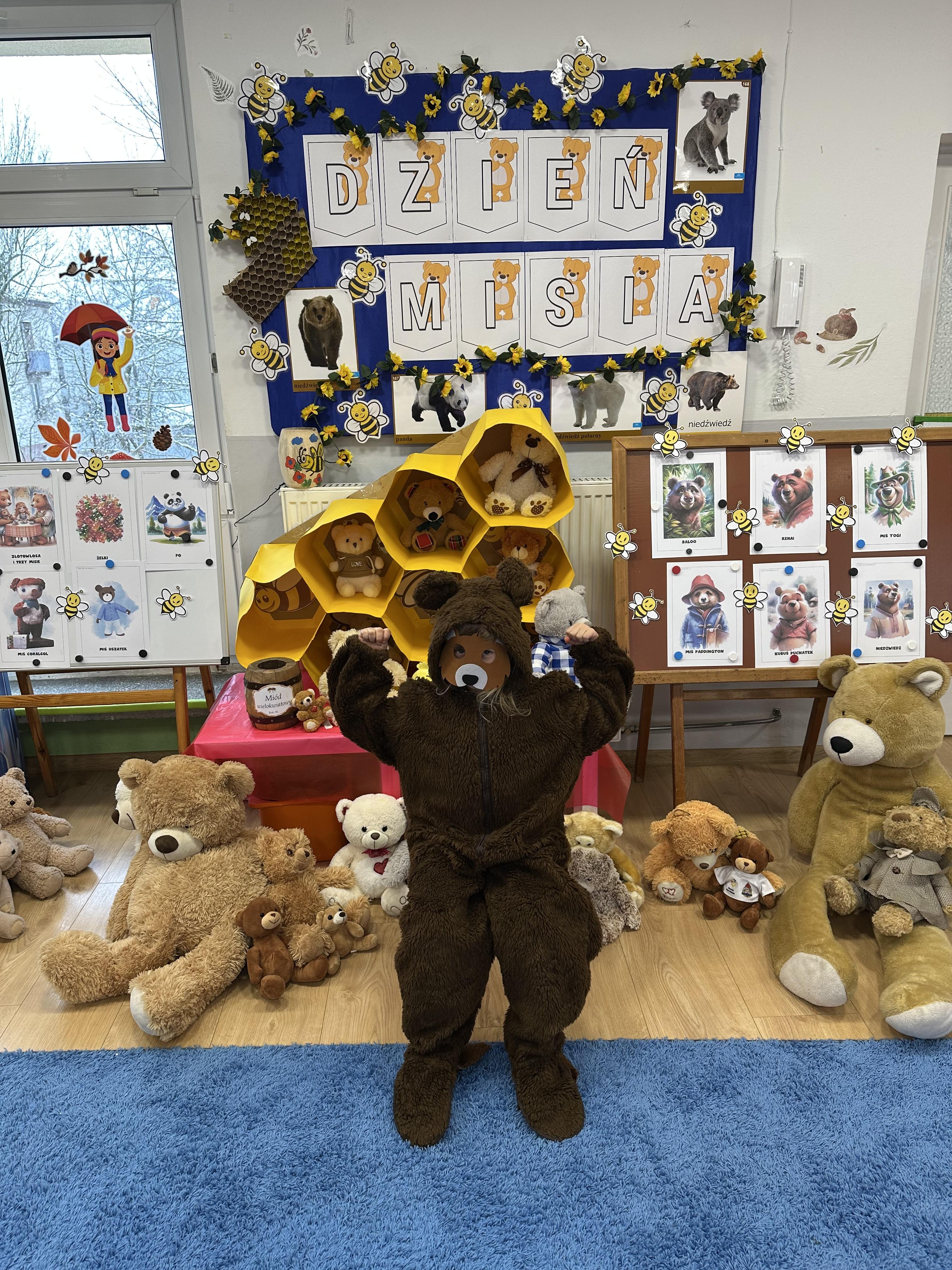 W piątek w naszej grupie świętowaliśmy Dzień Pluszowego Misia. Dzieci przyszły do przedszkola ze swoimi ulubionymi maskotkami, które towarzyszyły im podczas całego dnia zajęć i zabaw. Po śniadaniu przedszkolaki obejrzały film edukacyjny wprowadzający w tematykę święta. Następnie brały udział w zabawach kołowych, takich jak „Stary niedźwiedź” oraz „Jedna łapka, druga łapka”. Podczas zajęć dydaktycznych dzieci doskonaliły również umiejętności matematyczne – klasyfikowały misie według kolorów, układały je od największego do najmniejszego, a także grały w gry edukacyjne „Misiowe memory” oraz „Misiowy quiz”. Kolejnym punktem programu była zabawa muzyczna „Kto przytuli misia”, która dostarczyła dzieciom wiele radości. Po obiedzie przedszkolaki wybierały teksty literackie o misiach, które następnie czytał nauczyciel. Oglądały również ilustracje misiów znanych z bajek i starały się odgadnąć, z jakich tytułów pochodzą. Nie zabrakło także aktywności ruchowych – dzieci uczestniczyły w zabawach „Podaj misia” i „Przenieś misia”, które zawierały elementy rywalizacji. Dużo radości przyniósł również „Taniec z misiem” wykonywany według wylosowanych wcześniej wskazówek. Na zakończenie dnia każde dziecko wykonało pracę plastyczną „Miś”. Dzień upłynął w atmosferze radości, przytulnych wspomnień i wspólnej zabawy, a pluszowi towarzysze byli tego dnia najważniejszymi gośćmi w przedszkolu.