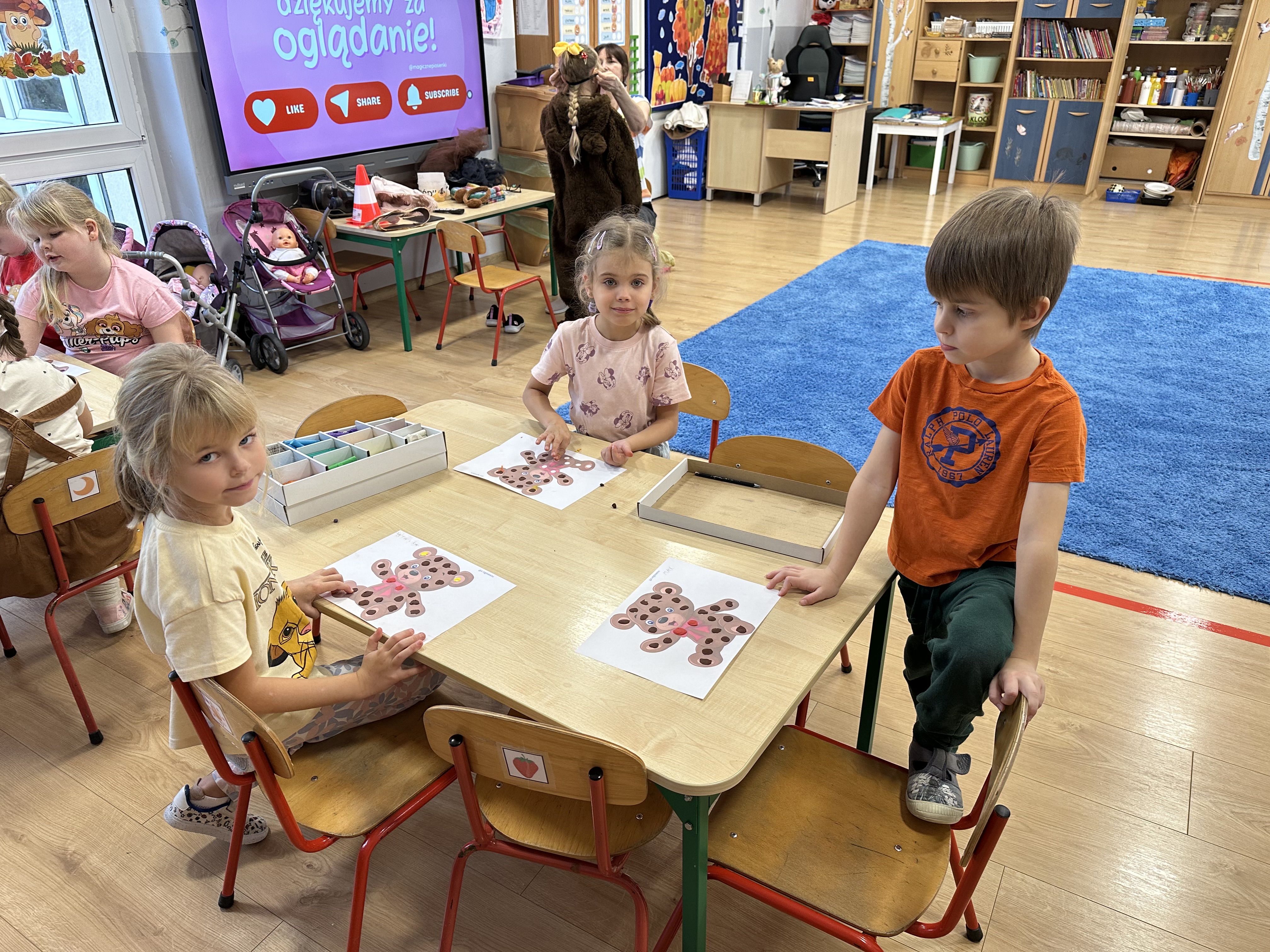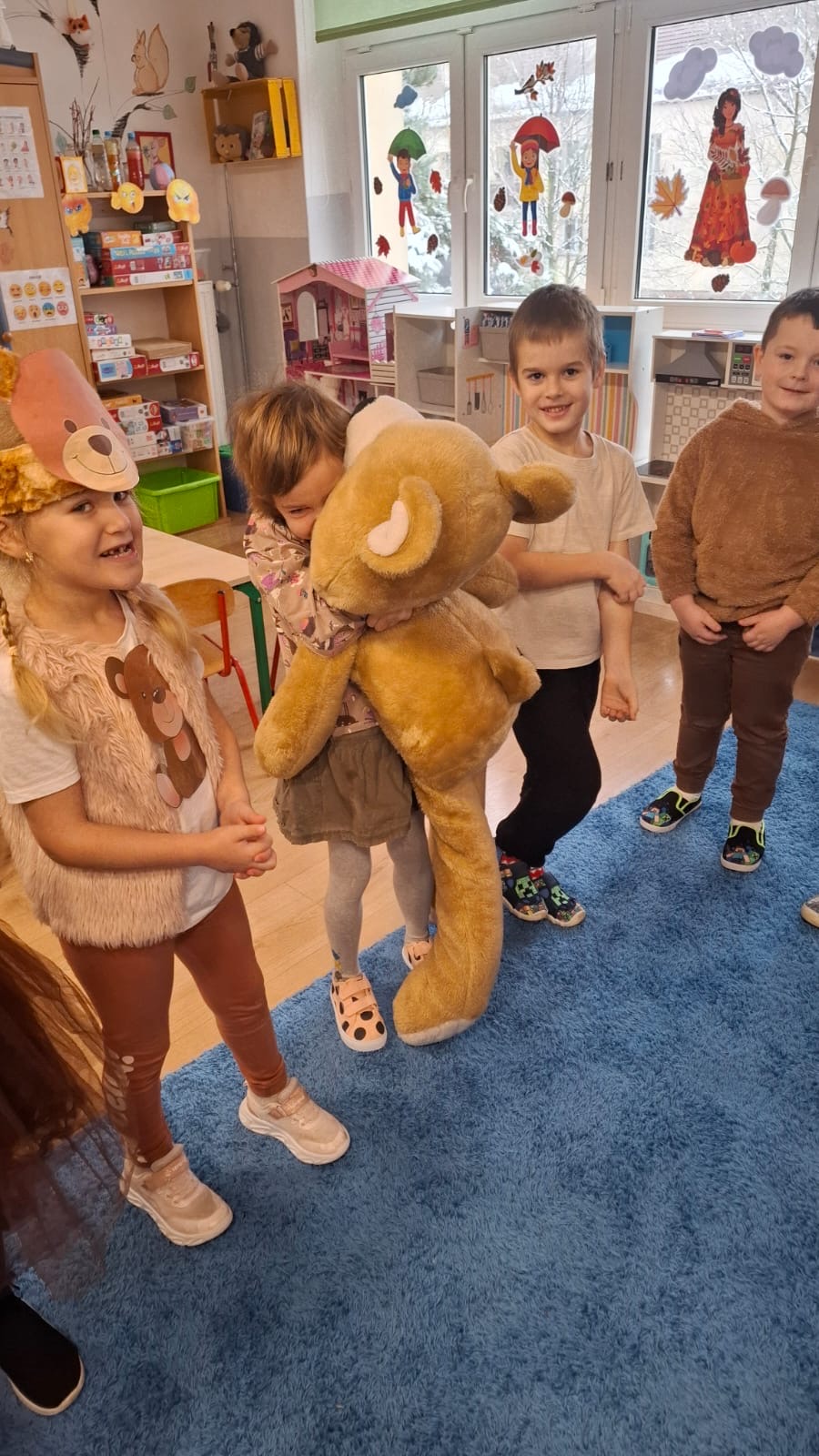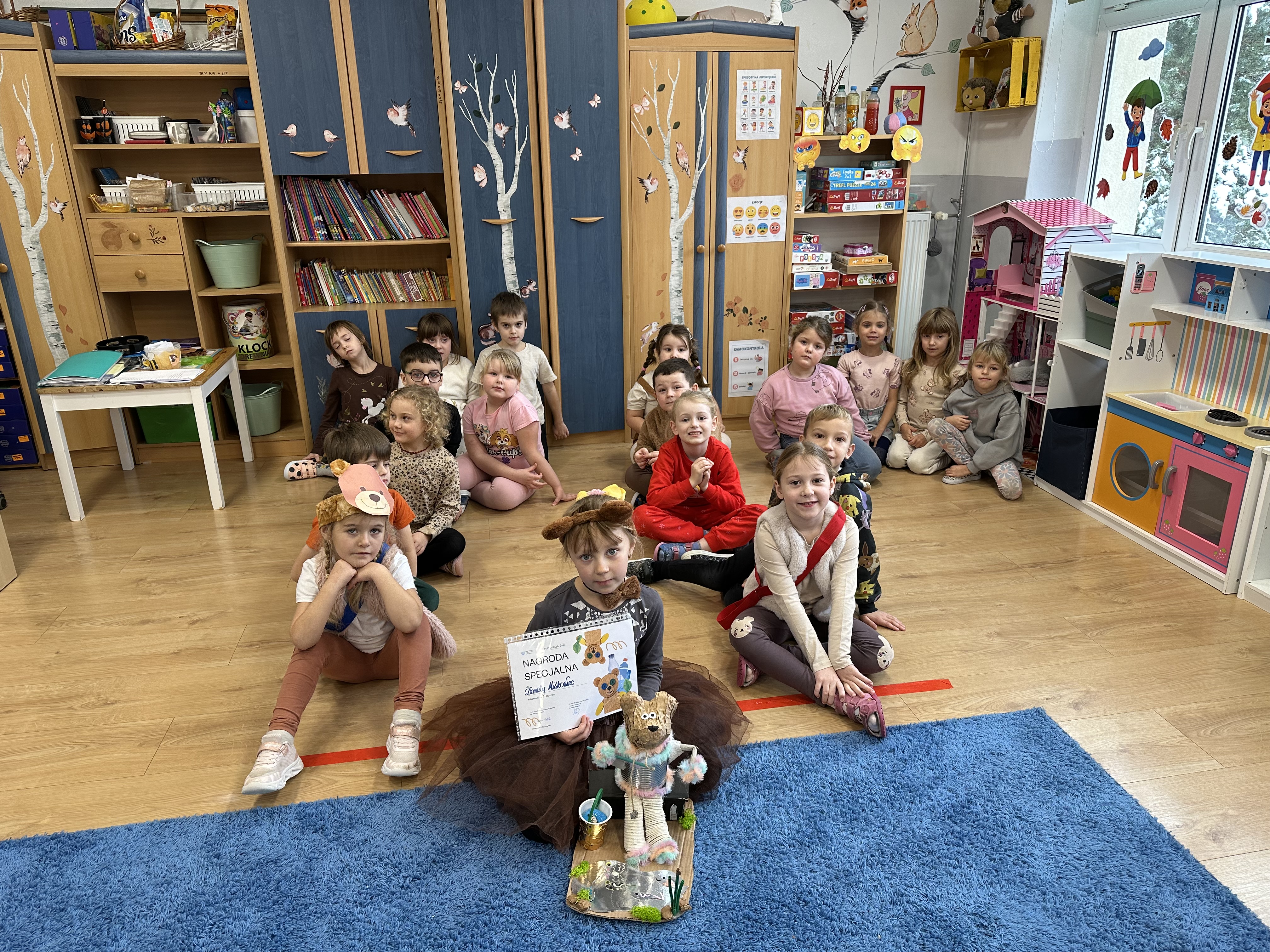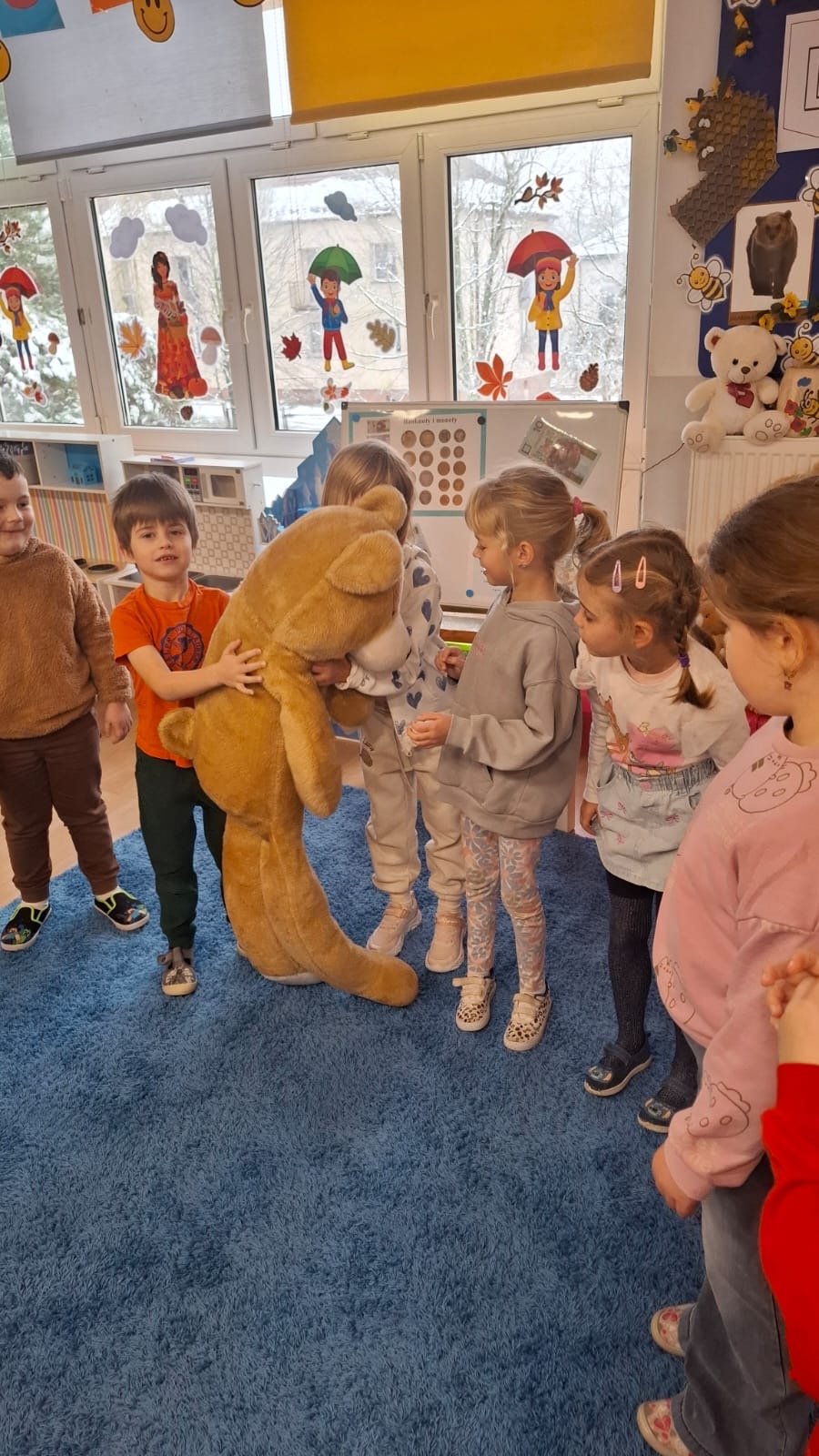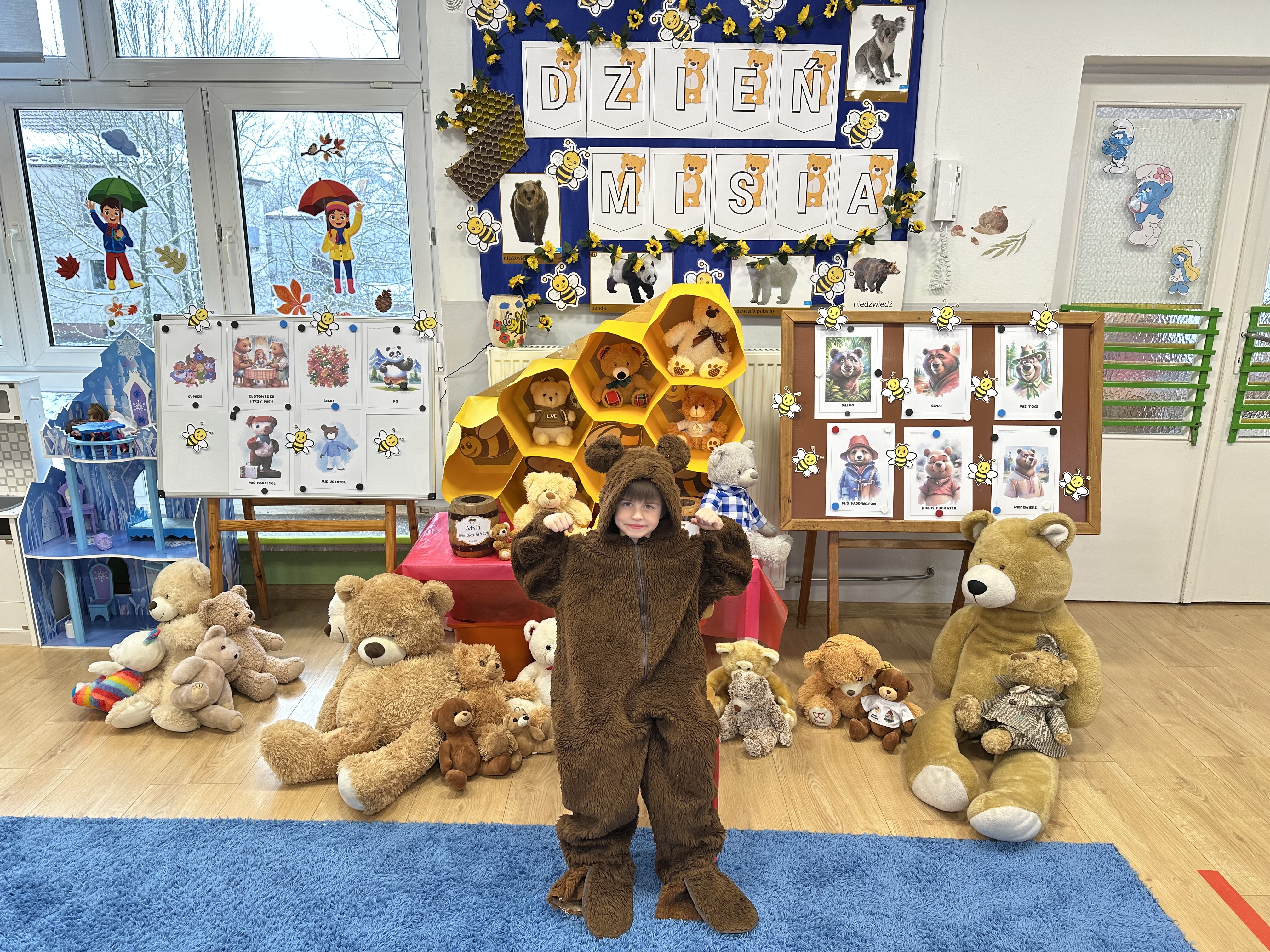 W piątek w naszej grupie świętowaliśmy Dzień Pluszowego Misia. Dzieci przyszły do przedszkola ze swoimi ulubionymi maskotkami, które towarzyszyły im podczas całego dnia zajęć i zabaw. Po śniadaniu przedszkolaki obejrzały film edukacyjny wprowadzający w tematykę święta. Następnie brały udział w zabawach kołowych, takich jak „Stary niedźwiedź” oraz „Jedna łapka, druga łapka”. Podczas zajęć dydaktycznych dzieci doskonaliły również umiejętności matematyczne – klasyfikowały misie według kolorów, układały je od największego do najmniejszego, a także grały w gry edukacyjne „Misiowe memory” oraz „Misiowy quiz”. Kolejnym punktem programu była zabawa muzyczna „Kto przytuli misia”, która dostarczyła dzieciom wiele radości. Po obiedzie przedszkolaki wybierały teksty literackie o misiach, które następnie czytał nauczyciel. Oglądały również ilustracje misiów znanych z bajek i starały się odgadnąć, z jakich tytułów pochodzą. Nie zabrakło także aktywności ruchowych – dzieci uczestniczyły w zabawach „Podaj misia” i „Przenieś misia”, które zawierały elementy rywalizacji. Dużo radości przyniósł również „Taniec z misiem” wykonywany według wylosowanych wcześniej wskazówek. Na zakończenie dnia każde dziecko wykonało pracę plastyczną „Miś”. Dzień upłynął w atmosferze radości, przytulnych wspomnień i wspólnej zabawy, a pluszowi towarzysze byli tego dnia najważniejszymi gośćmi w przedszkolu.