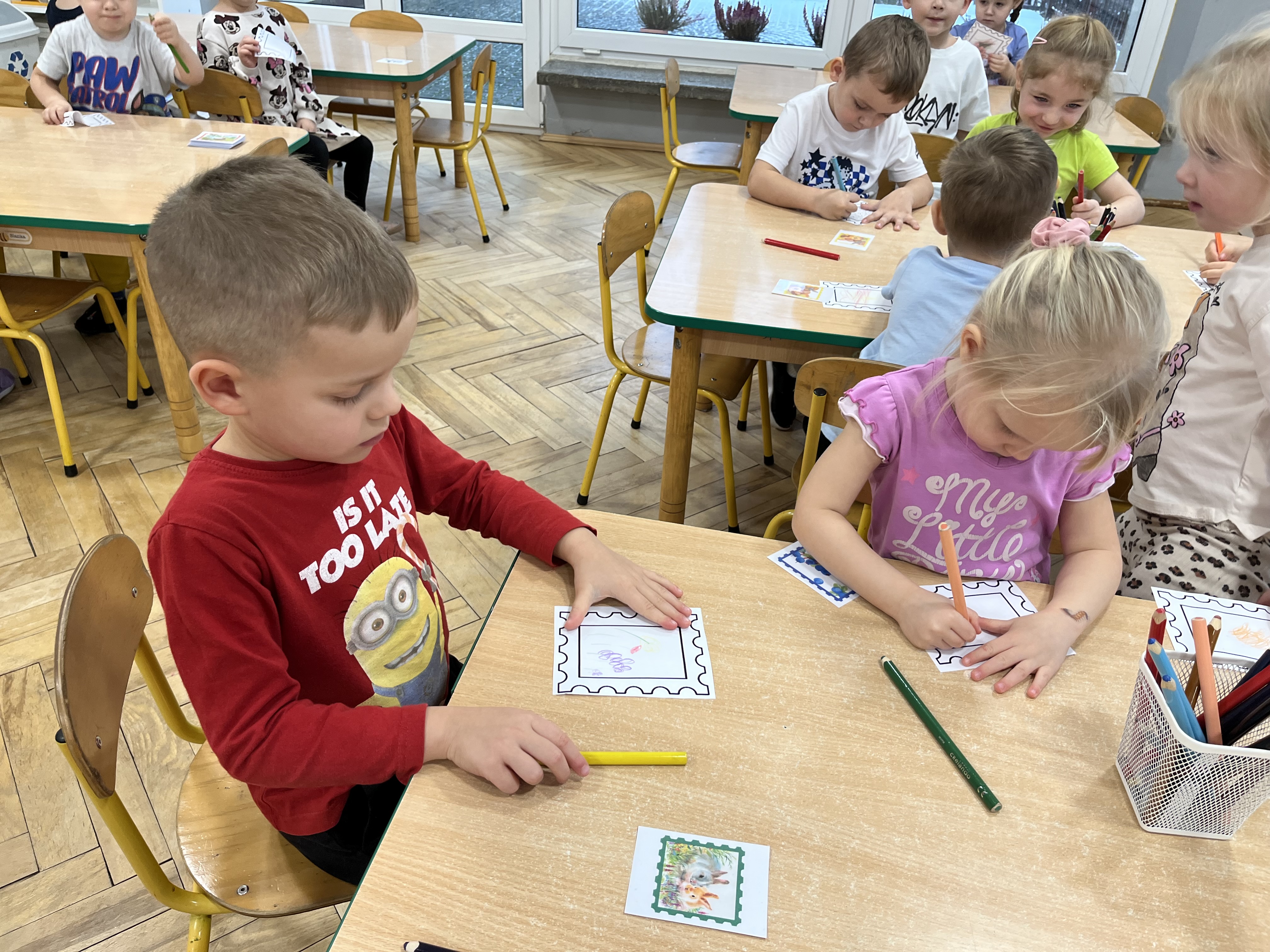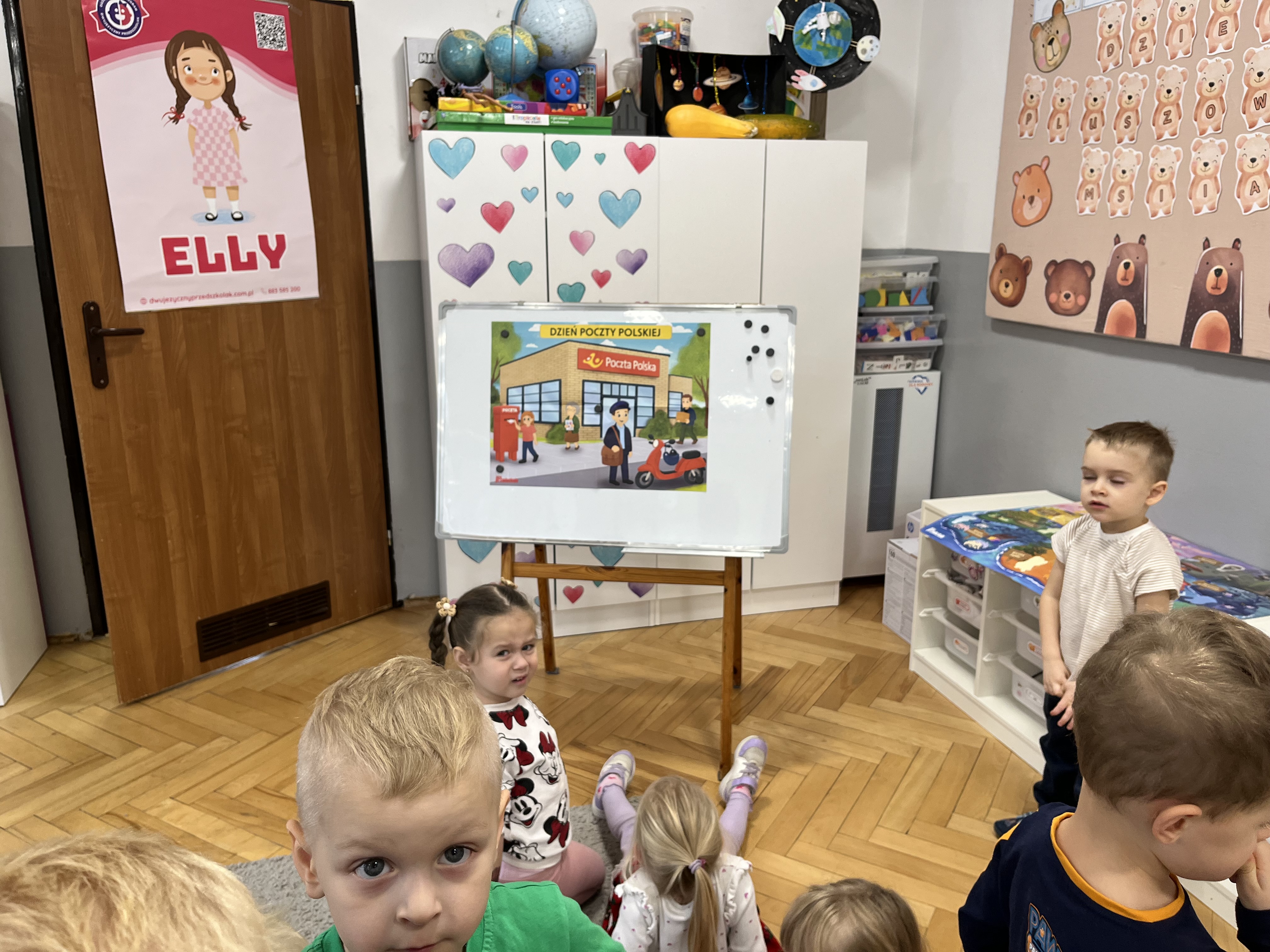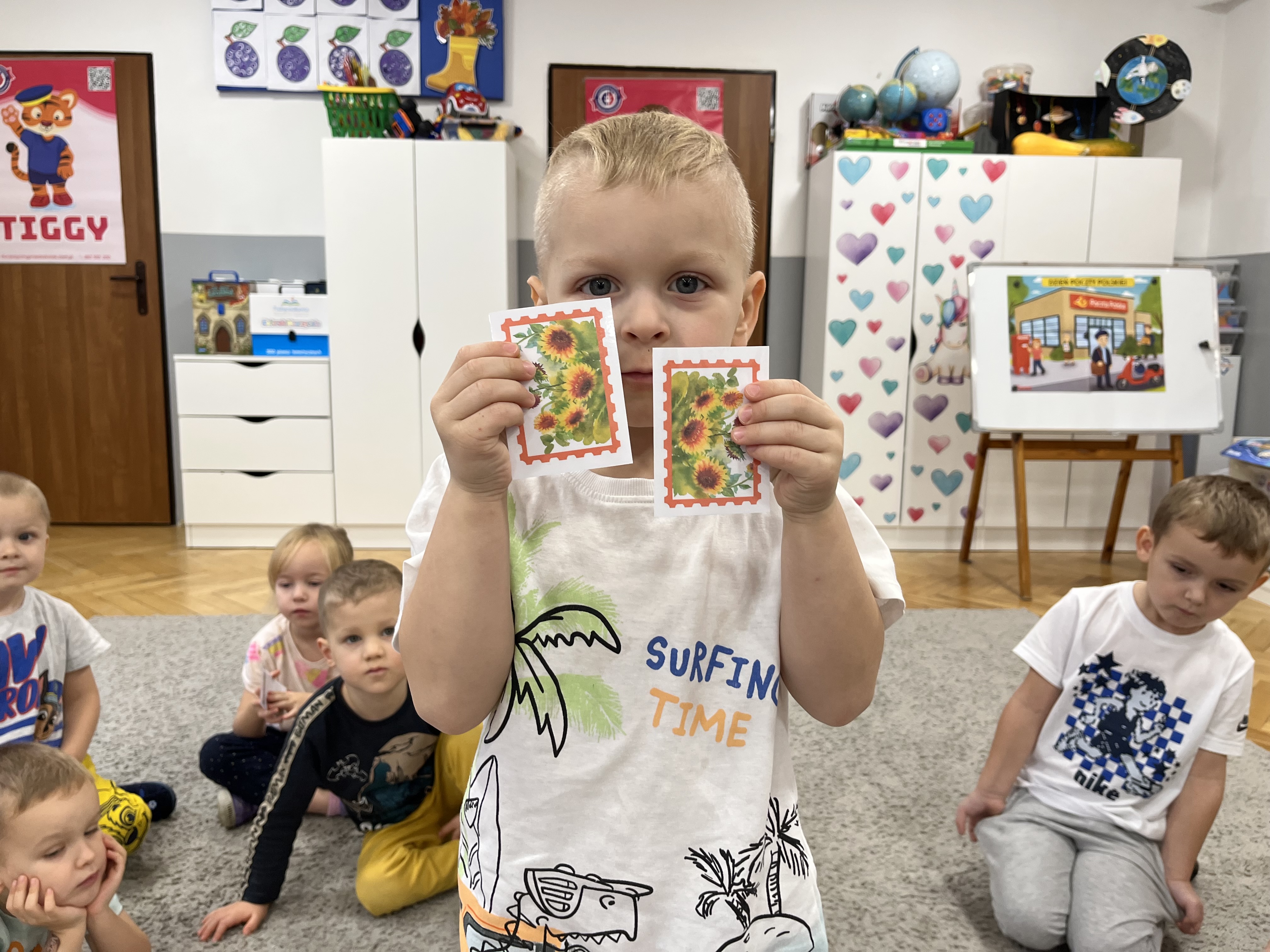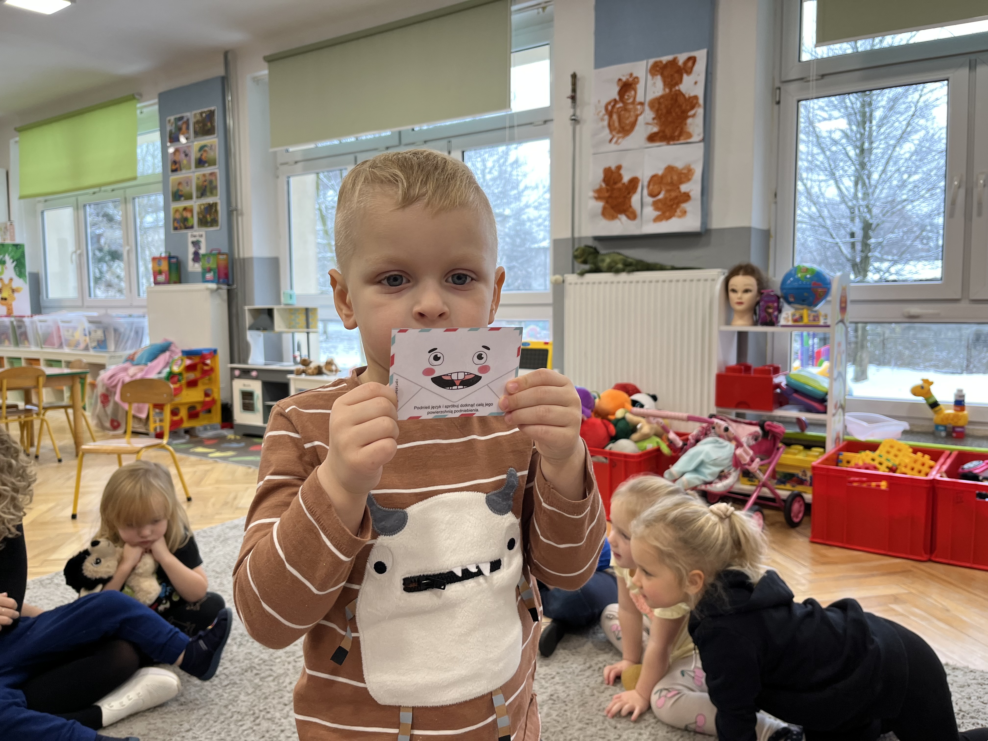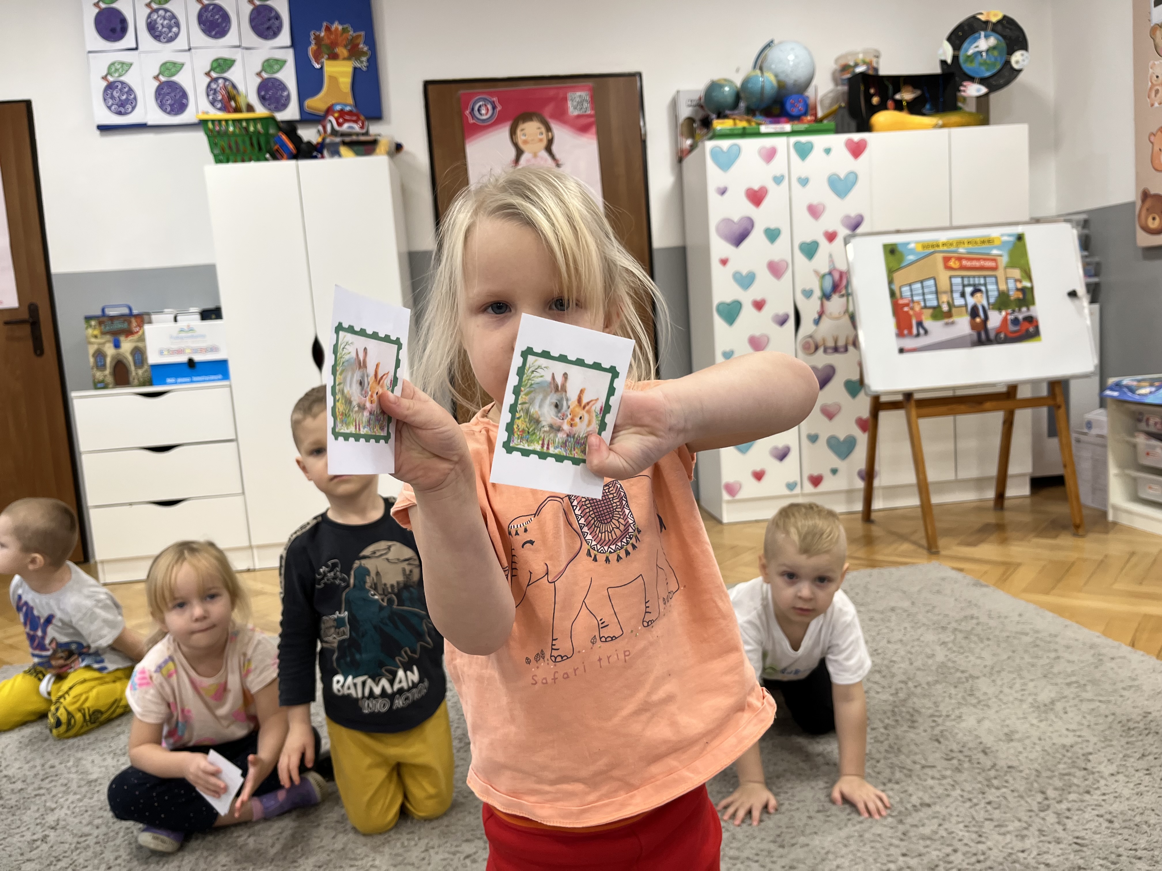 W czasie zajęć dzieci poznawały drogę, jaką pokonuje tradycyjny list, zanim trafi do adresata. Dowiedziały się, że pocztówka musi najpierw zostać napisana i odpowiednio zaadresowana, następnie trafia do skrzynki pocztowej, skąd odbiera ją listonosz. Później list jest sortowany w urzędzie pocztowym i dopiero wtedy wędruje dalej – aż do domu osoby, do której został wysłany.