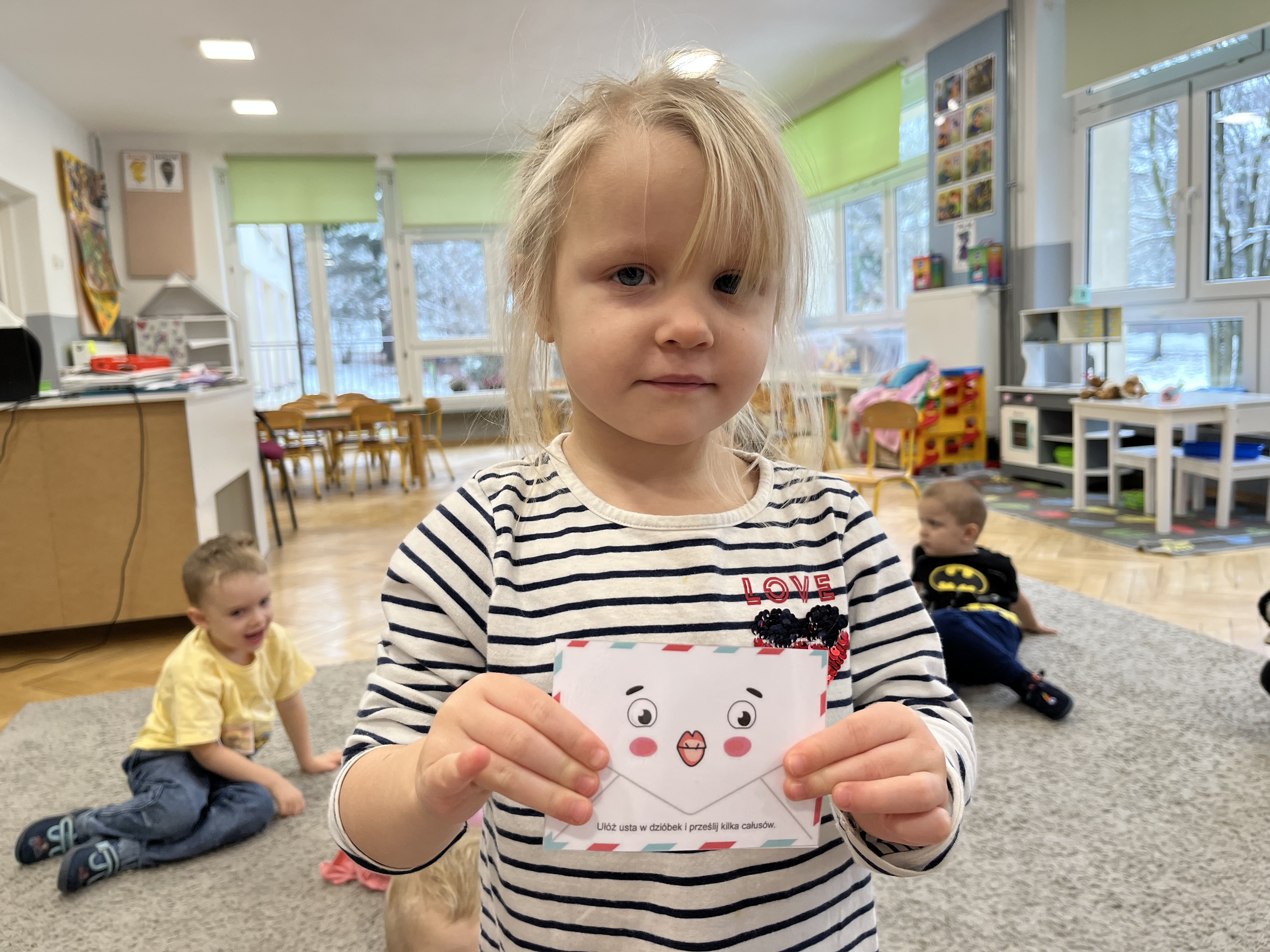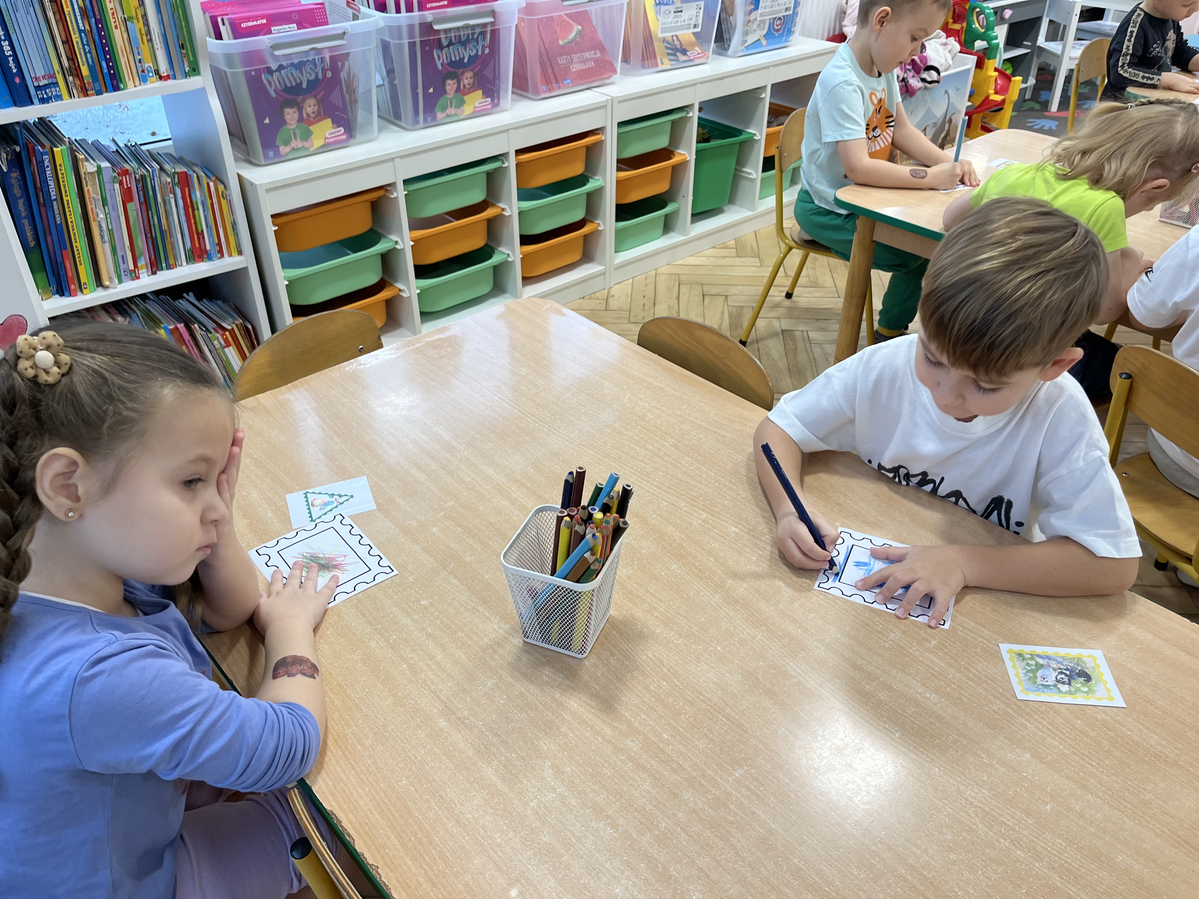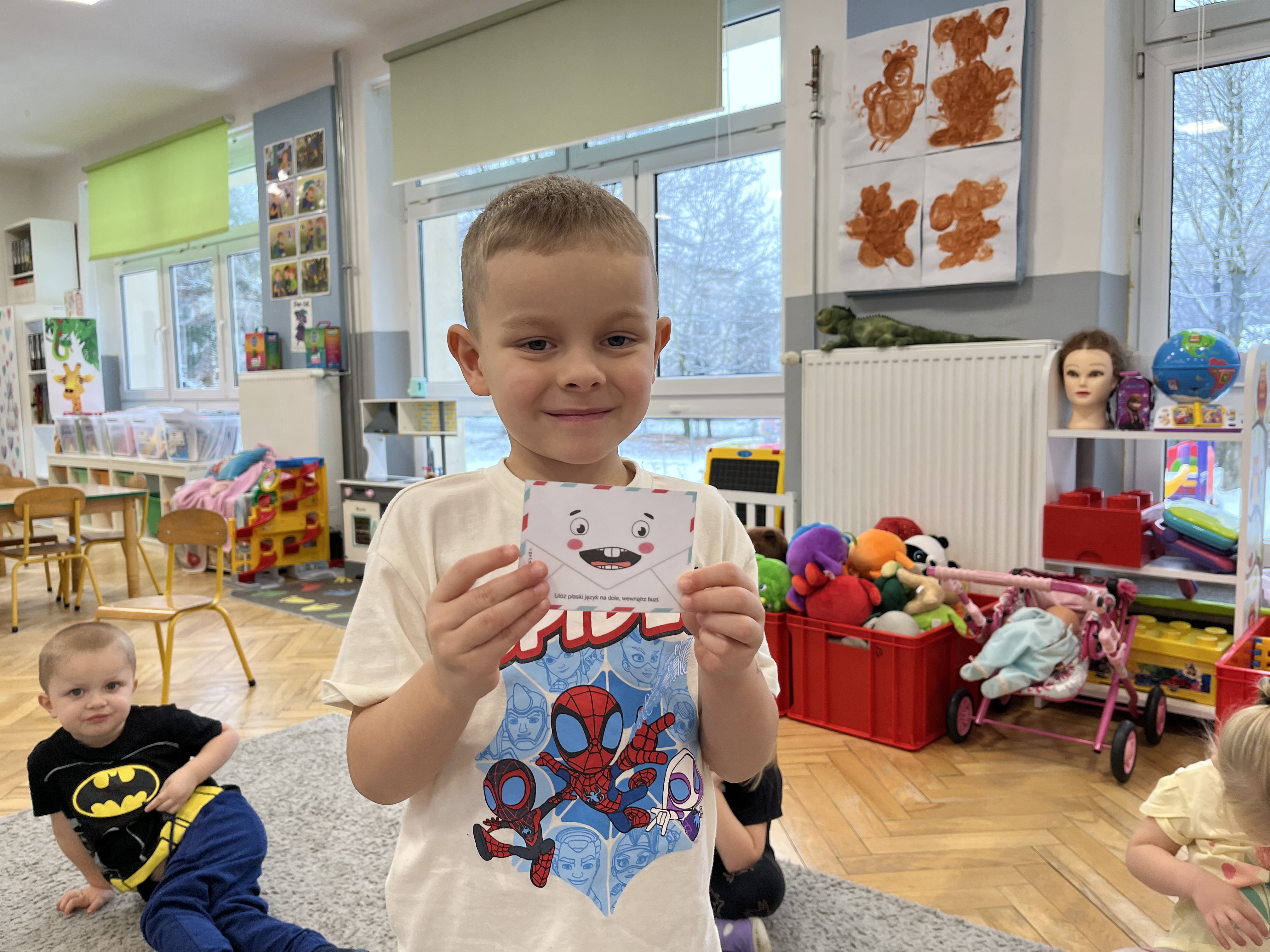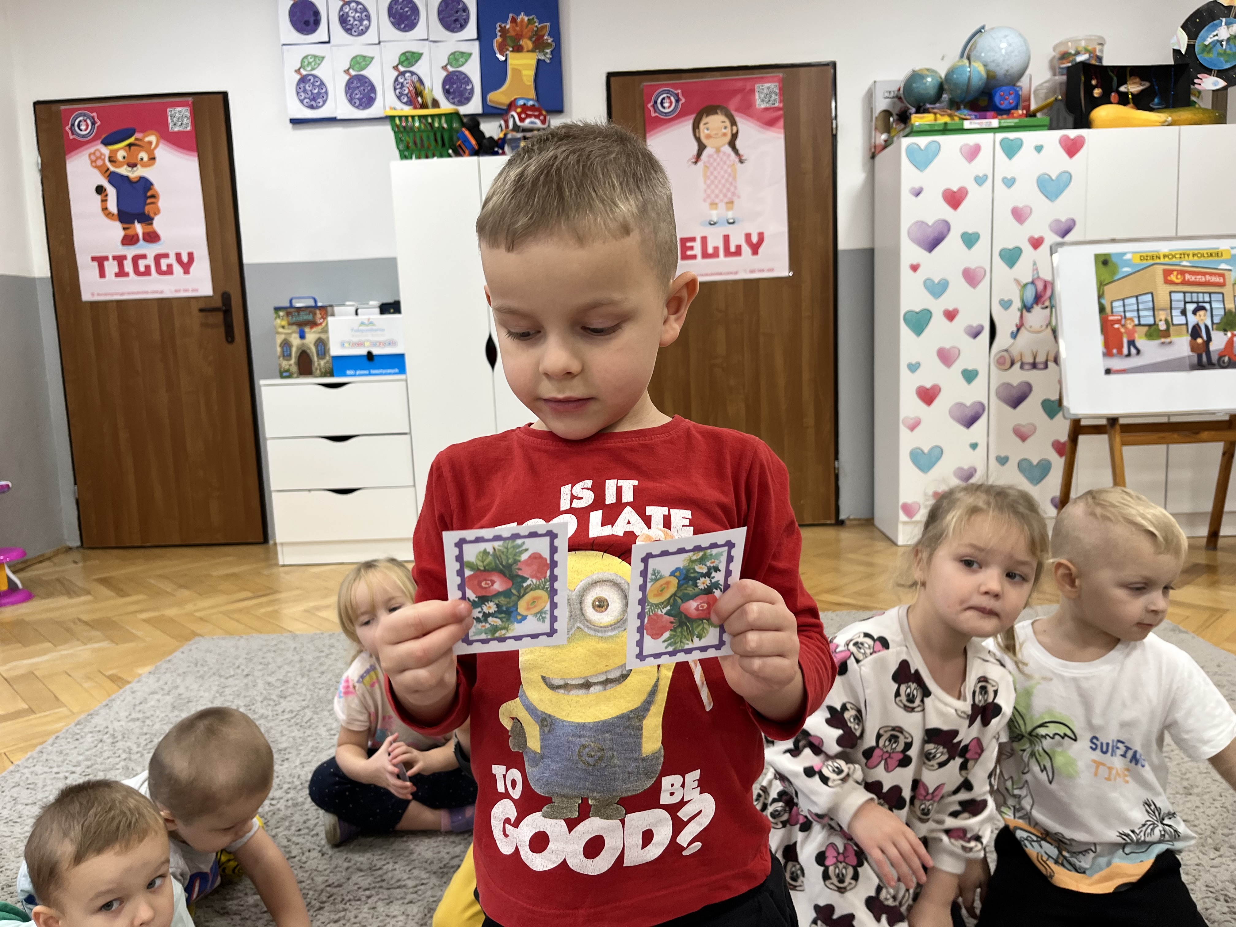 W czasie zajęć dzieci poznawały drogę, jaką pokonuje tradycyjny list, zanim trafi do adresata. Dowiedziały się, że pocztówka musi najpierw zostać napisana i odpowiednio zaadresowana, następnie trafia do skrzynki pocztowej, skąd odbiera ją listonosz. Później list jest sortowany w urzędzie pocztowym i dopiero wtedy wędruje dalej – aż do domu osoby, do której został wysłany.