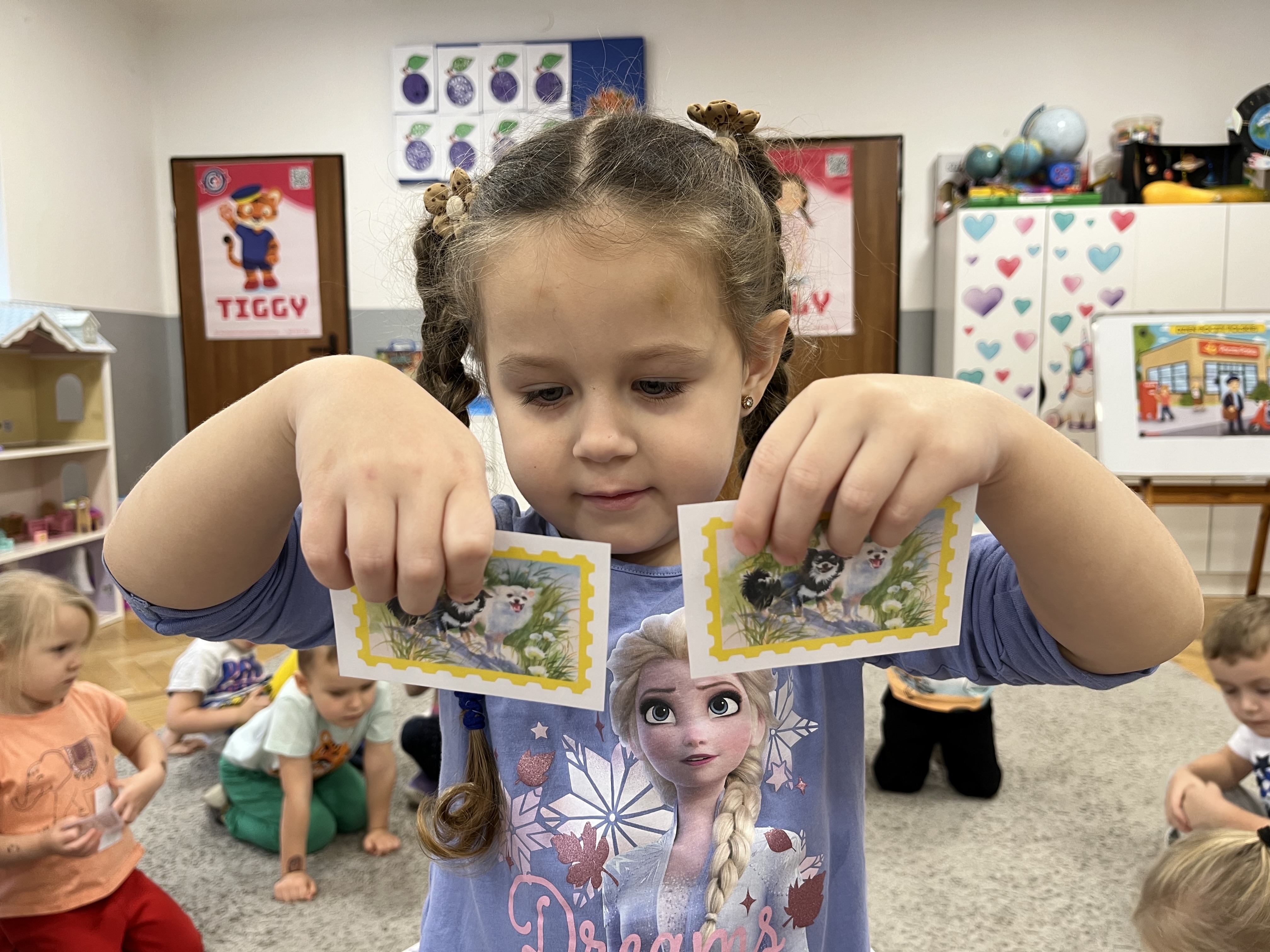 Rozmawialiśmy również o tym, jak komunikują się zwierzęta. Dzieci przypomniały sobie różne odgłosy zwierząt i dowiedziały się, że w ten sposób porozumiewają się one ze sobą.