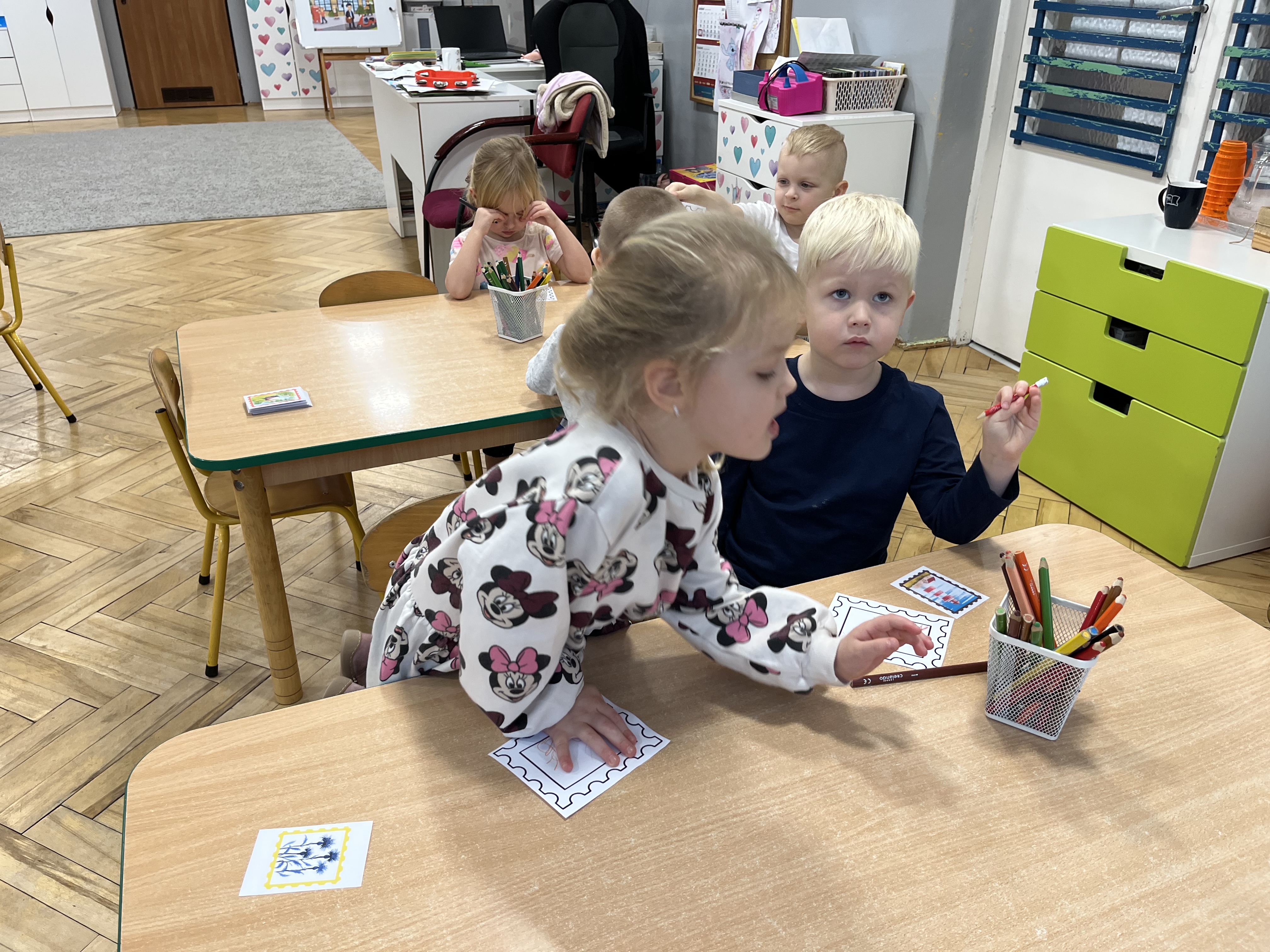 Dzieci wysłuchały opowiadania M. Sarwińskiej-Niewielskiej „Trzy nowe wiadomości”, które pomogło im zrozumieć różne sposoby komunikacji na odległość. Przedszkolaki porównywały tradycyjną pocztówkę, którą dostarcza listonosz, z życzeniami wysyłanymi SMS-em, który dociera natychmiast.