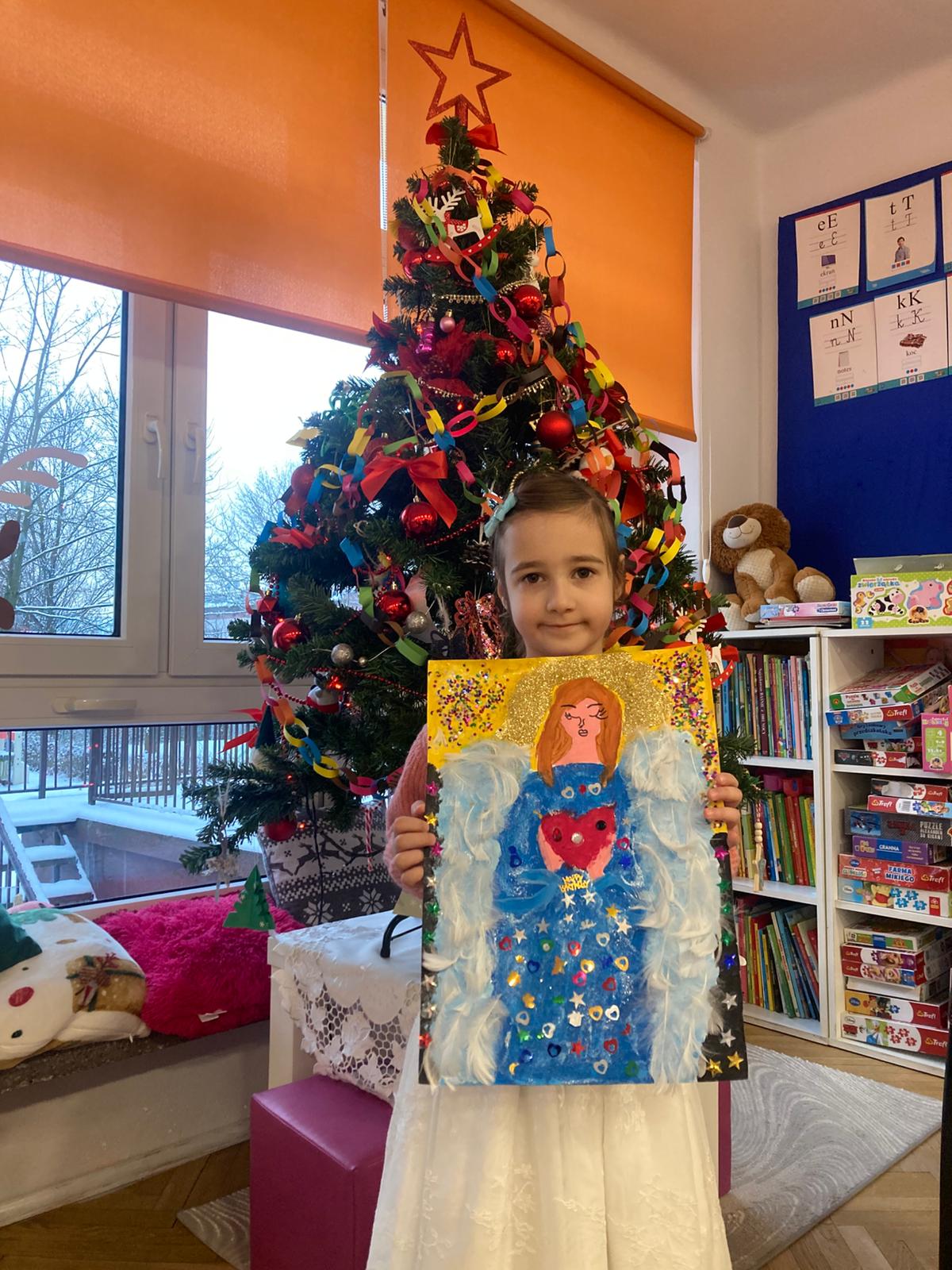 Ewa wykonała piękną pracę na konkurs plastyczny pt:"Anioły są wśród nas".Gratulujemy talentu i czekamy na wyniki,ściskamy kciuki!:)