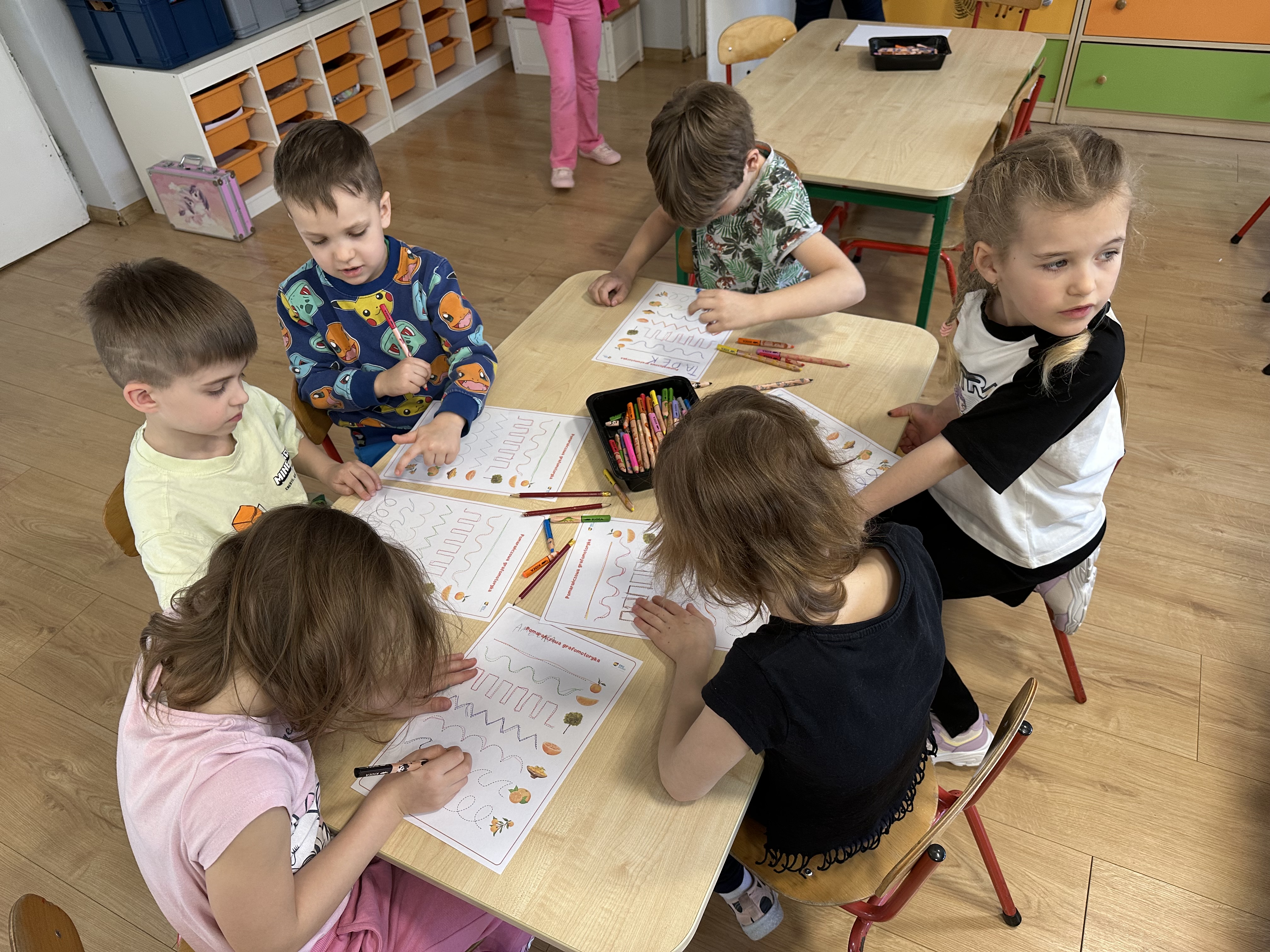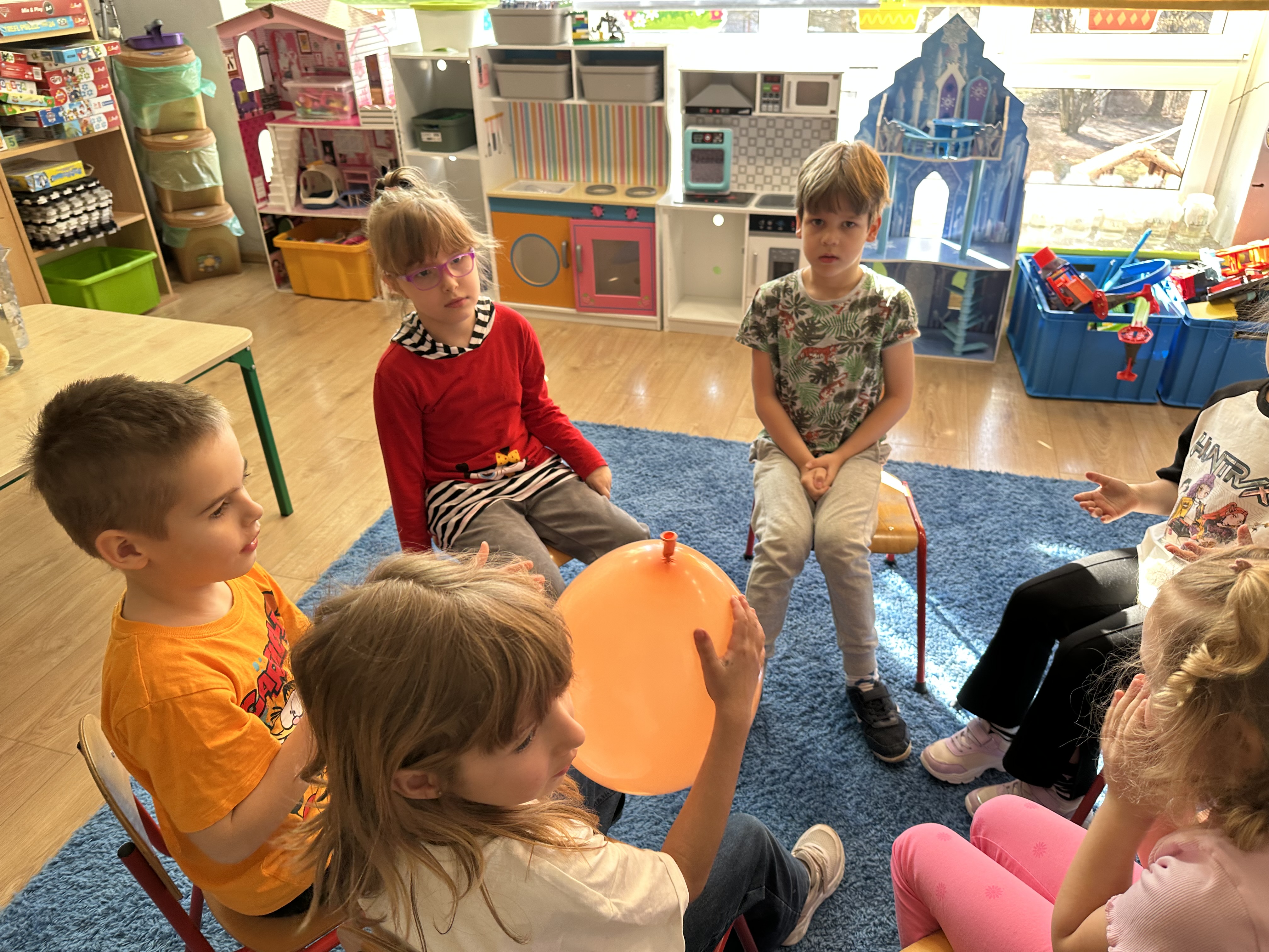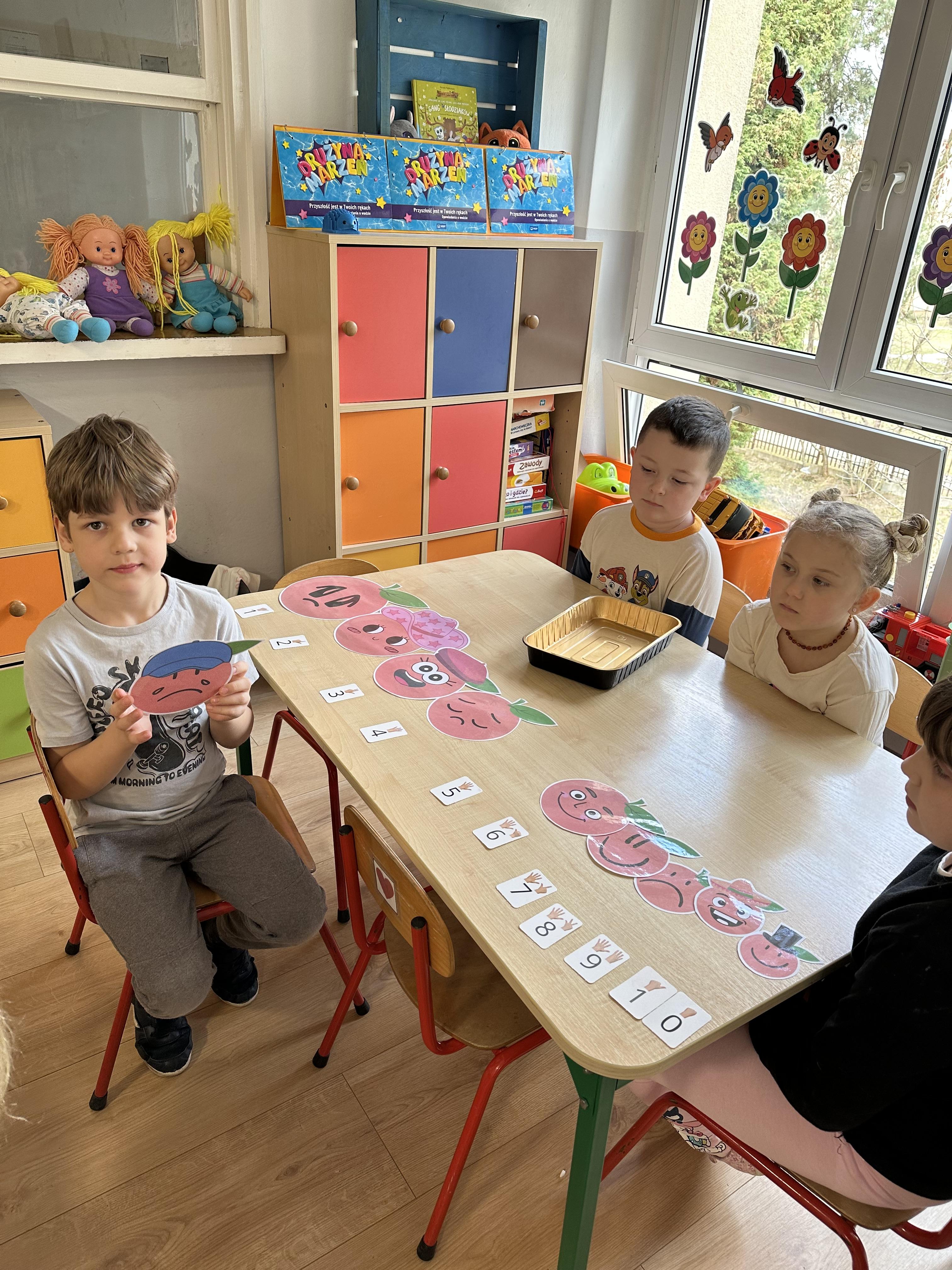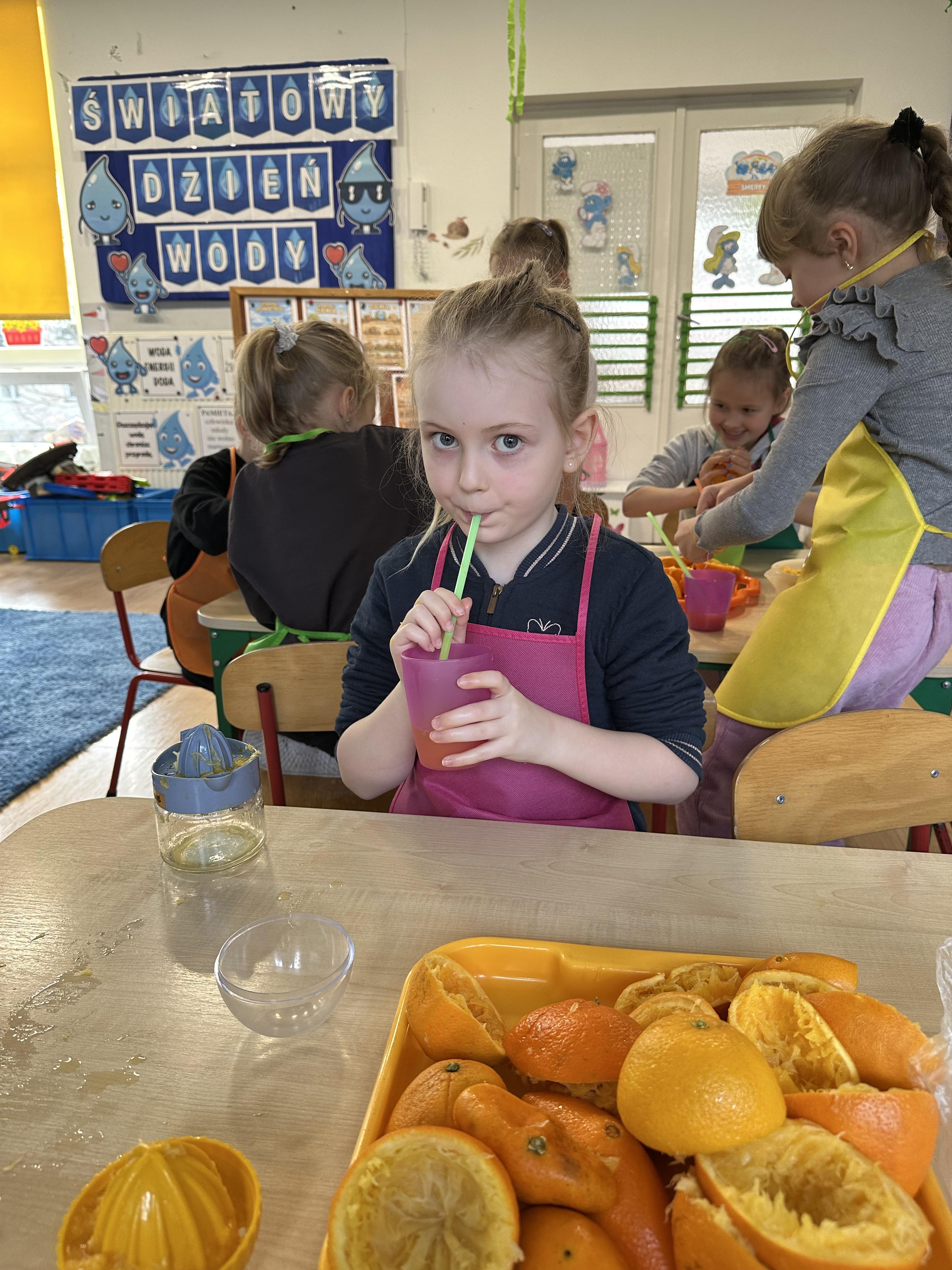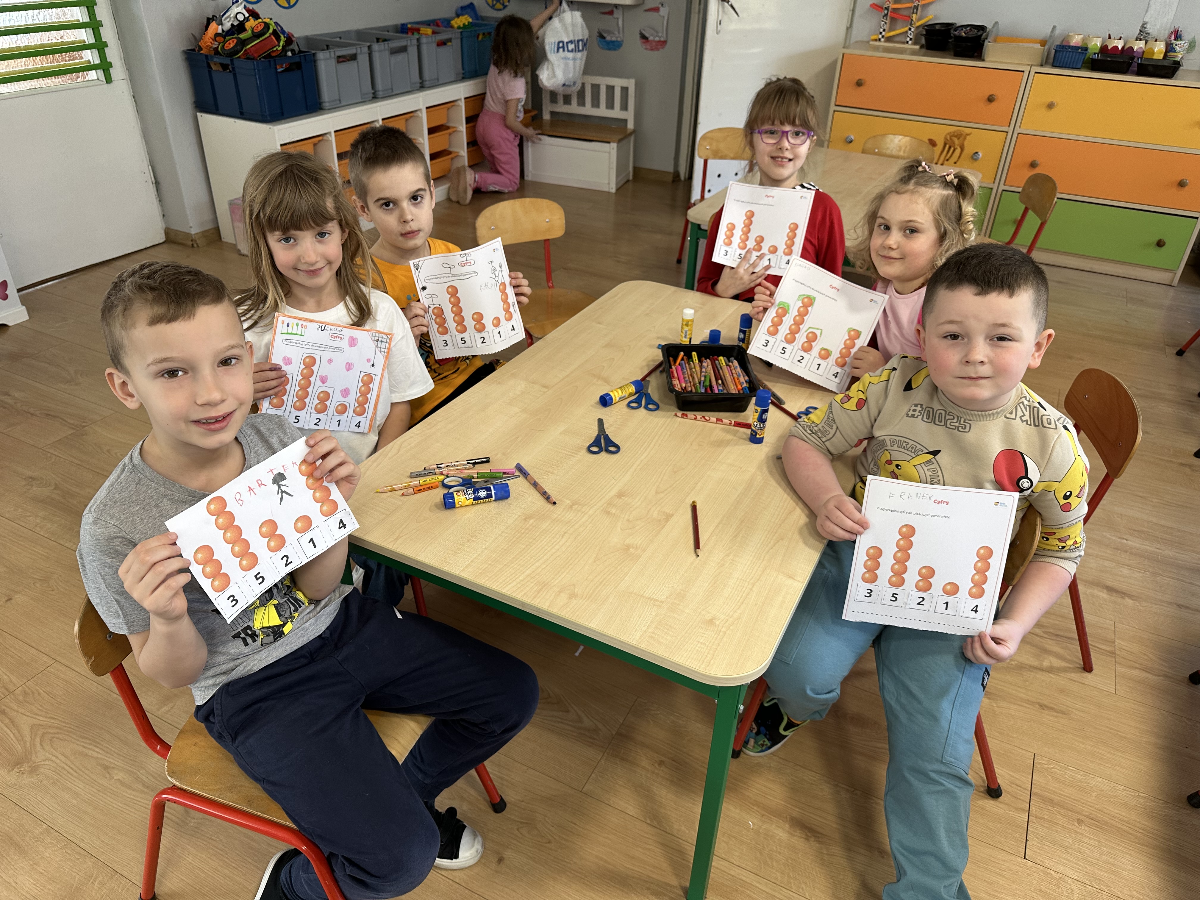Zajęcia rozpoczęły się od otrzymania listu od profesora Animka, który wprowadził dzieci w temat kolejnej przygody. Na podstawie wskazówek zawartych w liście dzieci odgadły, że bohaterką zajęć będzie pomarańcza - owoc kojarzący się z energią i charakterystycznym kolorem. Następnie dzieci wysłuchały opowiadania pt. „Energetyczna pomarańcza” autorstwa K. Michoń. Po wysłuchaniu tekstu odbyła się rozmowa na temat jego treści. Dzieci miały możliwość poznania pomarańczy wszystkimi zmysłami - dotykały jej, wąchały oraz smakowały. Zapoznały się również z informacjami dotyczącymi uprawy pomarańczy na podstawie ilustracji. Podczas zajęć ruchowych dzieci rozwijały umiejętność reagowania na zmianę rytmu i tempa muzyki poprzez zabawy z balonem. Wykonały także pracę plastyczną przedstawiającą pomarańczę, rozwijając swoją kreatywność i zdolności manualne. W trakcie zabaw dydaktycznych dzieci doskonaliły umiejętności matematyczne, uczestnicząc w aktywności „Pomarańczowa matematyka”, polegającej między innymi na przyporządkowywaniu cyfr do odpowiedniej liczby pomarańczy. Starszaki brały również udział w eksperymencie „Czy pomarańcza pływa, czy tonie w wodzie?”, wyciągając własne wnioski i rozwijając umiejętność obserwacji. Dodatkowo dzieci ćwiczyły sprawność manualną podczas zajęć grafomotorycznych „Pomarańczowa grafomotoryka ”. Ważnym elementem zajęć było również rozwijanie samodzielności - dzieci samodzielnie przygotowały sok z pomarańczy. Na zakończenie dzieci poznały wartości odżywcze pomarańczy oraz umieściły ten owoc w „Skarbcu zaginionych składników odżywczych”, wzbogacając swoją wiedzę na temat zdrowego odżywiania.