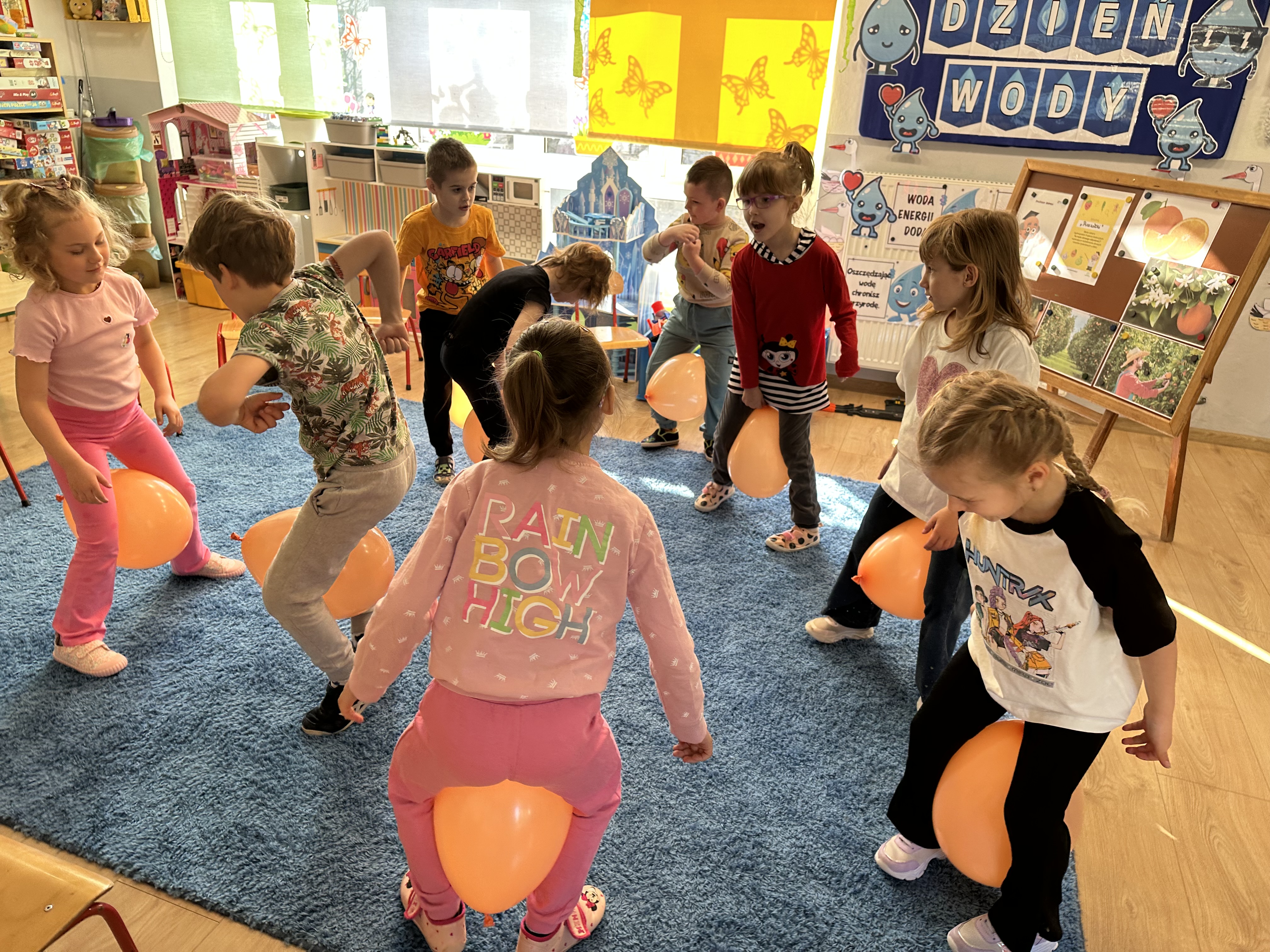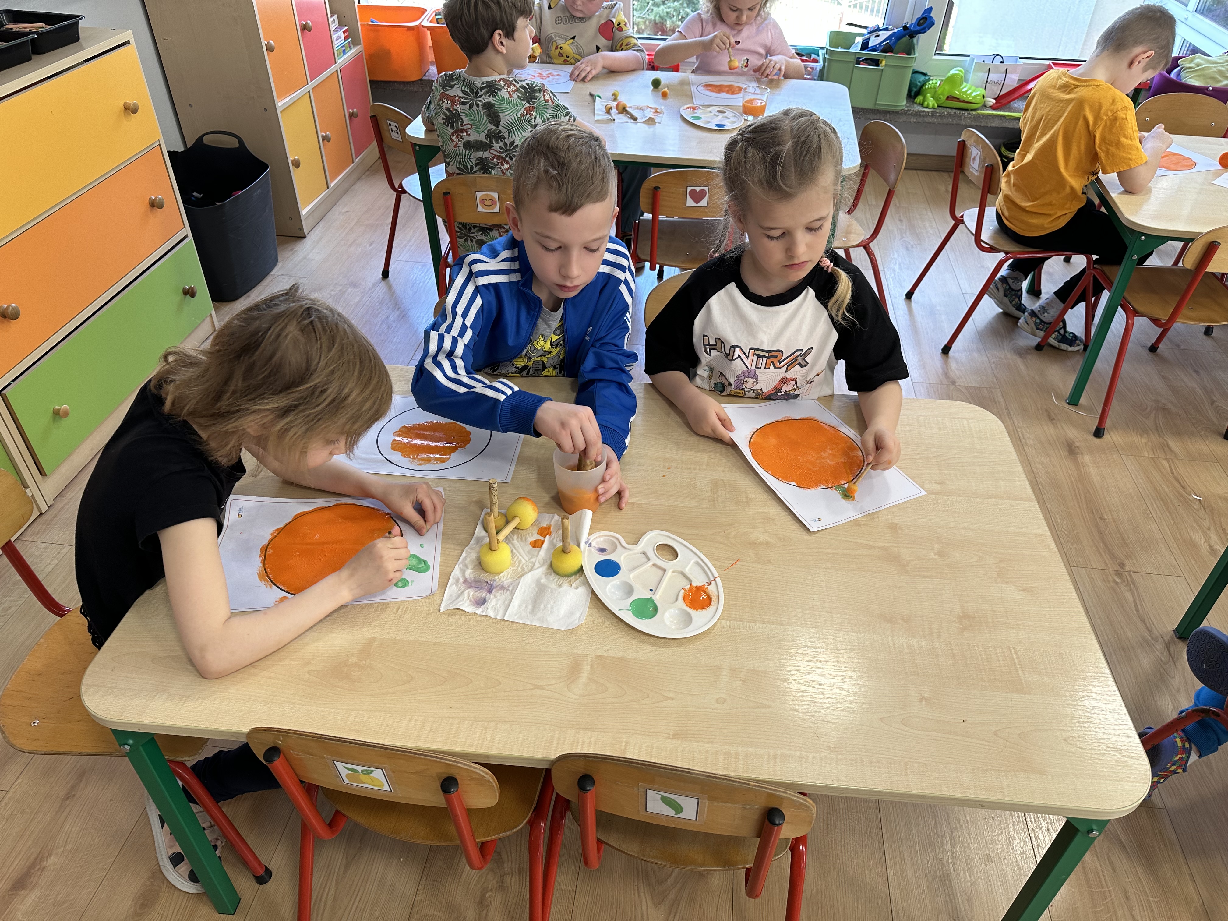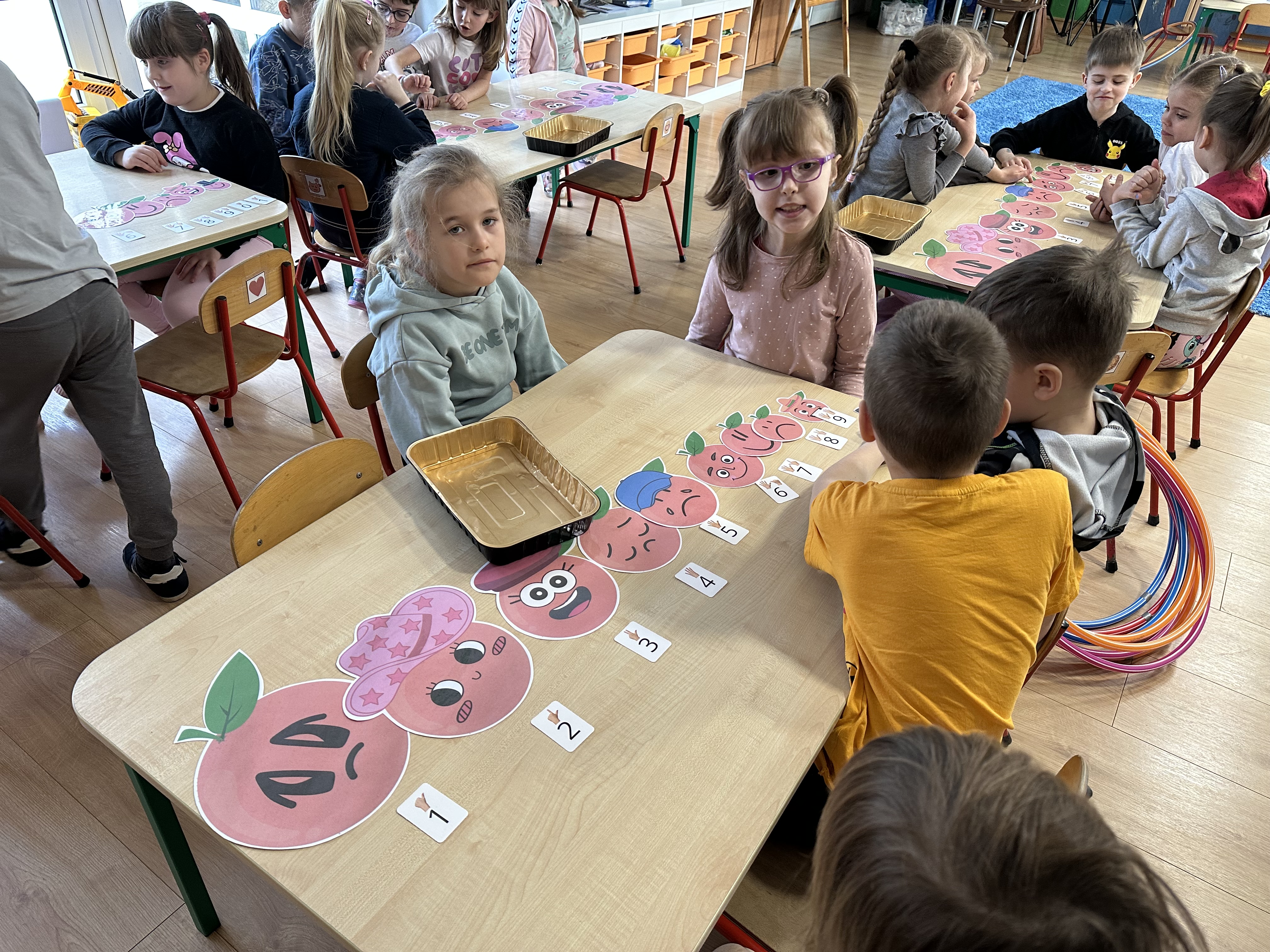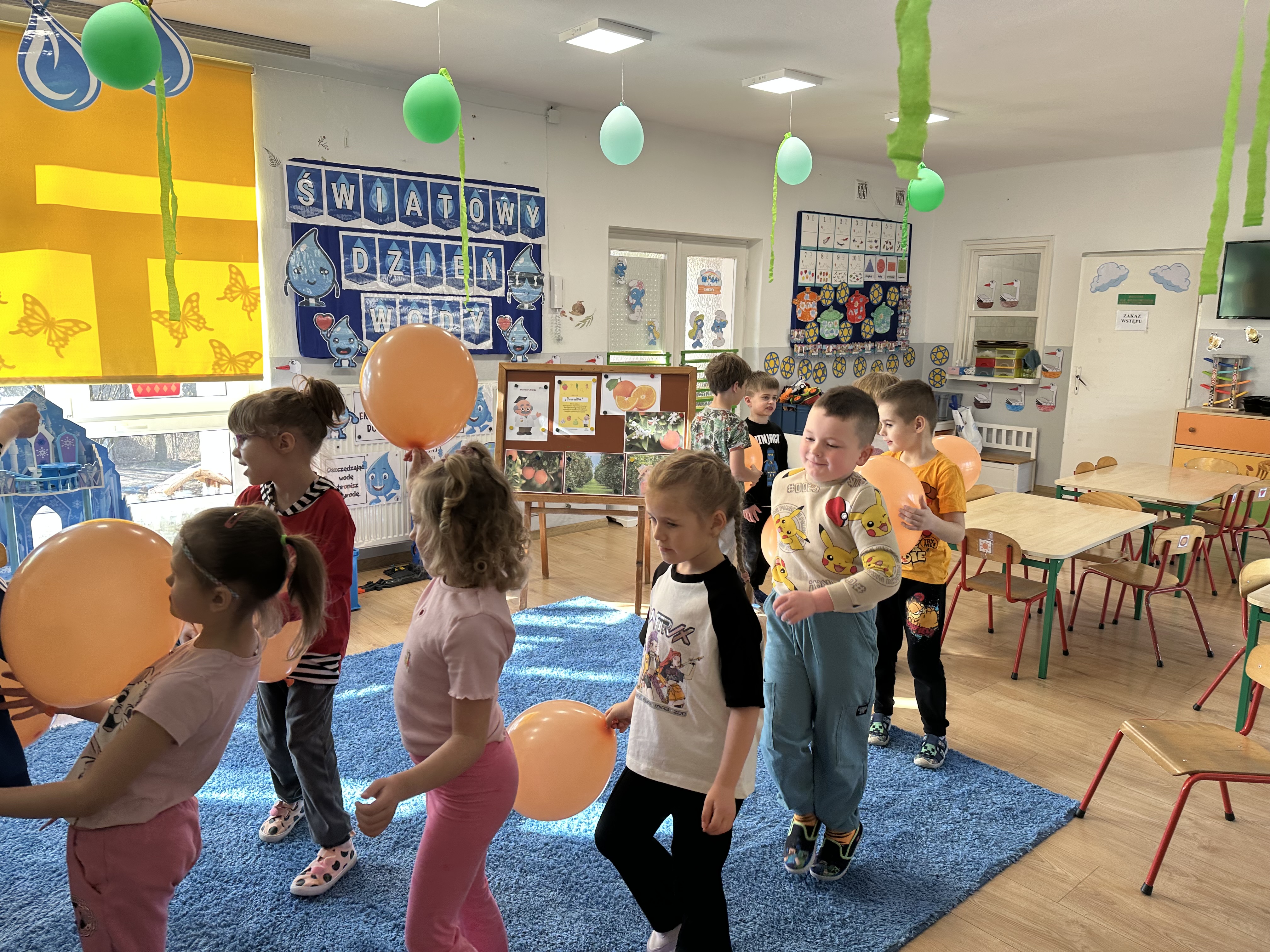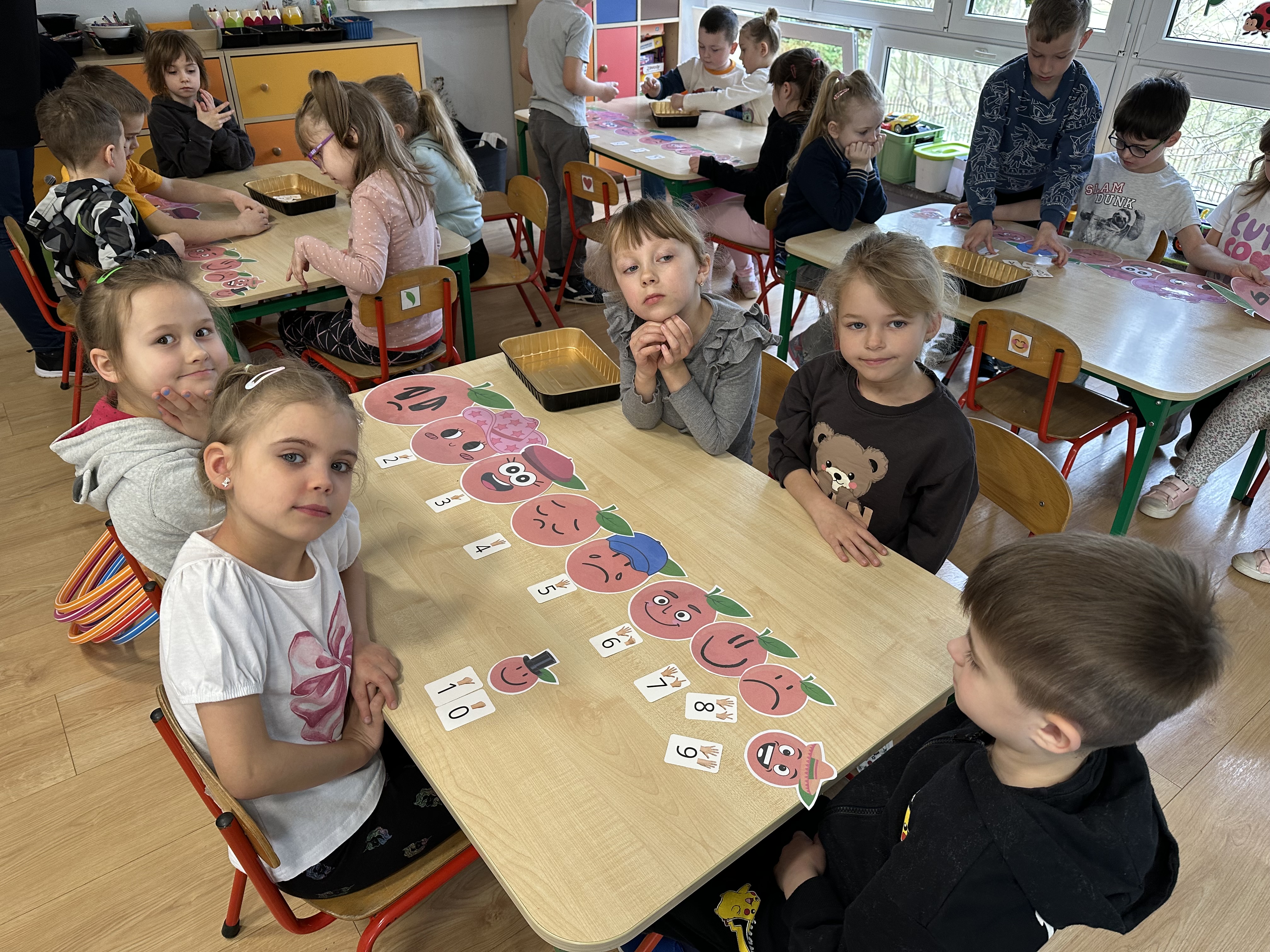 Zajęcia rozpoczęły się od otrzymania listu od profesora Animka, który wprowadził dzieci w temat kolejnej przygody. Na podstawie wskazówek zawartych w liście dzieci odgadły, że bohaterką zajęć będzie pomarańcza - owoc kojarzący się z energią i charakterystycznym kolorem. Następnie dzieci wysłuchały opowiadania pt. „Energetyczna pomarańcza” autorstwa K. Michoń. Po wysłuchaniu tekstu odbyła się rozmowa na temat jego treści. Dzieci miały możliwość poznania pomarańczy wszystkimi zmysłami - dotykały jej, wąchały oraz smakowały. Zapoznały się również z informacjami dotyczącymi uprawy pomarańczy na podstawie ilustracji. Podczas zajęć ruchowych dzieci rozwijały umiejętność reagowania na zmianę rytmu i tempa muzyki poprzez zabawy z balonem. Wykonały także pracę plastyczną przedstawiającą pomarańczę, rozwijając swoją kreatywność i zdolności manualne. W trakcie zabaw dydaktycznych dzieci doskonaliły umiejętności matematyczne, uczestnicząc w aktywności „Pomarańczowa matematyka”, polegającej między innymi na przyporządkowywaniu cyfr do odpowiedniej liczby pomarańczy. Starszaki brały również udział w eksperymencie „Czy pomarańcza pływa, czy tonie w wodzie?”, wyciągając własne wnioski i rozwijając umiejętność obserwacji. Dodatkowo dzieci ćwiczyły sprawność manualną podczas zajęć grafomotorycznych „Pomarańczowa grafomotoryka ”. Ważnym elementem zajęć było również rozwijanie samodzielności - dzieci samodzielnie przygotowały sok z pomarańczy. Na zakończenie dzieci poznały wartości odżywcze pomarańczy oraz umieściły ten owoc w „Skarbcu zaginionych składników odżywczych”, wzbogacając swoją wiedzę na temat zdrowego odżywiania.