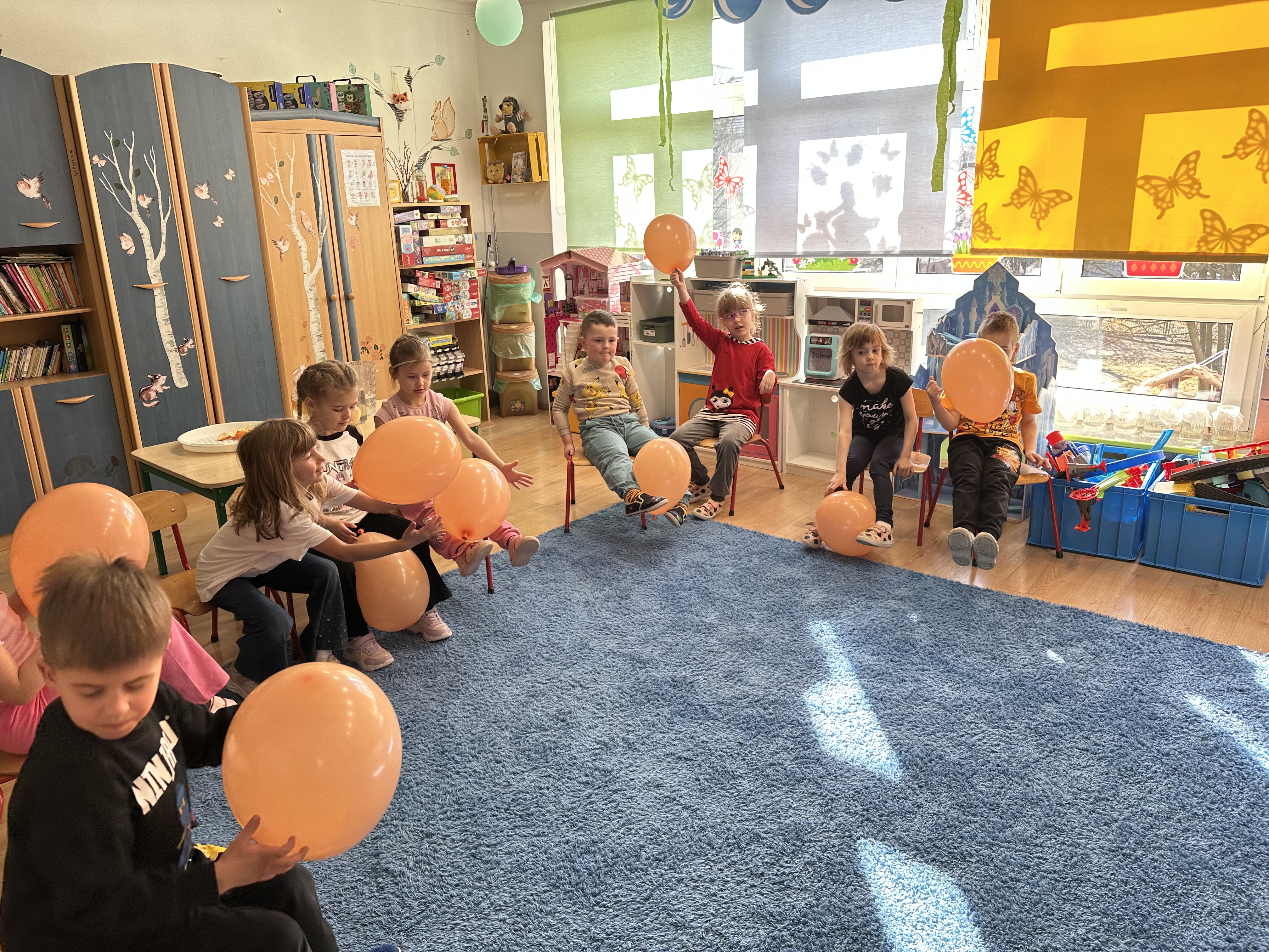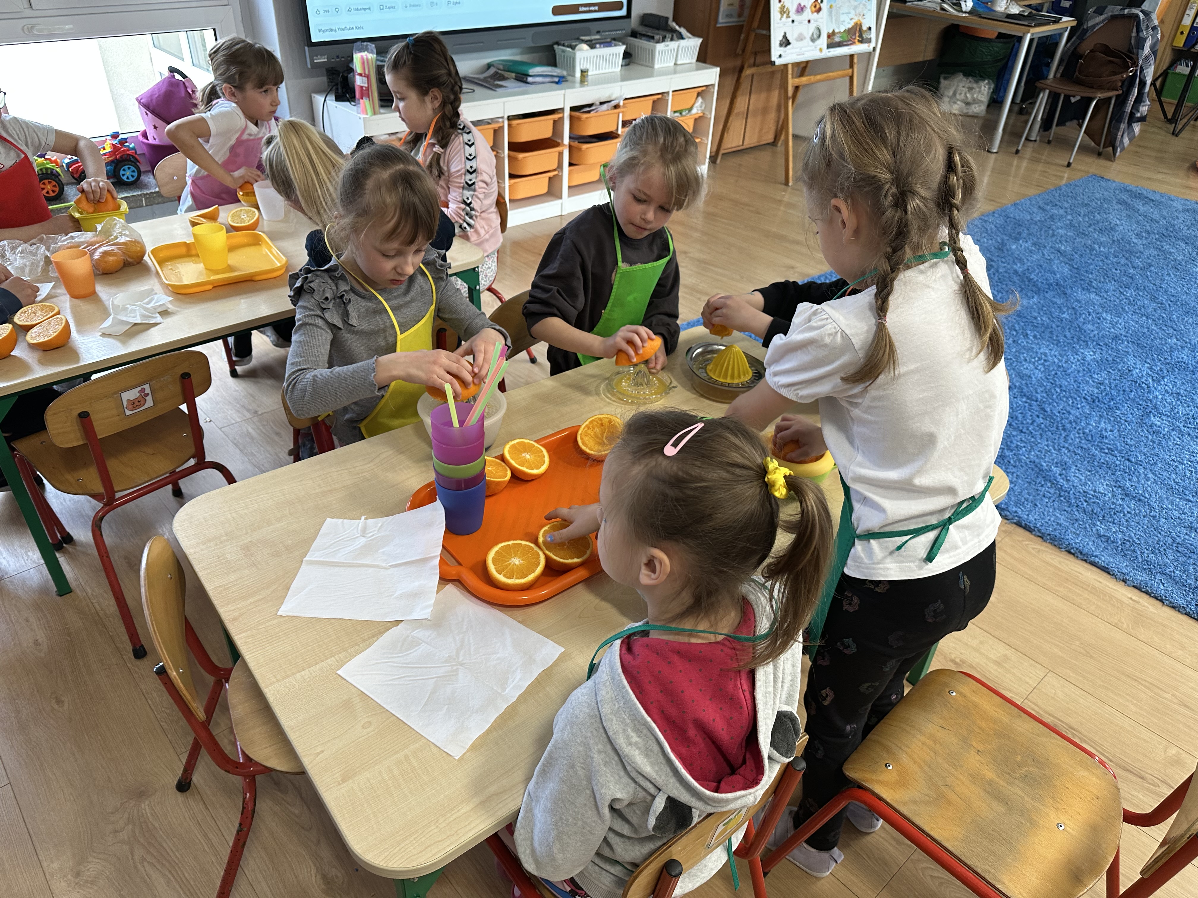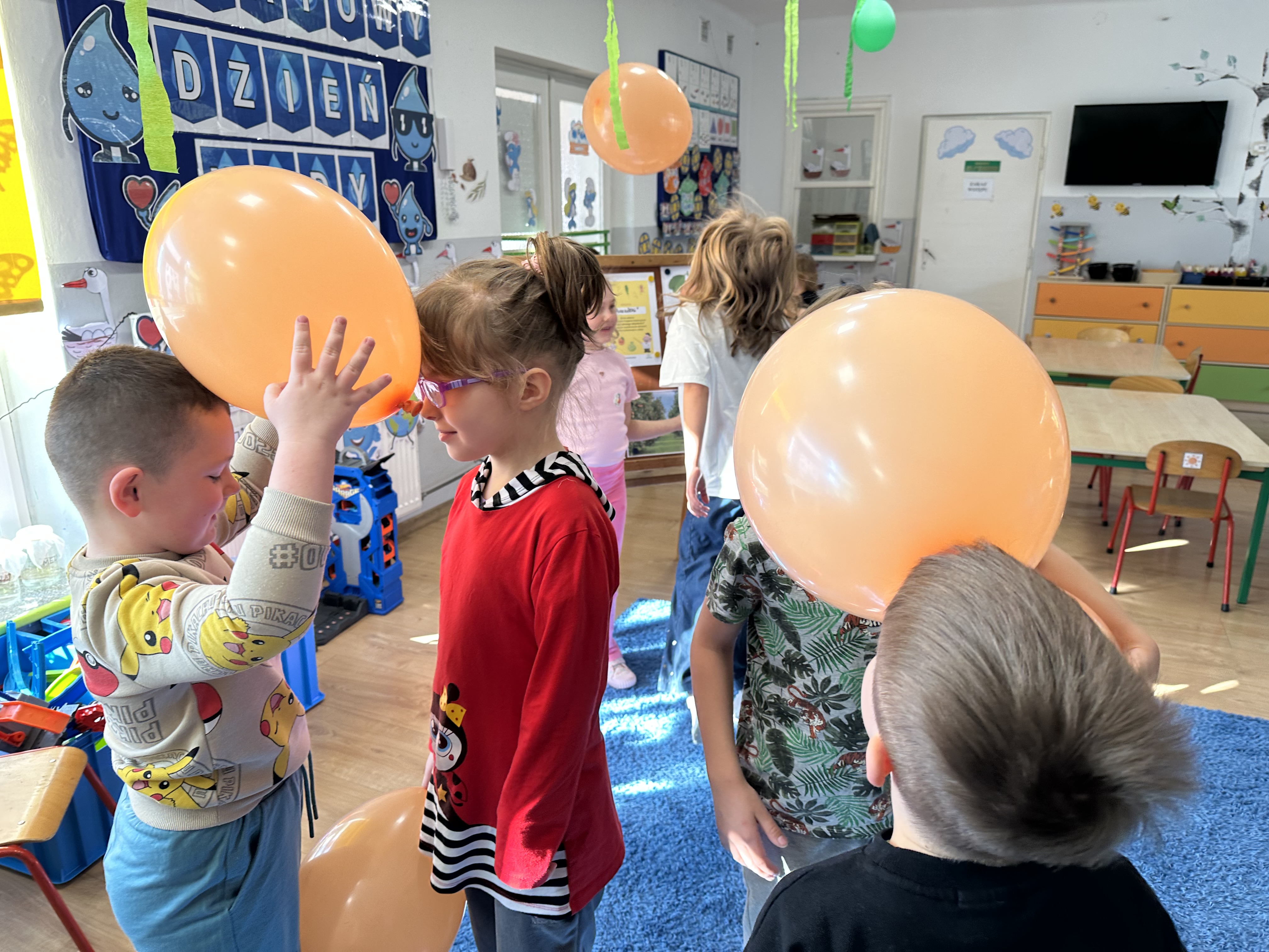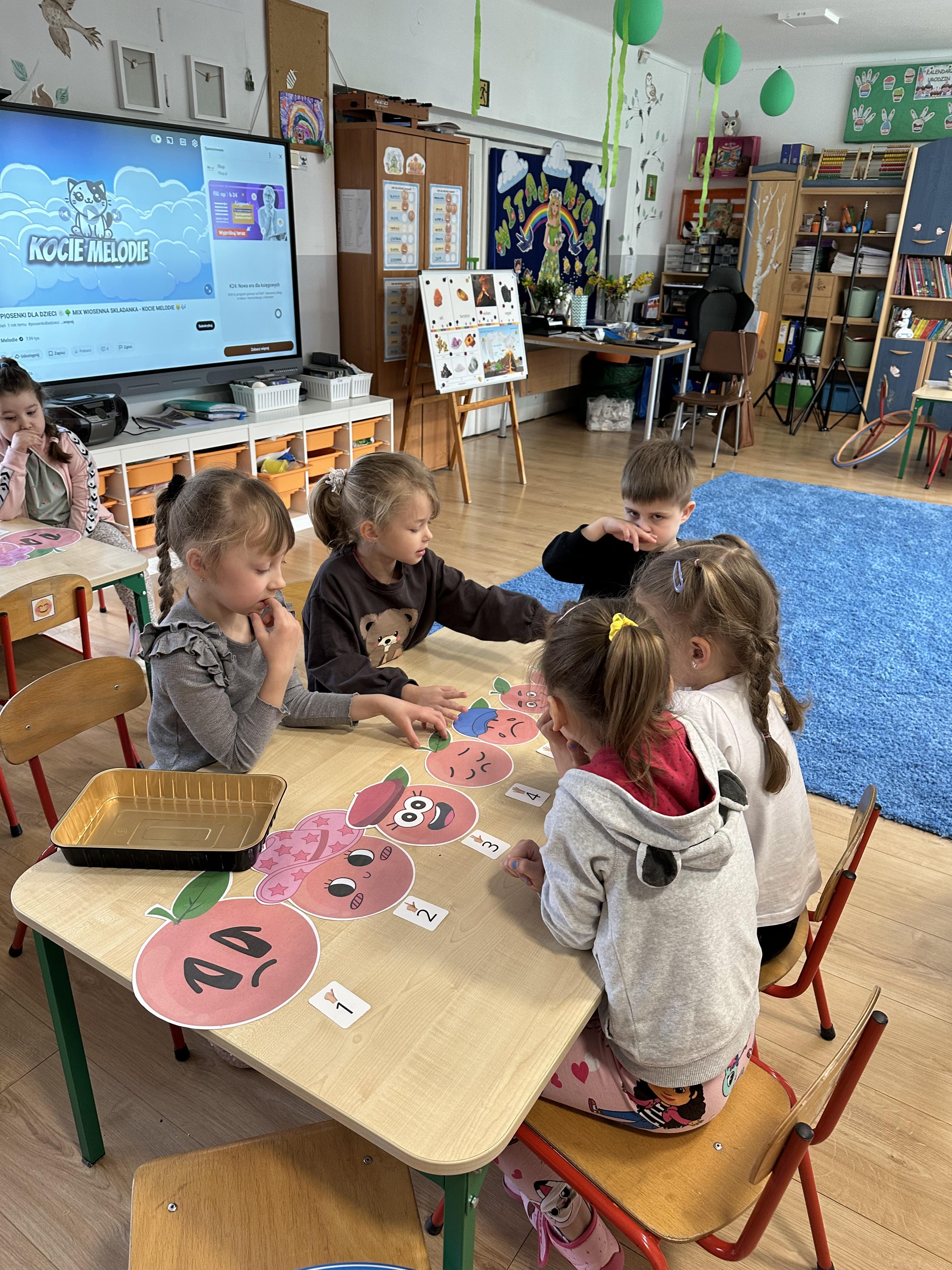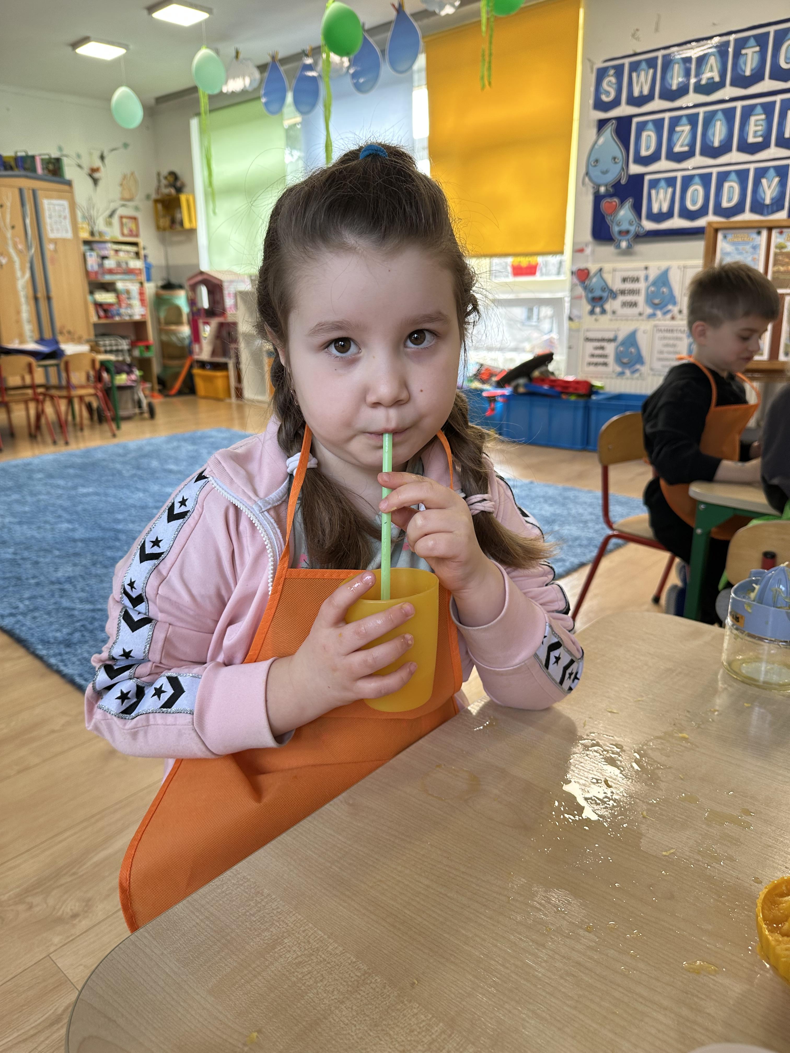 Zajęcia rozpoczęły się od otrzymania listu od profesora Animka, który wprowadził dzieci w temat kolejnej przygody. Na podstawie wskazówek zawartych w liście dzieci odgadły, że bohaterką zajęć będzie pomarańcza - owoc kojarzący się z energią i charakterystycznym kolorem. Następnie dzieci wysłuchały opowiadania pt. „Energetyczna pomarańcza” autorstwa K. Michoń. Po wysłuchaniu tekstu odbyła się rozmowa na temat jego treści. Dzieci miały możliwość poznania pomarańczy wszystkimi zmysłami - dotykały jej, wąchały oraz smakowały. Zapoznały się również z informacjami dotyczącymi uprawy pomarańczy na podstawie ilustracji. Podczas zajęć ruchowych dzieci rozwijały umiejętność reagowania na zmianę rytmu i tempa muzyki poprzez zabawy z balonem. Wykonały także pracę plastyczną przedstawiającą pomarańczę, rozwijając swoją kreatywność i zdolności manualne. W trakcie zabaw dydaktycznych dzieci doskonaliły umiejętności matematyczne, uczestnicząc w aktywności „Pomarańczowa matematyka”, polegającej między innymi na przyporządkowywaniu cyfr do odpowiedniej liczby pomarańczy. Starszaki brały również udział w eksperymencie „Czy pomarańcza pływa, czy tonie w wodzie?”, wyciągając własne wnioski i rozwijając umiejętność obserwacji. Dodatkowo dzieci ćwiczyły sprawność manualną podczas zajęć grafomotorycznych „Pomarańczowa grafomotoryka ”. Ważnym elementem zajęć było również rozwijanie samodzielności - dzieci samodzielnie przygotowały sok z pomarańczy. Na zakończenie dzieci poznały wartości odżywcze pomarańczy oraz umieściły ten owoc w „Skarbcu zaginionych składników odżywczych”, wzbogacając swoją wiedzę na temat zdrowego odżywiania.