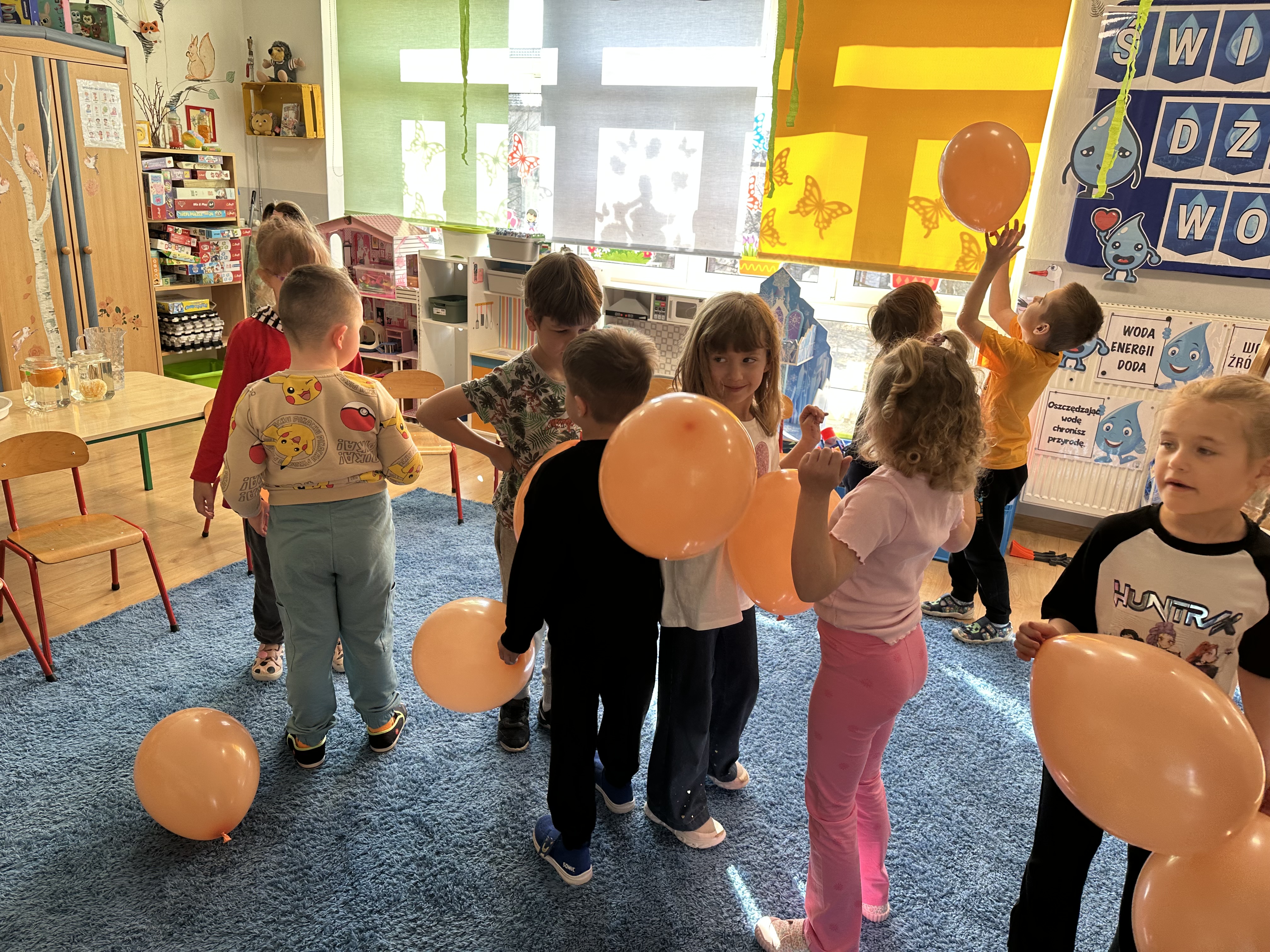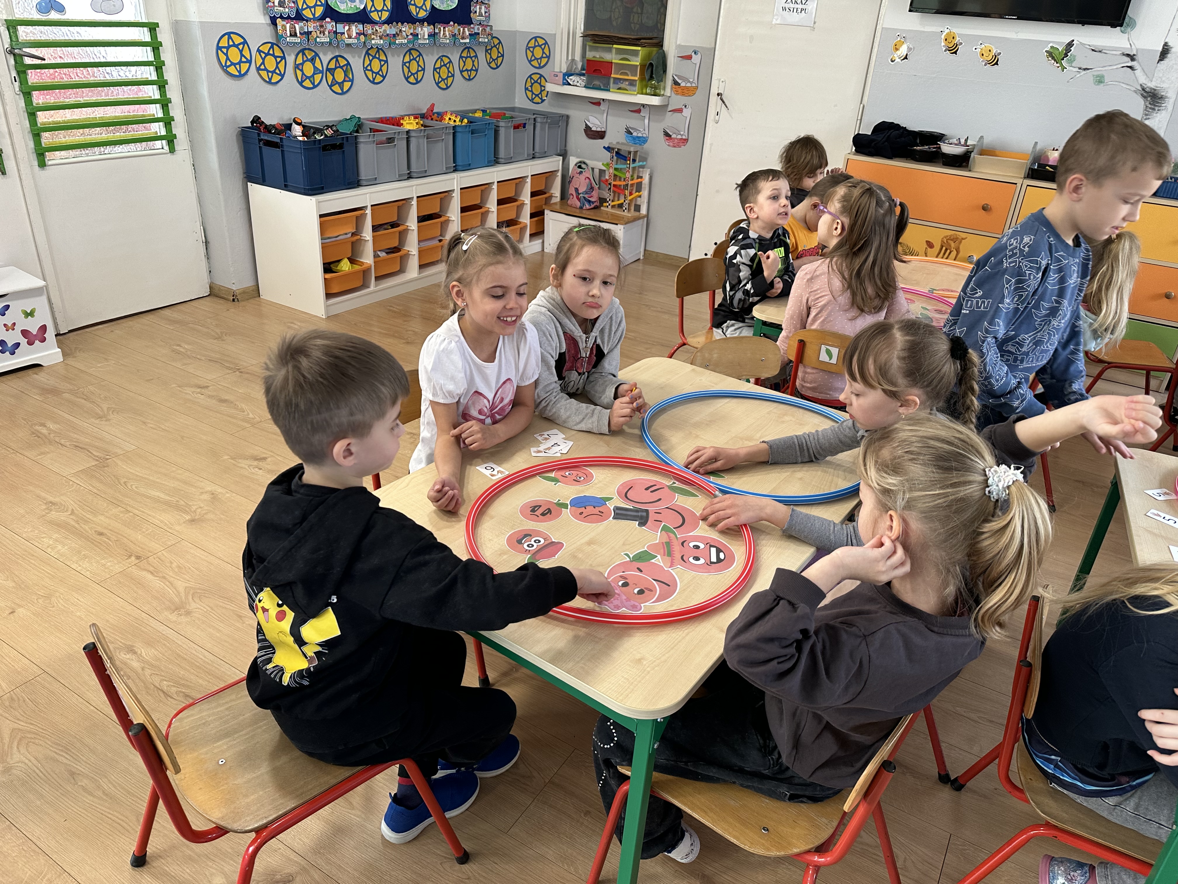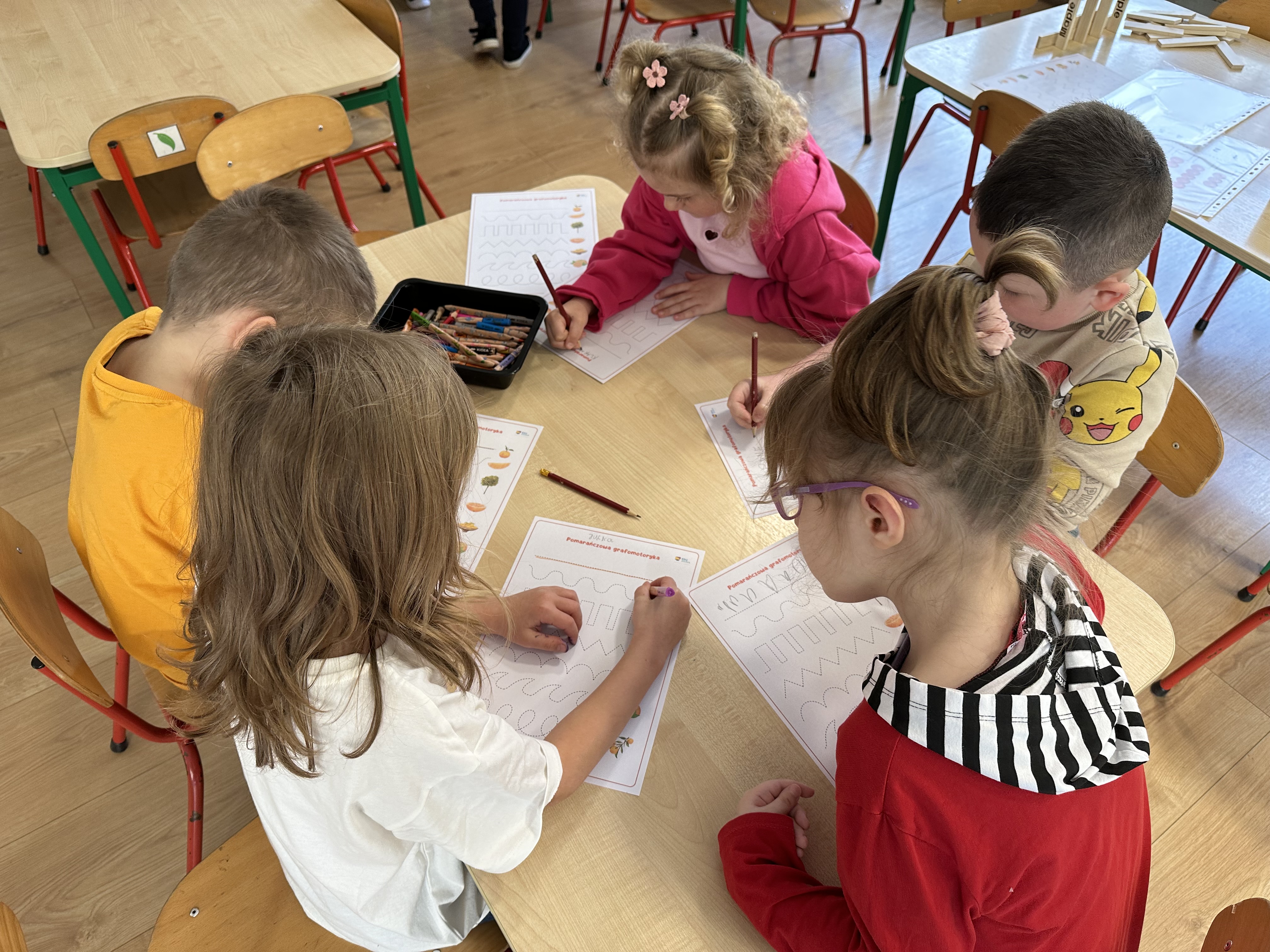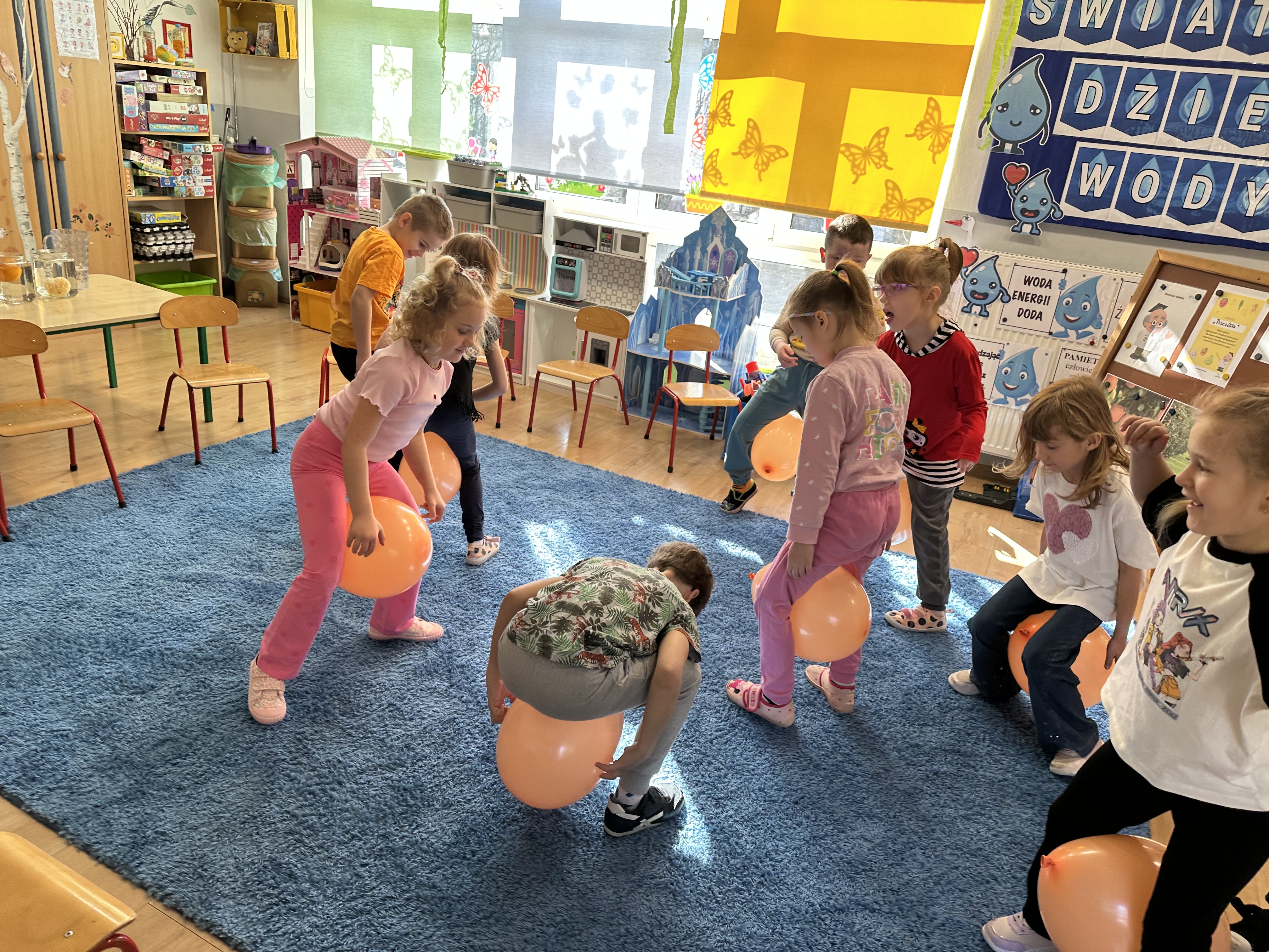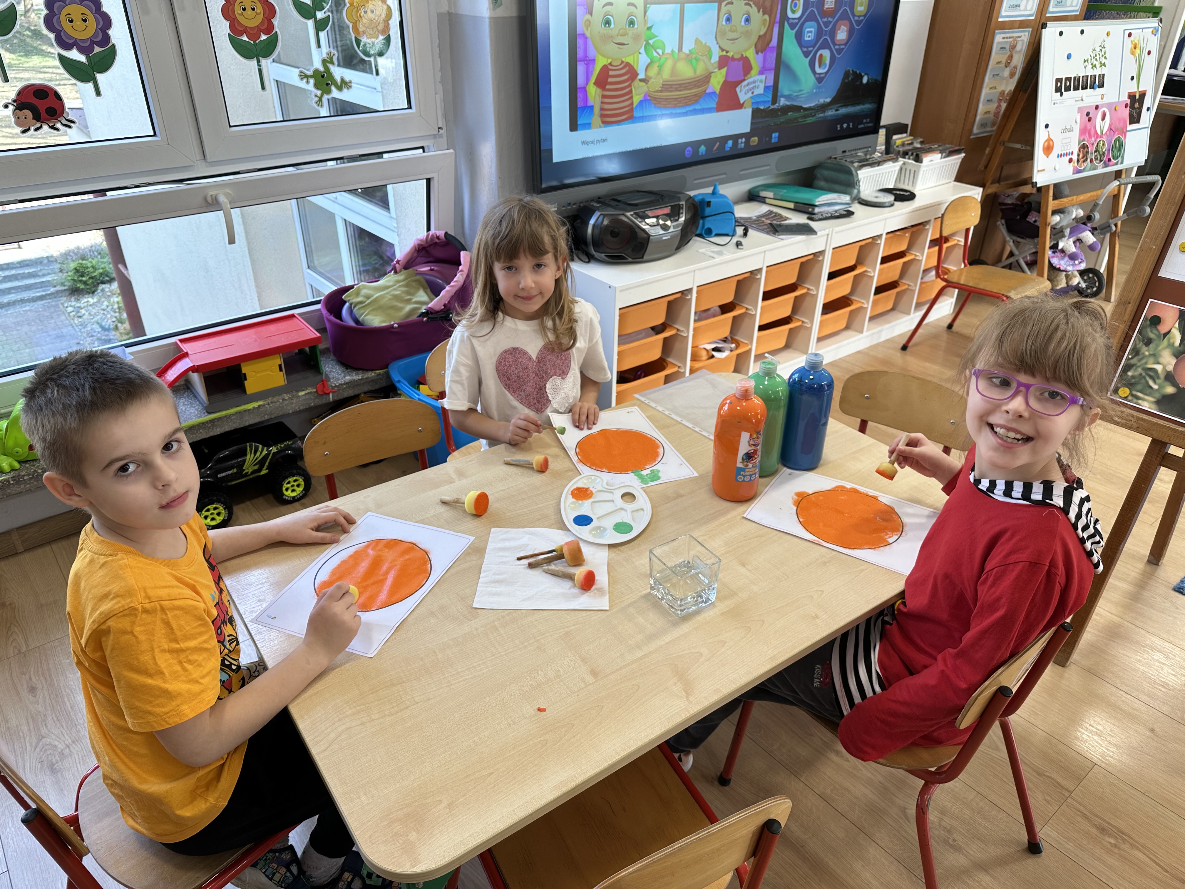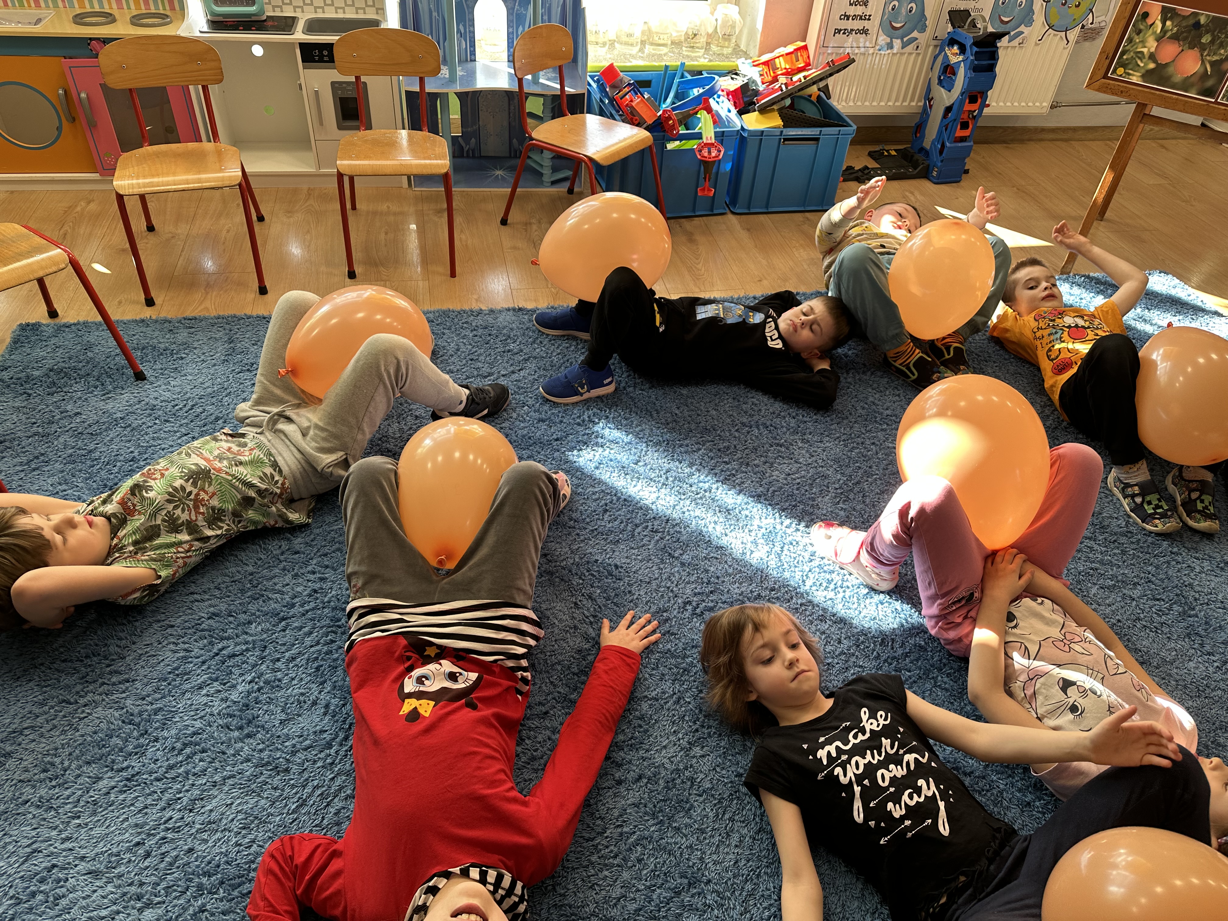 Zajęcia rozpoczęły się od otrzymania listu od profesora Animka, który wprowadził dzieci w temat kolejnej przygody. Na podstawie wskazówek zawartych w liście dzieci odgadły, że bohaterką zajęć będzie pomarańcza - owoc kojarzący się z energią i charakterystycznym kolorem. Następnie dzieci wysłuchały opowiadania pt. „Energetyczna pomarańcza” autorstwa K. Michoń. Po wysłuchaniu tekstu odbyła się rozmowa na temat jego treści. Dzieci miały możliwość poznania pomarańczy wszystkimi zmysłami - dotykały jej, wąchały oraz smakowały. Zapoznały się również z informacjami dotyczącymi uprawy pomarańczy na podstawie ilustracji. Podczas zajęć ruchowych dzieci rozwijały umiejętność reagowania na zmianę rytmu i tempa muzyki poprzez zabawy z balonem. Wykonały także pracę plastyczną przedstawiającą pomarańczę, rozwijając swoją kreatywność i zdolności manualne. W trakcie zabaw dydaktycznych dzieci doskonaliły umiejętności matematyczne, uczestnicząc w aktywności „Pomarańczowa matematyka”, polegającej między innymi na przyporządkowywaniu cyfr do odpowiedniej liczby pomarańczy. Starszaki brały również udział w eksperymencie „Czy pomarańcza pływa, czy tonie w wodzie?”, wyciągając własne wnioski i rozwijając umiejętność obserwacji. Dodatkowo dzieci ćwiczyły sprawność manualną podczas zajęć grafomotorycznych „Pomarańczowa grafomotoryka ”. Ważnym elementem zajęć było również rozwijanie samodzielności - dzieci samodzielnie przygotowały sok z pomarańczy. Na zakończenie dzieci poznały wartości odżywcze pomarańczy oraz umieściły ten owoc w „Skarbcu zaginionych składników odżywczych”, wzbogacając swoją wiedzę na temat zdrowego odżywiania.