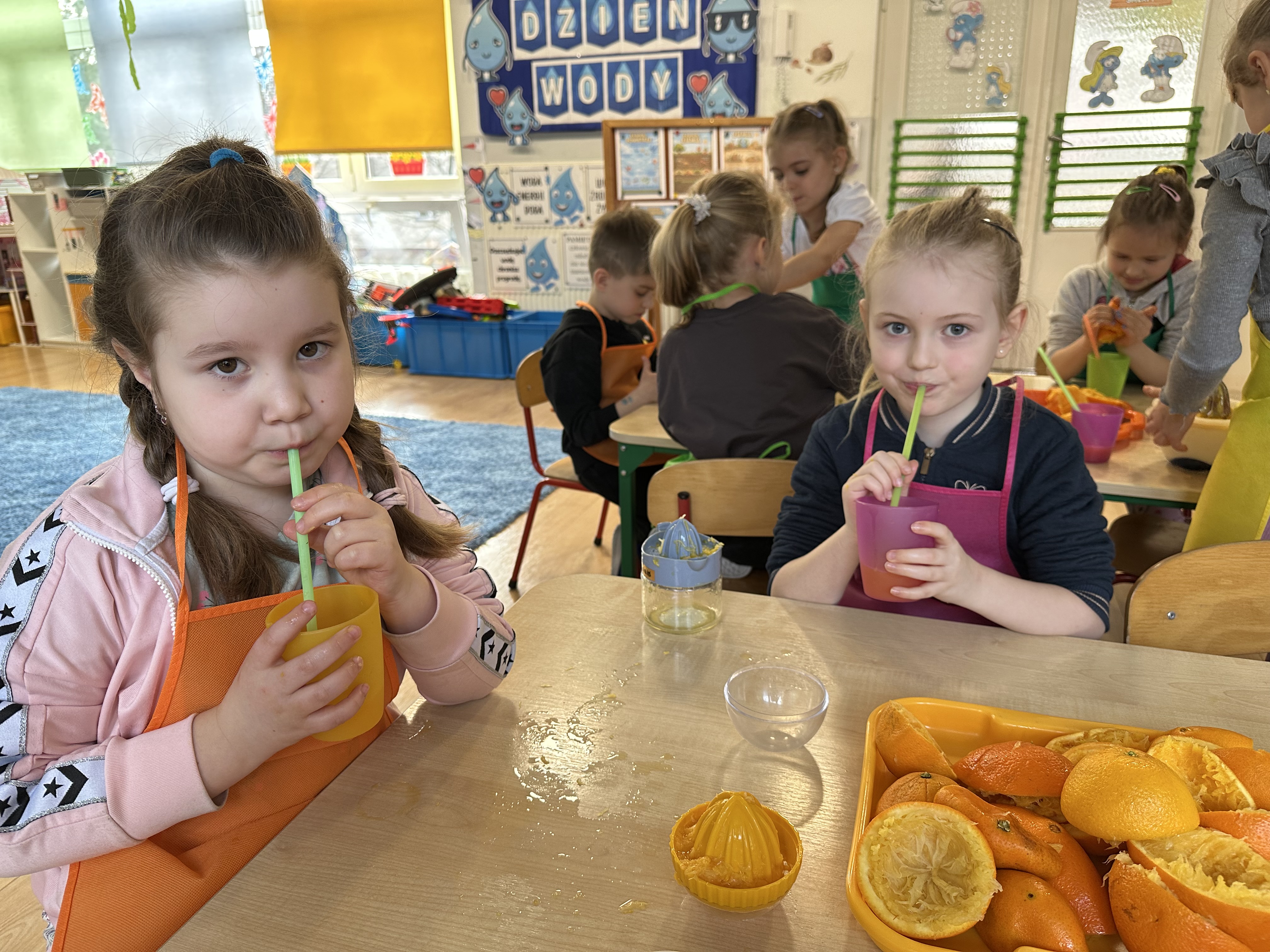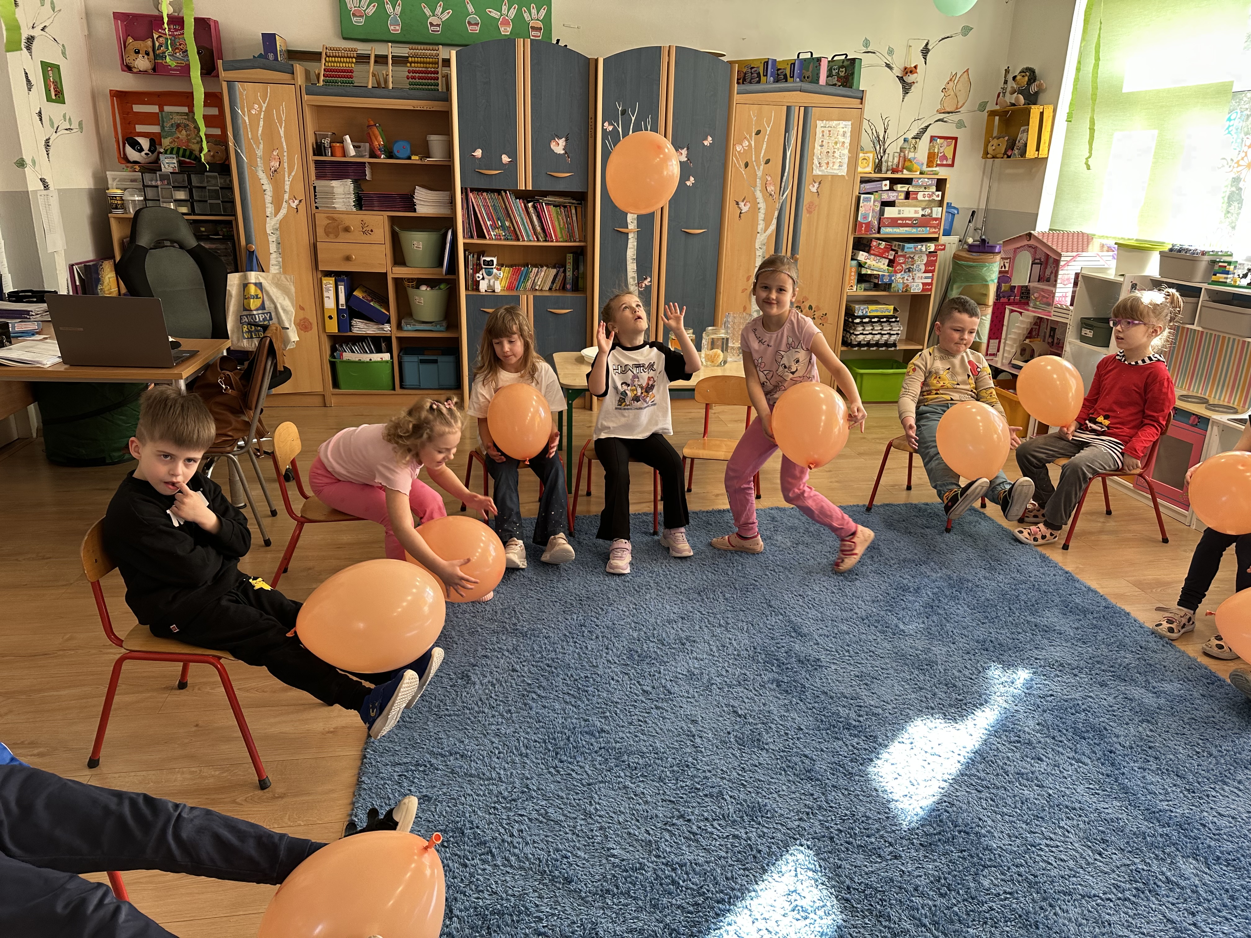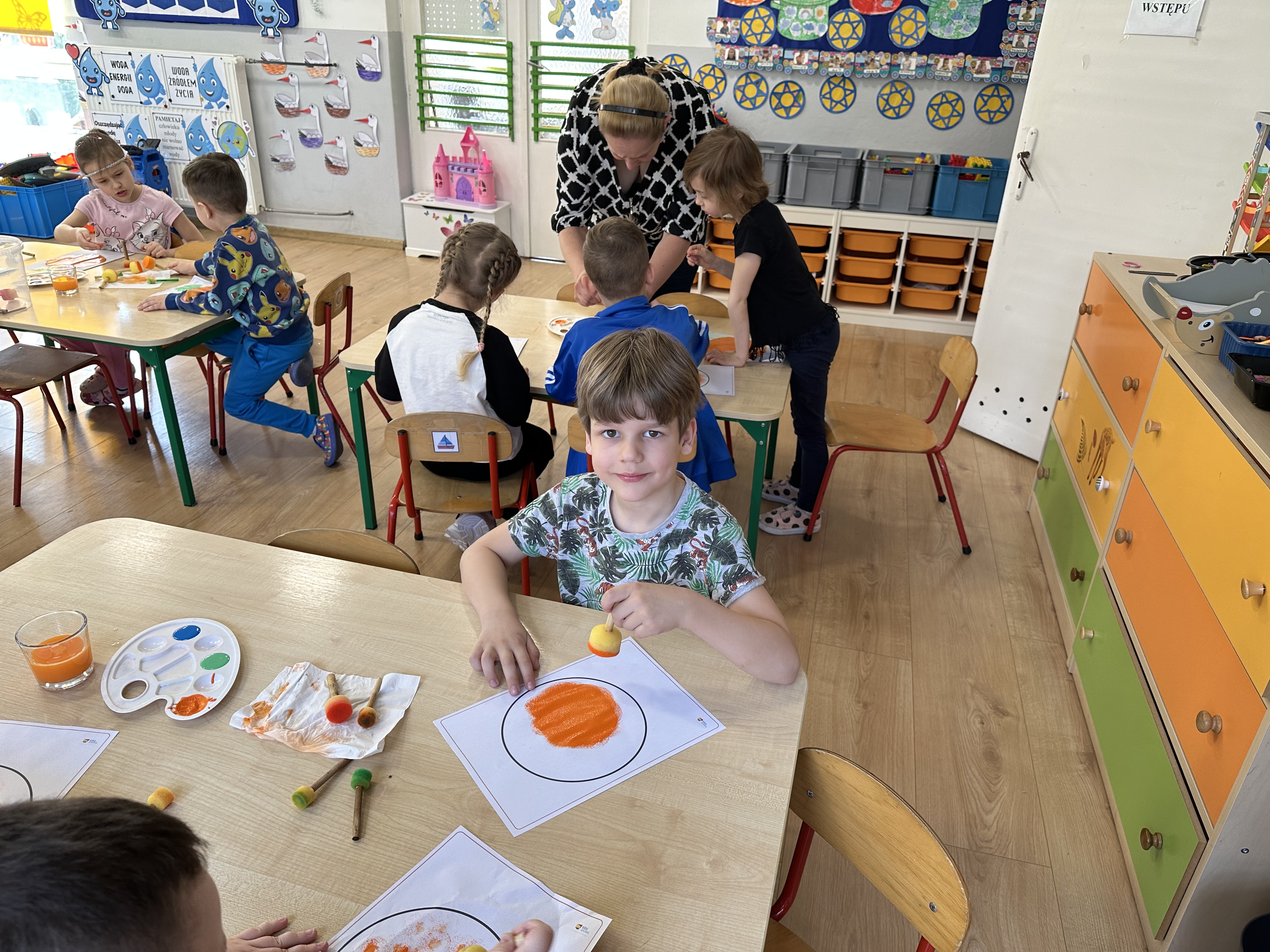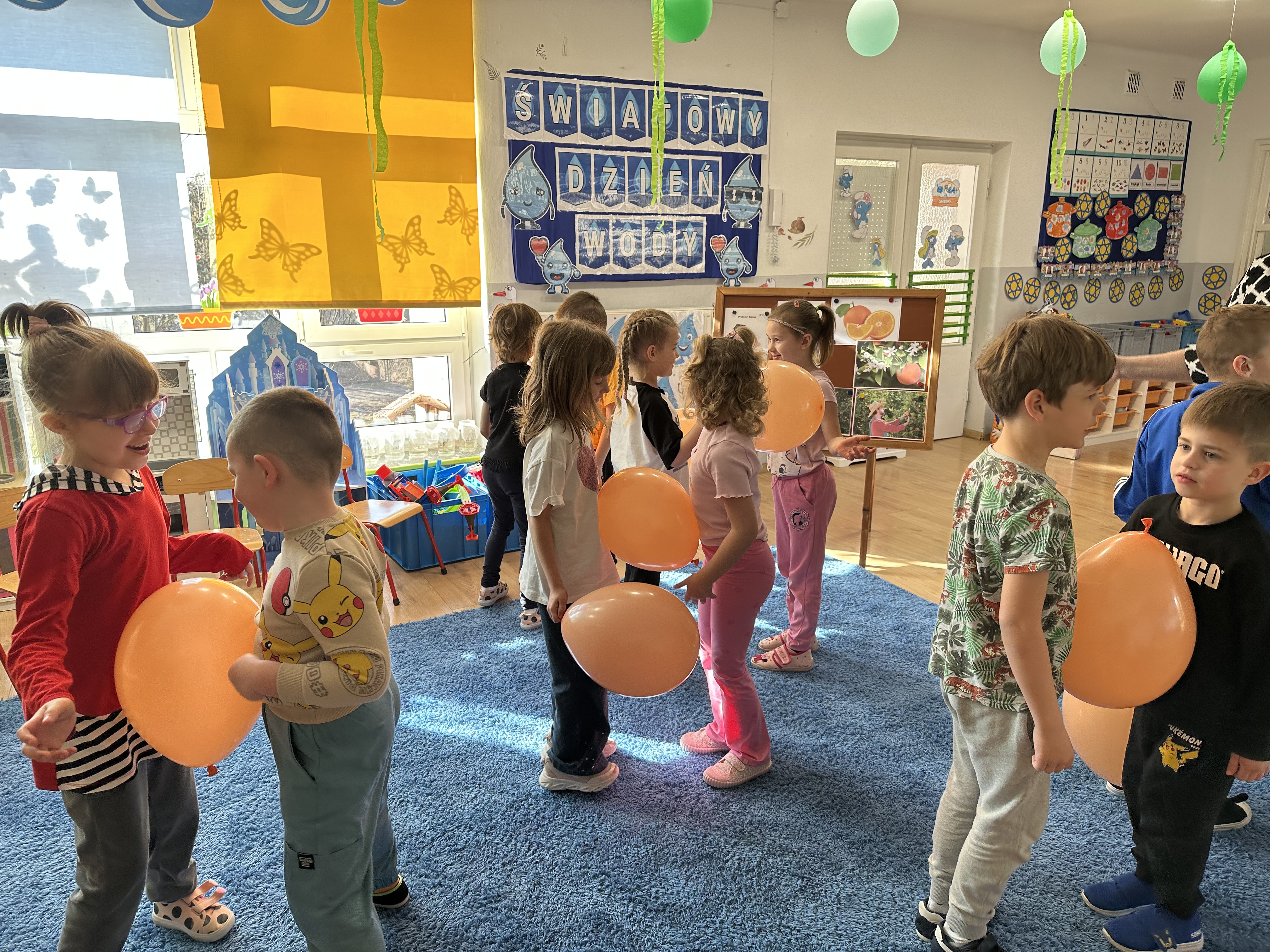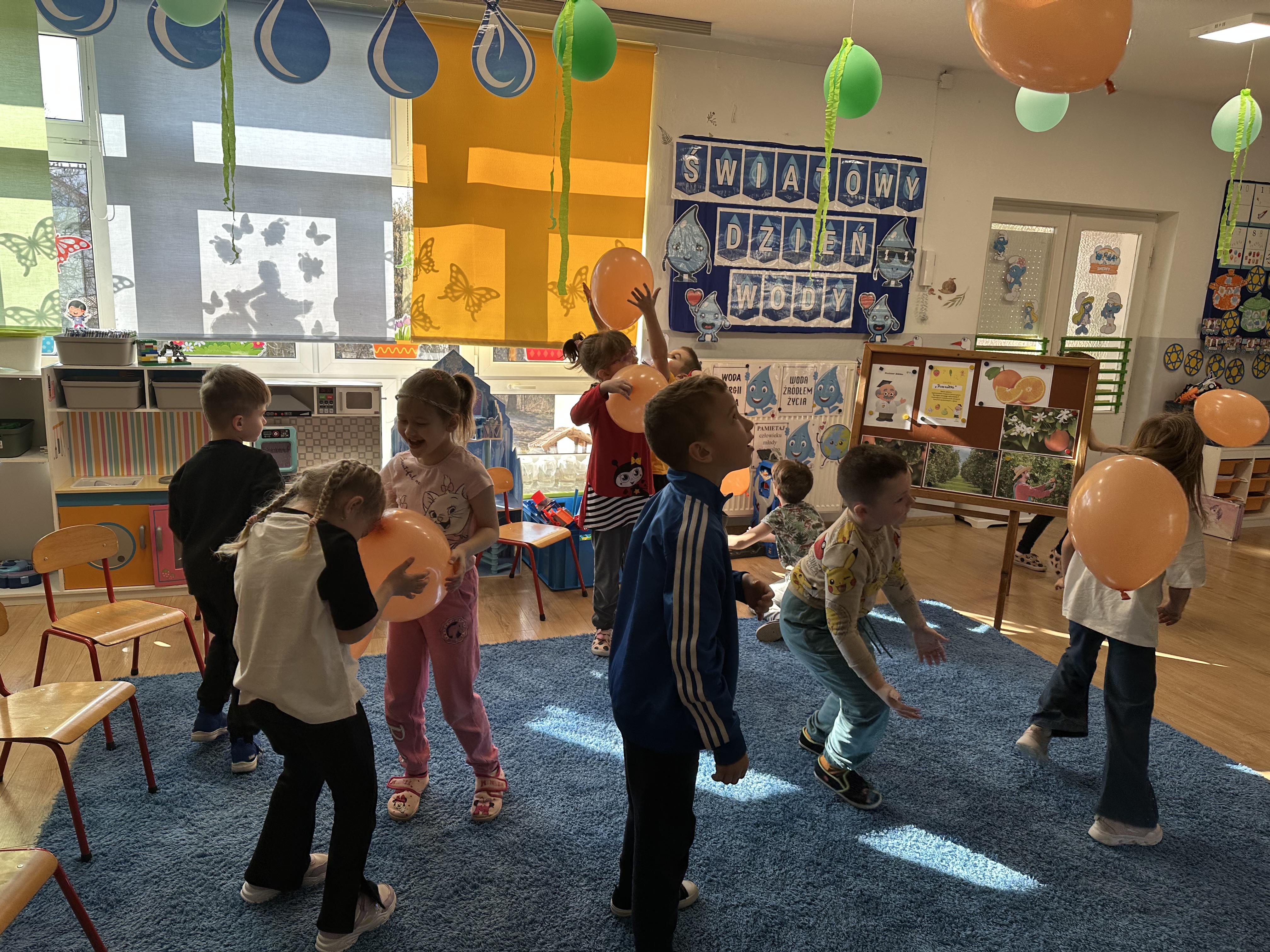 Zajęcia rozpoczęły się od otrzymania listu od profesora Animka, który wprowadził dzieci w temat kolejnej przygody. Na podstawie wskazówek zawartych w liście dzieci odgadły, że bohaterką zajęć będzie pomarańcza - owoc kojarzący się z energią i charakterystycznym kolorem. Następnie dzieci wysłuchały opowiadania pt. „Energetyczna pomarańcza” autorstwa K. Michoń. Po wysłuchaniu tekstu odbyła się rozmowa na temat jego treści. Dzieci miały możliwość poznania pomarańczy wszystkimi zmysłami - dotykały jej, wąchały oraz smakowały. Zapoznały się również z informacjami dotyczącymi uprawy pomarańczy na podstawie ilustracji. Podczas zajęć ruchowych dzieci rozwijały umiejętność reagowania na zmianę rytmu i tempa muzyki poprzez zabawy z balonem. Wykonały także pracę plastyczną przedstawiającą pomarańczę, rozwijając swoją kreatywność i zdolności manualne. W trakcie zabaw dydaktycznych dzieci doskonaliły umiejętności matematyczne, uczestnicząc w aktywności „Pomarańczowa matematyka”, polegającej między innymi na przyporządkowywaniu cyfr do odpowiedniej liczby pomarańczy. Starszaki brały również udział w eksperymencie „Czy pomarańcza pływa, czy tonie w wodzie?”, wyciągając własne wnioski i rozwijając umiejętność obserwacji. Dodatkowo dzieci ćwiczyły sprawność manualną podczas zajęć grafomotorycznych „Pomarańczowa grafomotoryka ”. Ważnym elementem zajęć było również rozwijanie samodzielności - dzieci samodzielnie przygotowały sok z pomarańczy. Na zakończenie dzieci poznały wartości odżywcze pomarańczy oraz umieściły ten owoc w „Skarbcu zaginionych składników odżywczych”, wzbogacając swoją wiedzę na temat zdrowego odżywiania.