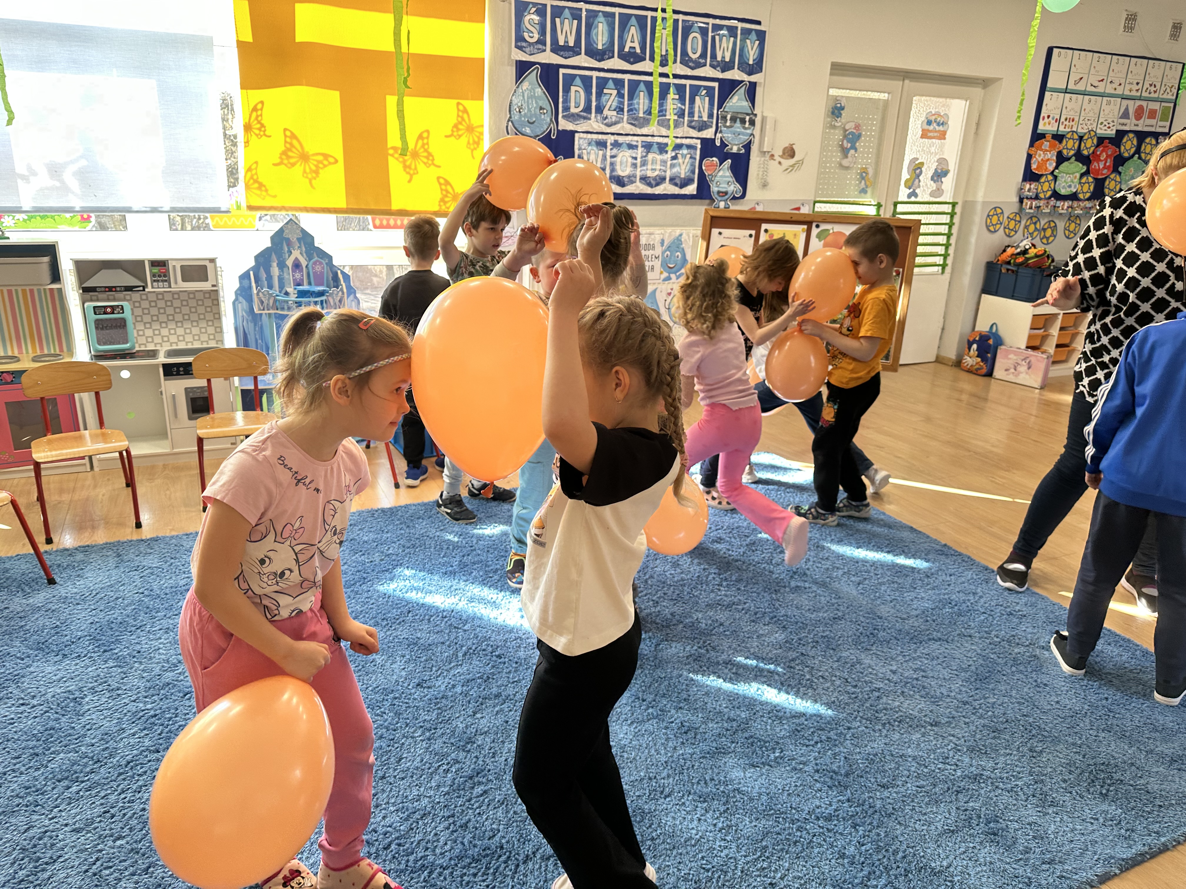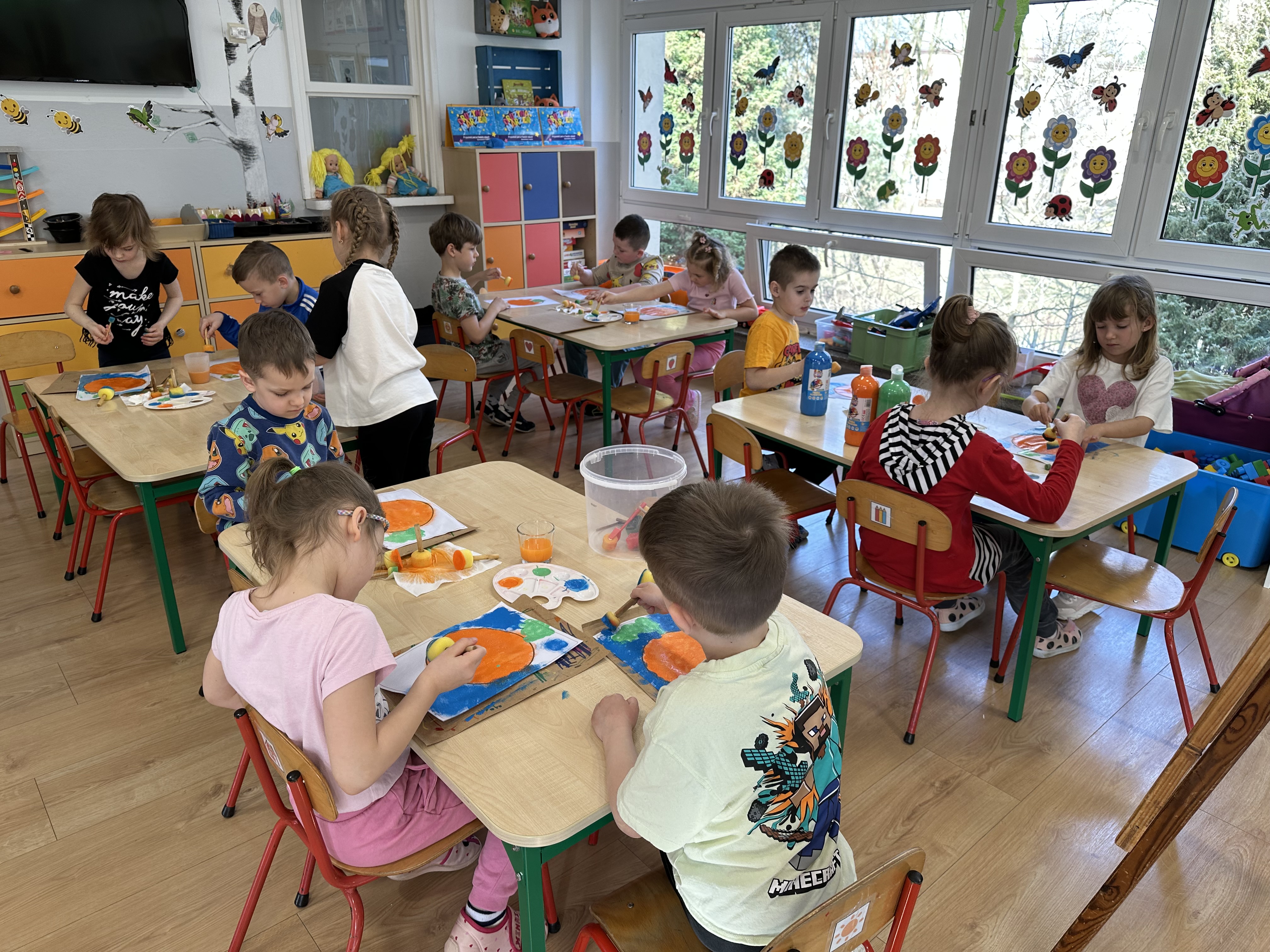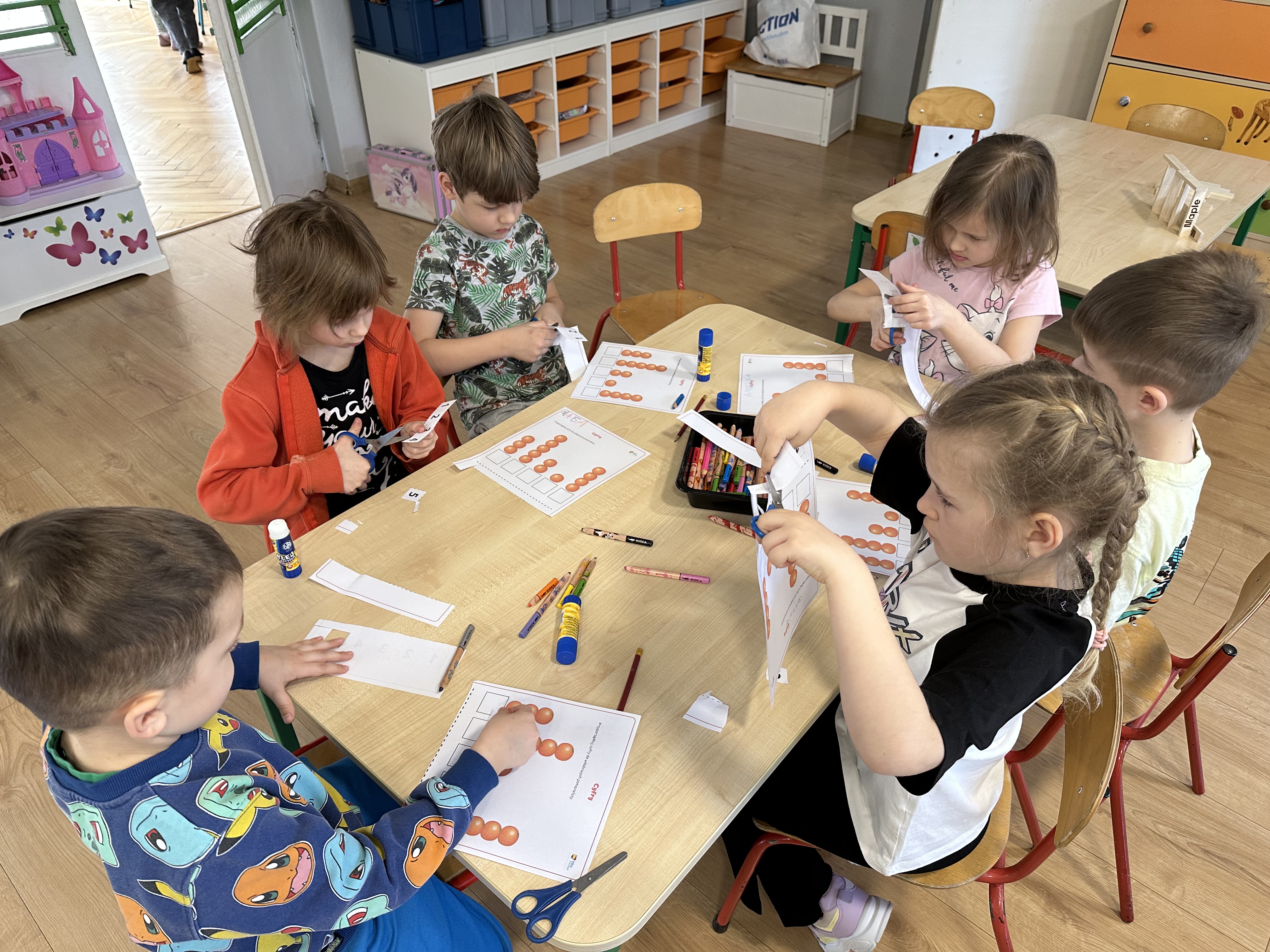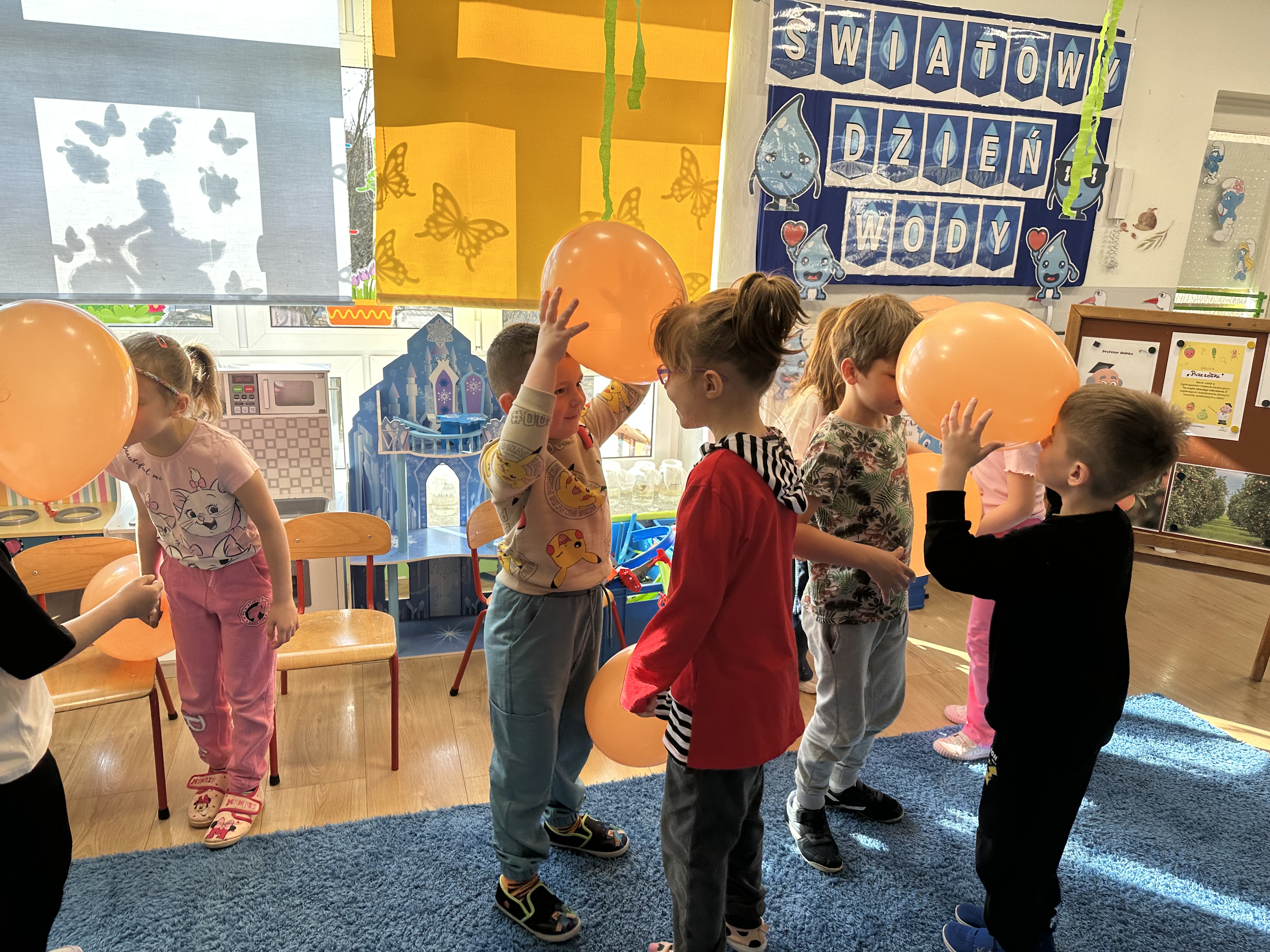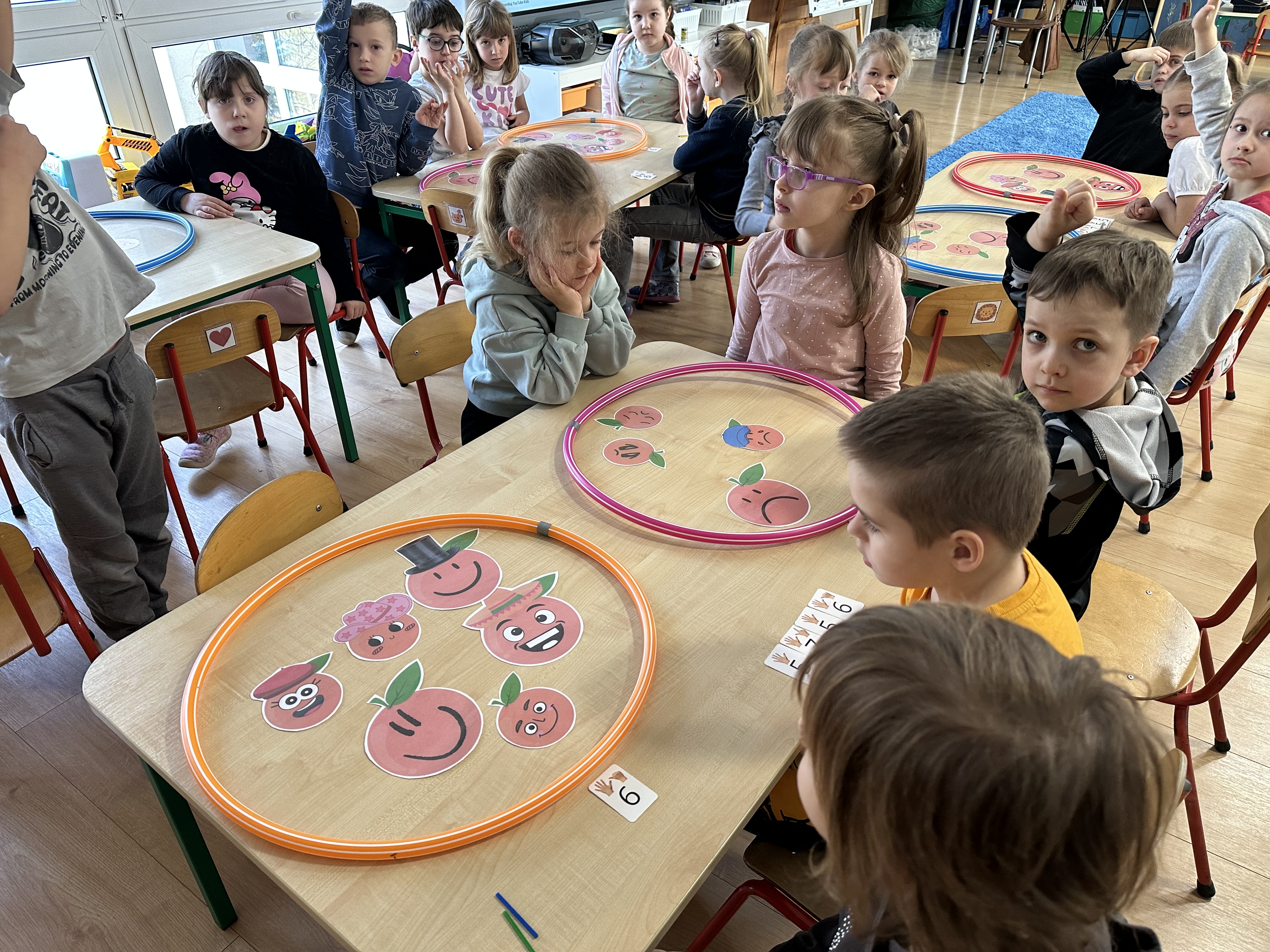 Zajęcia rozpoczęły się od otrzymania listu od profesora Animka, który wprowadził dzieci w temat kolejnej przygody. Na podstawie wskazówek zawartych w liście dzieci odgadły, że bohaterką zajęć będzie pomarańcza - owoc kojarzący się z energią i charakterystycznym kolorem. Następnie dzieci wysłuchały opowiadania pt. „Energetyczna pomarańcza” autorstwa K. Michoń. Po wysłuchaniu tekstu odbyła się rozmowa na temat jego treści. Dzieci miały możliwość poznania pomarańczy wszystkimi zmysłami - dotykały jej, wąchały oraz smakowały. Zapoznały się również z informacjami dotyczącymi uprawy pomarańczy na podstawie ilustracji. Podczas zajęć ruchowych dzieci rozwijały umiejętność reagowania na zmianę rytmu i tempa muzyki poprzez zabawy z balonem. Wykonały także pracę plastyczną przedstawiającą pomarańczę, rozwijając swoją kreatywność i zdolności manualne. W trakcie zabaw dydaktycznych dzieci doskonaliły umiejętności matematyczne, uczestnicząc w aktywności „Pomarańczowa matematyka”, polegającej między innymi na przyporządkowywaniu cyfr do odpowiedniej liczby pomarańczy. Starszaki brały również udział w eksperymencie „Czy pomarańcza pływa, czy tonie w wodzie?”, wyciągając własne wnioski i rozwijając umiejętność obserwacji. Dodatkowo dzieci ćwiczyły sprawność manualną podczas zajęć grafomotorycznych „Pomarańczowa grafomotoryka ”. Ważnym elementem zajęć było również rozwijanie samodzielności - dzieci samodzielnie przygotowały sok z pomarańczy. Na zakończenie dzieci poznały wartości odżywcze pomarańczy oraz umieściły ten owoc w „Skarbcu zaginionych składników odżywczych”, wzbogacając swoją wiedzę na temat zdrowego odżywiania.