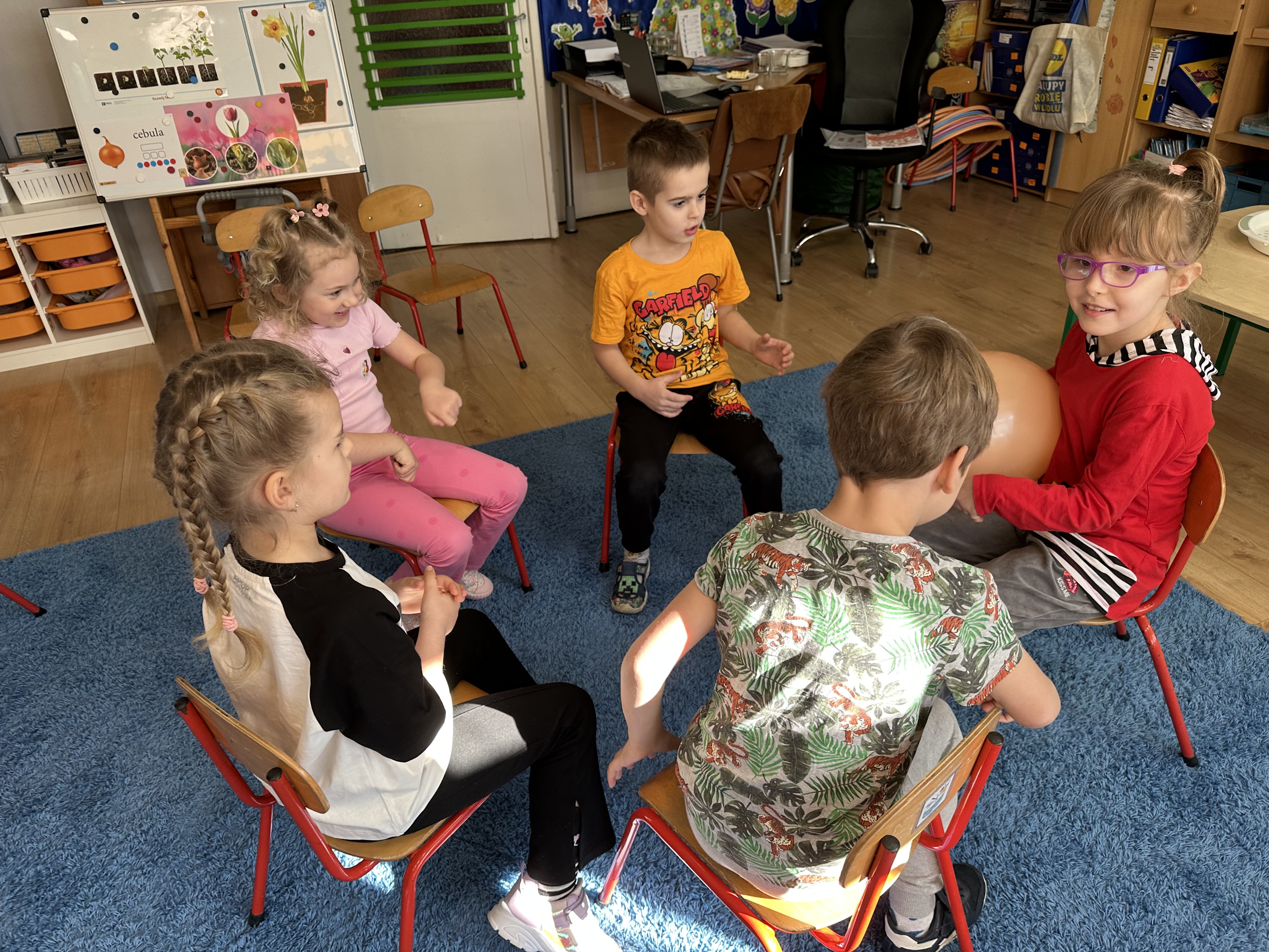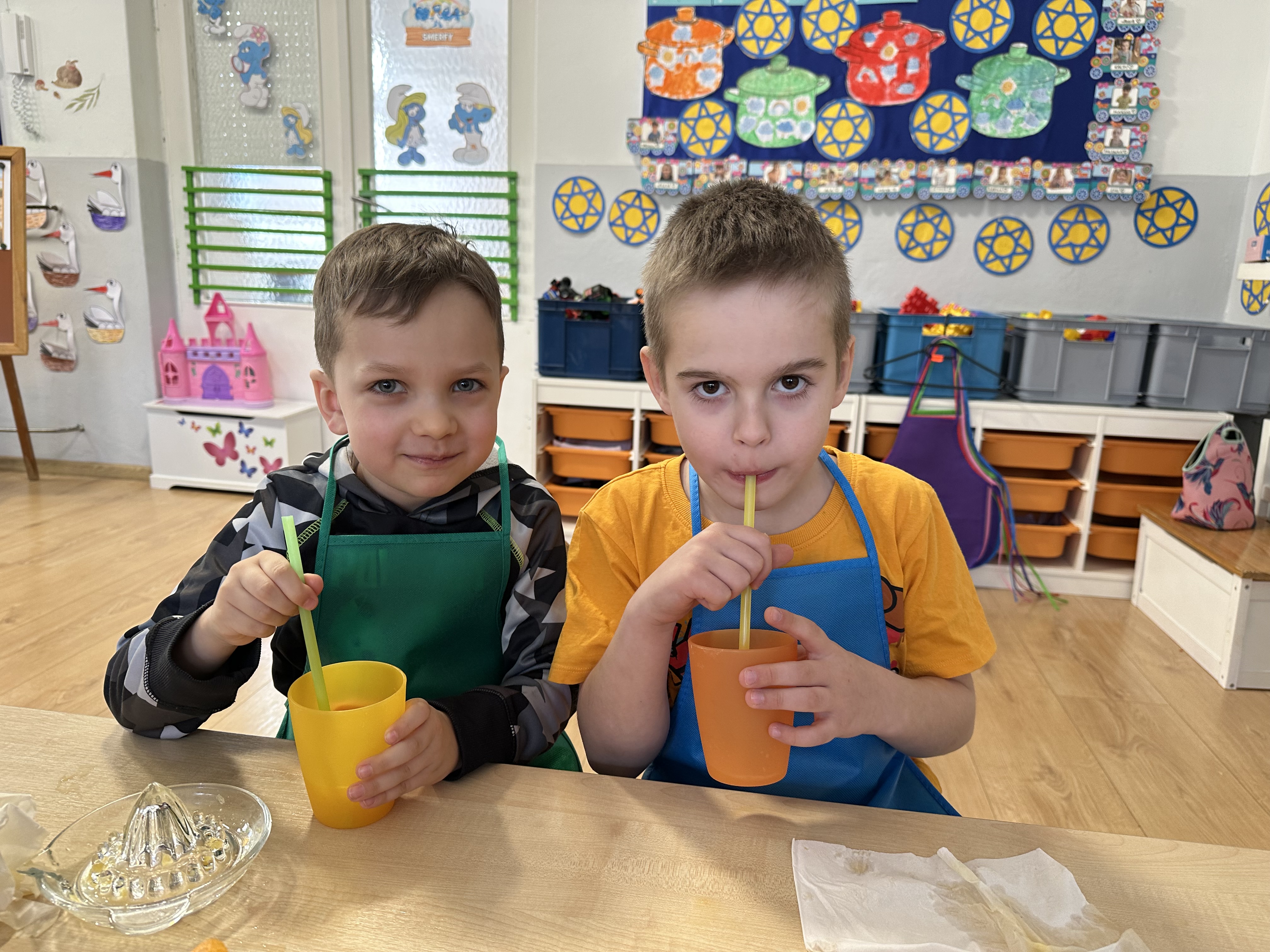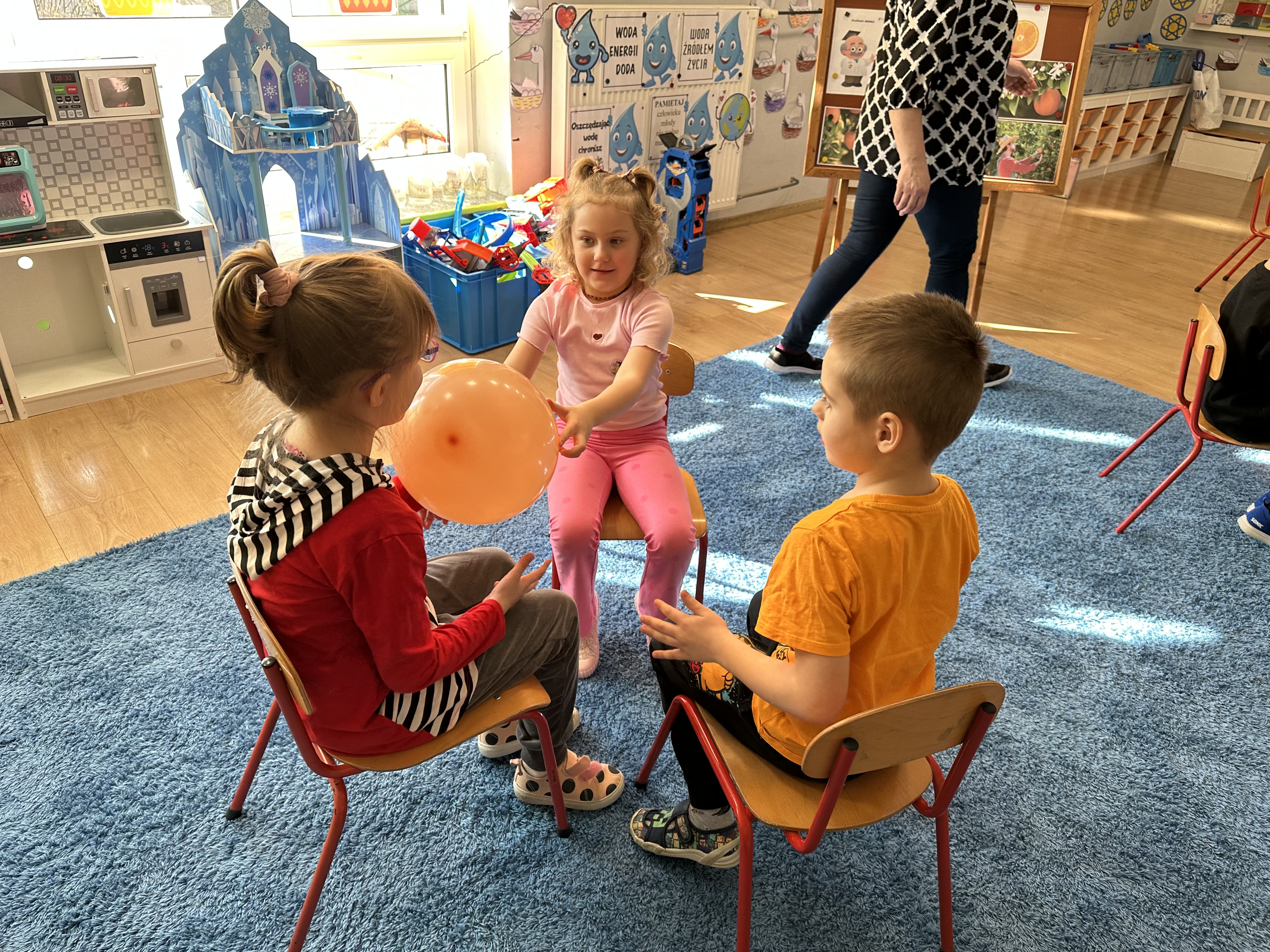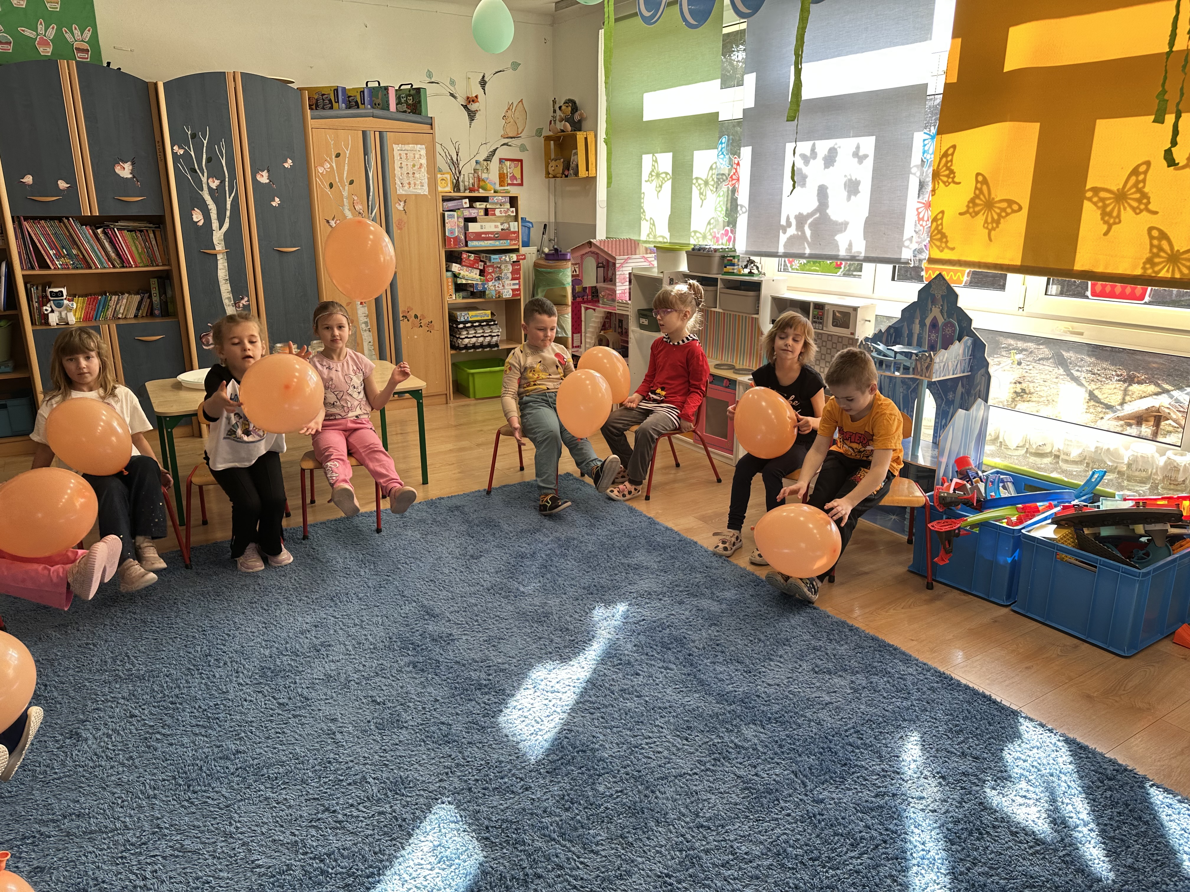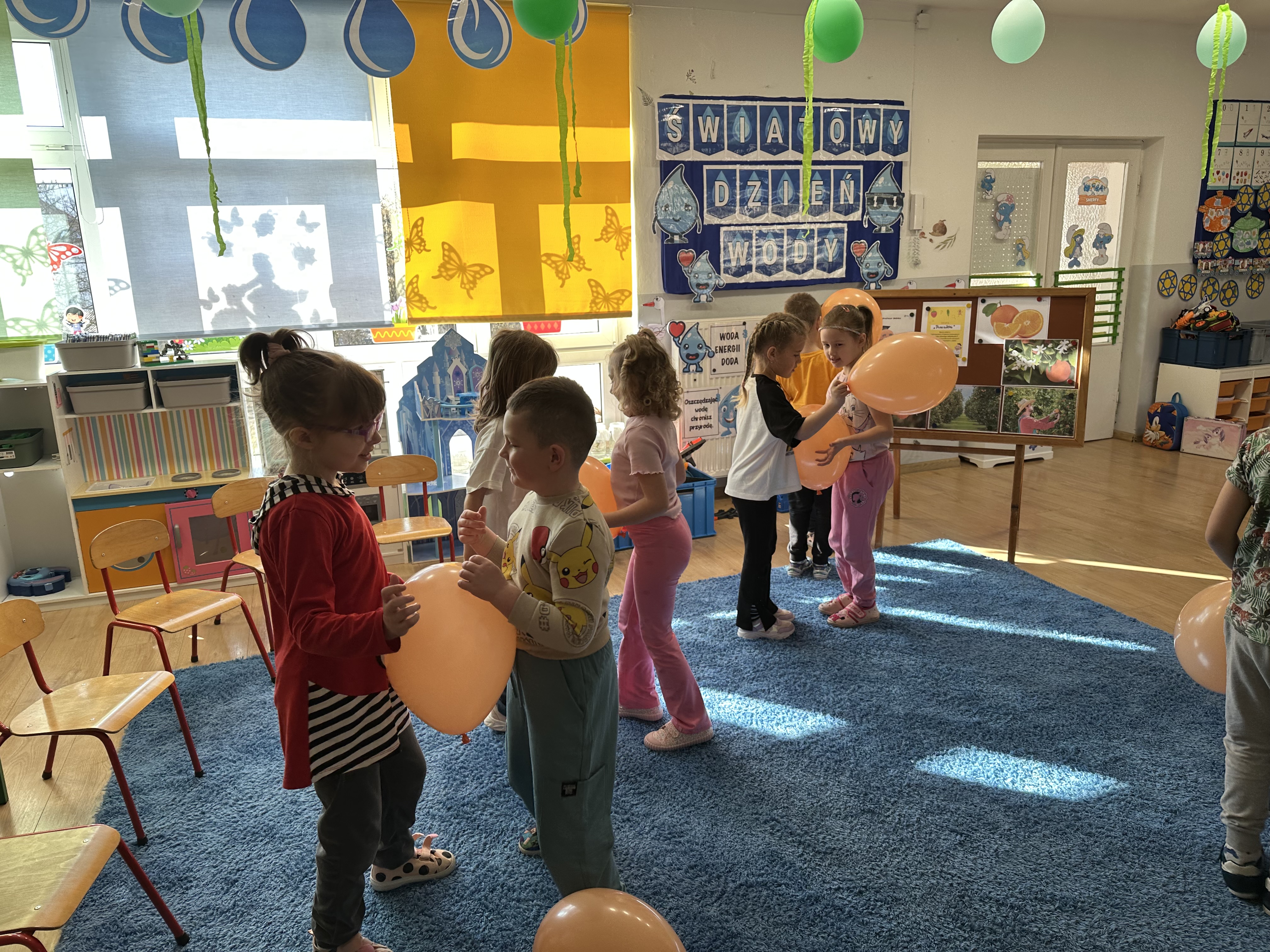 Zajęcia rozpoczęły się od otrzymania listu od profesora Animka, który wprowadził dzieci w temat kolejnej przygody. Na podstawie wskazówek zawartych w liście dzieci odgadły, że bohaterką zajęć będzie pomarańcza - owoc kojarzący się z energią i charakterystycznym kolorem. Następnie dzieci wysłuchały opowiadania pt. „Energetyczna pomarańcza” autorstwa K. Michoń. Po wysłuchaniu tekstu odbyła się rozmowa na temat jego treści. Dzieci miały możliwość poznania pomarańczy wszystkimi zmysłami - dotykały jej, wąchały oraz smakowały. Zapoznały się również z informacjami dotyczącymi uprawy pomarańczy na podstawie ilustracji. Podczas zajęć ruchowych dzieci rozwijały umiejętność reagowania na zmianę rytmu i tempa muzyki poprzez zabawy z balonem. Wykonały także pracę plastyczną przedstawiającą pomarańczę, rozwijając swoją kreatywność i zdolności manualne. W trakcie zabaw dydaktycznych dzieci doskonaliły umiejętności matematyczne, uczestnicząc w aktywności „Pomarańczowa matematyka”, polegającej między innymi na przyporządkowywaniu cyfr do odpowiedniej liczby pomarańczy. Starszaki brały również udział w eksperymencie „Czy pomarańcza pływa, czy tonie w wodzie?”, wyciągając własne wnioski i rozwijając umiejętność obserwacji. Dodatkowo dzieci ćwiczyły sprawność manualną podczas zajęć grafomotorycznych „Pomarańczowa grafomotoryka ”. Ważnym elementem zajęć było również rozwijanie samodzielności - dzieci samodzielnie przygotowały sok z pomarańczy. Na zakończenie dzieci poznały wartości odżywcze pomarańczy oraz umieściły ten owoc w „Skarbcu zaginionych składników odżywczych”, wzbogacając swoją wiedzę na temat zdrowego odżywiania.