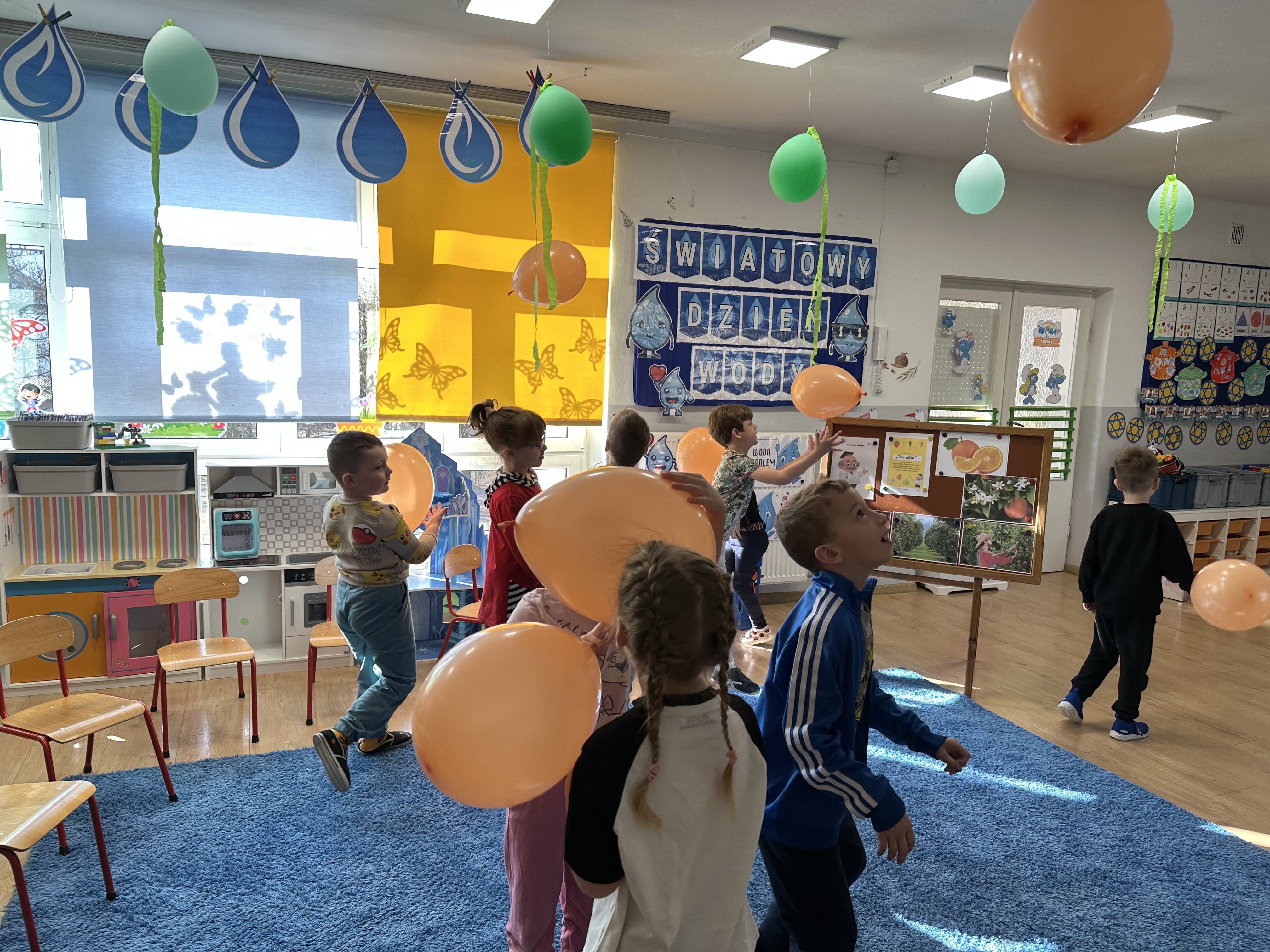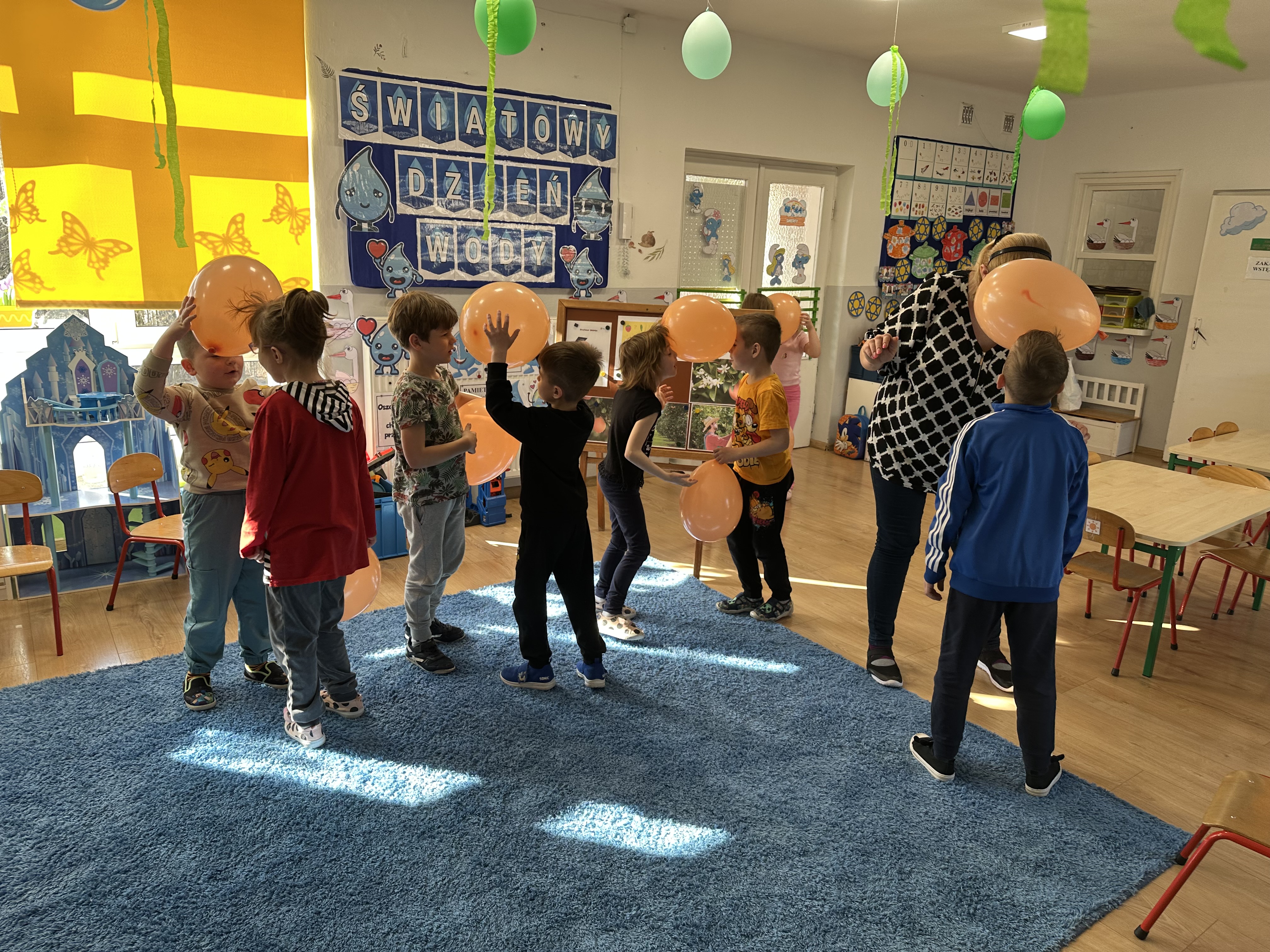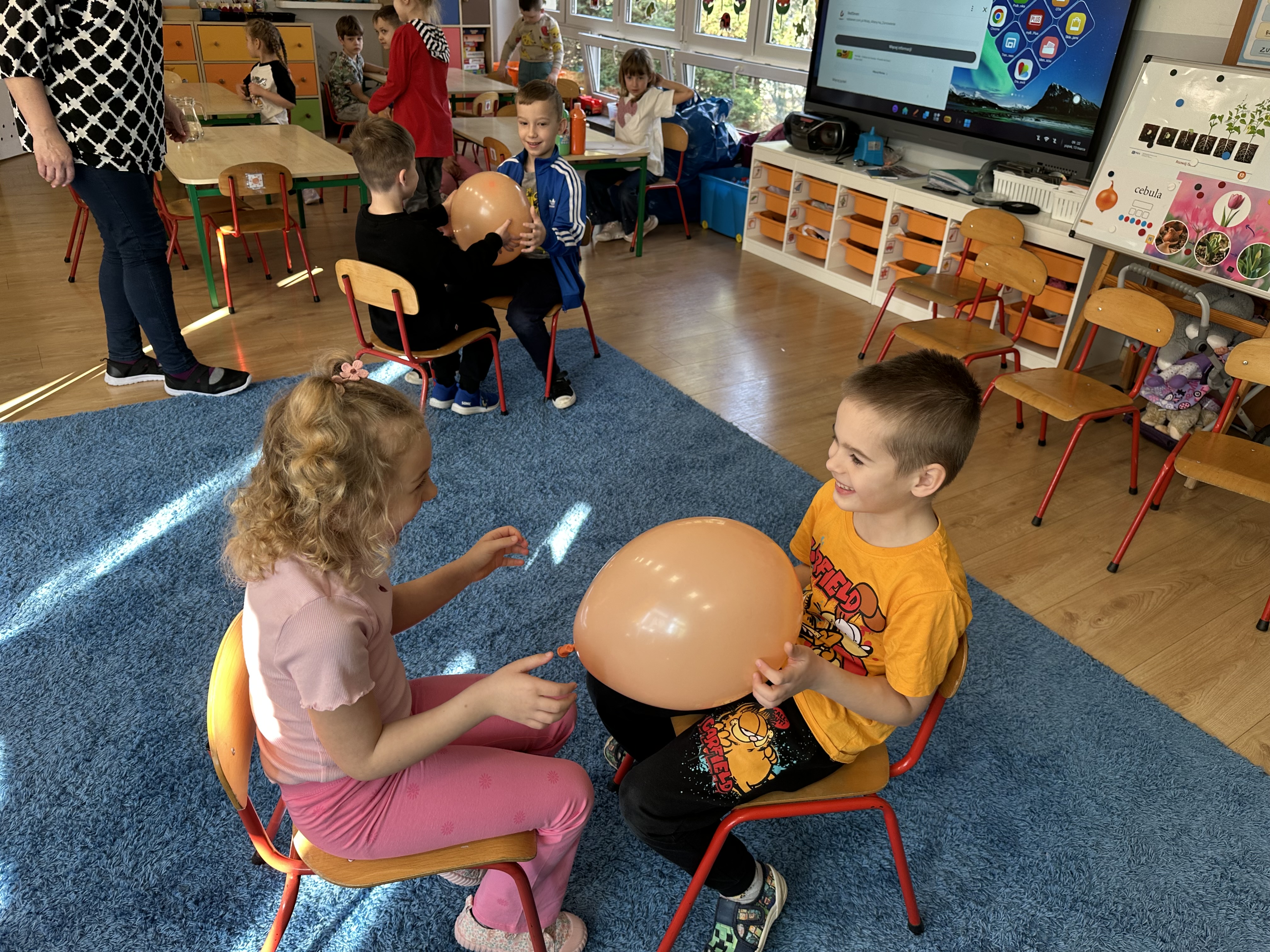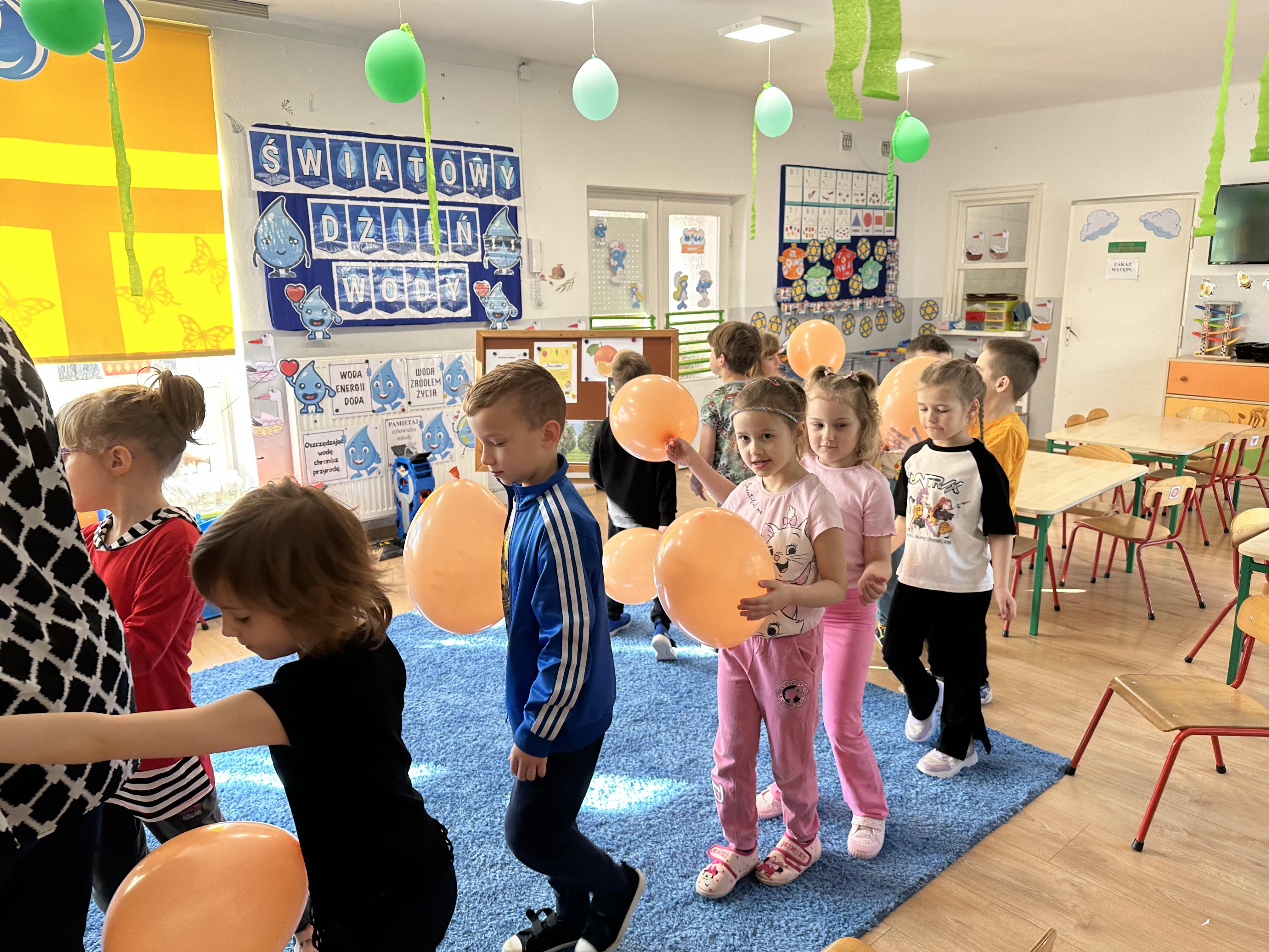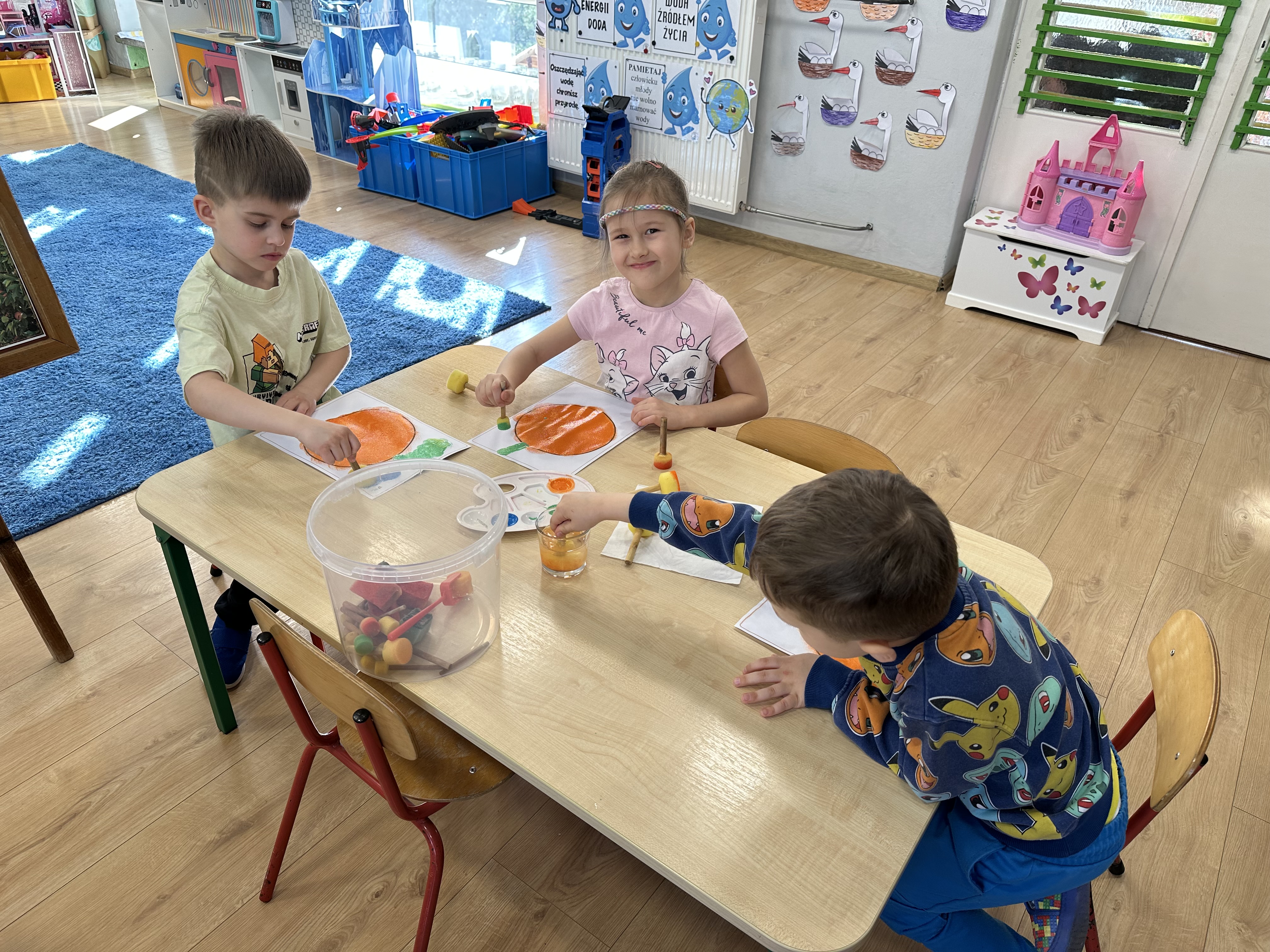 Zajęcia rozpoczęły się od otrzymania listu od profesora Animka, który wprowadził dzieci w temat kolejnej przygody. Na podstawie wskazówek zawartych w liście dzieci odgadły, że bohaterką zajęć będzie pomarańcza - owoc kojarzący się z energią i charakterystycznym kolorem. Następnie dzieci wysłuchały opowiadania pt. „Energetyczna pomarańcza” autorstwa K. Michoń. Po wysłuchaniu tekstu odbyła się rozmowa na temat jego treści. Dzieci miały możliwość poznania pomarańczy wszystkimi zmysłami - dotykały jej, wąchały oraz smakowały. Zapoznały się również z informacjami dotyczącymi uprawy pomarańczy na podstawie ilustracji. Podczas zajęć ruchowych dzieci rozwijały umiejętność reagowania na zmianę rytmu i tempa muzyki poprzez zabawy z balonem. Wykonały także pracę plastyczną przedstawiającą pomarańczę, rozwijając swoją kreatywność i zdolności manualne. W trakcie zabaw dydaktycznych dzieci doskonaliły umiejętności matematyczne, uczestnicząc w aktywności „Pomarańczowa matematyka”, polegającej między innymi na przyporządkowywaniu cyfr do odpowiedniej liczby pomarańczy. Starszaki brały również udział w eksperymencie „Czy pomarańcza pływa, czy tonie w wodzie?”, wyciągając własne wnioski i rozwijając umiejętność obserwacji. Dodatkowo dzieci ćwiczyły sprawność manualną podczas zajęć grafomotorycznych „Pomarańczowa grafomotoryka ”. Ważnym elementem zajęć było również rozwijanie samodzielności - dzieci samodzielnie przygotowały sok z pomarańczy. Na zakończenie dzieci poznały wartości odżywcze pomarańczy oraz umieściły ten owoc w „Skarbcu zaginionych składników odżywczych”, wzbogacając swoją wiedzę na temat zdrowego odżywiania.