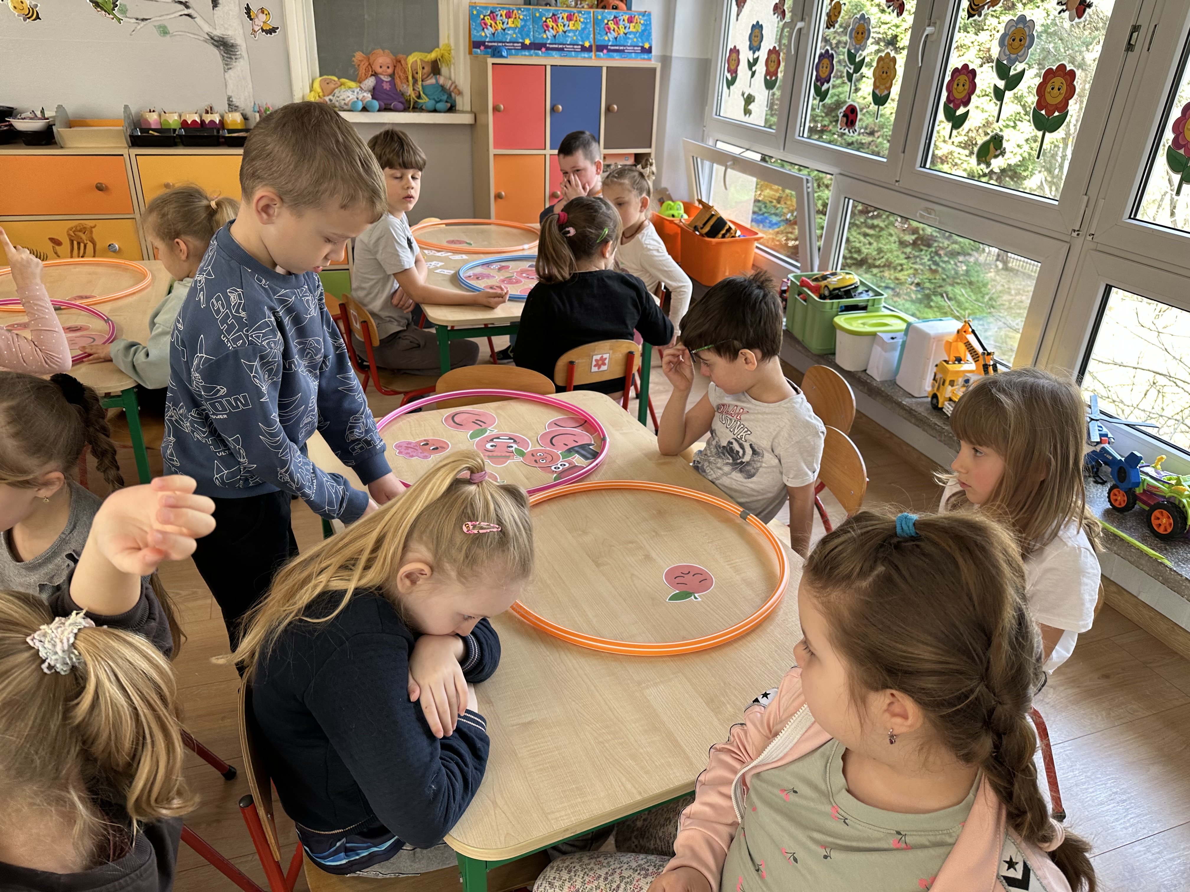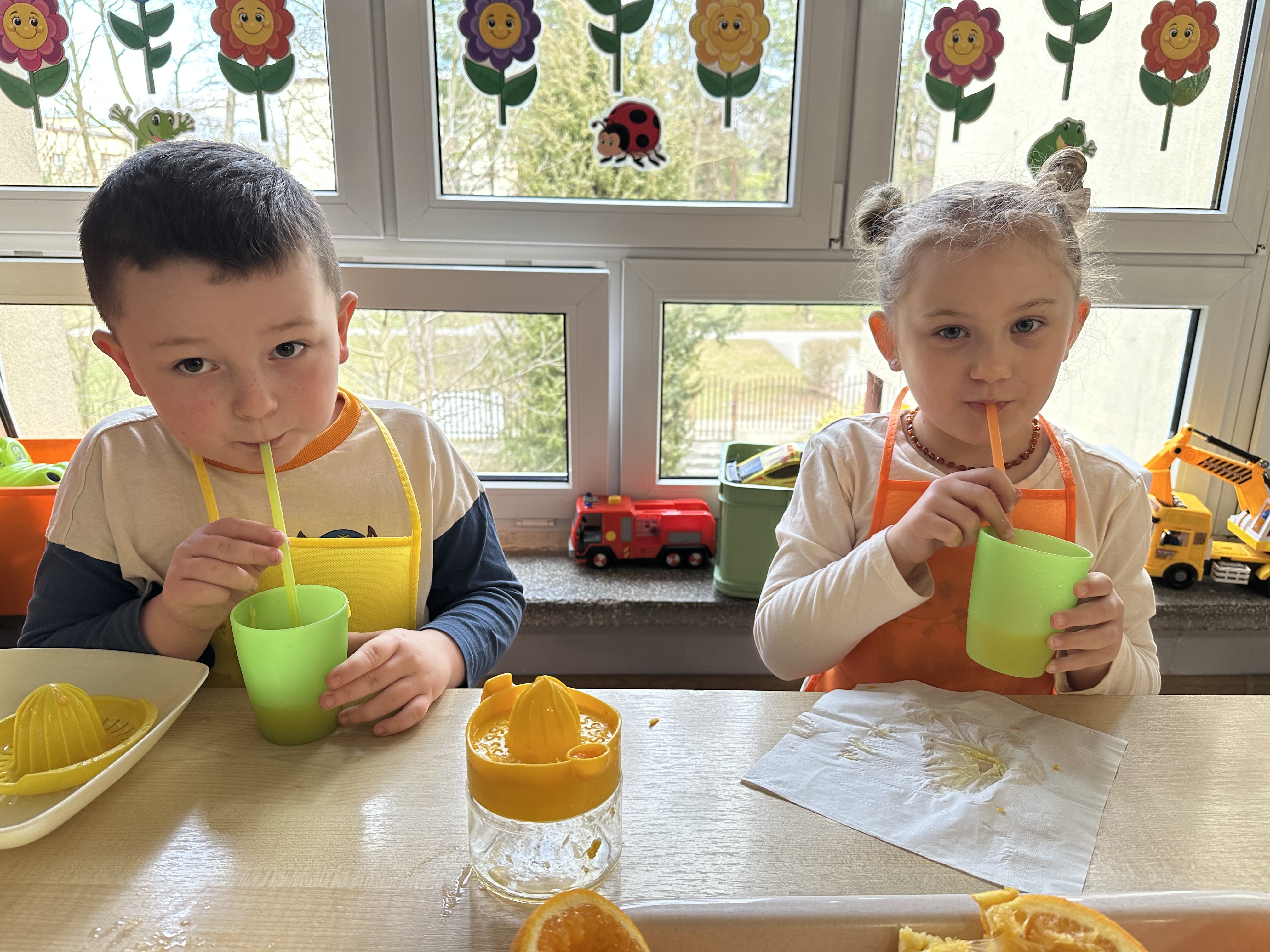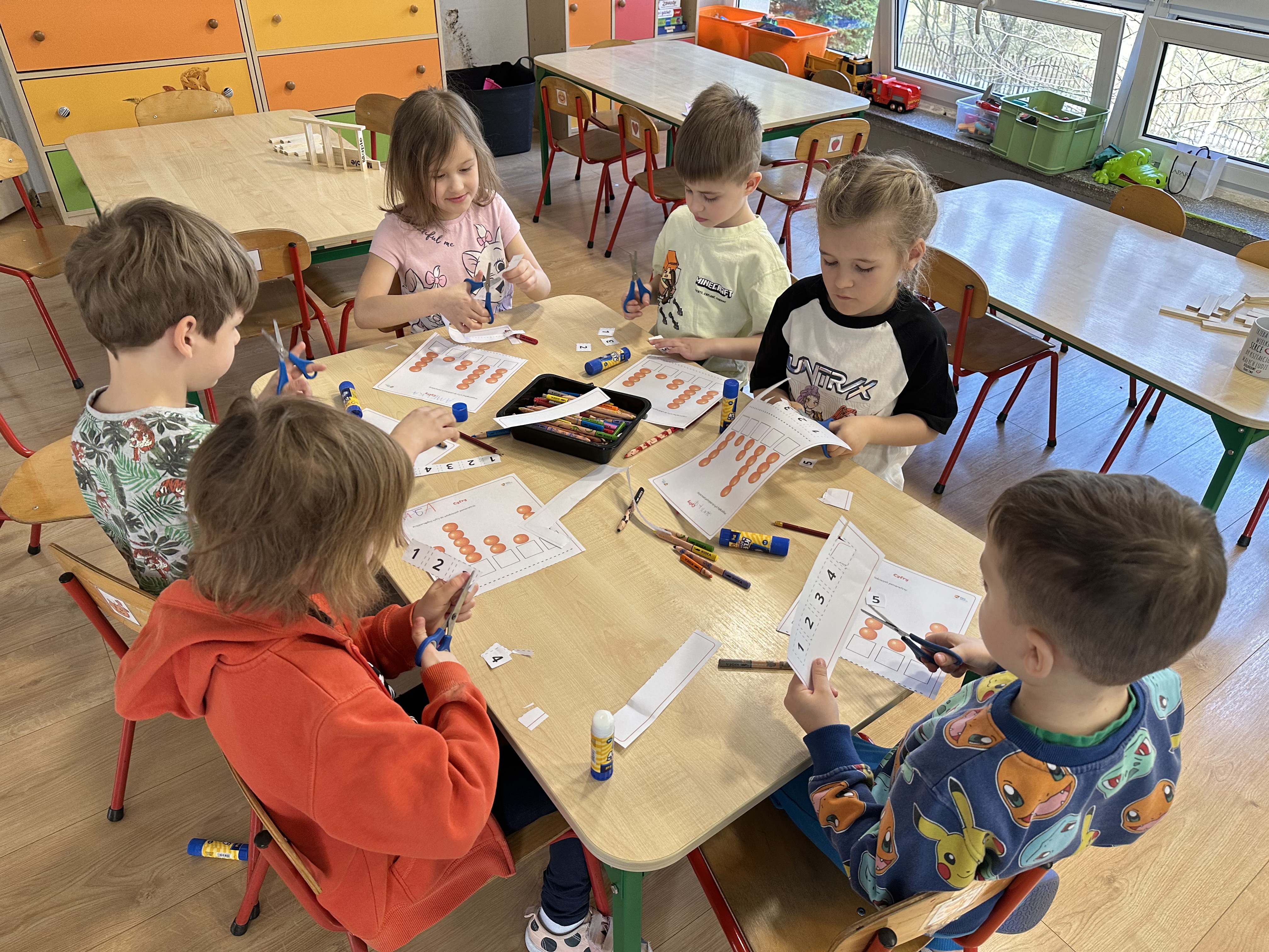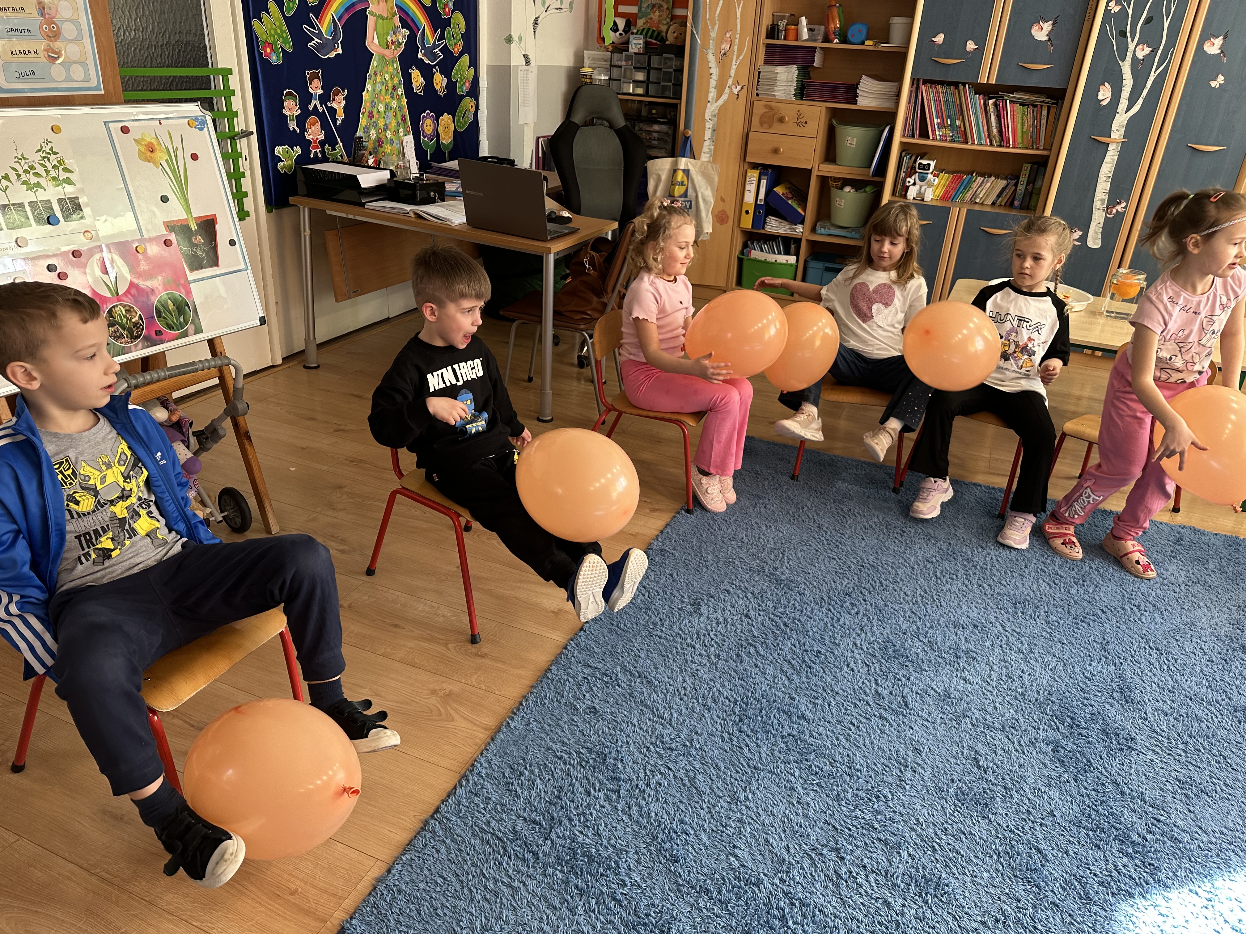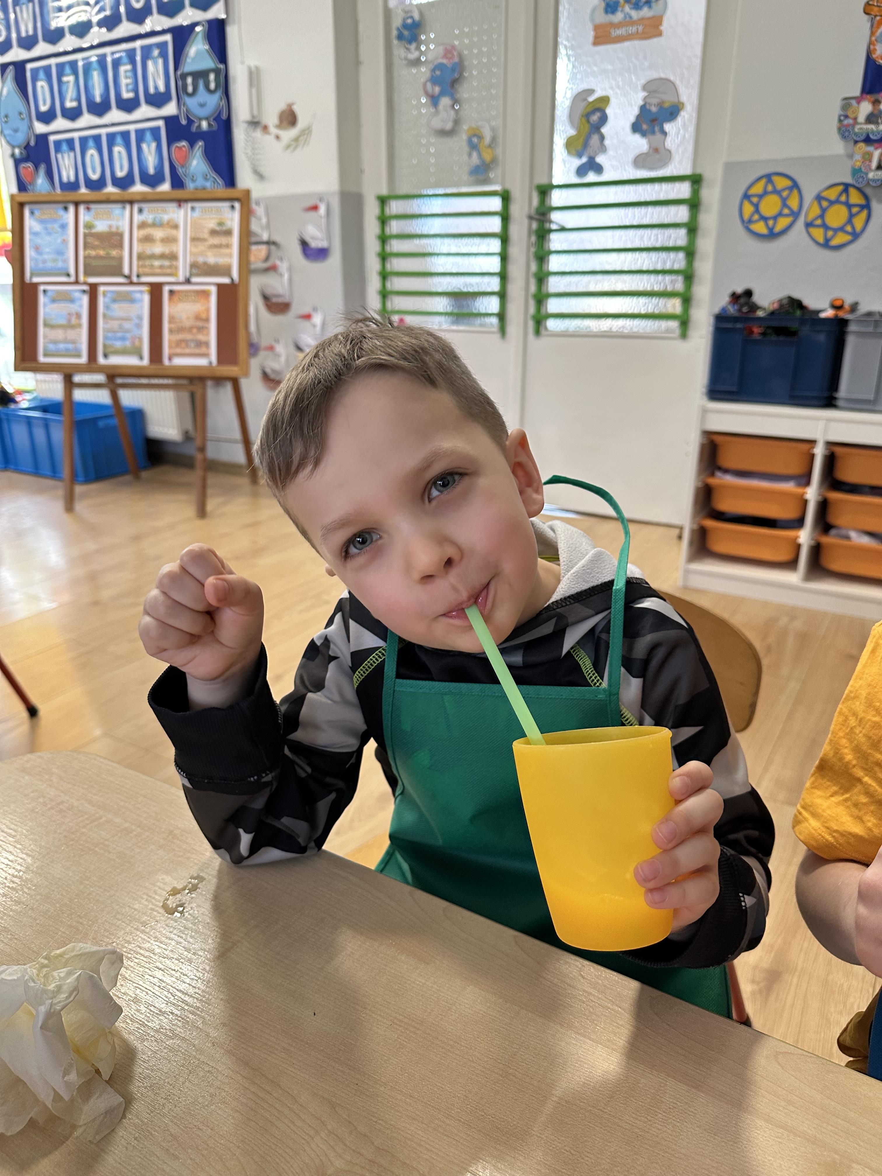 Zajęcia rozpoczęły się od otrzymania listu od profesora Animka, który wprowadził dzieci w temat kolejnej przygody. Na podstawie wskazówek zawartych w liście dzieci odgadły, że bohaterką zajęć będzie pomarańcza - owoc kojarzący się z energią i charakterystycznym kolorem. Następnie dzieci wysłuchały opowiadania pt. „Energetyczna pomarańcza” autorstwa K. Michoń. Po wysłuchaniu tekstu odbyła się rozmowa na temat jego treści. Dzieci miały możliwość poznania pomarańczy wszystkimi zmysłami - dotykały jej, wąchały oraz smakowały. Zapoznały się również z informacjami dotyczącymi uprawy pomarańczy na podstawie ilustracji. Podczas zajęć ruchowych dzieci rozwijały umiejętność reagowania na zmianę rytmu i tempa muzyki poprzez zabawy z balonem. Wykonały także pracę plastyczną przedstawiającą pomarańczę, rozwijając swoją kreatywność i zdolności manualne. W trakcie zabaw dydaktycznych dzieci doskonaliły umiejętności matematyczne, uczestnicząc w aktywności „Pomarańczowa matematyka”, polegającej między innymi na przyporządkowywaniu cyfr do odpowiedniej liczby pomarańczy. Starszaki brały również udział w eksperymencie „Czy pomarańcza pływa, czy tonie w wodzie?”, wyciągając własne wnioski i rozwijając umiejętność obserwacji. Dodatkowo dzieci ćwiczyły sprawność manualną podczas zajęć grafomotorycznych „Pomarańczowa grafomotoryka ”. Ważnym elementem zajęć było również rozwijanie samodzielności - dzieci samodzielnie przygotowały sok z pomarańczy. Na zakończenie dzieci poznały wartości odżywcze pomarańczy oraz umieściły ten owoc w „Skarbcu zaginionych składników odżywczych”, wzbogacając swoją wiedzę na temat zdrowego odżywiania.