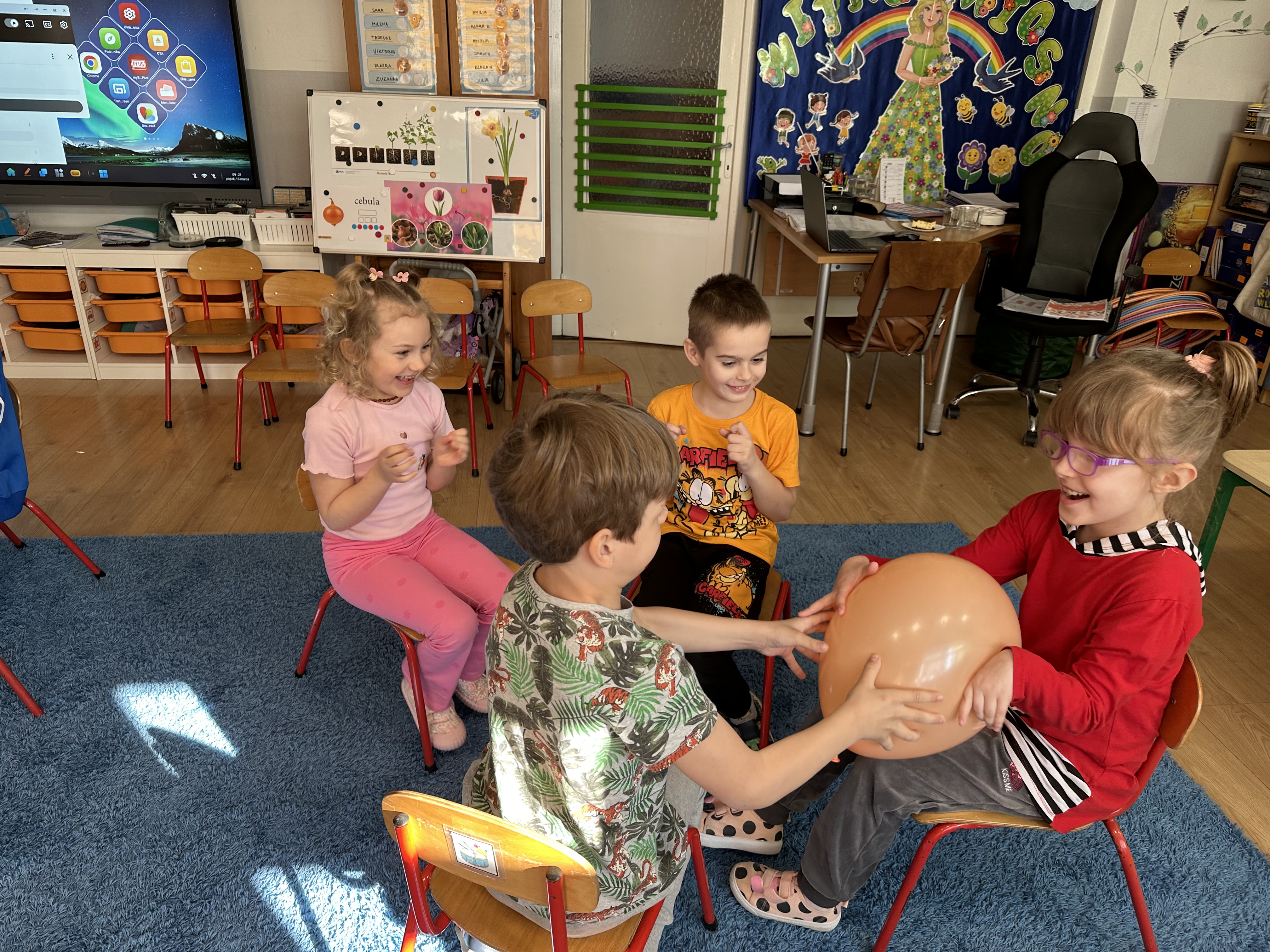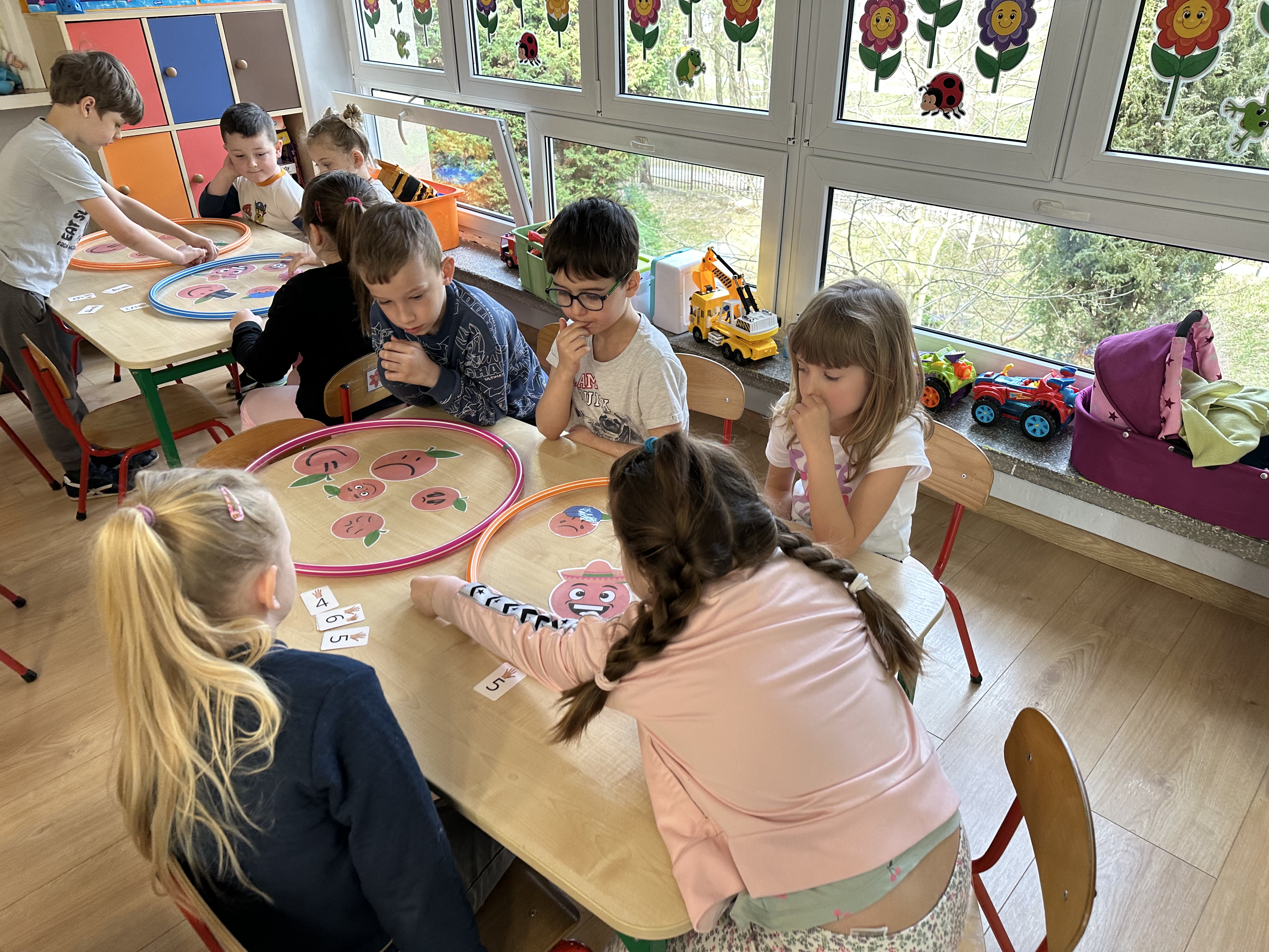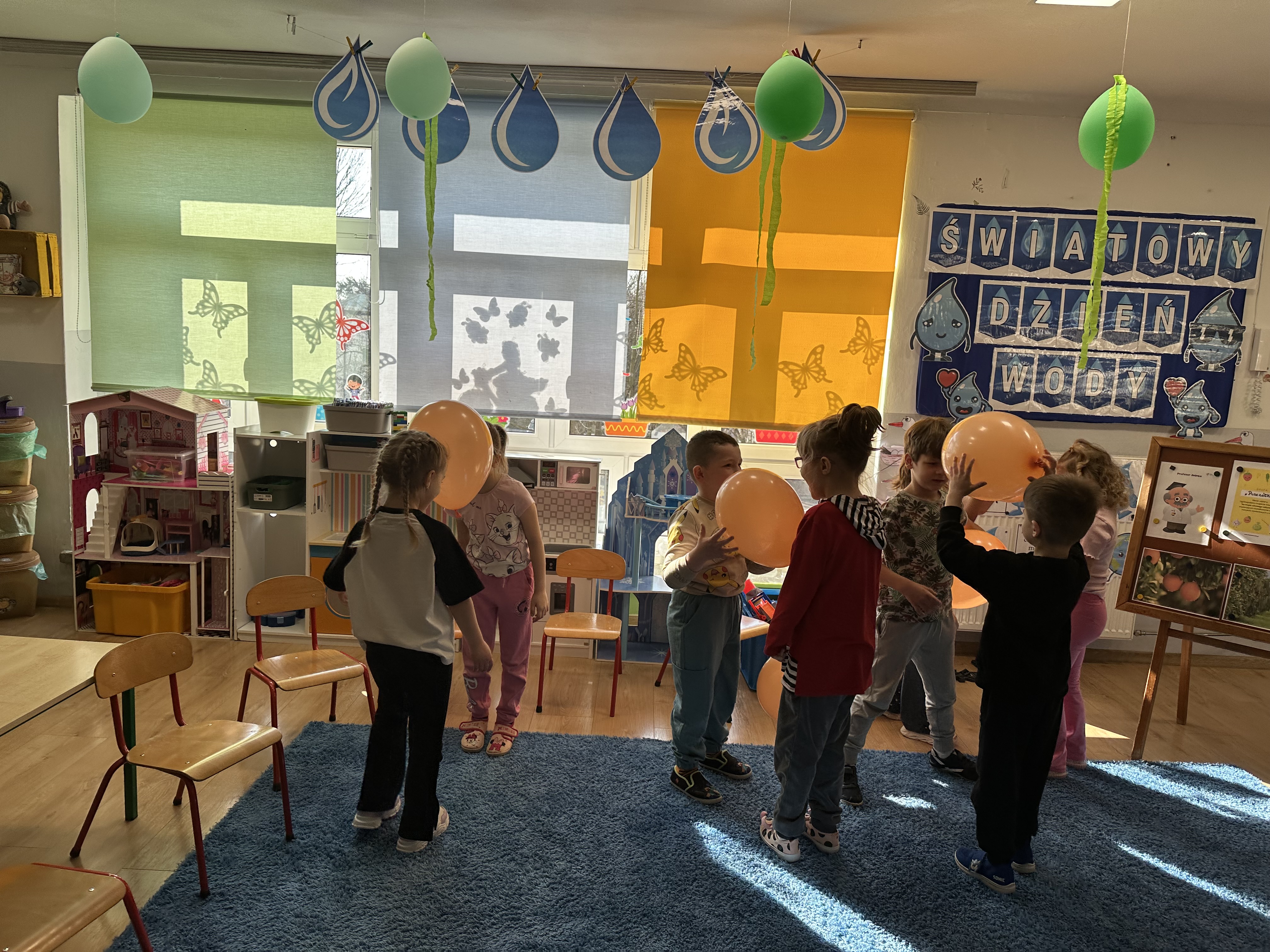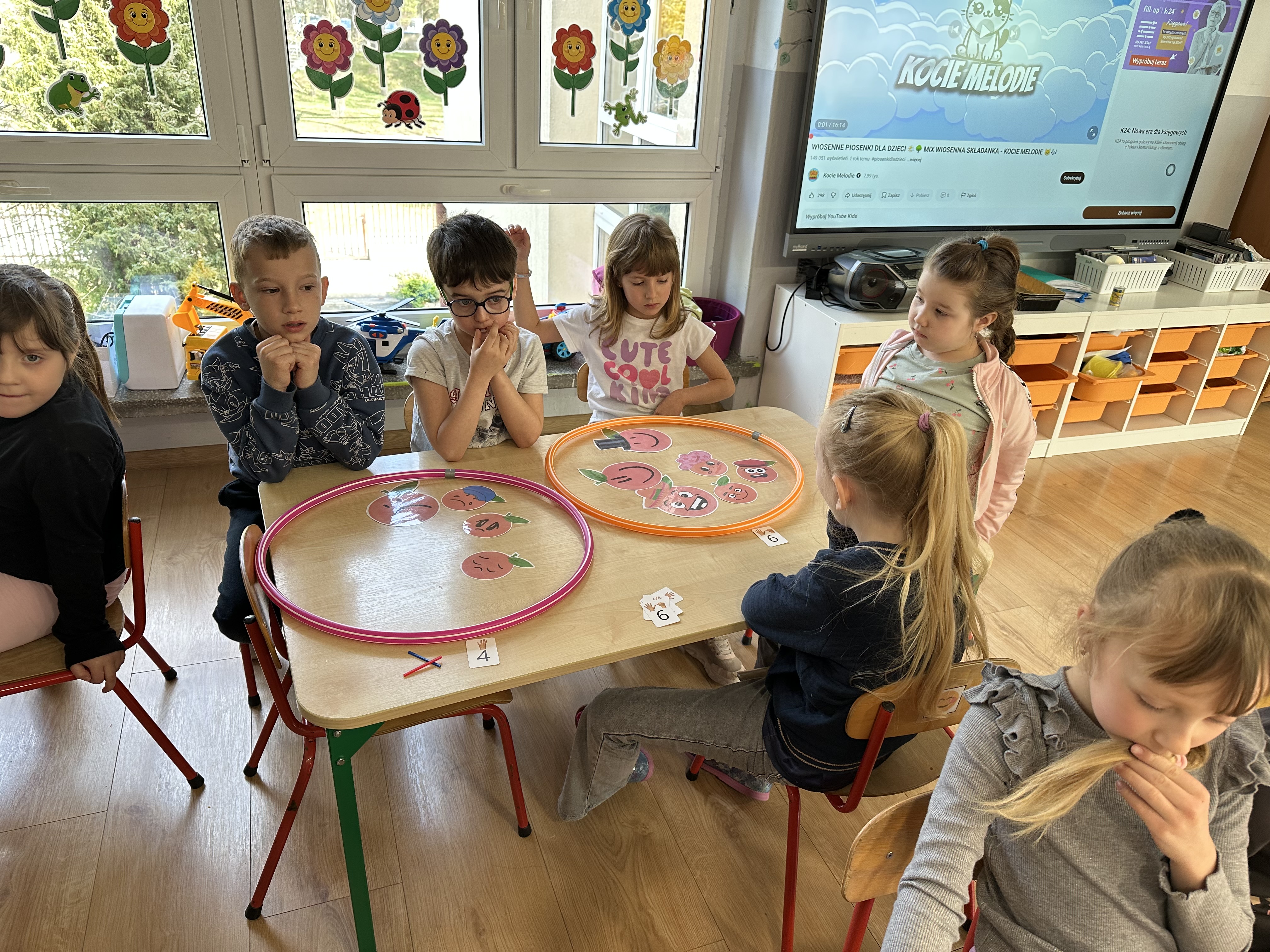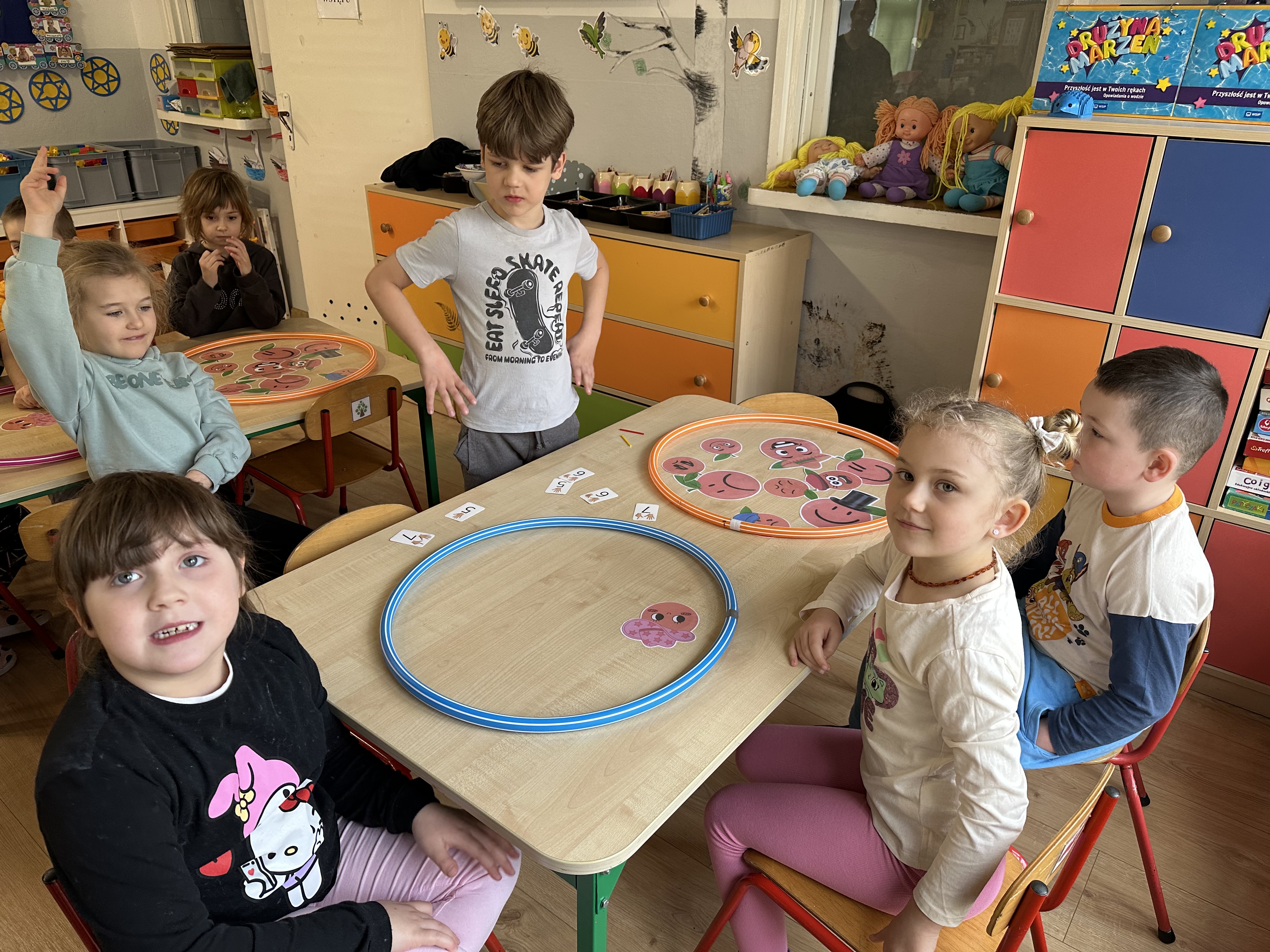Zajęcia rozpoczęły się od otrzymania listu od profesora Animka, który wprowadził dzieci w temat kolejnej przygody. Na podstawie wskazówek zawartych w liście dzieci odgadły, że bohaterką zajęć będzie pomarańcza - owoc kojarzący się z energią i charakterystycznym kolorem. Następnie dzieci wysłuchały opowiadania pt. „Energetyczna pomarańcza” autorstwa K. Michoń. Po wysłuchaniu tekstu odbyła się rozmowa na temat jego treści. Dzieci miały możliwość poznania pomarańczy wszystkimi zmysłami - dotykały jej, wąchały oraz smakowały. Zapoznały się również z informacjami dotyczącymi uprawy pomarańczy na podstawie ilustracji. Podczas zajęć ruchowych dzieci rozwijały umiejętność reagowania na zmianę rytmu i tempa muzyki poprzez zabawy z balonem. Wykonały także pracę plastyczną przedstawiającą pomarańczę, rozwijając swoją kreatywność i zdolności manualne. W trakcie zabaw dydaktycznych dzieci doskonaliły umiejętności matematyczne, uczestnicząc w aktywności „Pomarańczowa matematyka”, polegającej między innymi na przyporządkowywaniu cyfr do odpowiedniej liczby pomarańczy. Starszaki brały również udział w eksperymencie „Czy pomarańcza pływa, czy tonie w wodzie?”, wyciągając własne wnioski i rozwijając umiejętność obserwacji. Dodatkowo dzieci ćwiczyły sprawność manualną podczas zajęć grafomotorycznych „Pomarańczowa grafomotoryka ”. Ważnym elementem zajęć było również rozwijanie samodzielności - dzieci samodzielnie przygotowały sok z pomarańczy. Na zakończenie dzieci poznały wartości odżywcze pomarańczy oraz umieściły ten owoc w „Skarbcu zaginionych składników odżywczych”, wzbogacając swoją wiedzę na temat zdrowego odżywiania.