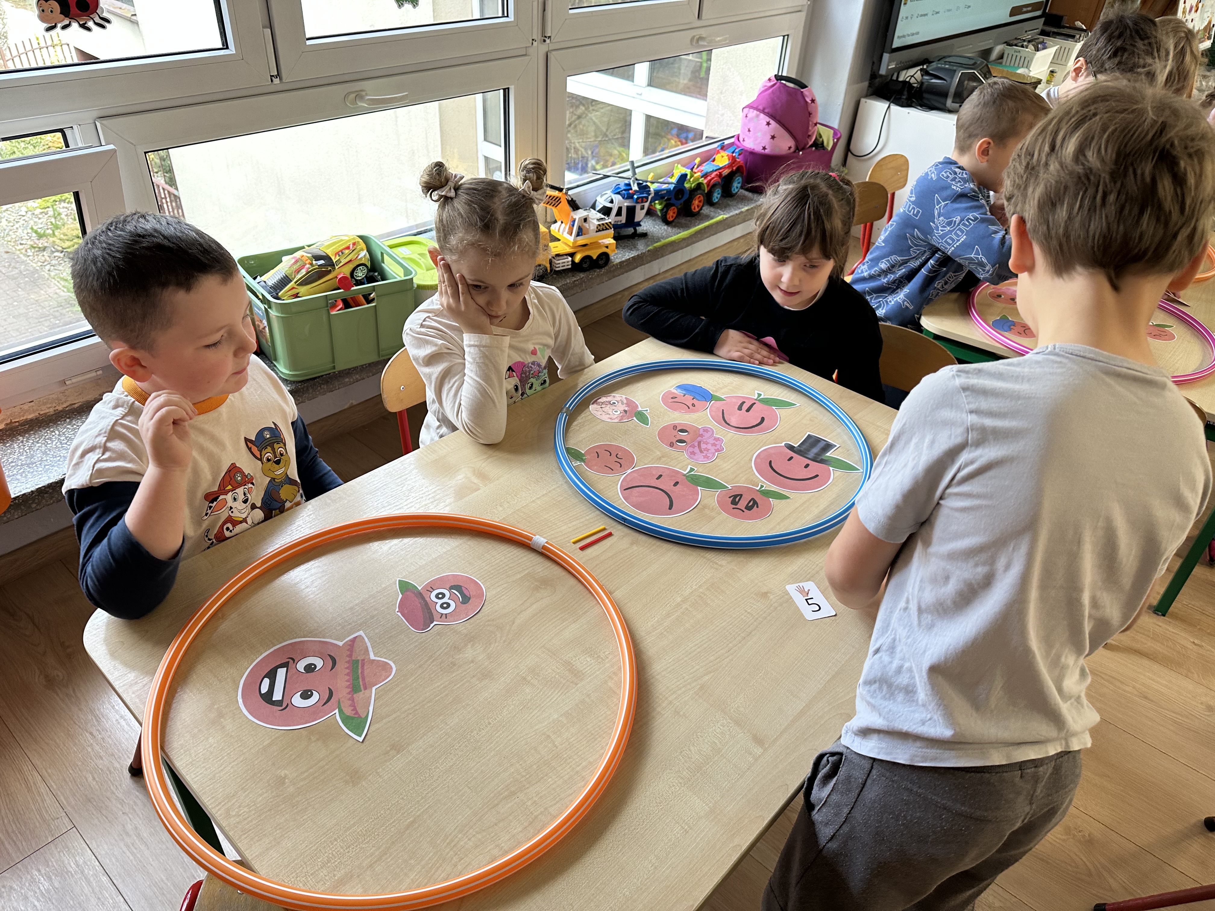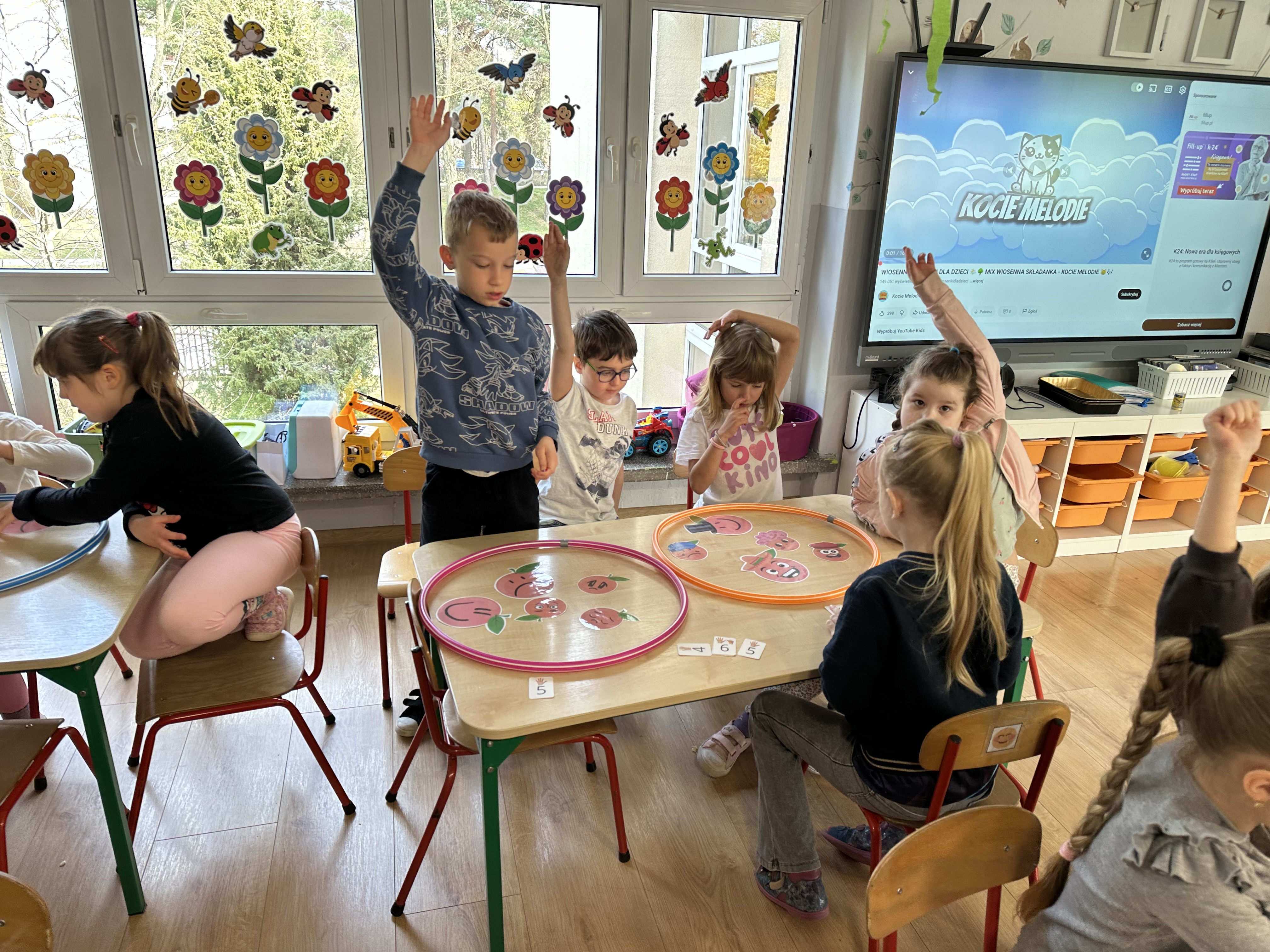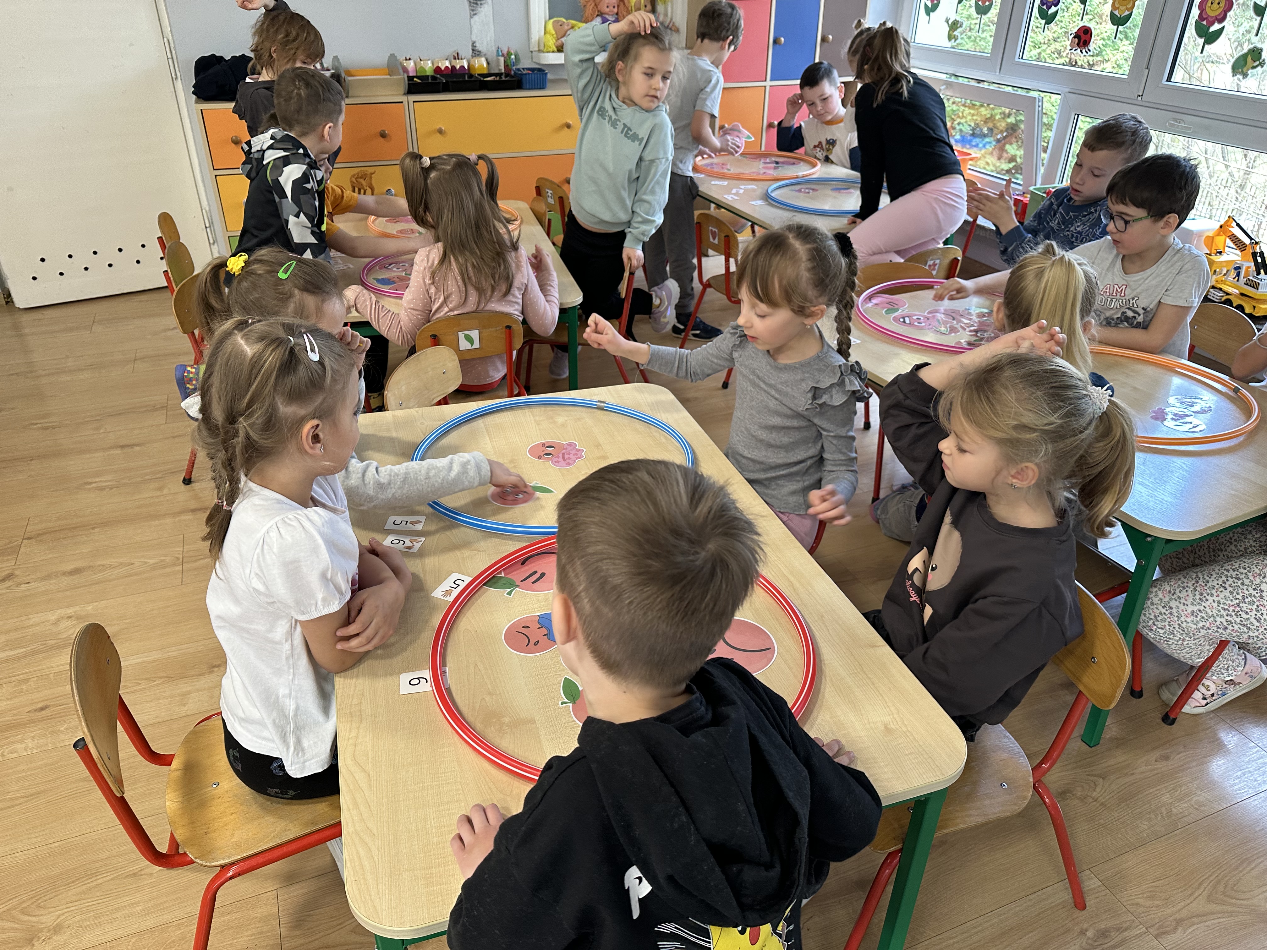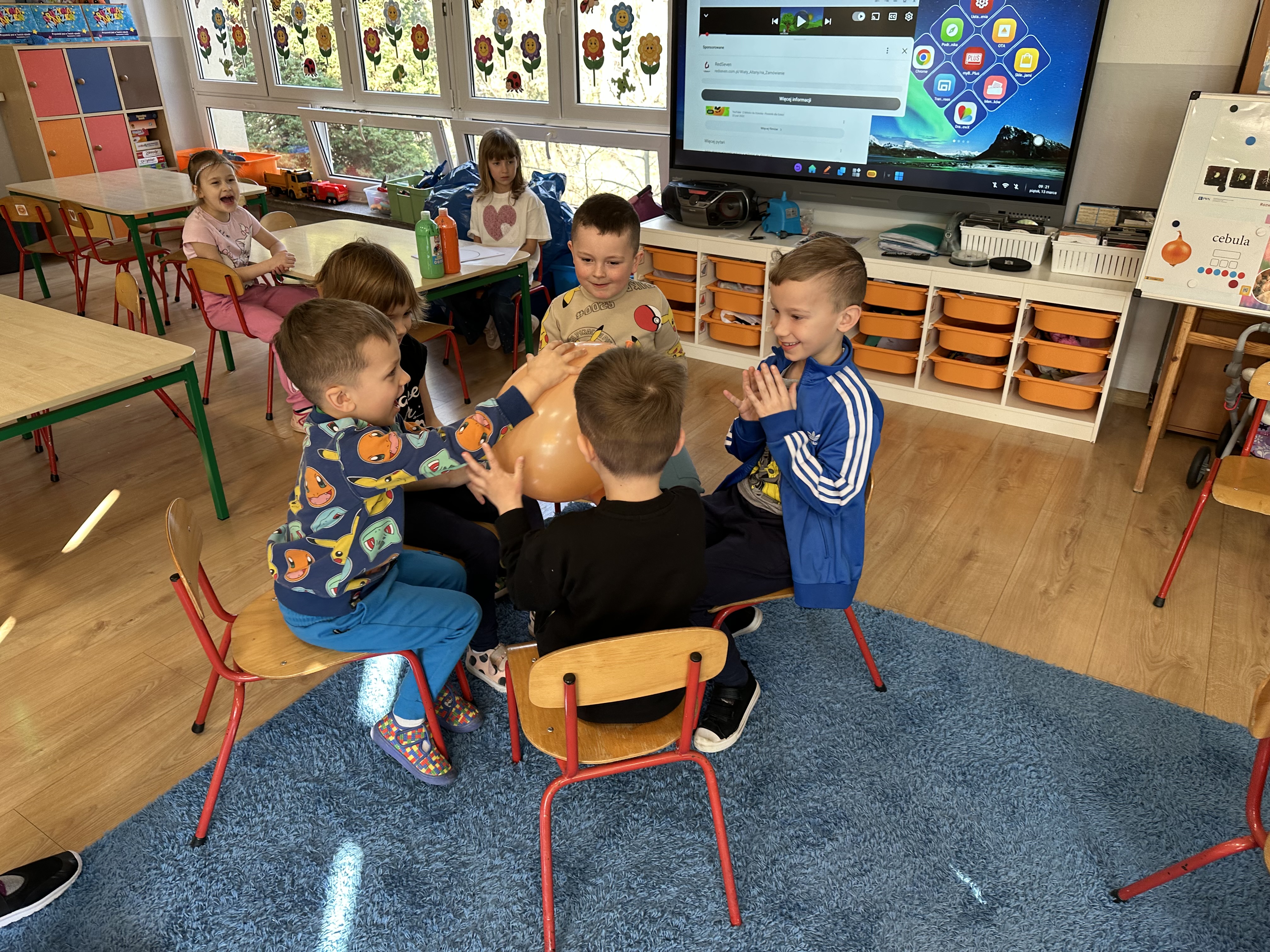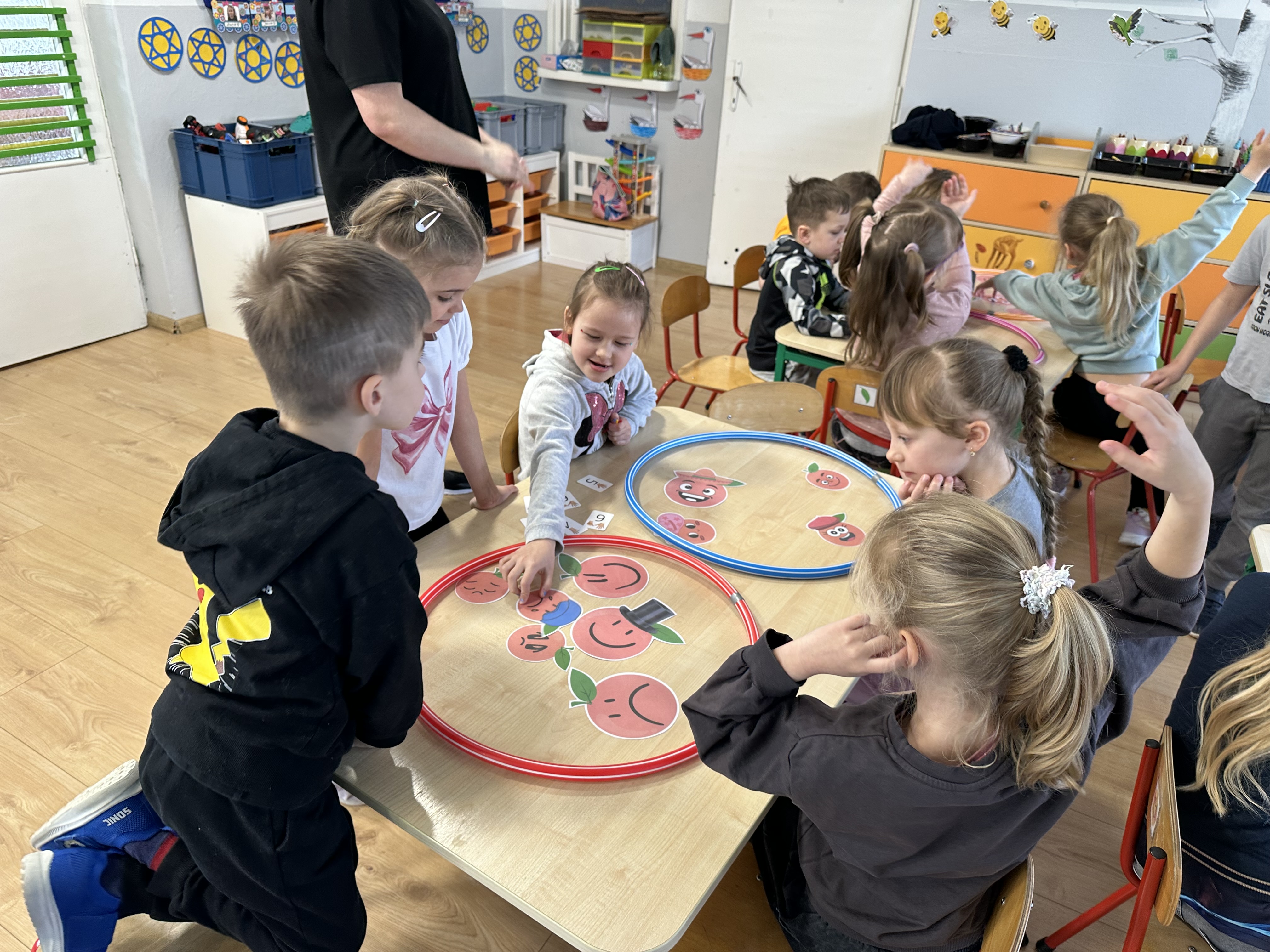 Zajęcia rozpoczęły się od otrzymania listu od profesora Animka, który wprowadził dzieci w temat kolejnej przygody. Na podstawie wskazówek zawartych w liście dzieci odgadły, że bohaterką zajęć będzie pomarańcza - owoc kojarzący się z energią i charakterystycznym kolorem. Następnie dzieci wysłuchały opowiadania pt. „Energetyczna pomarańcza” autorstwa K. Michoń. Po wysłuchaniu tekstu odbyła się rozmowa na temat jego treści. Dzieci miały możliwość poznania pomarańczy wszystkimi zmysłami - dotykały jej, wąchały oraz smakowały. Zapoznały się również z informacjami dotyczącymi uprawy pomarańczy na podstawie ilustracji. Podczas zajęć ruchowych dzieci rozwijały umiejętność reagowania na zmianę rytmu i tempa muzyki poprzez zabawy z balonem. Wykonały także pracę plastyczną przedstawiającą pomarańczę, rozwijając swoją kreatywność i zdolności manualne. W trakcie zabaw dydaktycznych dzieci doskonaliły umiejętności matematyczne, uczestnicząc w aktywności „Pomarańczowa matematyka”, polegającej między innymi na przyporządkowywaniu cyfr do odpowiedniej liczby pomarańczy. Starszaki brały również udział w eksperymencie „Czy pomarańcza pływa, czy tonie w wodzie?”, wyciągając własne wnioski i rozwijając umiejętność obserwacji. Dodatkowo dzieci ćwiczyły sprawność manualną podczas zajęć grafomotorycznych „Pomarańczowa grafomotoryka ”. Ważnym elementem zajęć było również rozwijanie samodzielności - dzieci samodzielnie przygotowały sok z pomarańczy. Na zakończenie dzieci poznały wartości odżywcze pomarańczy oraz umieściły ten owoc w „Skarbcu zaginionych składników odżywczych”, wzbogacając swoją wiedzę na temat zdrowego odżywiania.