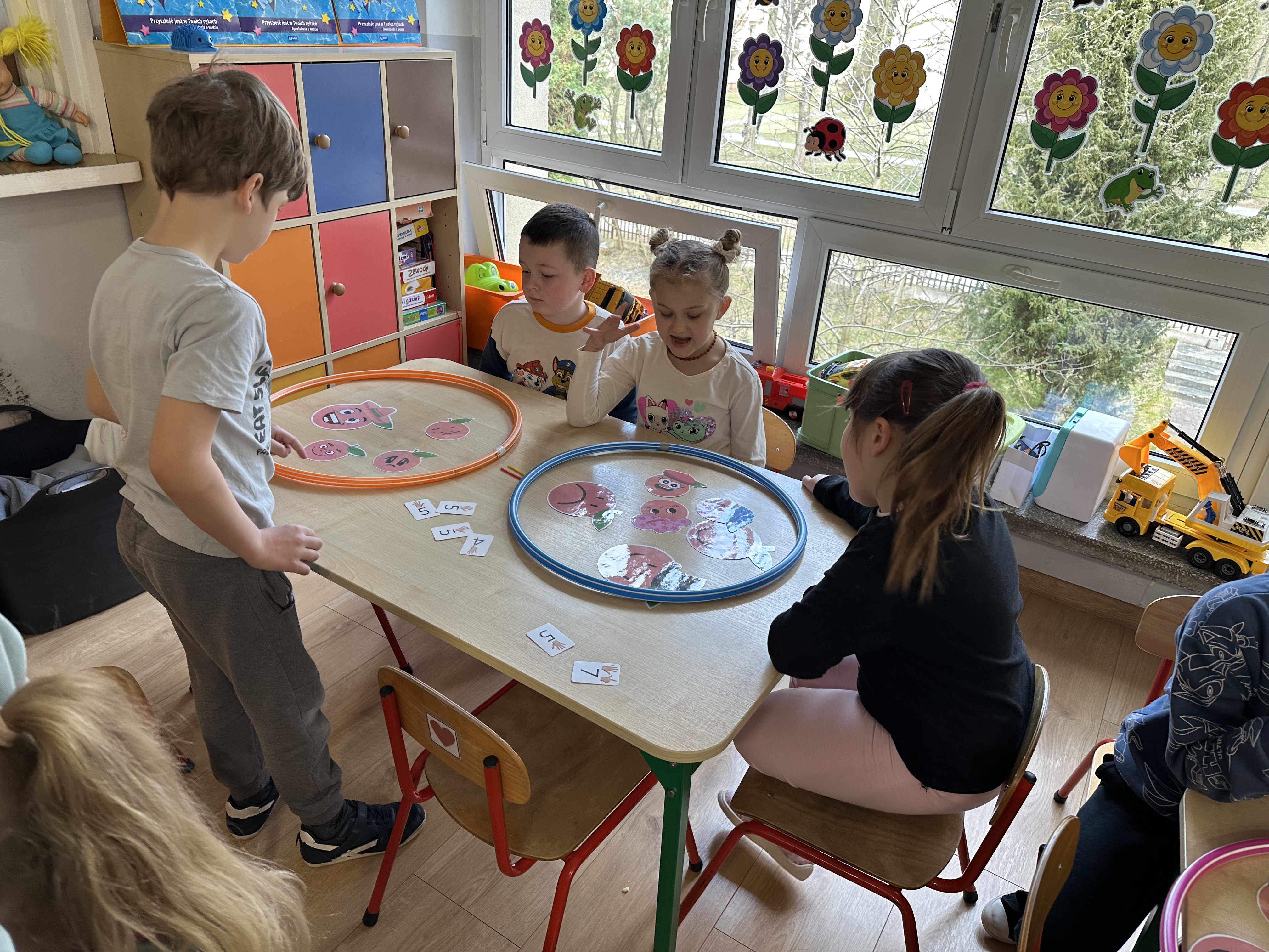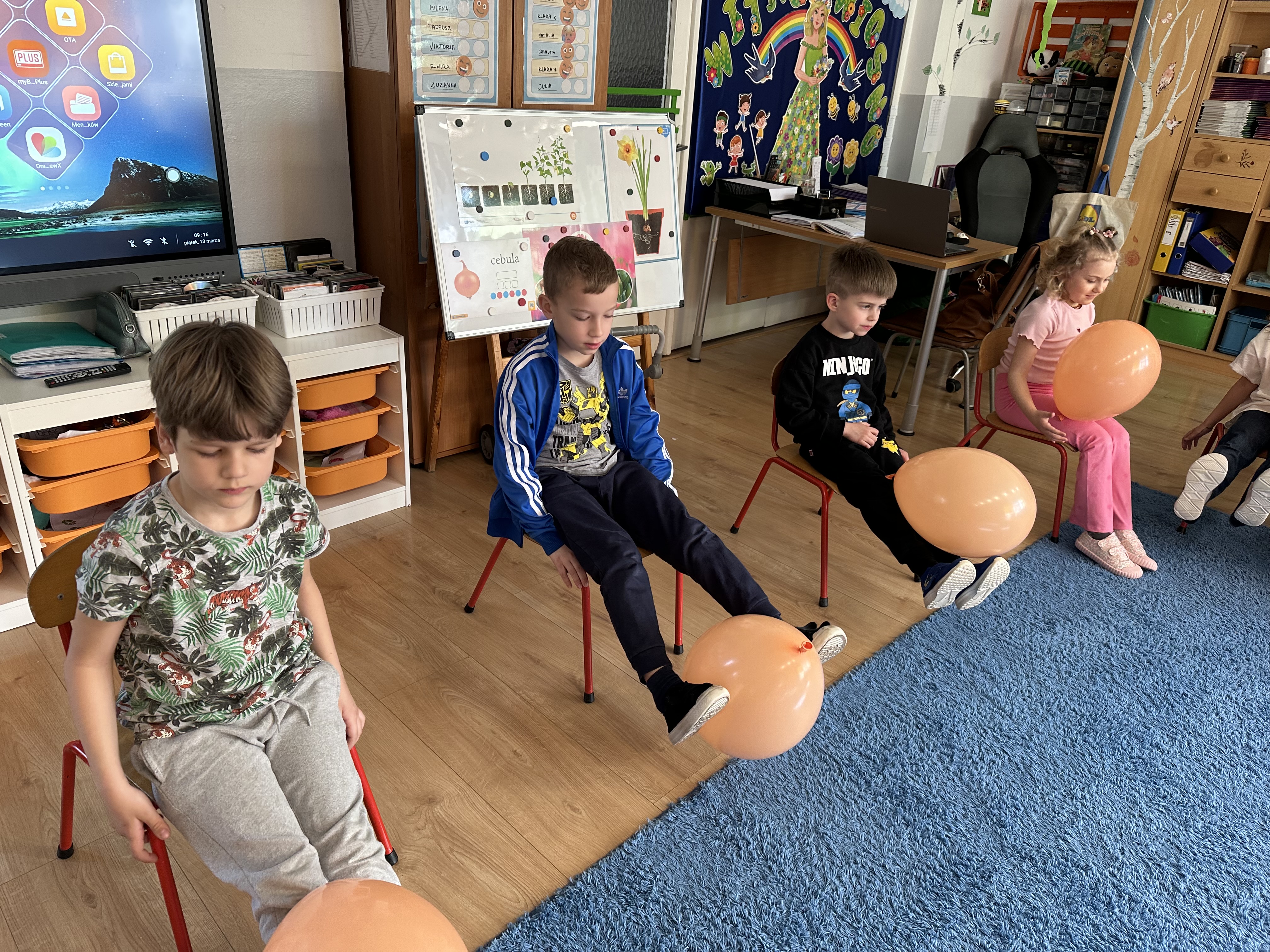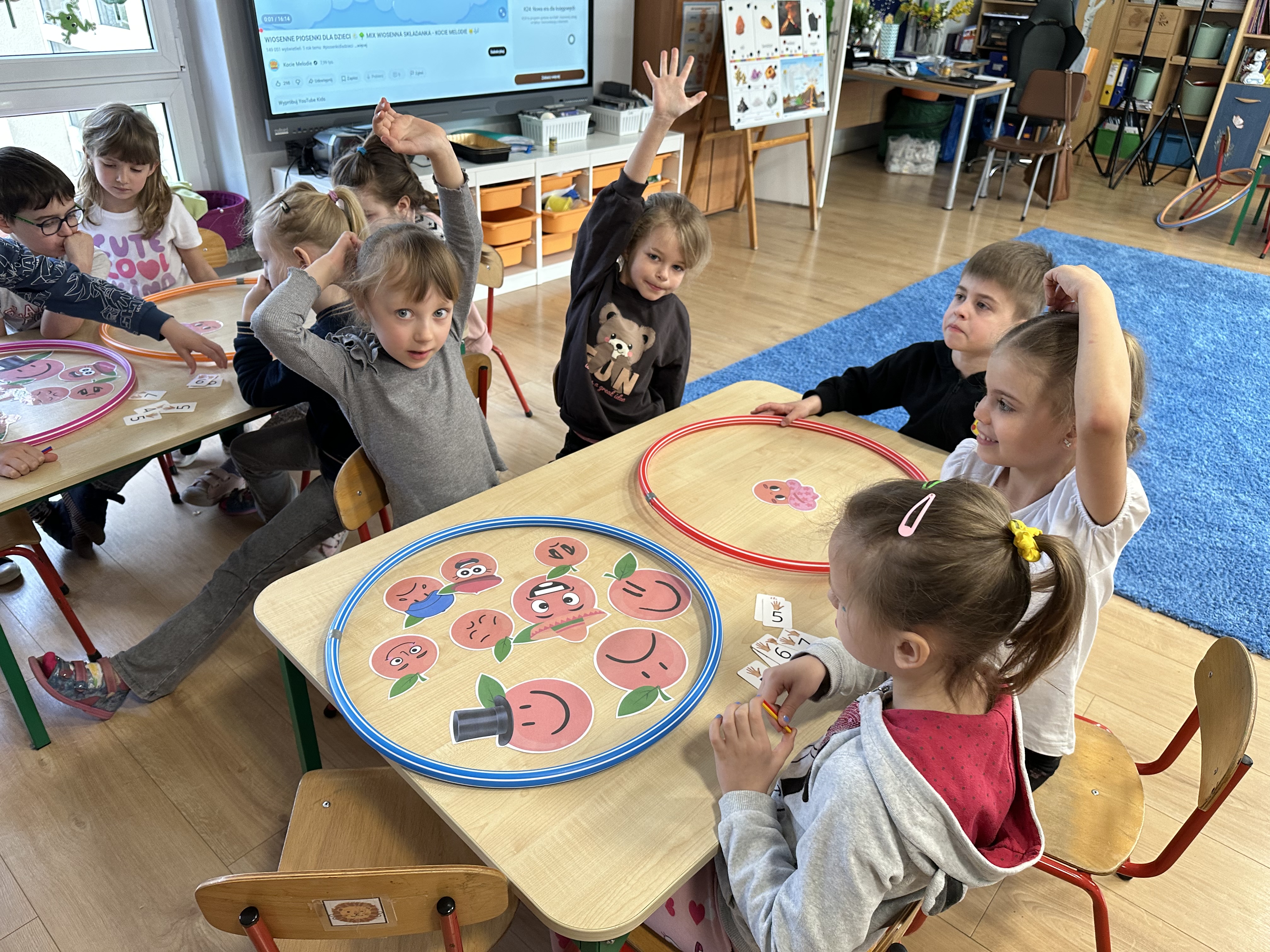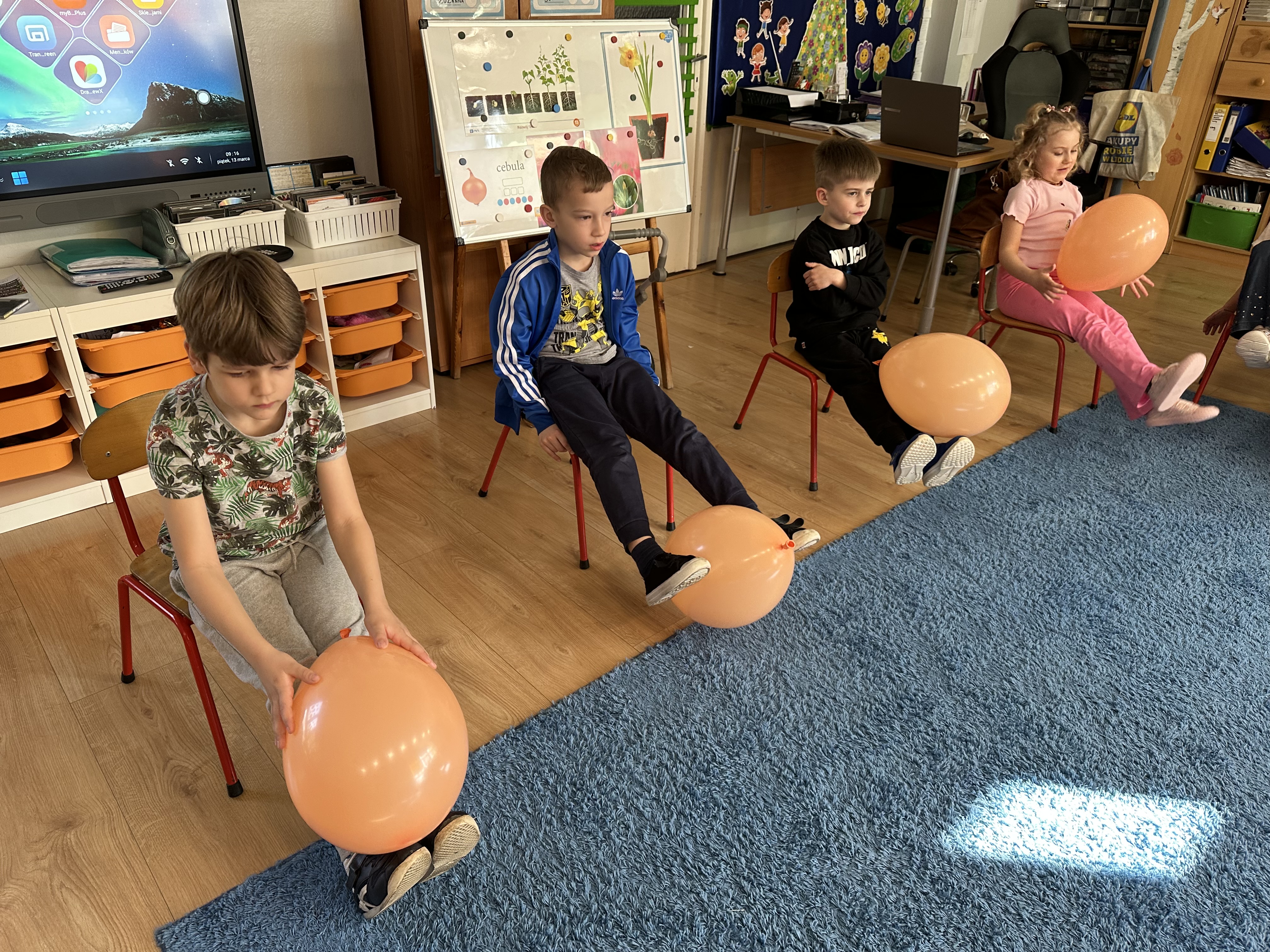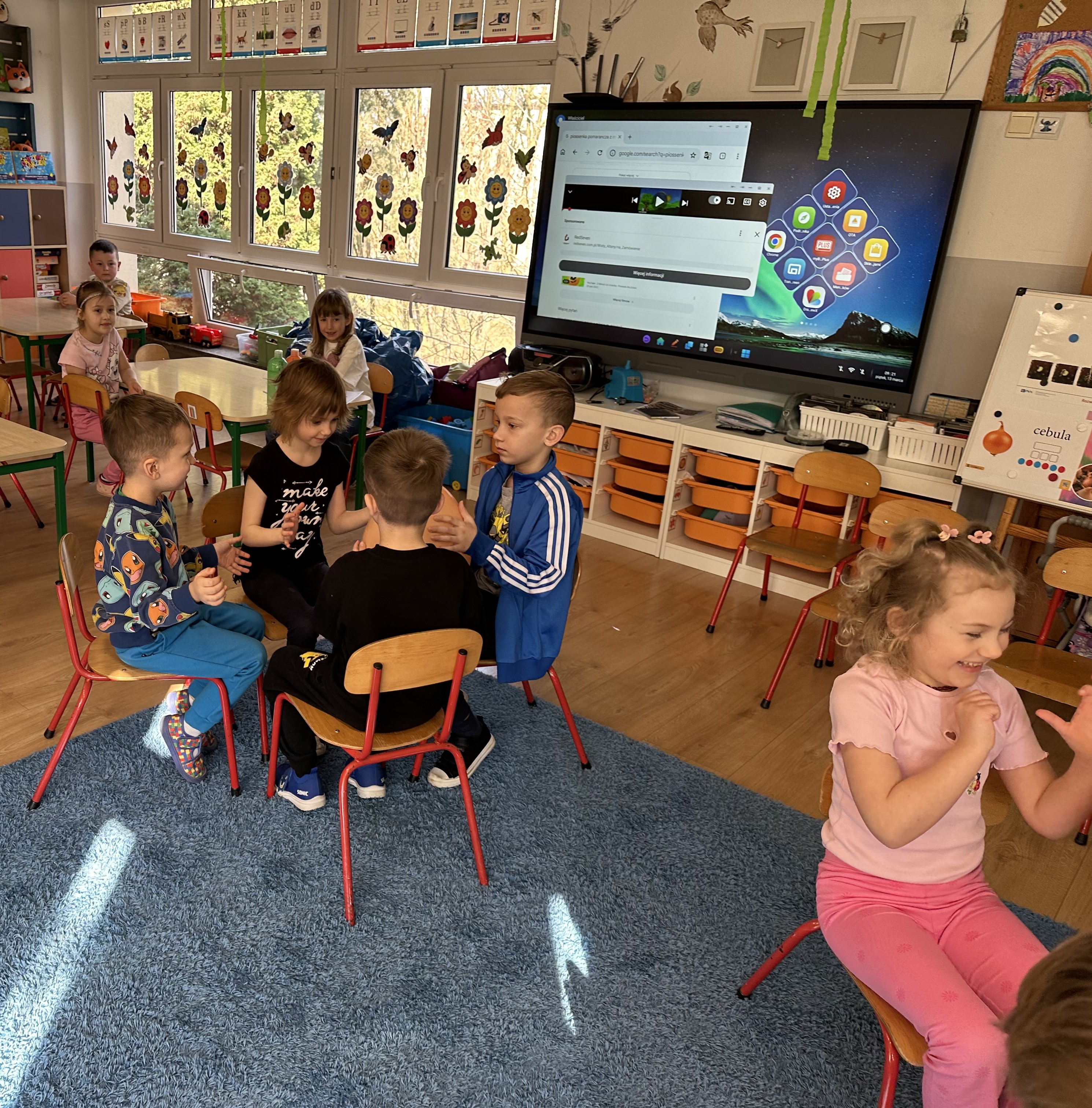 Zajęcia rozpoczęły się od otrzymania listu od profesora Animka, który wprowadził dzieci w temat kolejnej przygody. Na podstawie wskazówek zawartych w liście dzieci odgadły, że bohaterką zajęć będzie pomarańcza - owoc kojarzący się z energią i charakterystycznym kolorem. Następnie dzieci wysłuchały opowiadania pt. „Energetyczna pomarańcza” autorstwa K. Michoń. Po wysłuchaniu tekstu odbyła się rozmowa na temat jego treści. Dzieci miały możliwość poznania pomarańczy wszystkimi zmysłami - dotykały jej, wąchały oraz smakowały. Zapoznały się również z informacjami dotyczącymi uprawy pomarańczy na podstawie ilustracji. Podczas zajęć ruchowych dzieci rozwijały umiejętność reagowania na zmianę rytmu i tempa muzyki poprzez zabawy z balonem. Wykonały także pracę plastyczną przedstawiającą pomarańczę, rozwijając swoją kreatywność i zdolności manualne. W trakcie zabaw dydaktycznych dzieci doskonaliły umiejętności matematyczne, uczestnicząc w aktywności „Pomarańczowa matematyka”, polegającej między innymi na przyporządkowywaniu cyfr do odpowiedniej liczby pomarańczy. Starszaki brały również udział w eksperymencie „Czy pomarańcza pływa, czy tonie w wodzie?”, wyciągając własne wnioski i rozwijając umiejętność obserwacji. Dodatkowo dzieci ćwiczyły sprawność manualną podczas zajęć grafomotorycznych „Pomarańczowa grafomotoryka ”. Ważnym elementem zajęć było również rozwijanie samodzielności - dzieci samodzielnie przygotowały sok z pomarańczy. Na zakończenie dzieci poznały wartości odżywcze pomarańczy oraz umieściły ten owoc w „Skarbcu zaginionych składników odżywczych”, wzbogacając swoją wiedzę na temat zdrowego odżywiania.