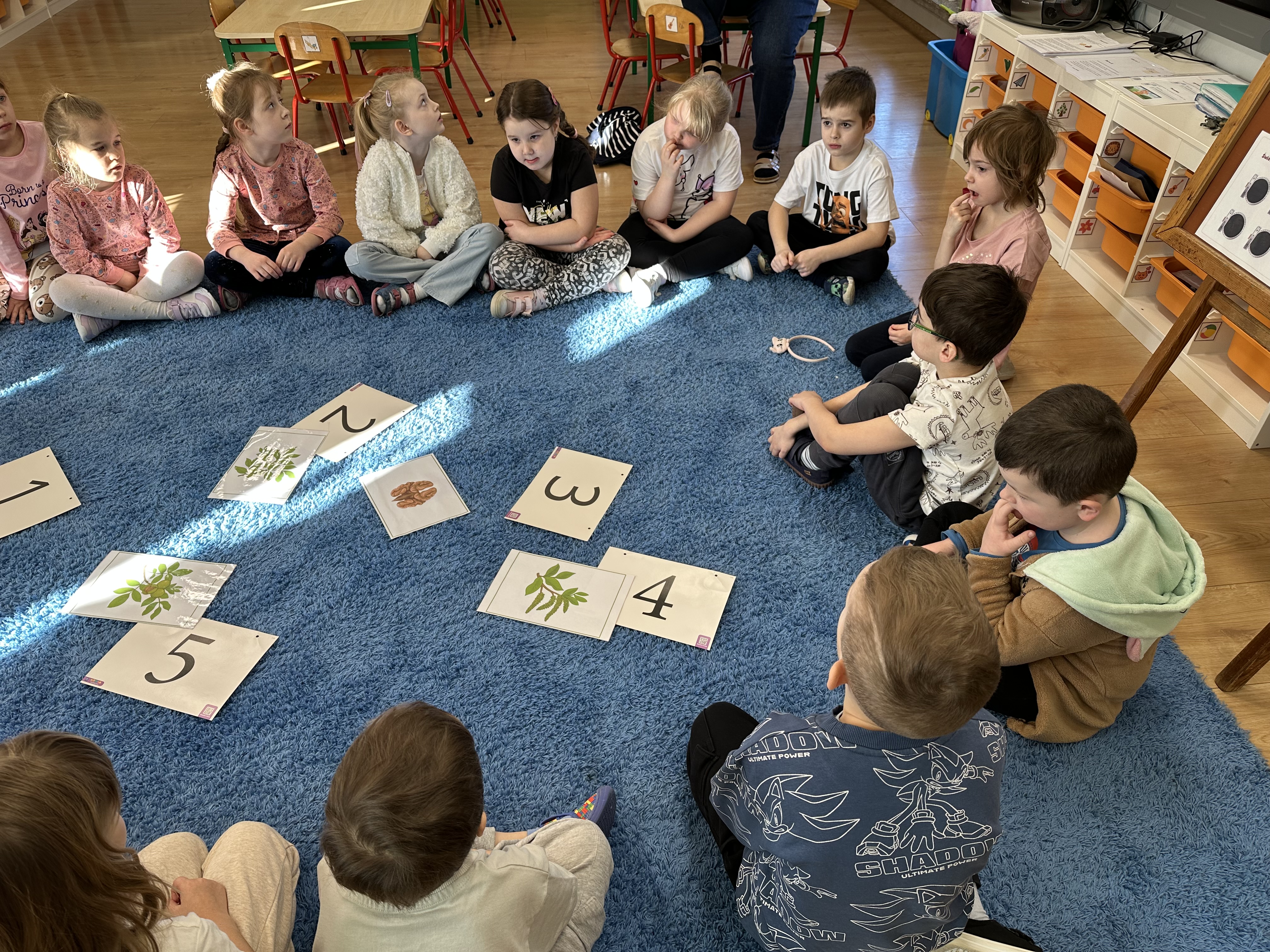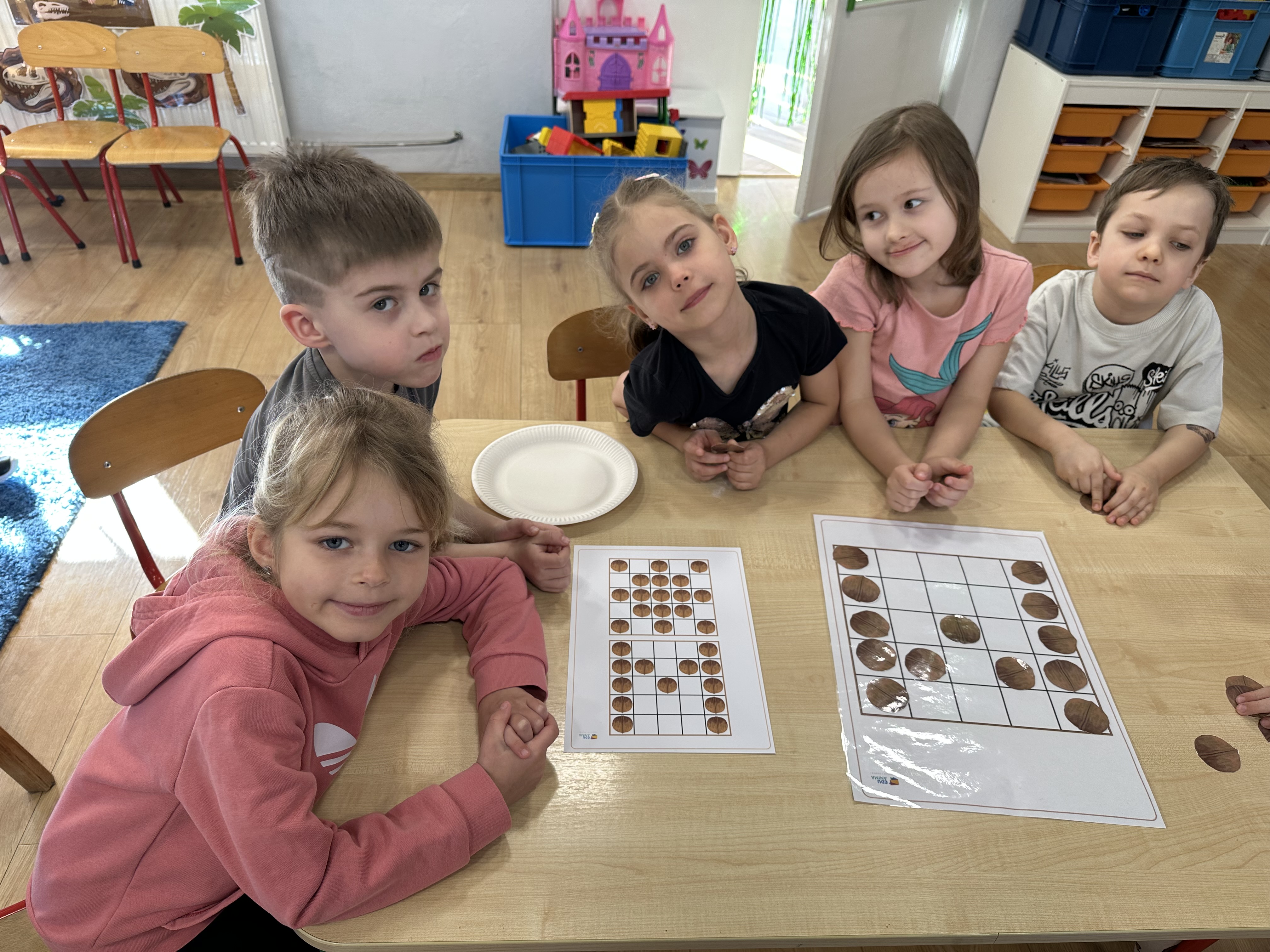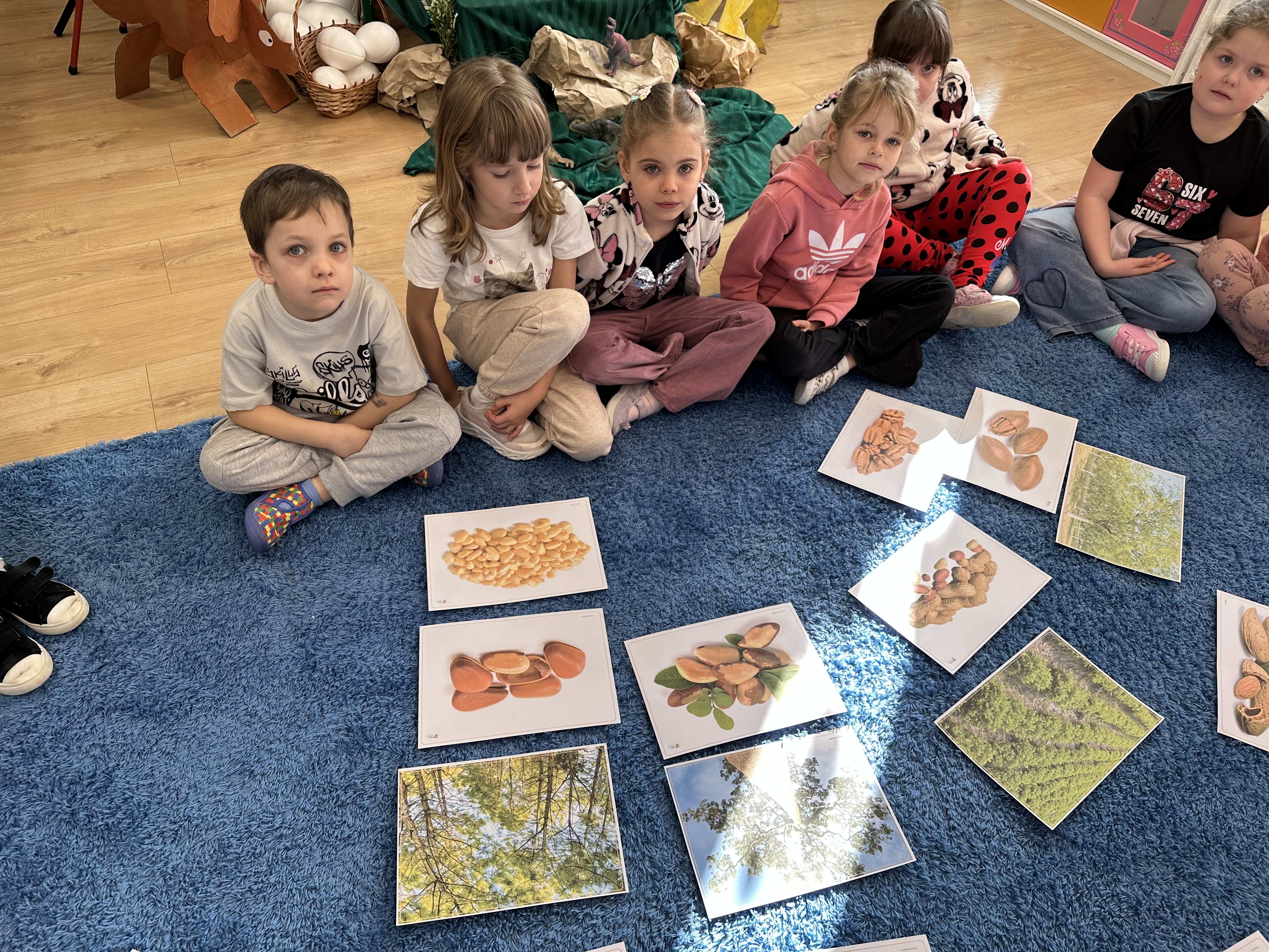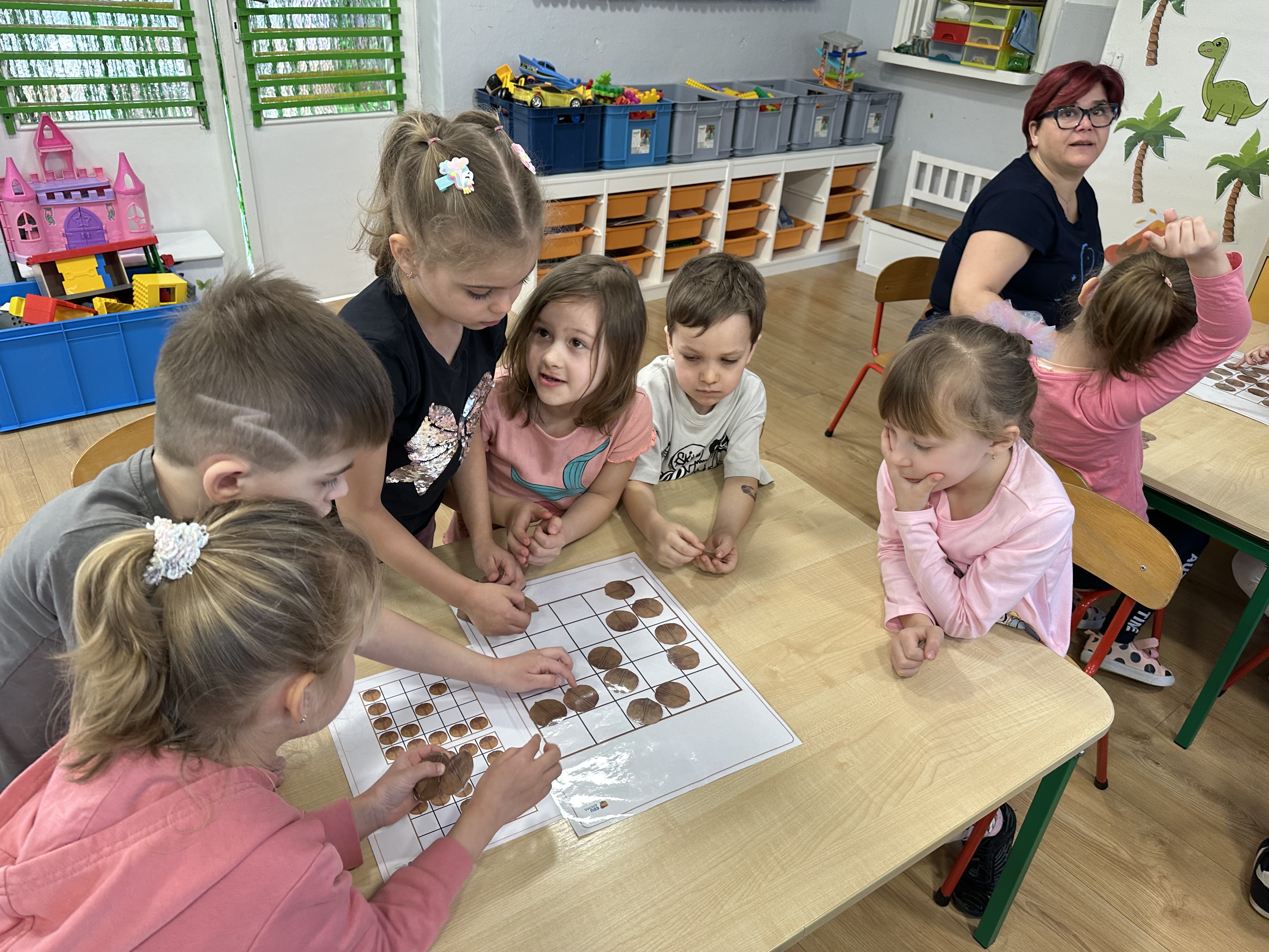 W ramach realizacji kolejnego modułu projektu edukacyjnego grupa „Pszczółek” poznawała wartości odżywcze orzechów. Wprowadzeniem do zajęć było wysłuchanie wiersza pt. „Orzechowy skarb”, który stał się inspiracją do rozmowy na temat różnych rodzajów orzechów. Dzieci aktywnie uczestniczyły w dyskusji – wymieniały znane im rodzaje orzechów oraz dzieliły się swoimi preferencjami smakowymi. Następnie oglądały ilustracje przedstawiające różnorodne orzechy oraz wysłuchały ciekawostek na ich temat. Miały również okazję do bezpośredniego kontaktu z wybranymi okazami – orzechami włoskimi i laskowymi - poprzez dotykanie, wąchanie i degustację. Dużym zainteresowaniem cieszył się film edukacyjny przedstawiający proces wzrostu orzechów ziemnych w przyspieszonym tempie. Po jego obejrzeniu dzieci utrwalały zdobytą wiedzę, układając ilustracje w odpowiedniej kolejności. W trakcie zajęć nie zabrakło również aktywności ruchowych – dzieci brały udział w zabawie „Wiewiórka hop do dziupli z orzeszkiem – wiewiórka z dziupli”, która rozwijała ich sprawność fizyczną i refleks. W dalszej części zajęć dzieci zapoznały się z nazwami zdrowych potraw zawierających orzechy oraz uczestniczyły w zabawie „Układanka lewopółkulowa”, odwzorowując kształty z orzechów na planszach oraz tworząc własne kompozycje. Ćwiczyły również spostrzegawczość w zabawie „Rozpoznaj i połącz”. Zrealizowane działania pozwoliły dzieciom poszerzyć wiedzę na temat zdrowego odżywiania, rozwijać zmysły oraz umiejętności poznawcze i manualne.