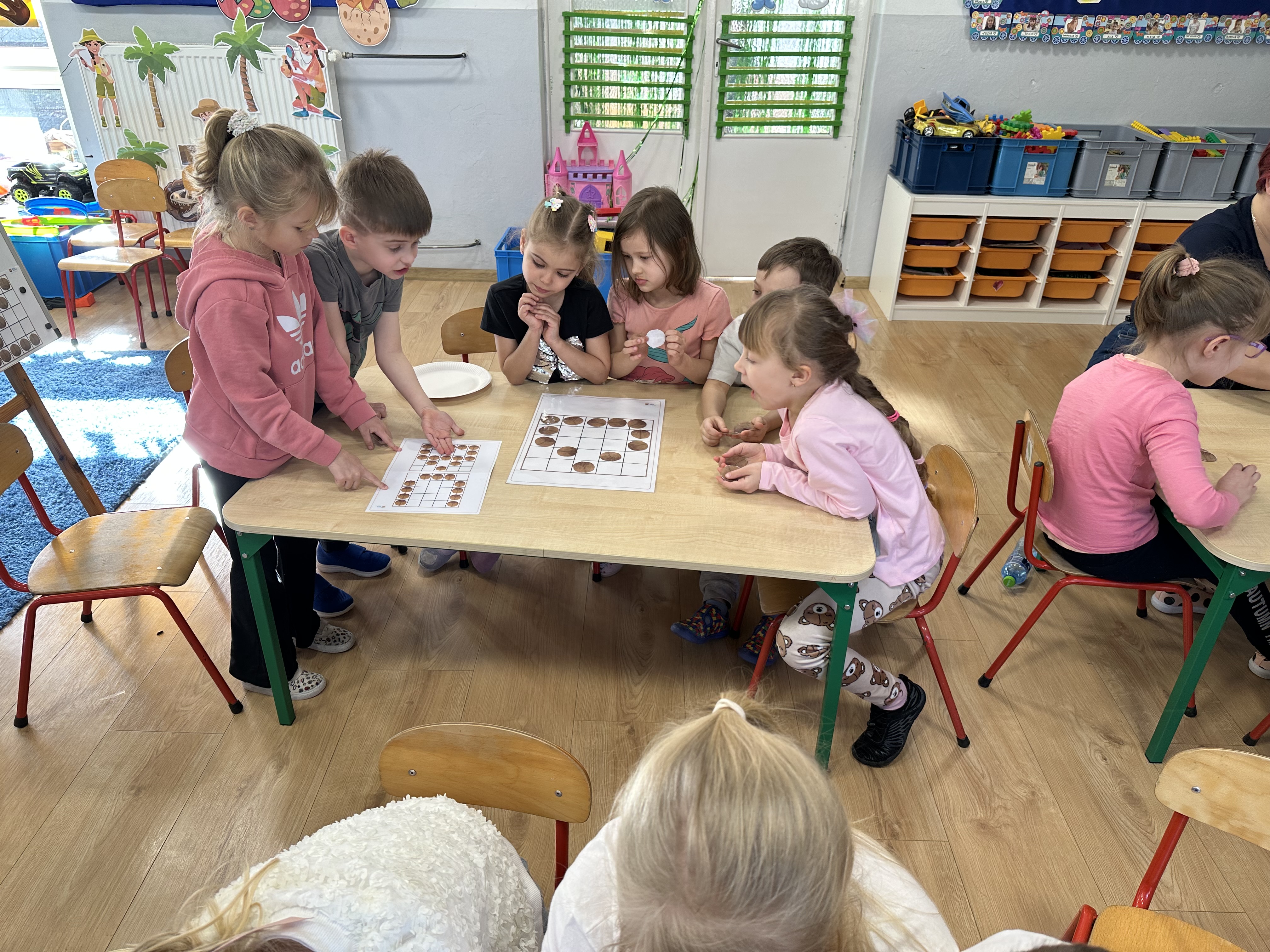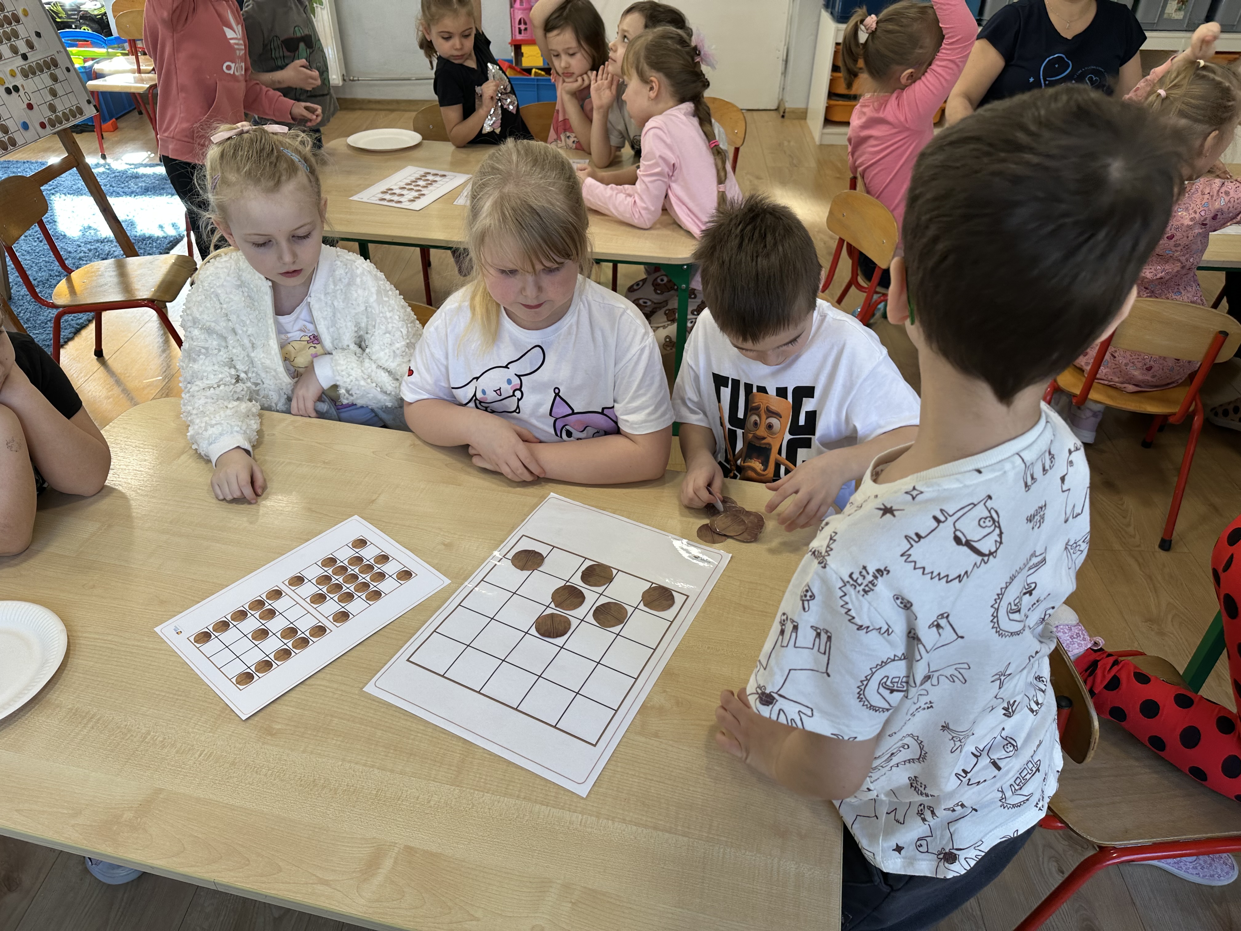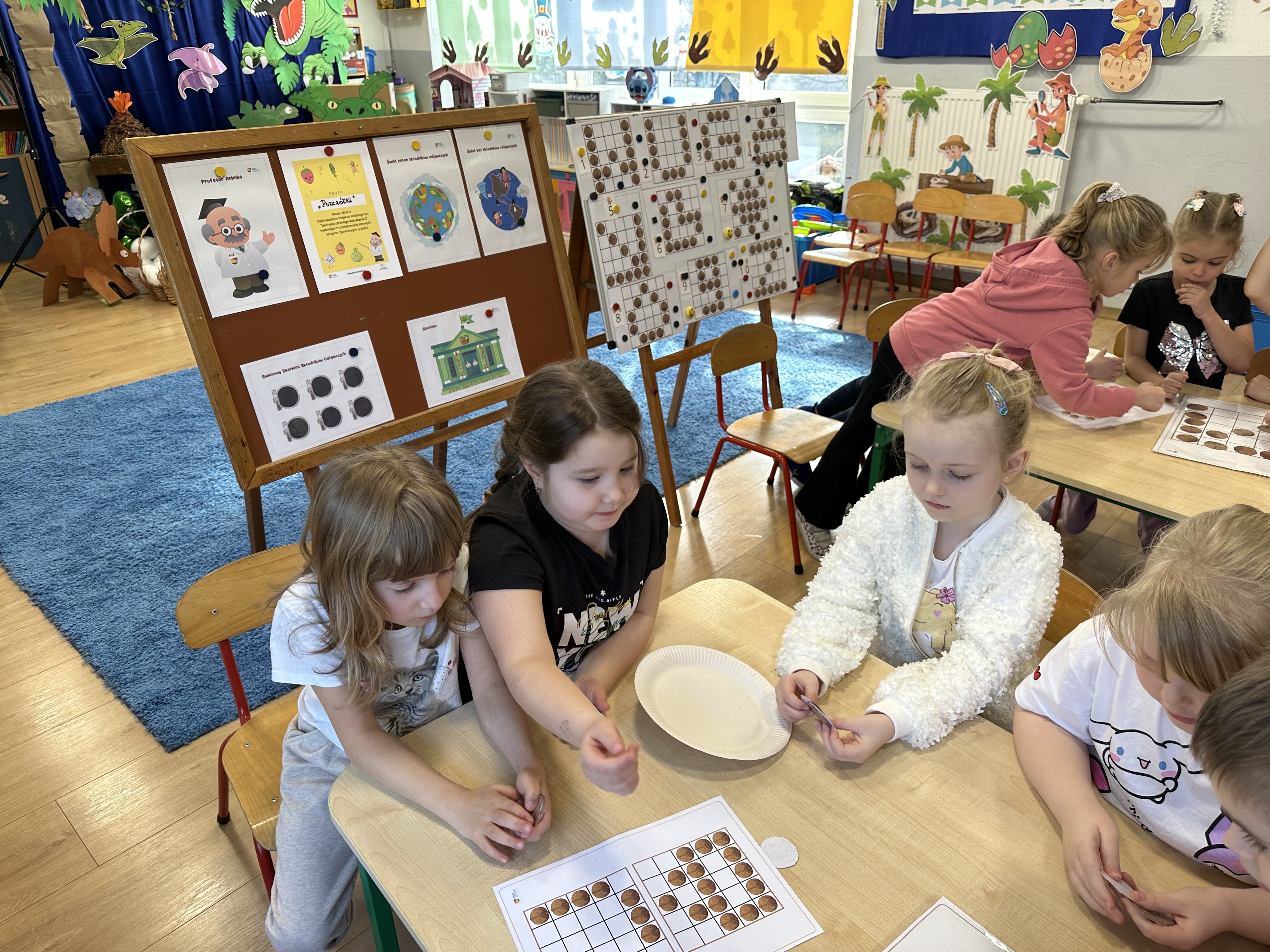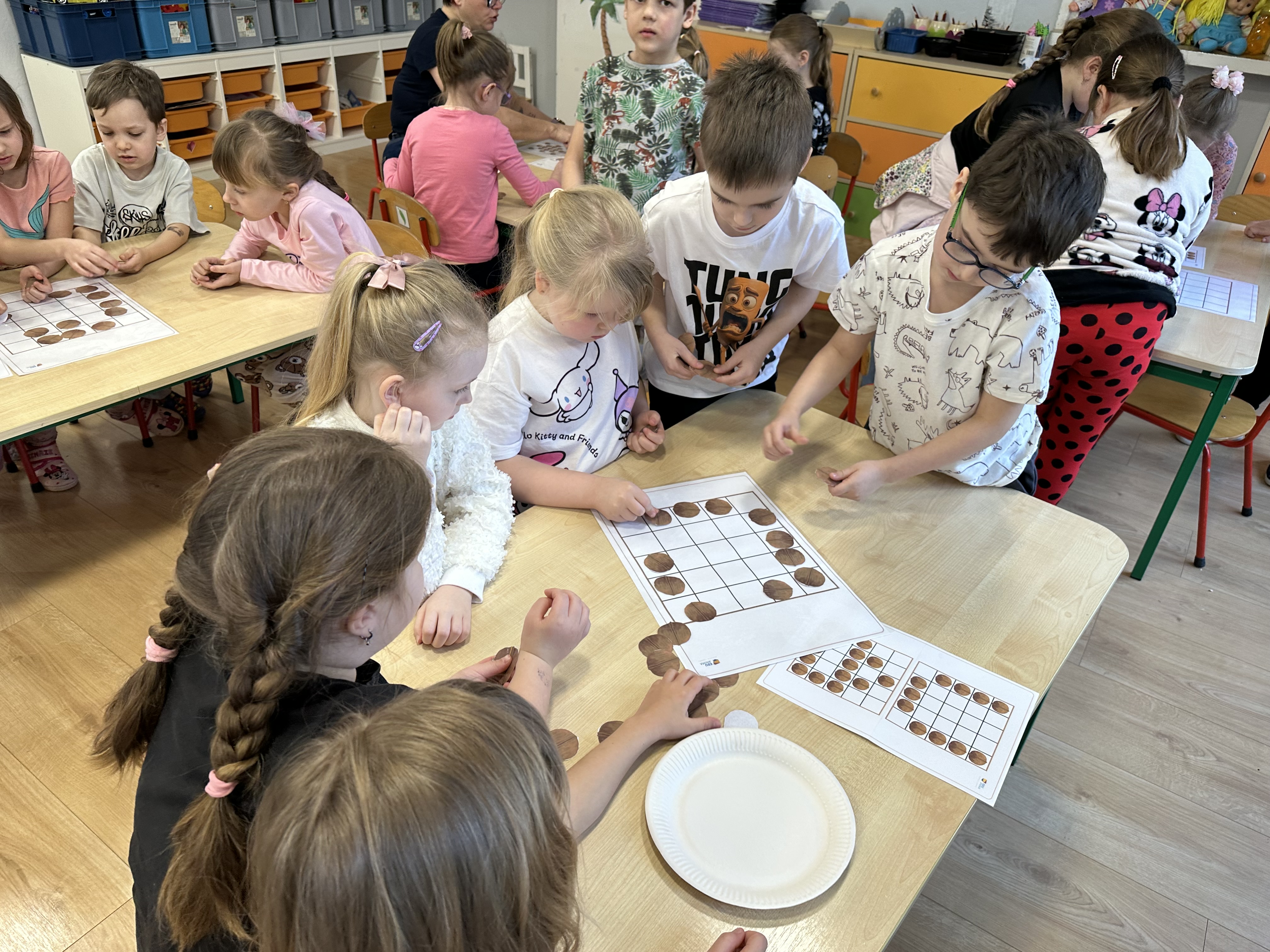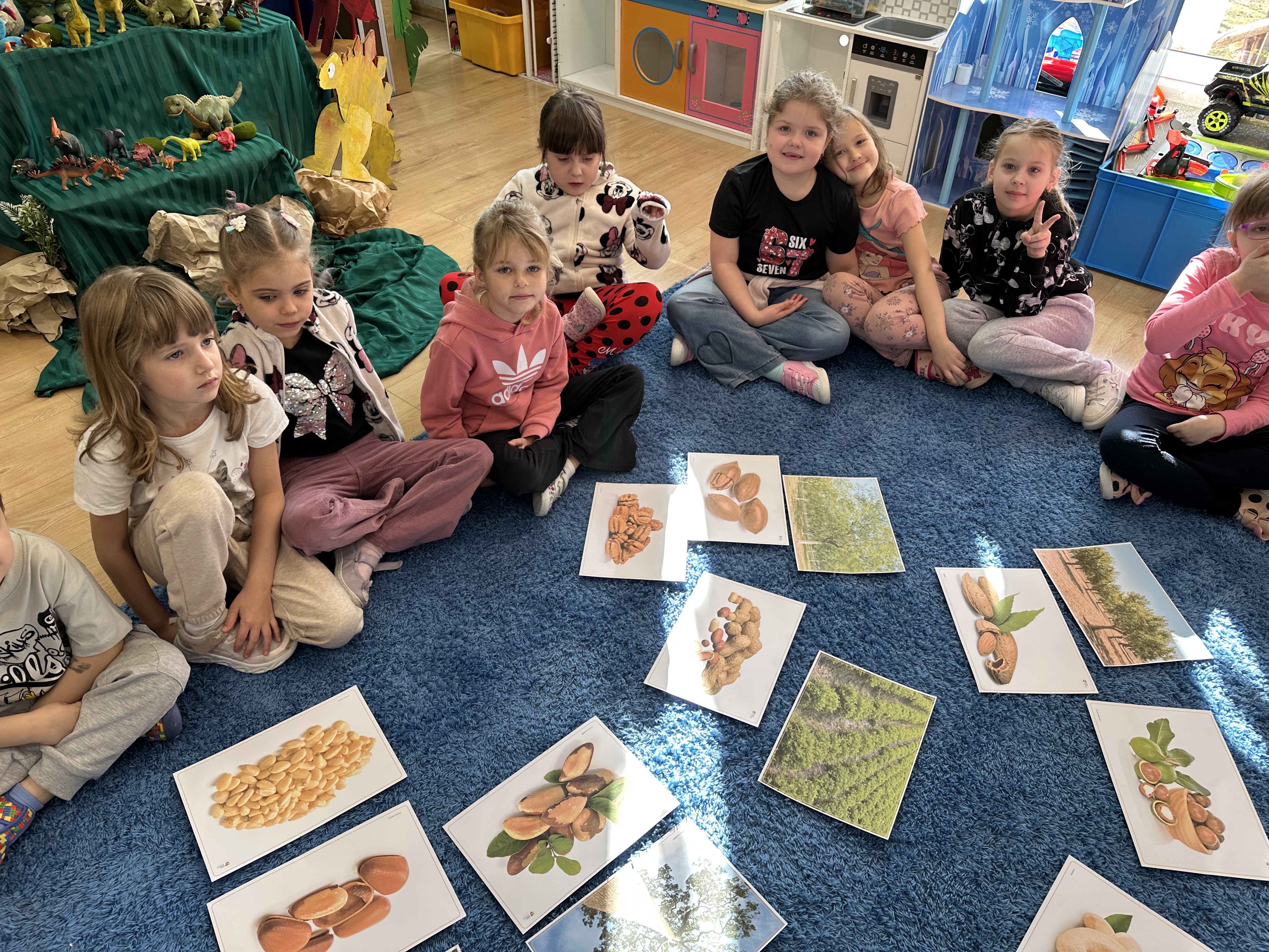 W ramach realizacji kolejnego modułu projektu edukacyjnego grupa „Pszczółek” poznawała wartości odżywcze orzechów. Wprowadzeniem do zajęć było wysłuchanie wiersza pt. „Orzechowy skarb”, który stał się inspiracją do rozmowy na temat różnych rodzajów orzechów. Dzieci aktywnie uczestniczyły w dyskusji – wymieniały znane im rodzaje orzechów oraz dzieliły się swoimi preferencjami smakowymi. Następnie oglądały ilustracje przedstawiające różnorodne orzechy oraz wysłuchały ciekawostek na ich temat. Miały również okazję do bezpośredniego kontaktu z wybranymi okazami – orzechami włoskimi i laskowymi - poprzez dotykanie, wąchanie i degustację. Dużym zainteresowaniem cieszył się film edukacyjny przedstawiający proces wzrostu orzechów ziemnych w przyspieszonym tempie. Po jego obejrzeniu dzieci utrwalały zdobytą wiedzę, układając ilustracje w odpowiedniej kolejności. W trakcie zajęć nie zabrakło również aktywności ruchowych – dzieci brały udział w zabawie „Wiewiórka hop do dziupli z orzeszkiem – wiewiórka z dziupli”, która rozwijała ich sprawność fizyczną i refleks. W dalszej części zajęć dzieci zapoznały się z nazwami zdrowych potraw zawierających orzechy oraz uczestniczyły w zabawie „Układanka lewopółkulowa”, odwzorowując kształty z orzechów na planszach oraz tworząc własne kompozycje. Ćwiczyły również spostrzegawczość w zabawie „Rozpoznaj i połącz”. Zrealizowane działania pozwoliły dzieciom poszerzyć wiedzę na temat zdrowego odżywiania, rozwijać zmysły oraz umiejętności poznawcze i manualne.