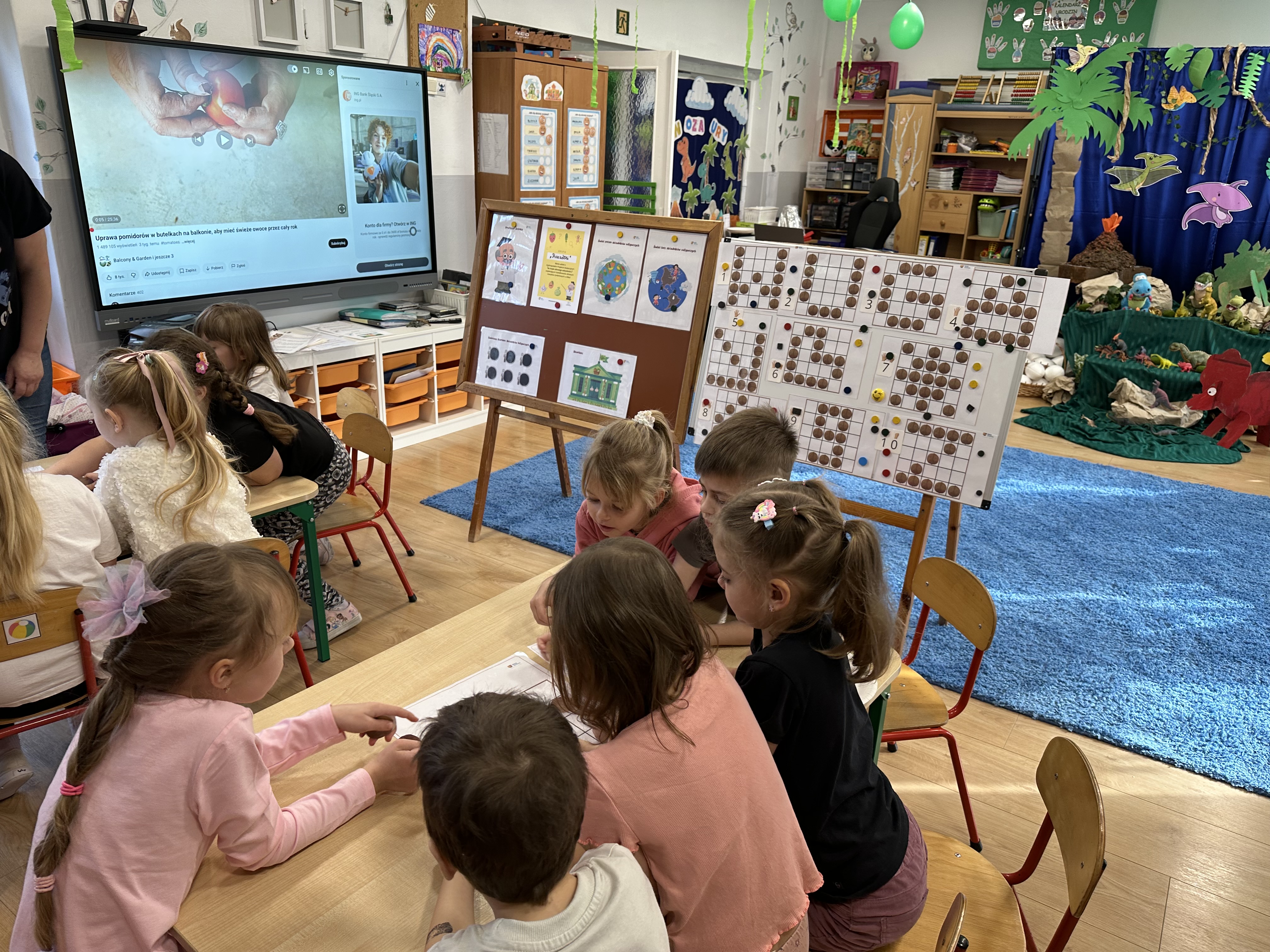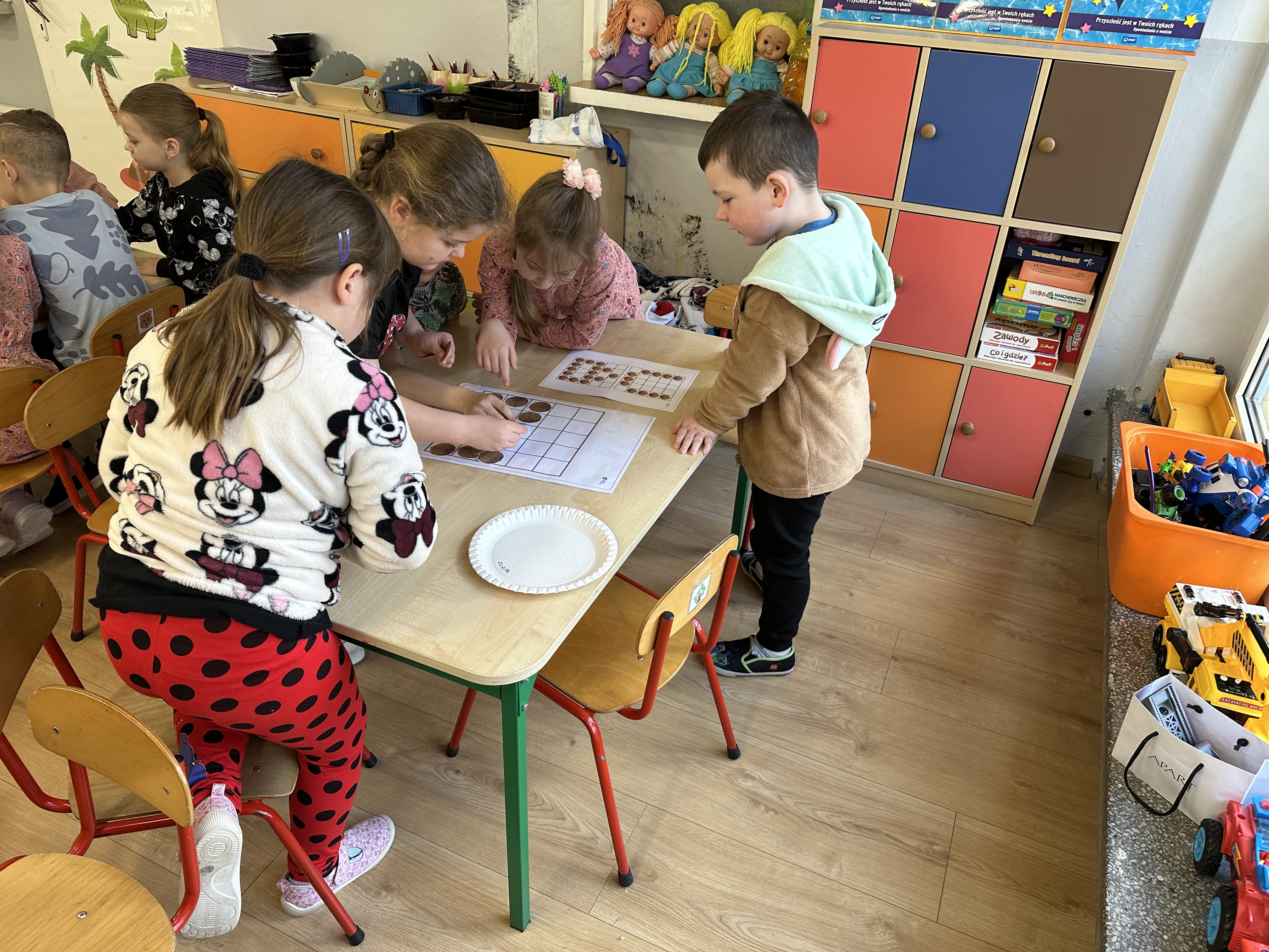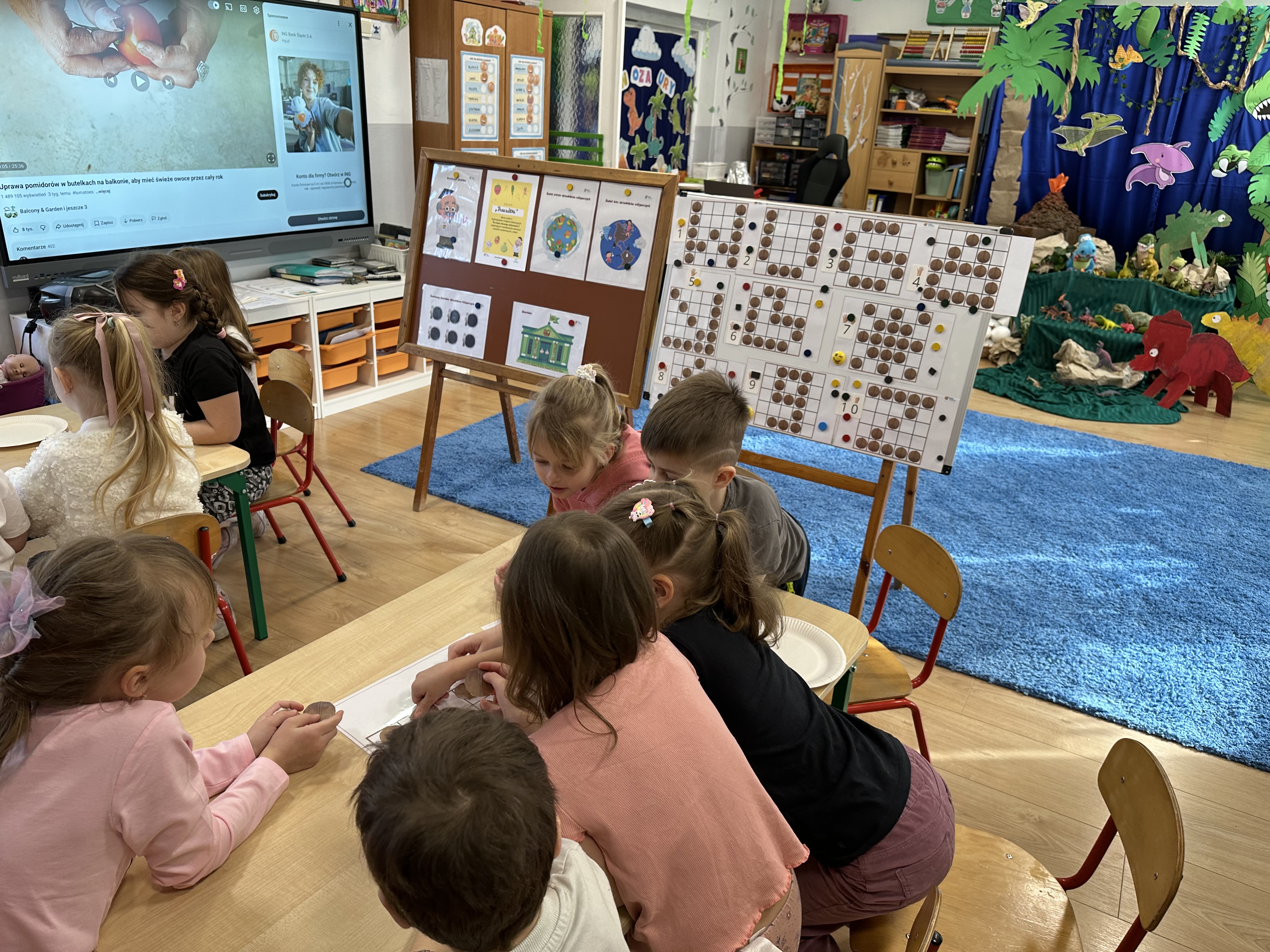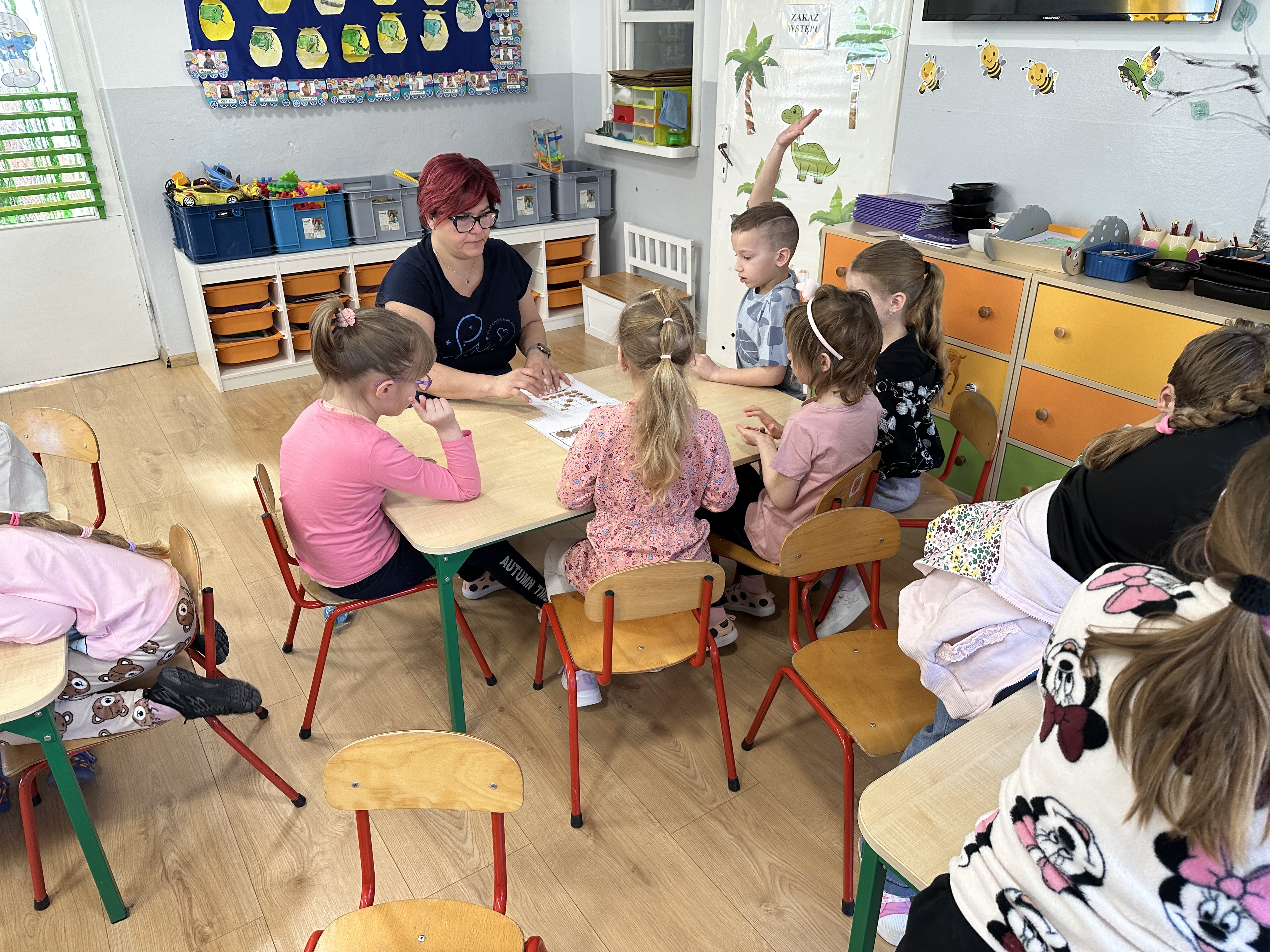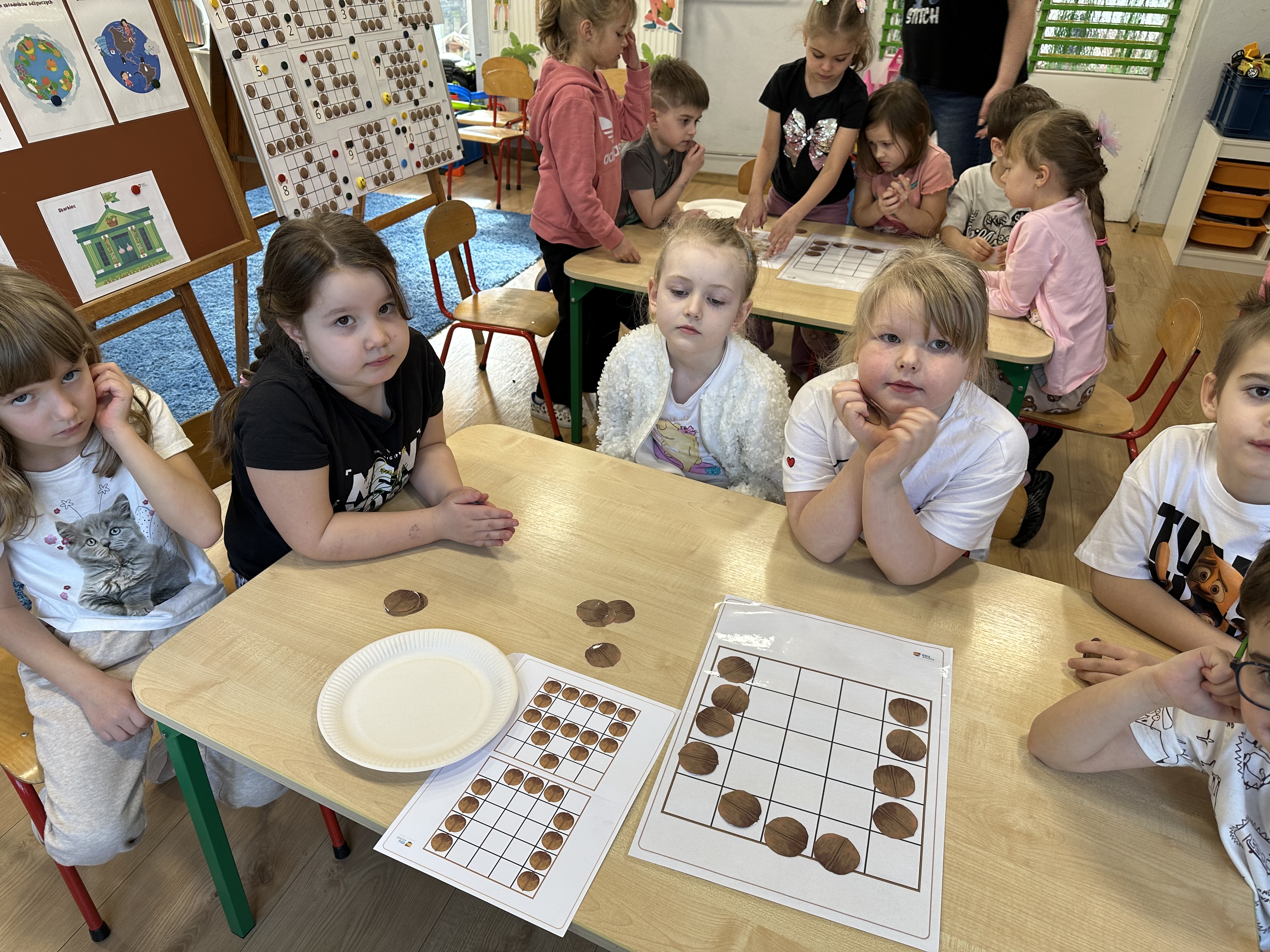 W ramach realizacji kolejnego modułu projektu edukacyjnego grupa „Pszczółek” poznawała wartości odżywcze orzechów. Wprowadzeniem do zajęć było wysłuchanie wiersza pt. „Orzechowy skarb”, który stał się inspiracją do rozmowy na temat różnych rodzajów orzechów. Dzieci aktywnie uczestniczyły w dyskusji – wymieniały znane im rodzaje orzechów oraz dzieliły się swoimi preferencjami smakowymi. Następnie oglądały ilustracje przedstawiające różnorodne orzechy oraz wysłuchały ciekawostek na ich temat. Miały również okazję do bezpośredniego kontaktu z wybranymi okazami – orzechami włoskimi i laskowymi - poprzez dotykanie, wąchanie i degustację. Dużym zainteresowaniem cieszył się film edukacyjny przedstawiający proces wzrostu orzechów ziemnych w przyspieszonym tempie. Po jego obejrzeniu dzieci utrwalały zdobytą wiedzę, układając ilustracje w odpowiedniej kolejności. W trakcie zajęć nie zabrakło również aktywności ruchowych – dzieci brały udział w zabawie „Wiewiórka hop do dziupli z orzeszkiem – wiewiórka z dziupli”, która rozwijała ich sprawność fizyczną i refleks. W dalszej części zajęć dzieci zapoznały się z nazwami zdrowych potraw zawierających orzechy oraz uczestniczyły w zabawie „Układanka lewopółkulowa”, odwzorowując kształty z orzechów na planszach oraz tworząc własne kompozycje. Ćwiczyły również spostrzegawczość w zabawie „Rozpoznaj i połącz”. Zrealizowane działania pozwoliły dzieciom poszerzyć wiedzę na temat zdrowego odżywiania, rozwijać zmysły oraz umiejętności poznawcze i manualne.