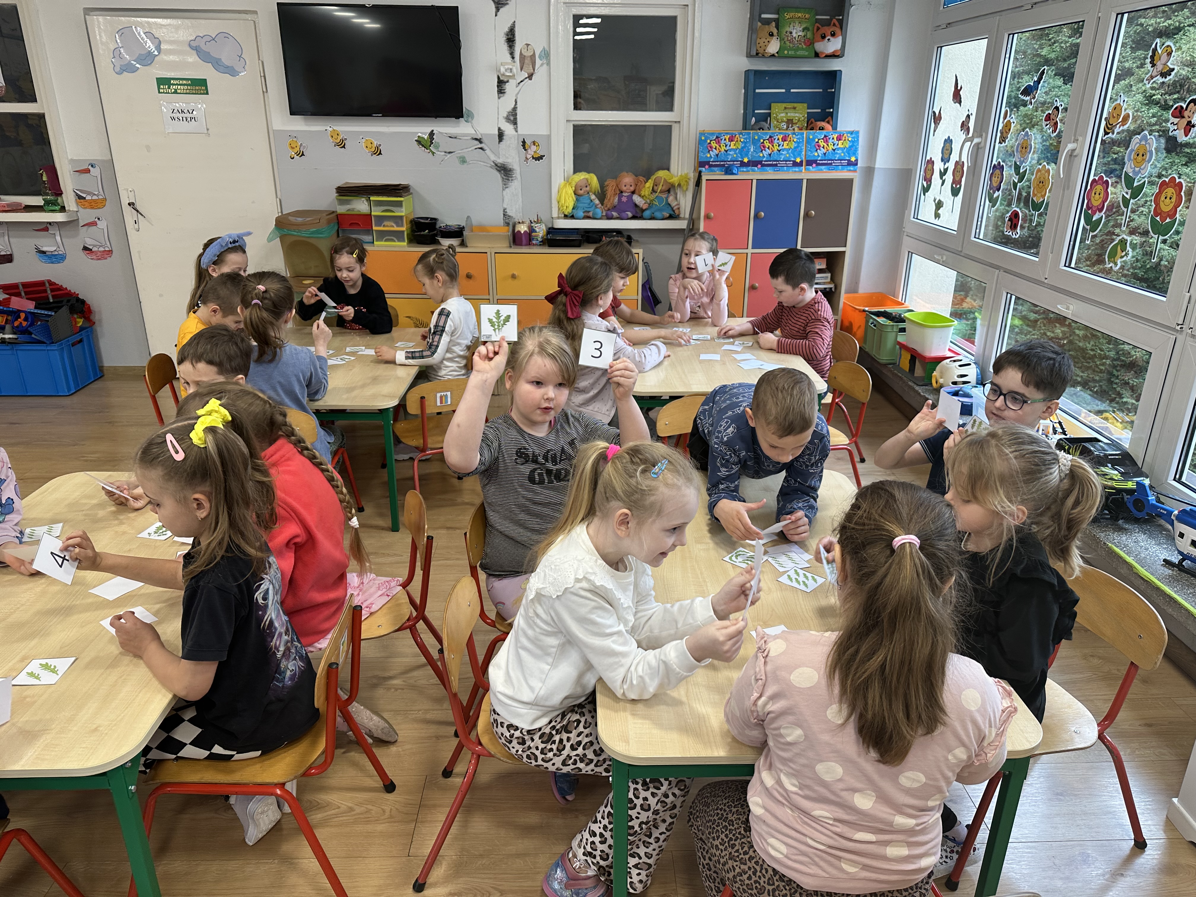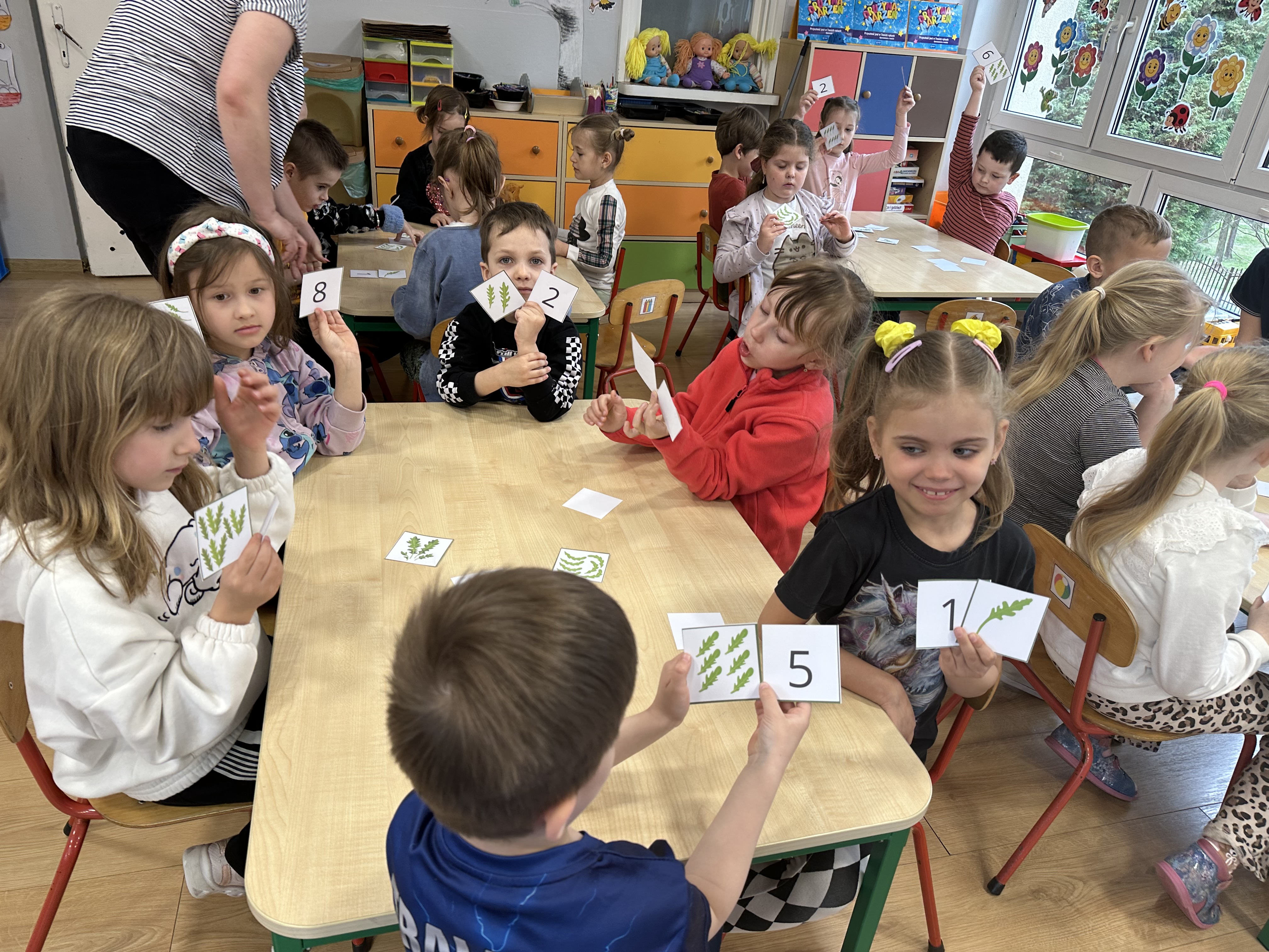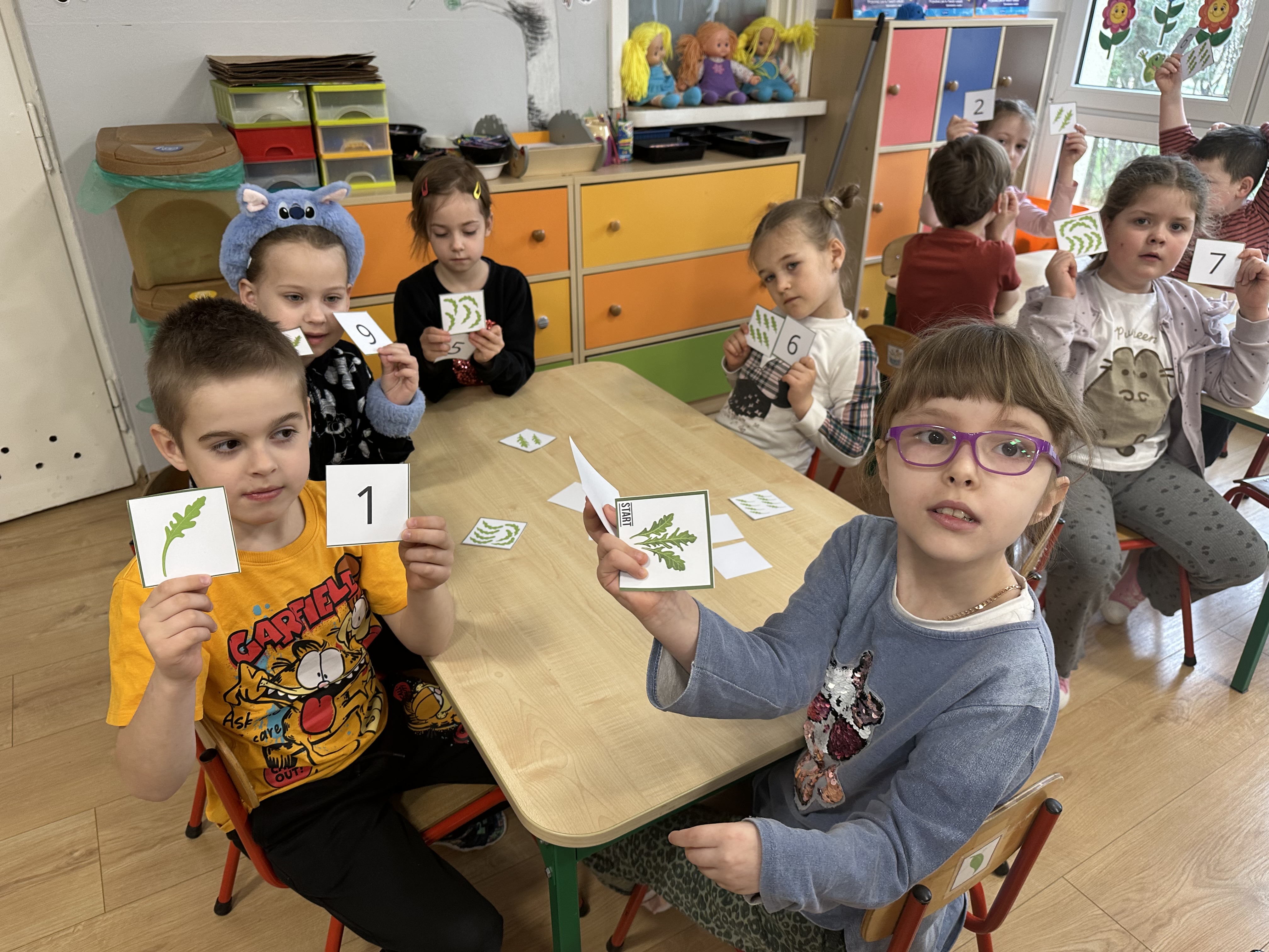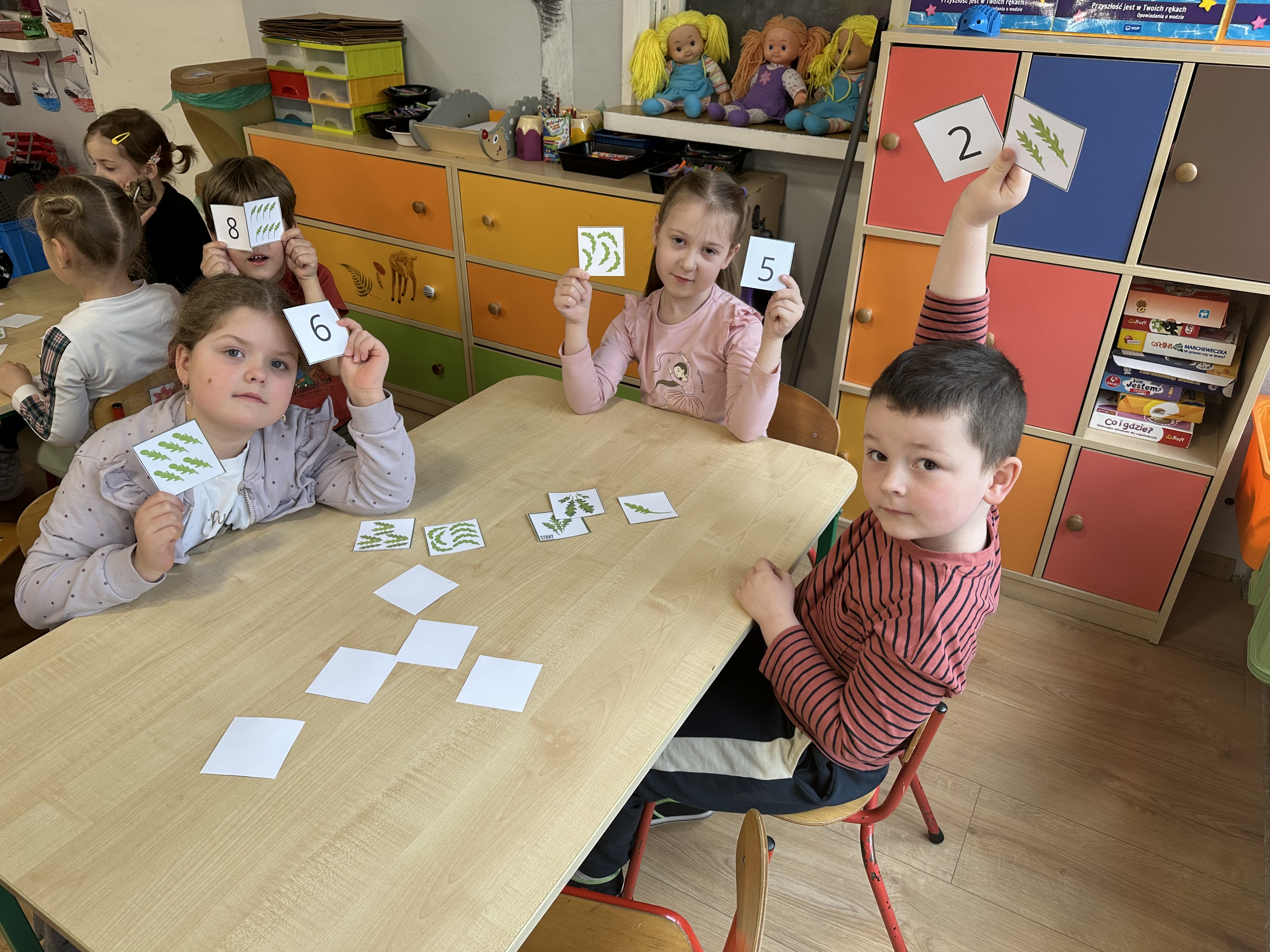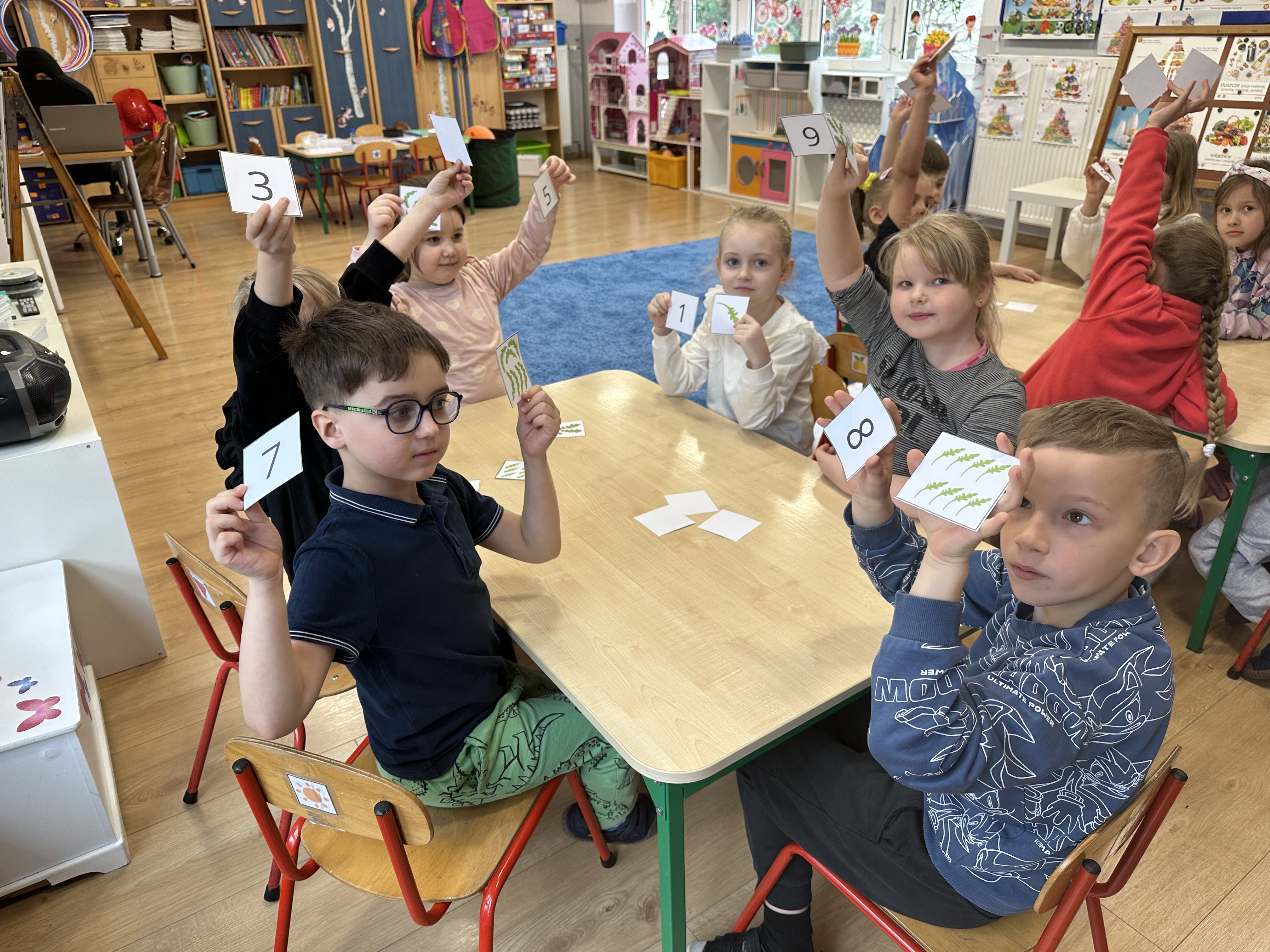 Dzieci rozwijały także kompetencje matematyczne, biorąc udział w grze w domino, w której dopasowywały obrazki rukoli do odpowiednich cyfr w zakresie 0-10. Dużym zainteresowaniem cieszyła się również gra planszowa, której celem było doprowadzenie ogrodnika do jego uprawy rukoli - emocji nie brakowało!