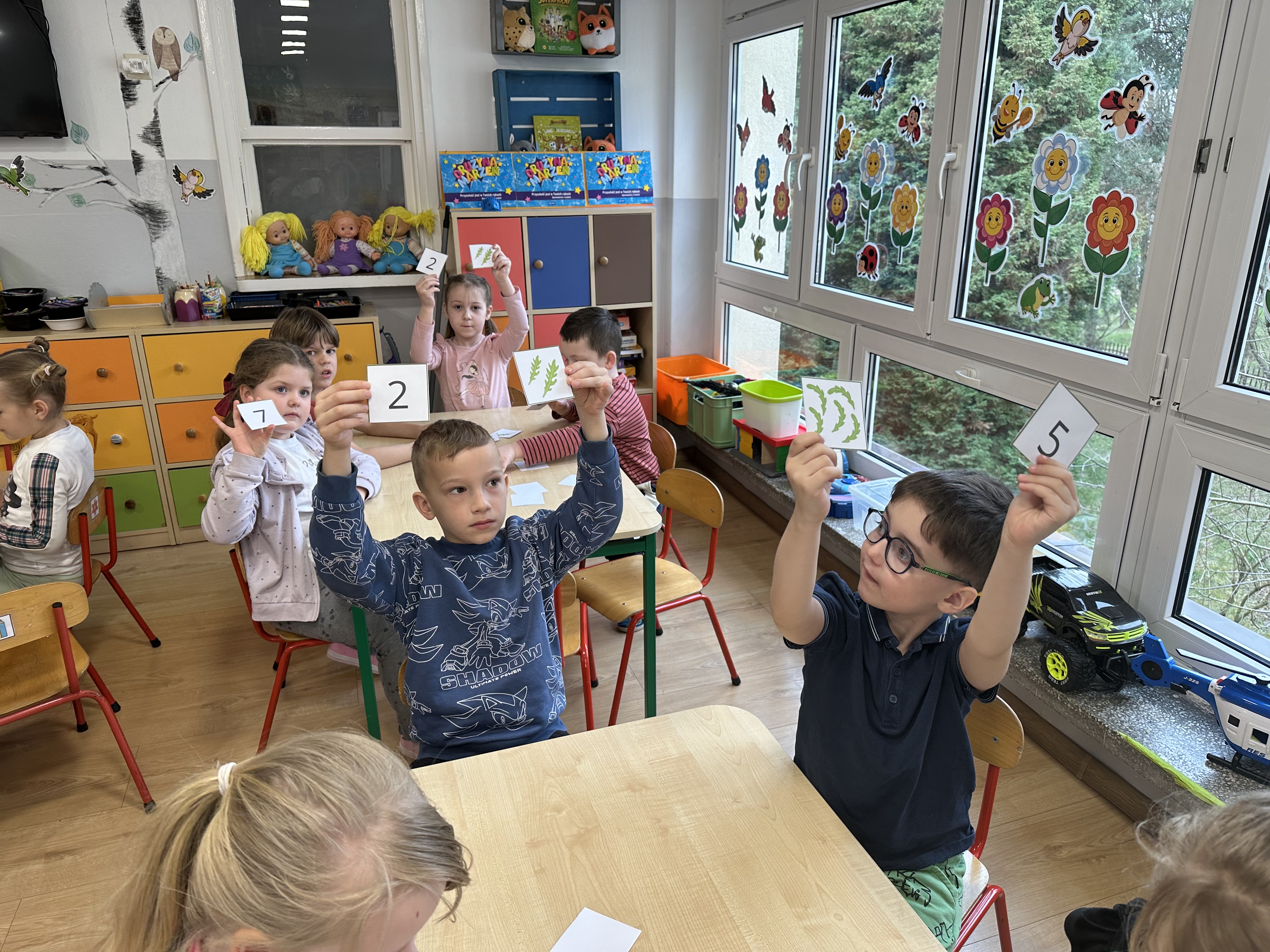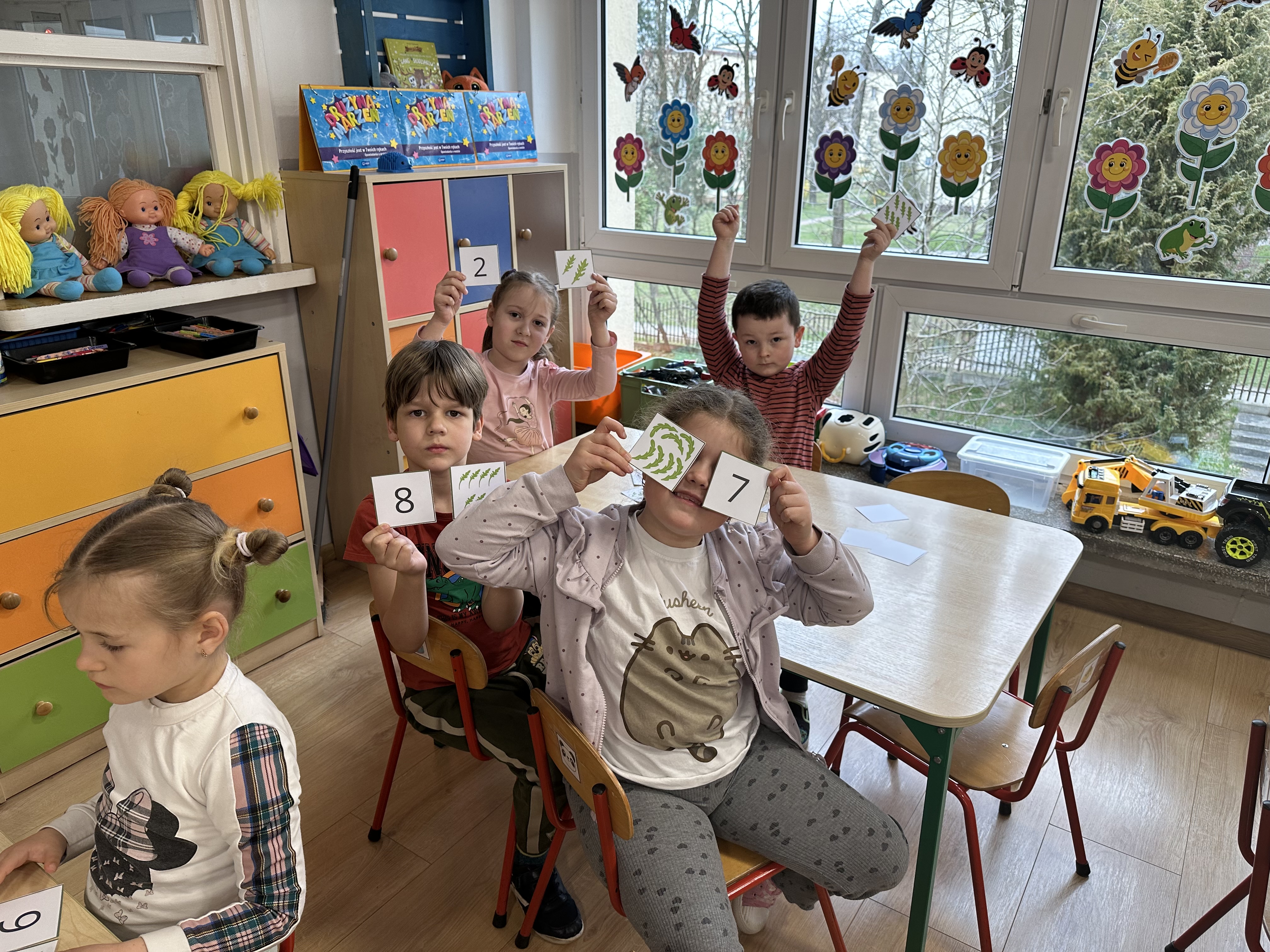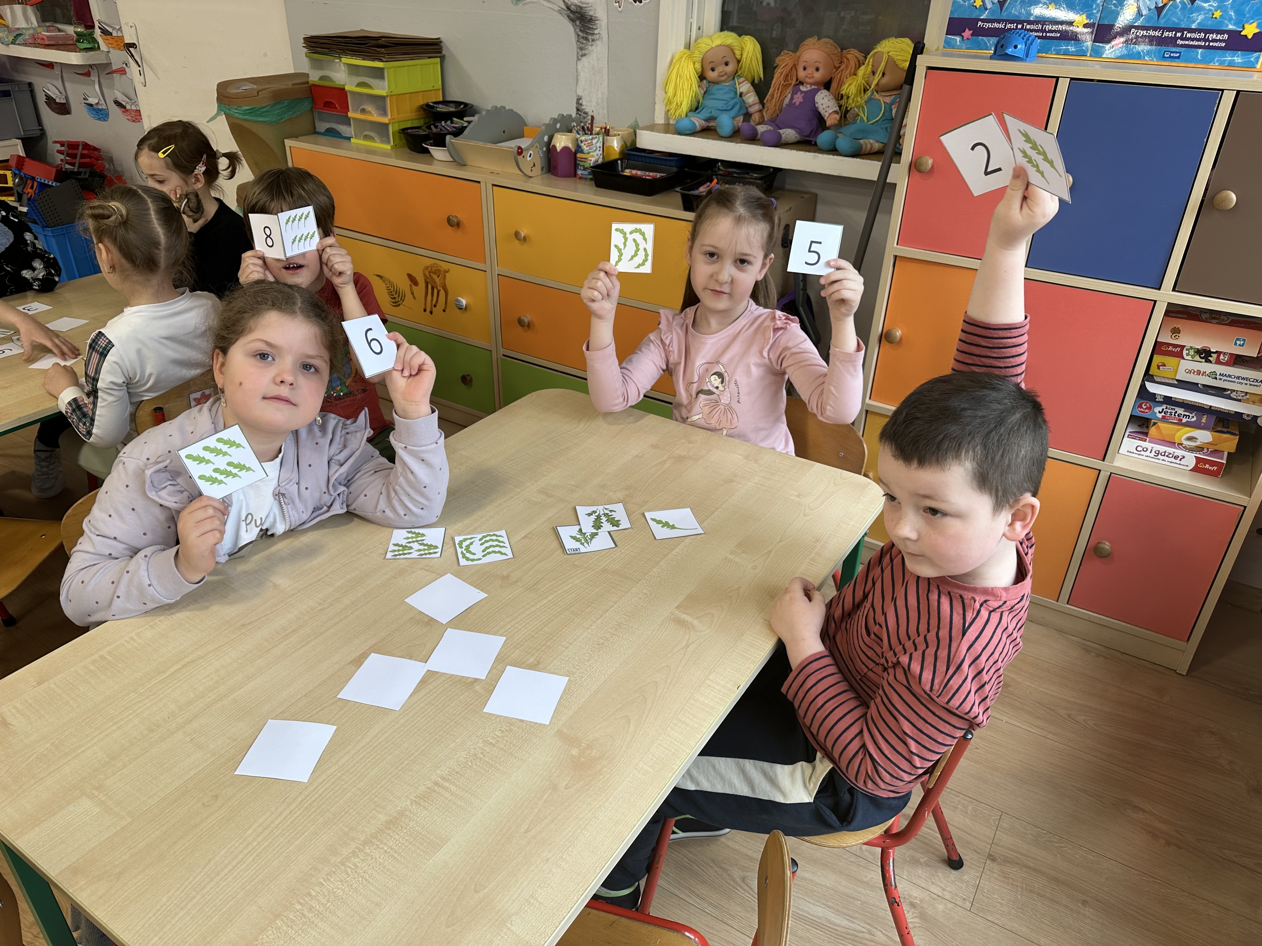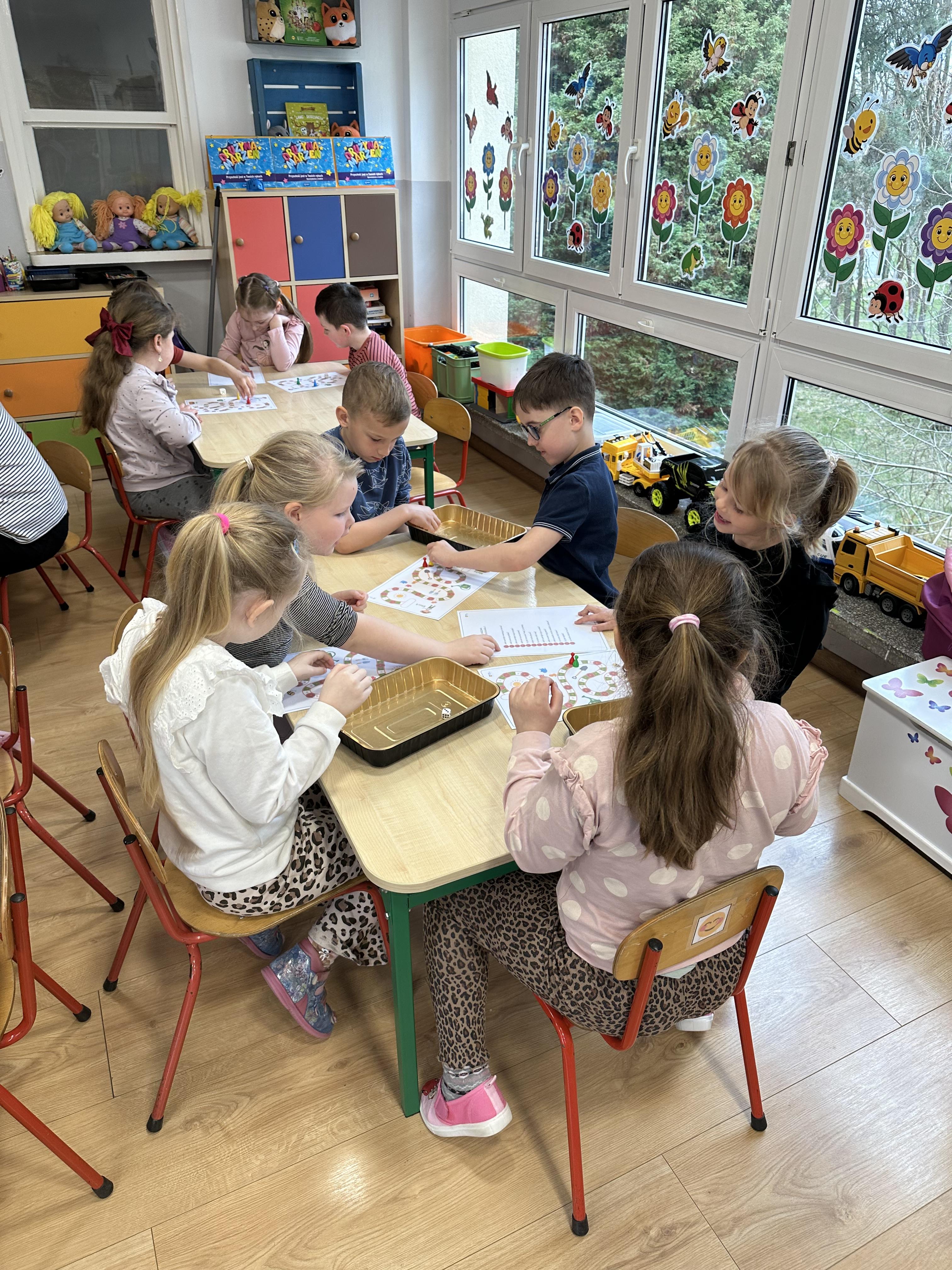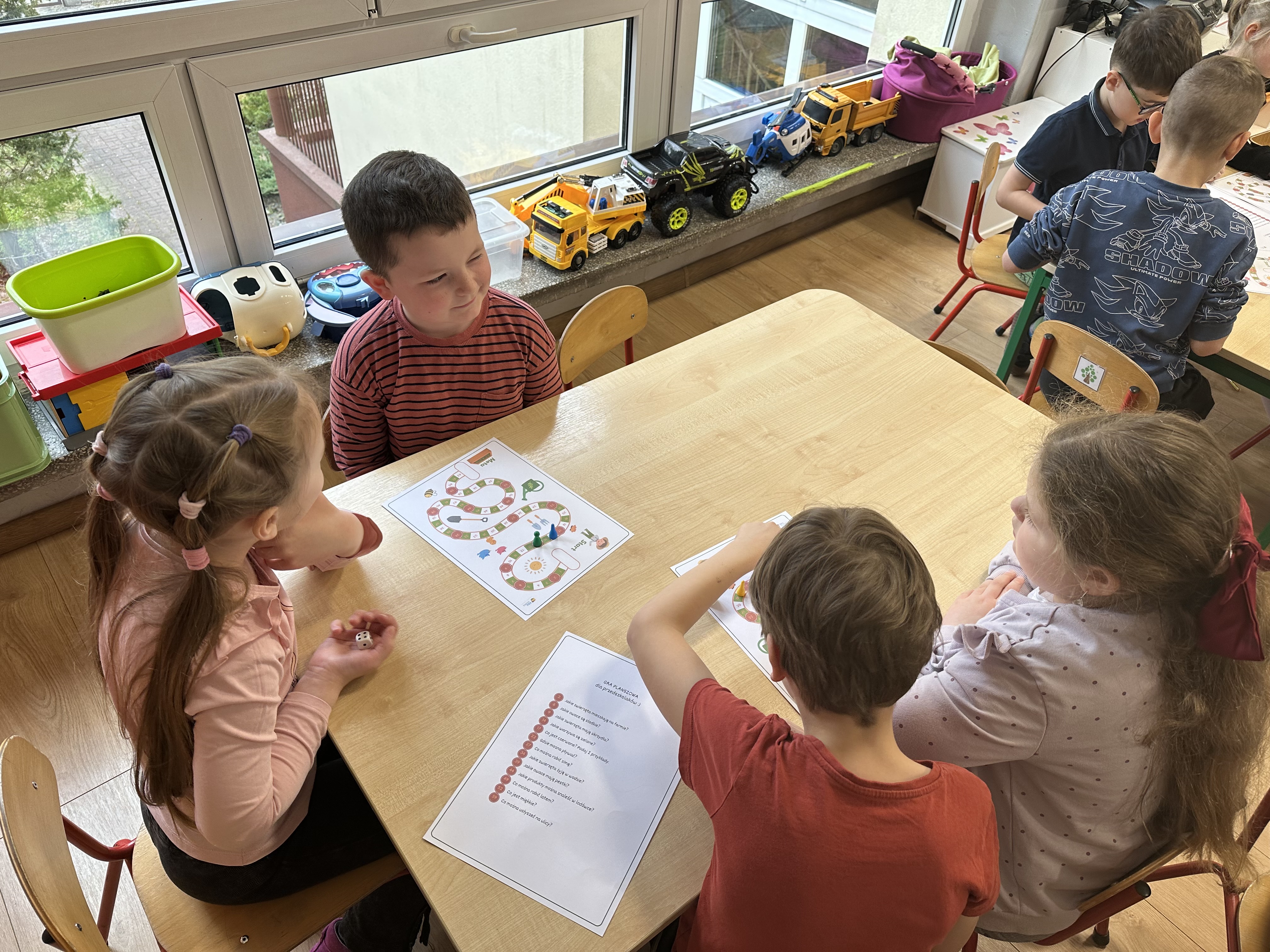 Dzieci rozwijały także kompetencje matematyczne, biorąc udział w grze w domino, w której dopasowywały obrazki rukoli do odpowiednich cyfr w zakresie 0-10. Dużym zainteresowaniem cieszyła się również gra planszowa, której celem było doprowadzenie ogrodnika do jego uprawy rukoli - emocji nie brakowało!