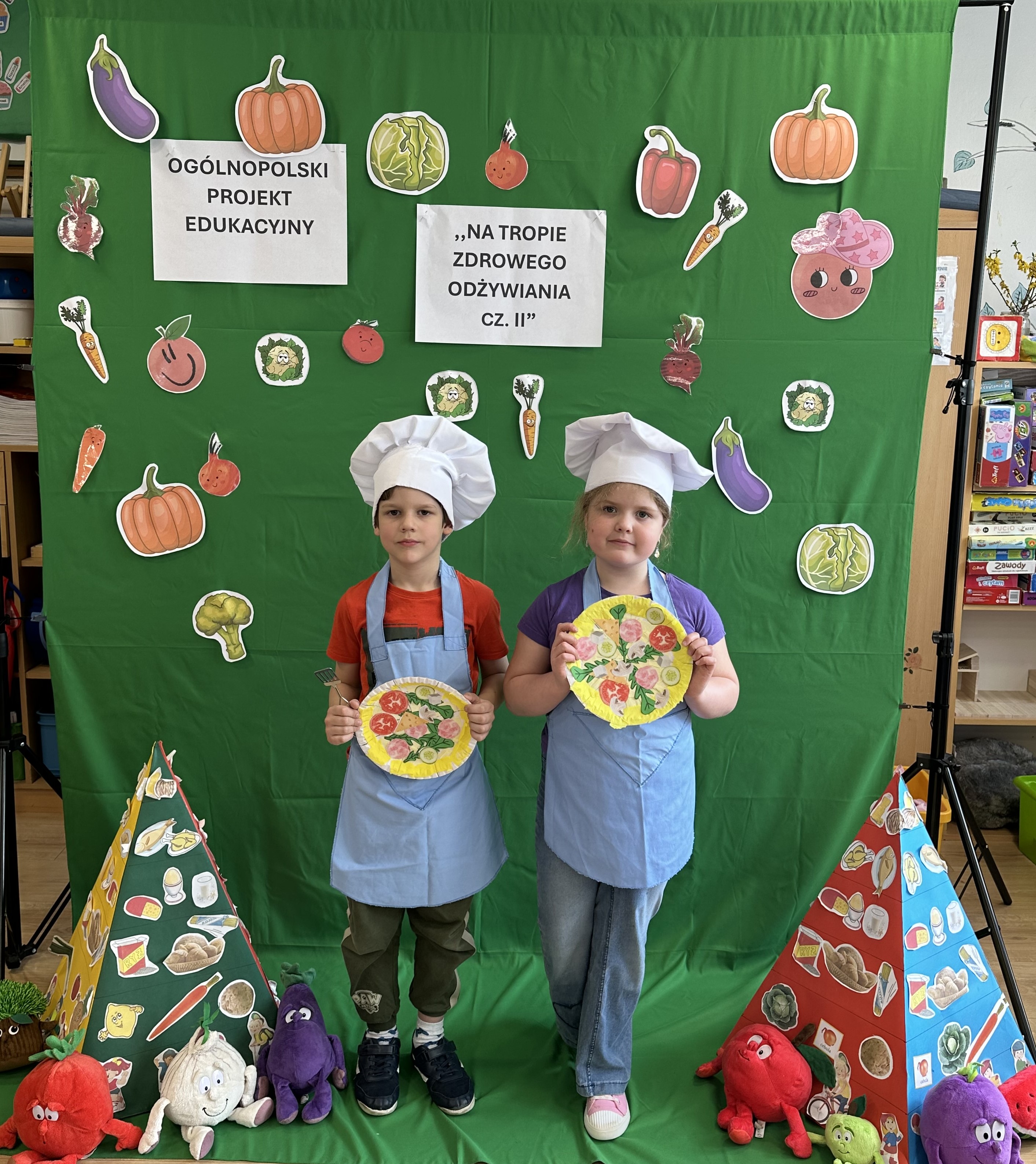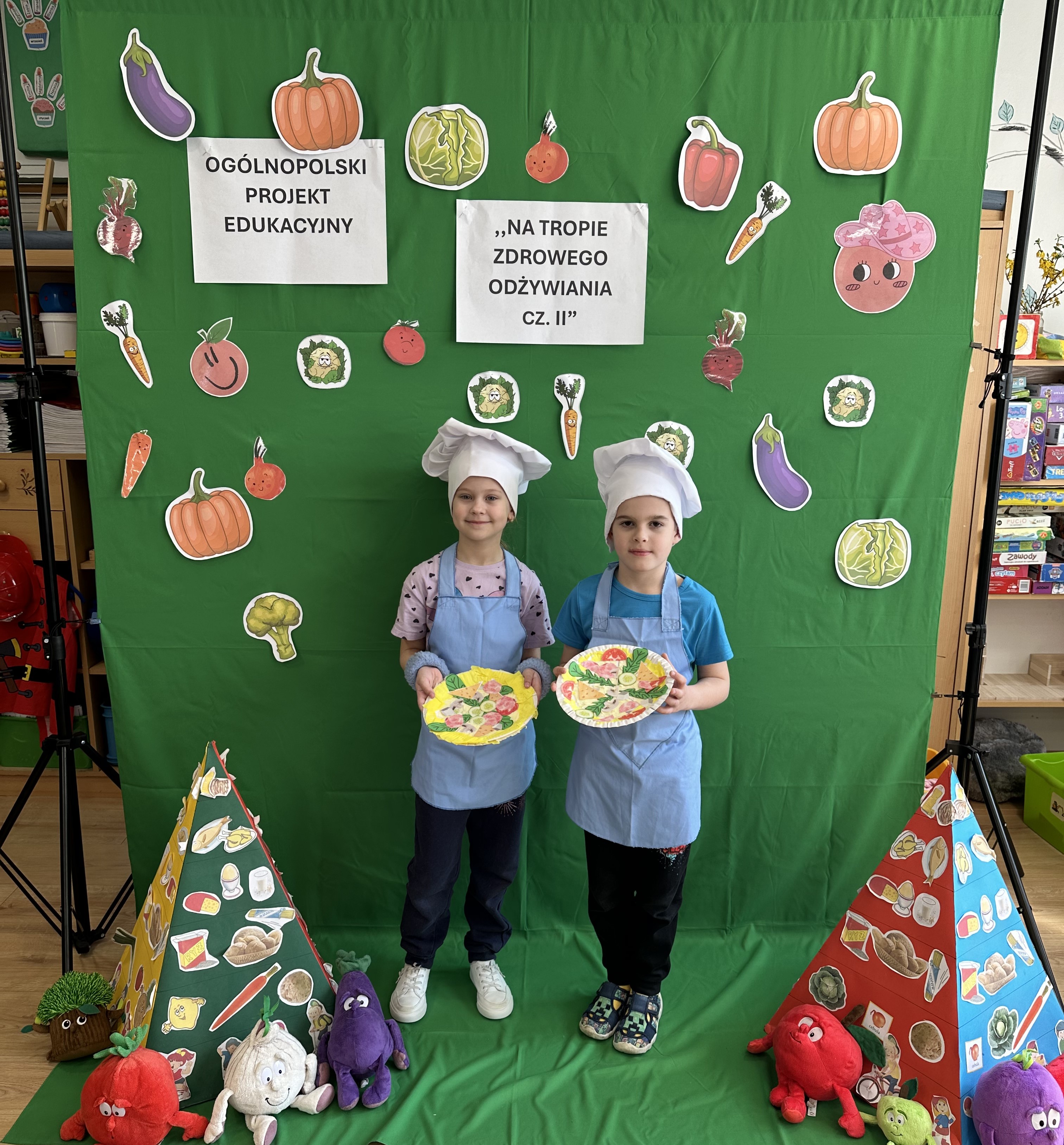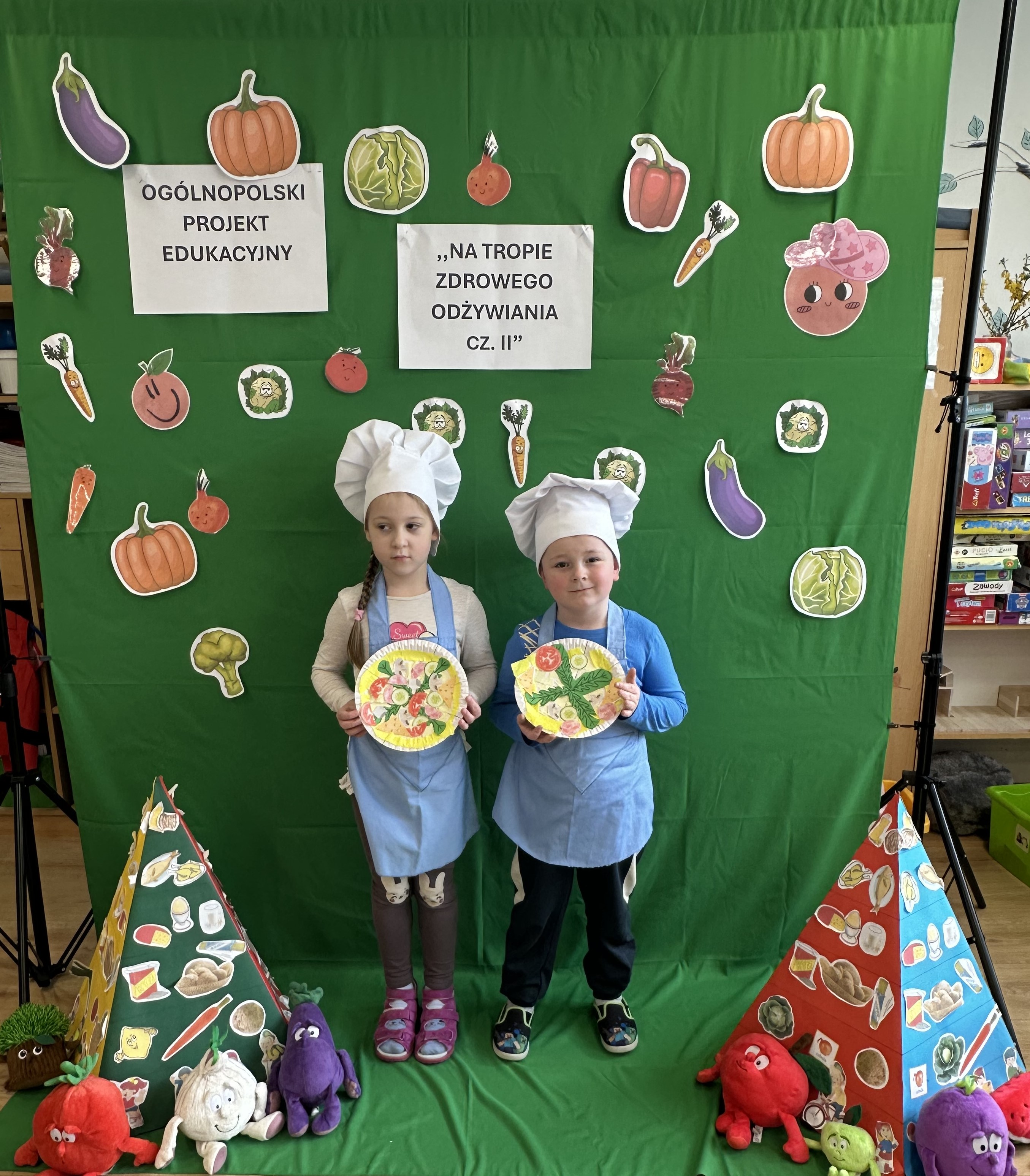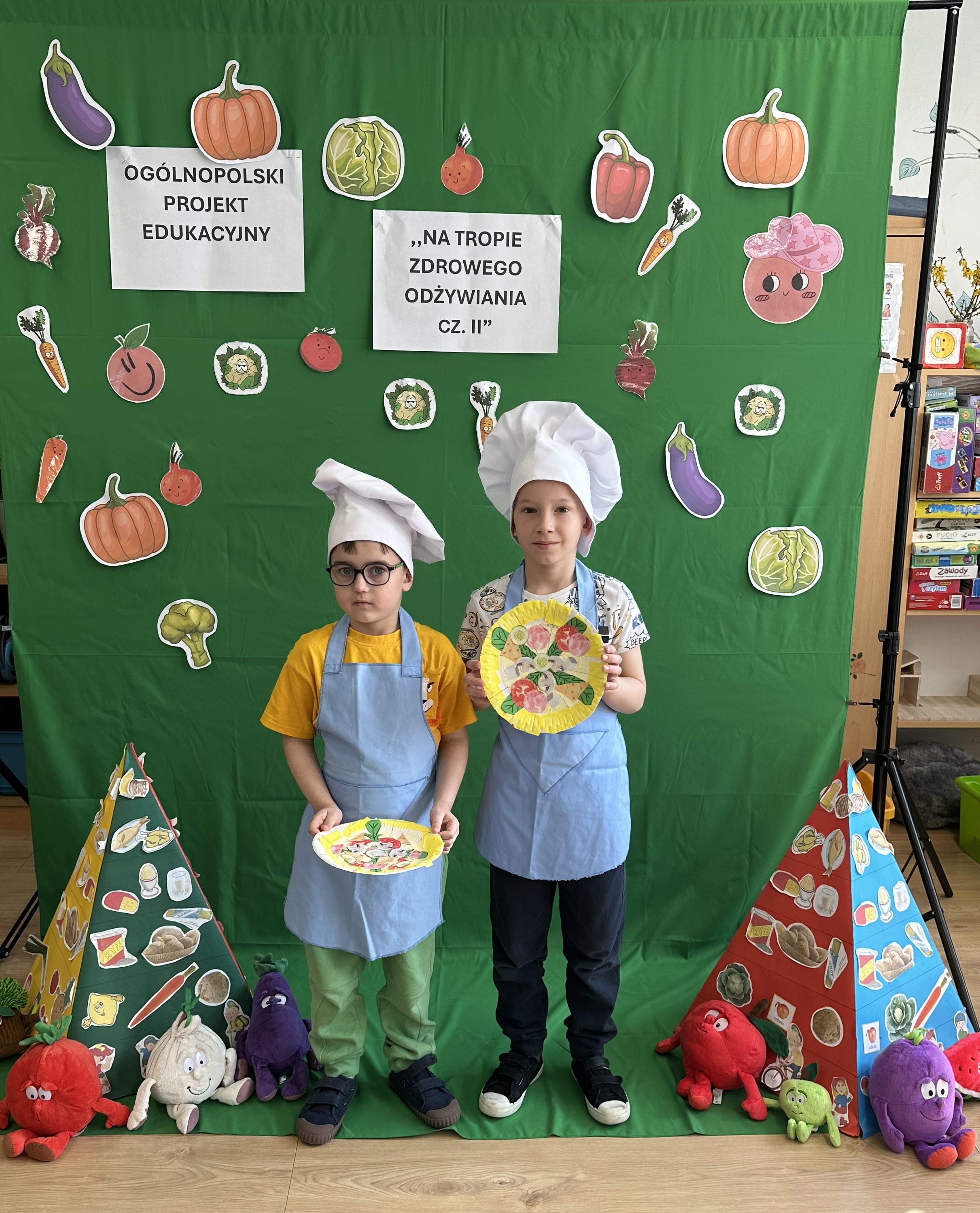 Realizacja projektu „Na tropie zdrowego odżywiania” była dla dzieci niezwykle wartościowym doświadczeniem edukacyjnym. Poprzez różnorodne aktywności - ruchowe, plastyczne, matematyczne i społeczne -dzieci zdobywały wiedzę na temat zdrowych produktów oraz kształtowały prawidłowe nawyki żywieniowe. Projekt sprzyjał również rozwijaniu umiejętności współpracy, kreatywności oraz samodzielności. Dzieci z dużym zaangażowaniem uczestniczyły w zajęciach, a zdobyta wiedza z pewnością wpłynie na ich codzienne wybory żywieniowe.
