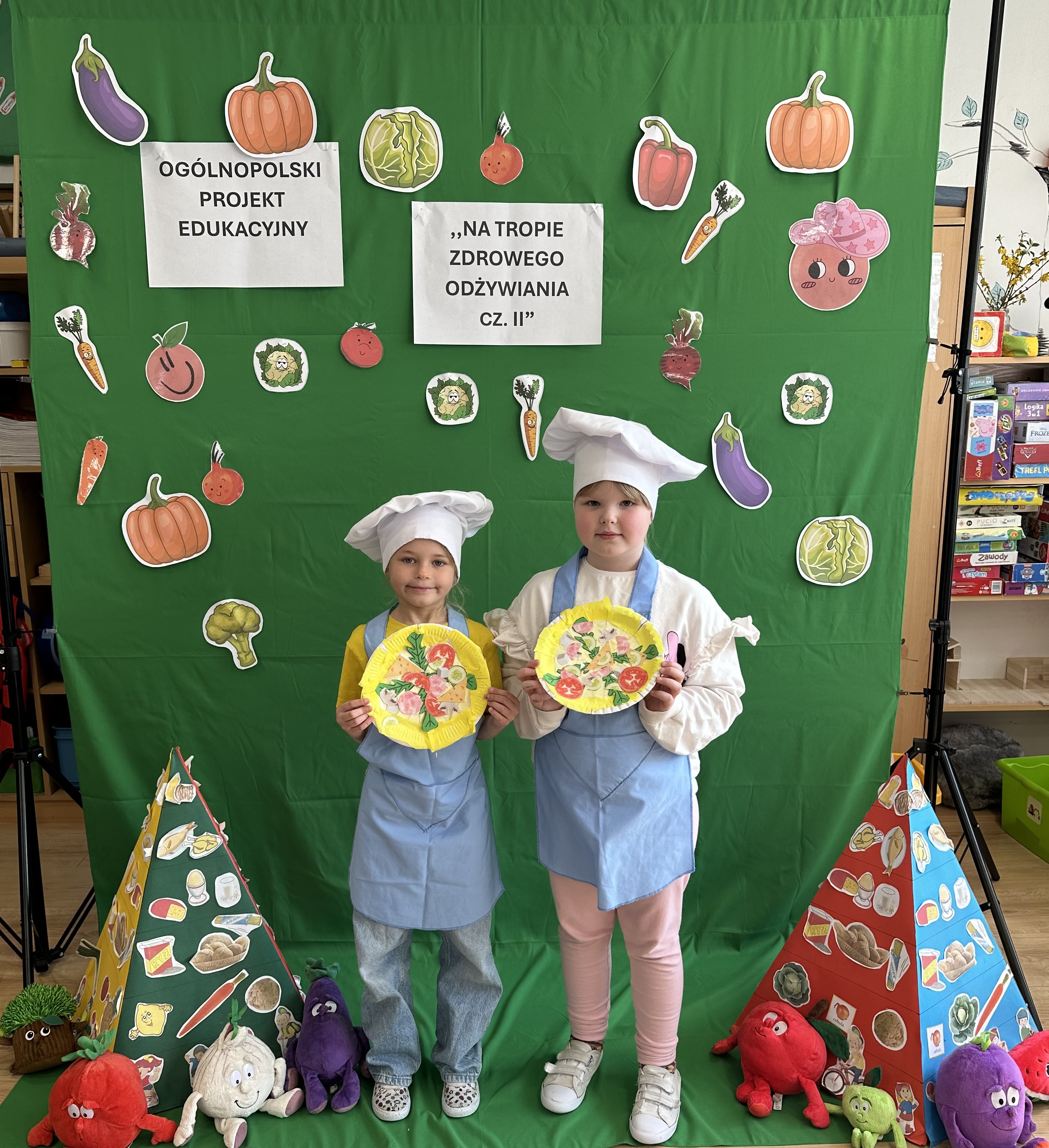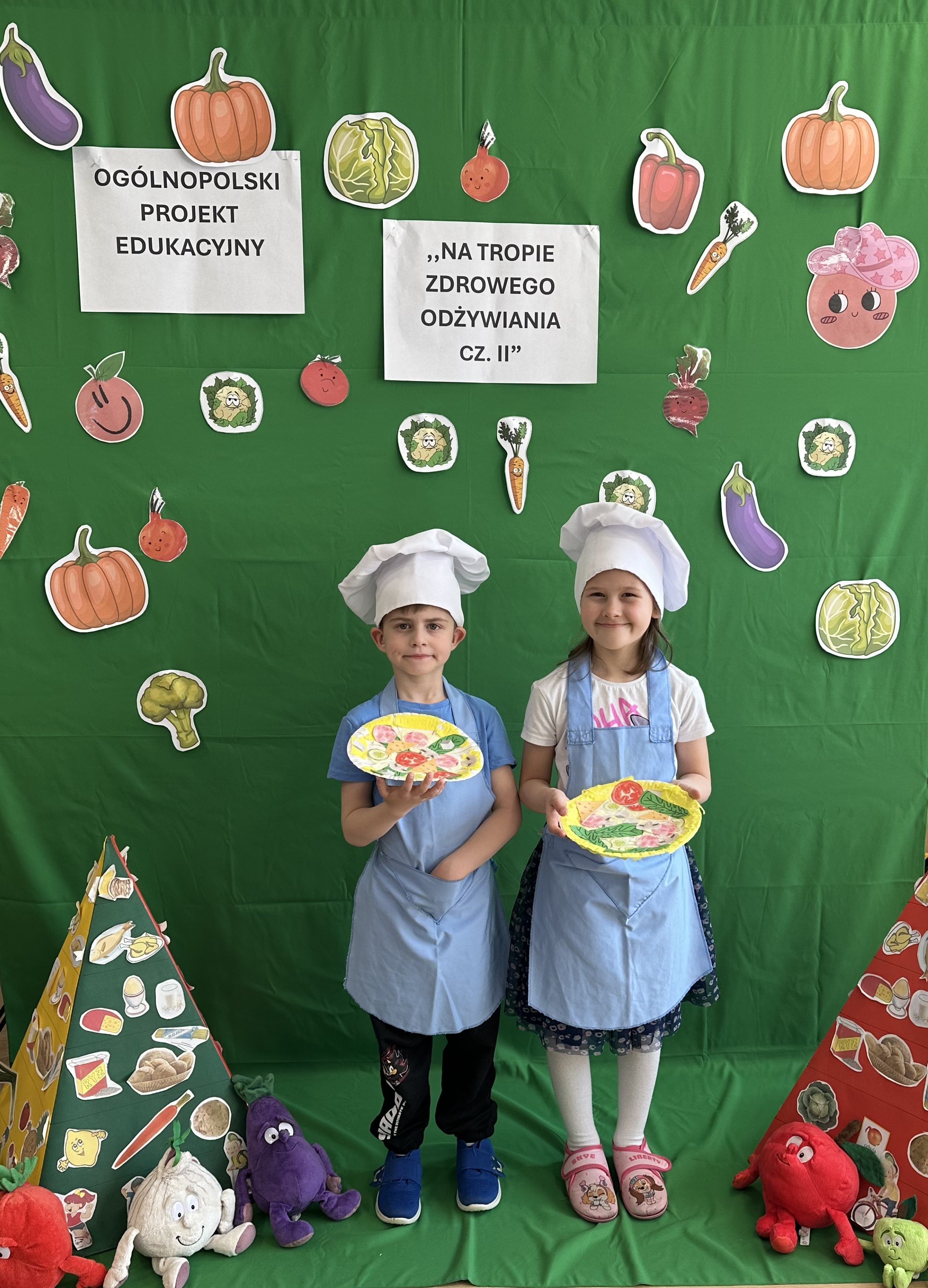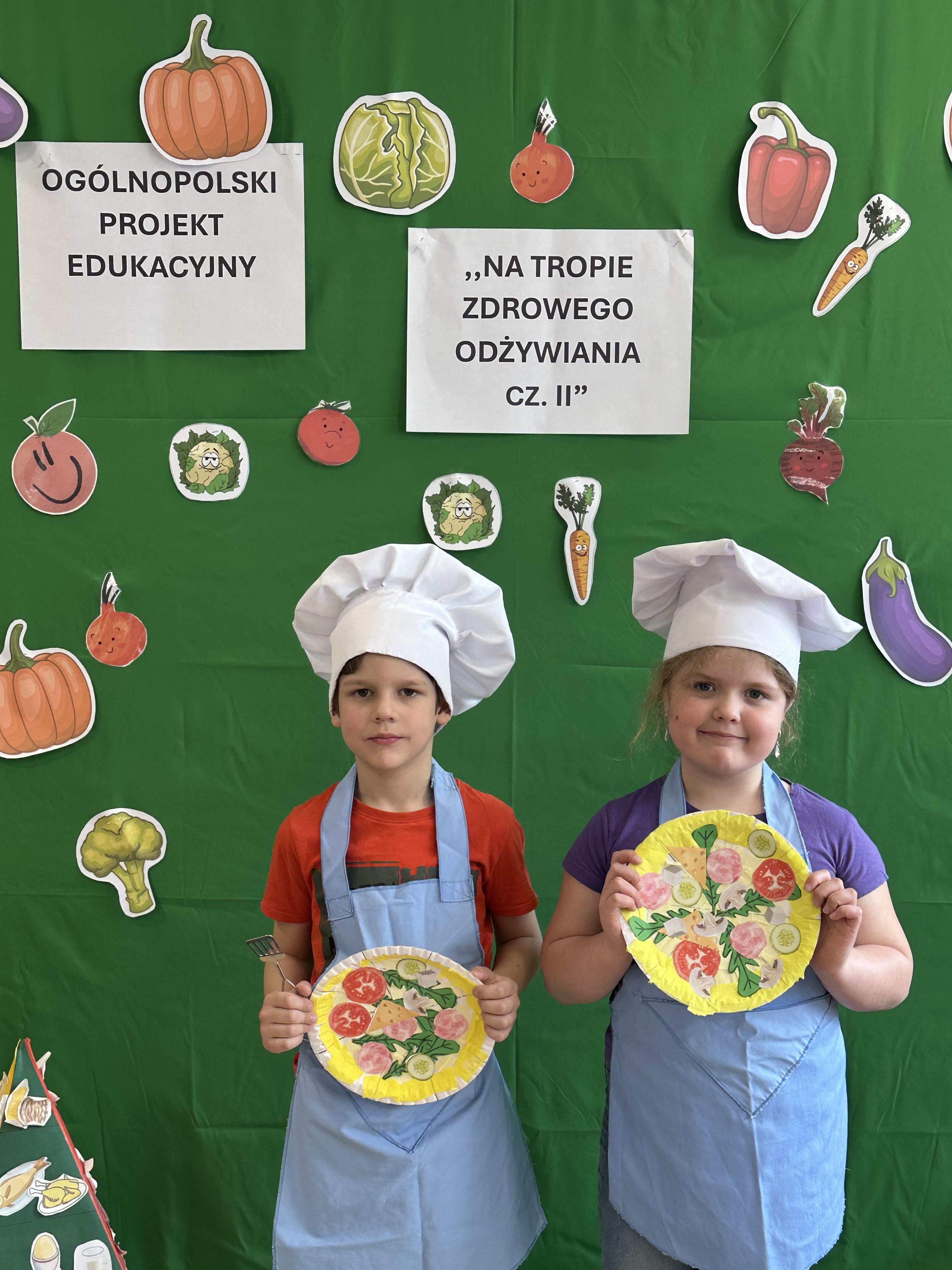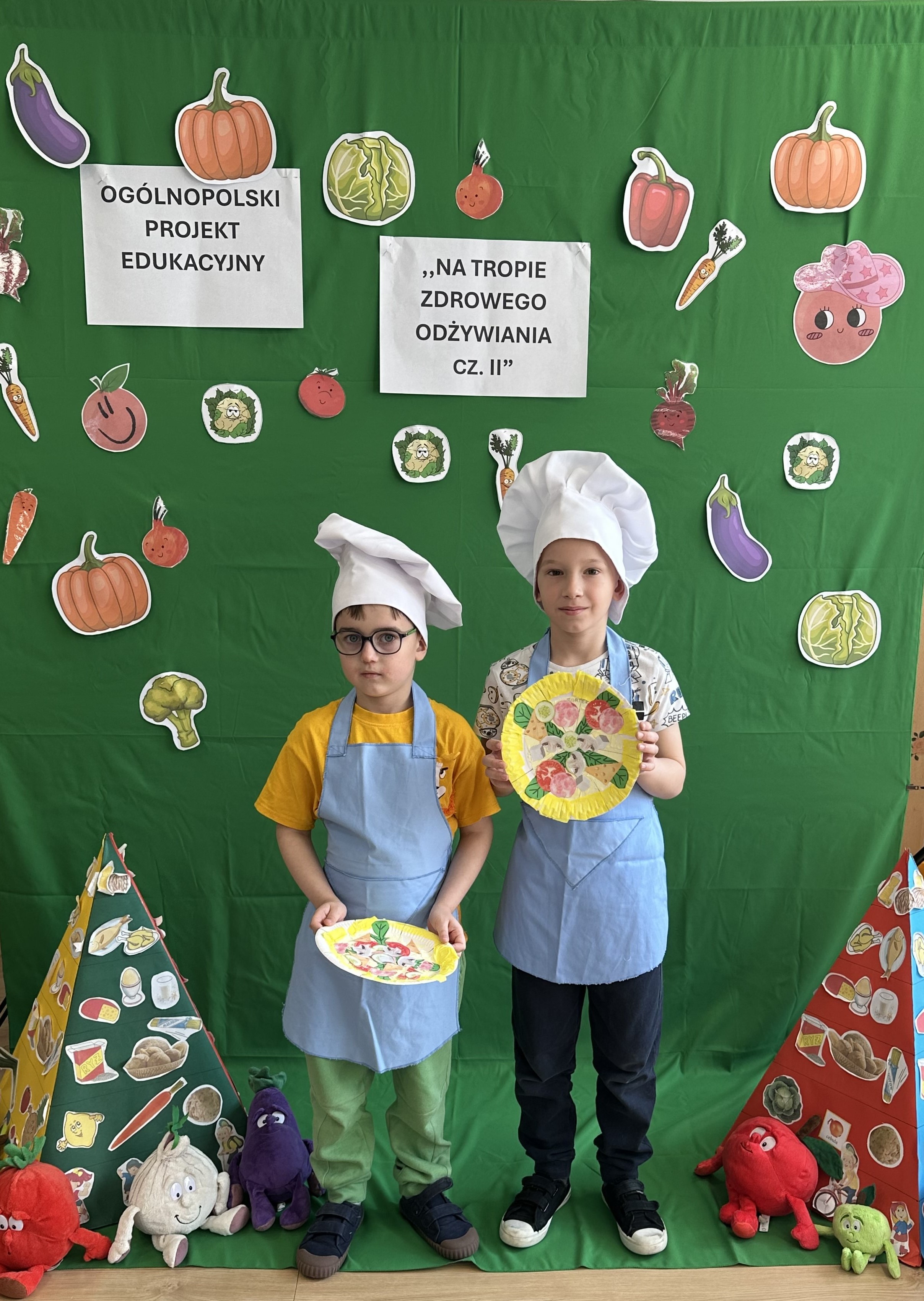Realizacja projektu „Na tropie zdrowego odżywiania” była dla dzieci niezwykle wartościowym doświadczeniem edukacyjnym. Poprzez różnorodne aktywności - ruchowe, plastyczne, matematyczne i społeczne -dzieci zdobywały wiedzę na temat zdrowych produktów oraz kształtowały prawidłowe nawyki żywieniowe. Projekt sprzyjał również rozwijaniu umiejętności współpracy, kreatywności oraz samodzielności. Dzieci z dużym zaangażowaniem uczestniczyły w zajęciach, a zdobyta wiedza z pewnością wpłynie na ich codzienne wybory żywieniowe.