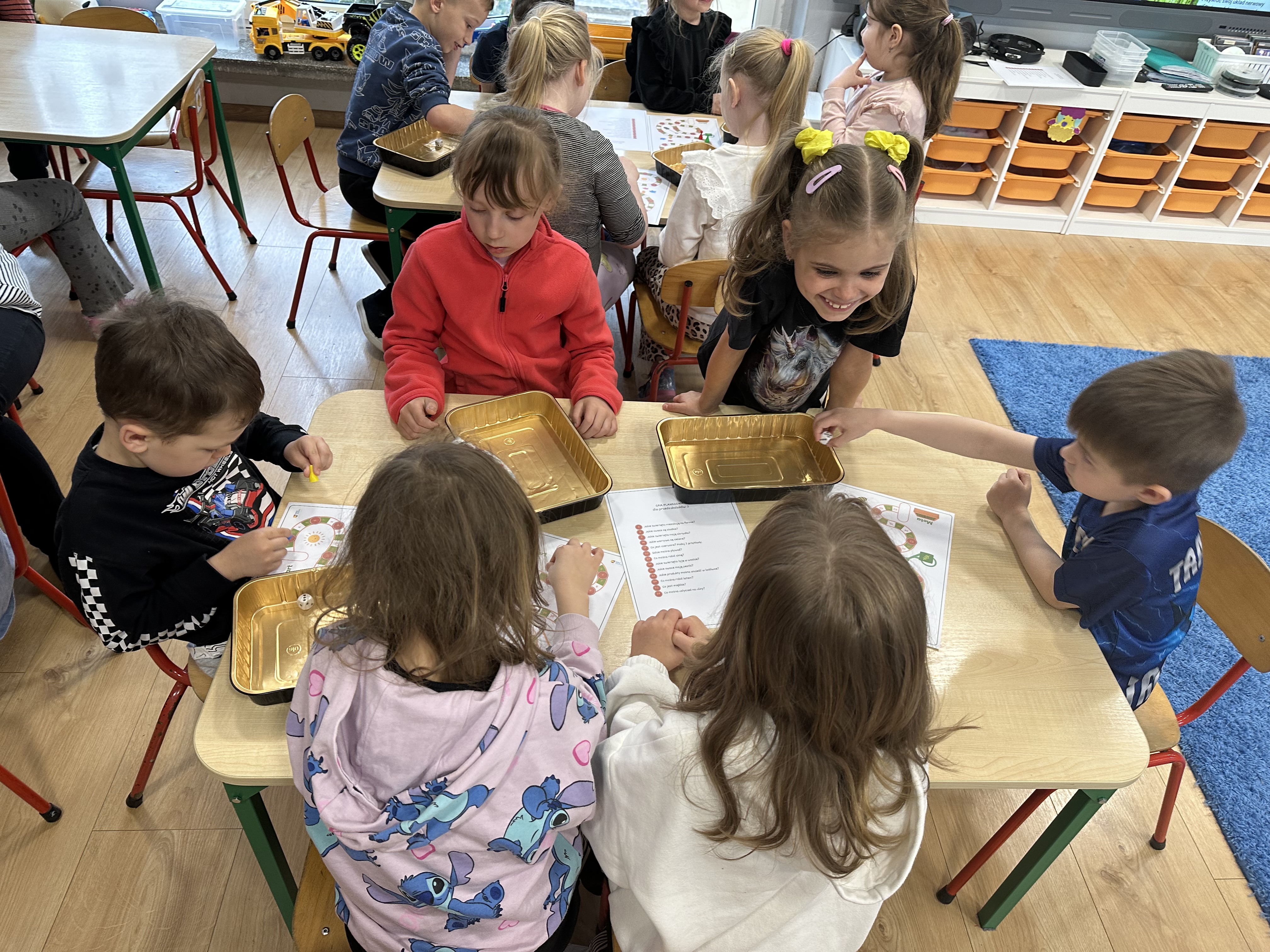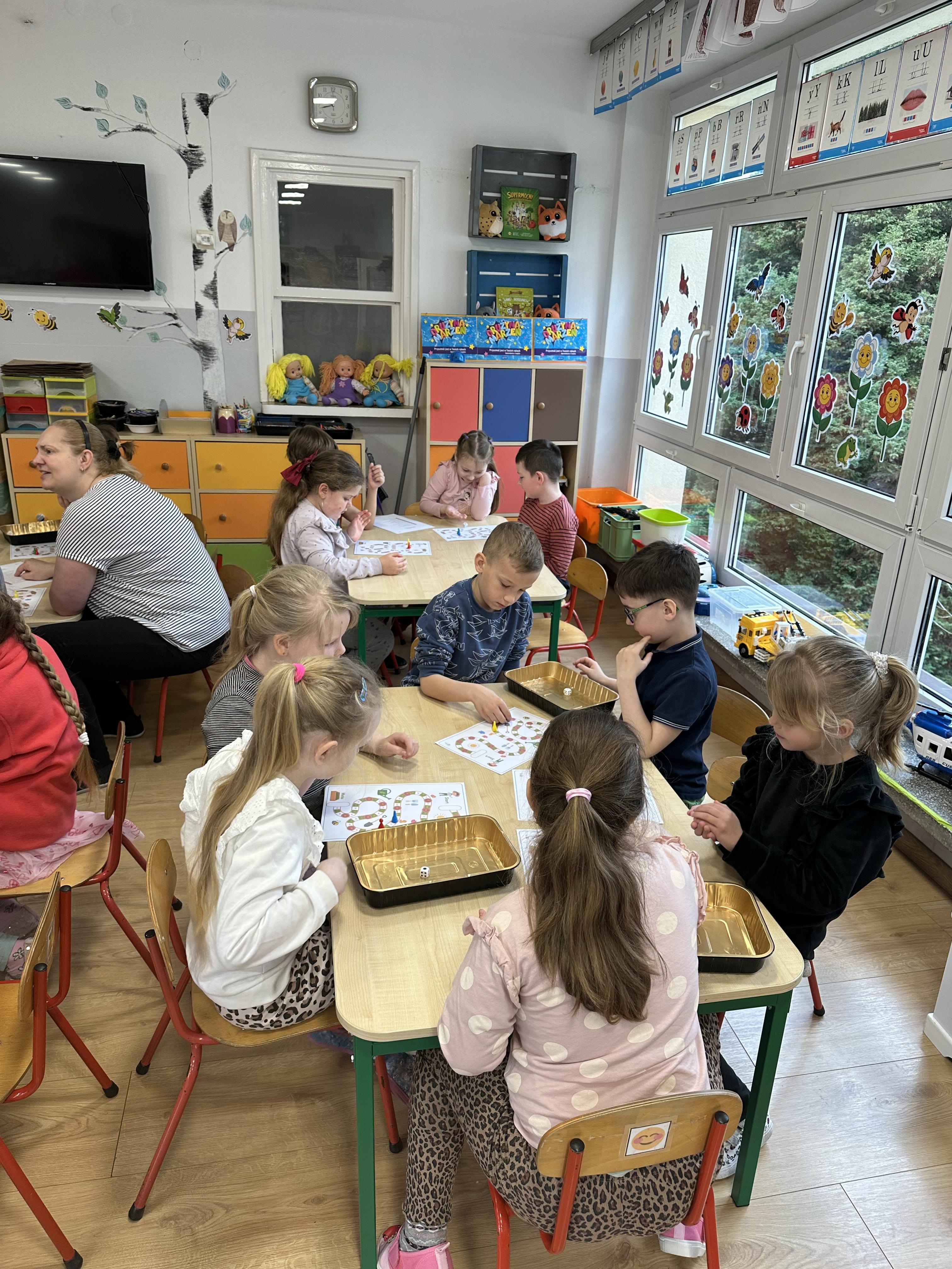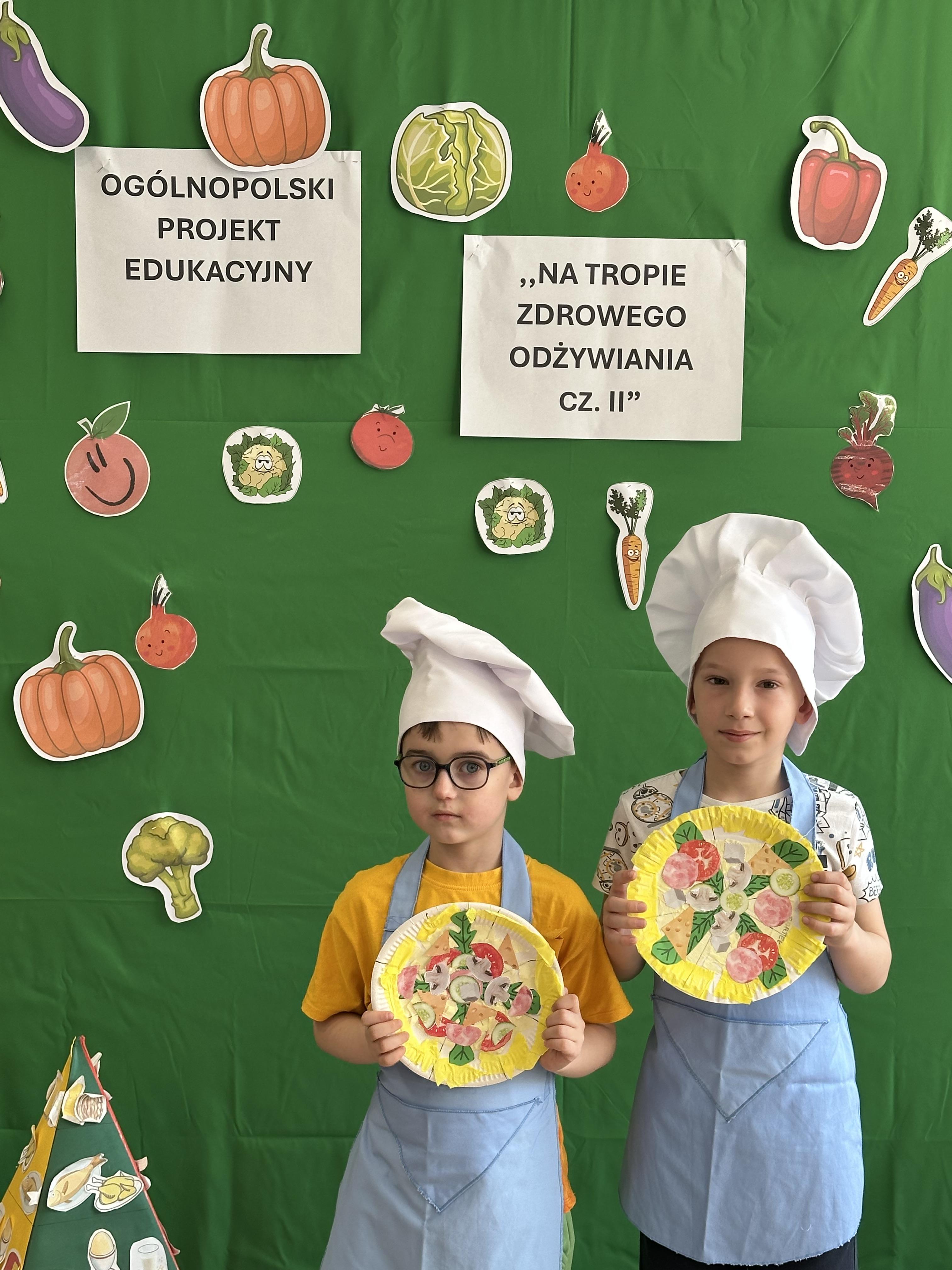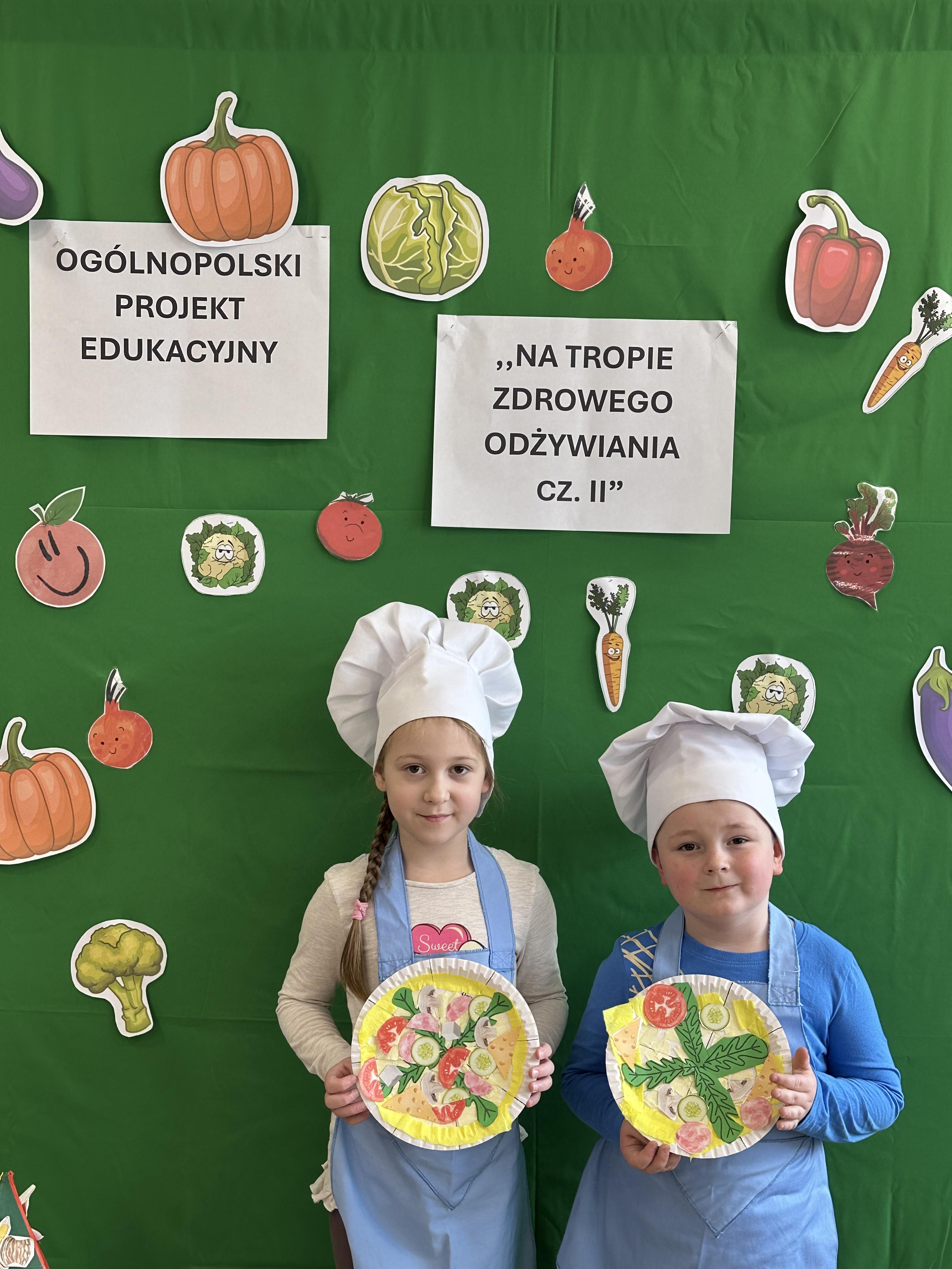 Realizacja projektu „Na tropie zdrowego odżywiania” była dla dzieci niezwykle wartościowym doświadczeniem edukacyjnym. Poprzez różnorodne aktywności - ruchowe, plastyczne, matematyczne i społeczne -dzieci zdobywały wiedzę na temat zdrowych produktów oraz kształtowały prawidłowe nawyki żywieniowe. Projekt sprzyjał również rozwijaniu umiejętności współpracy, kreatywności oraz samodzielności. Dzieci z dużym zaangażowaniem uczestniczyły w zajęciach, a zdobyta wiedza z pewnością wpłynie na ich codzienne wybory żywieniowe.