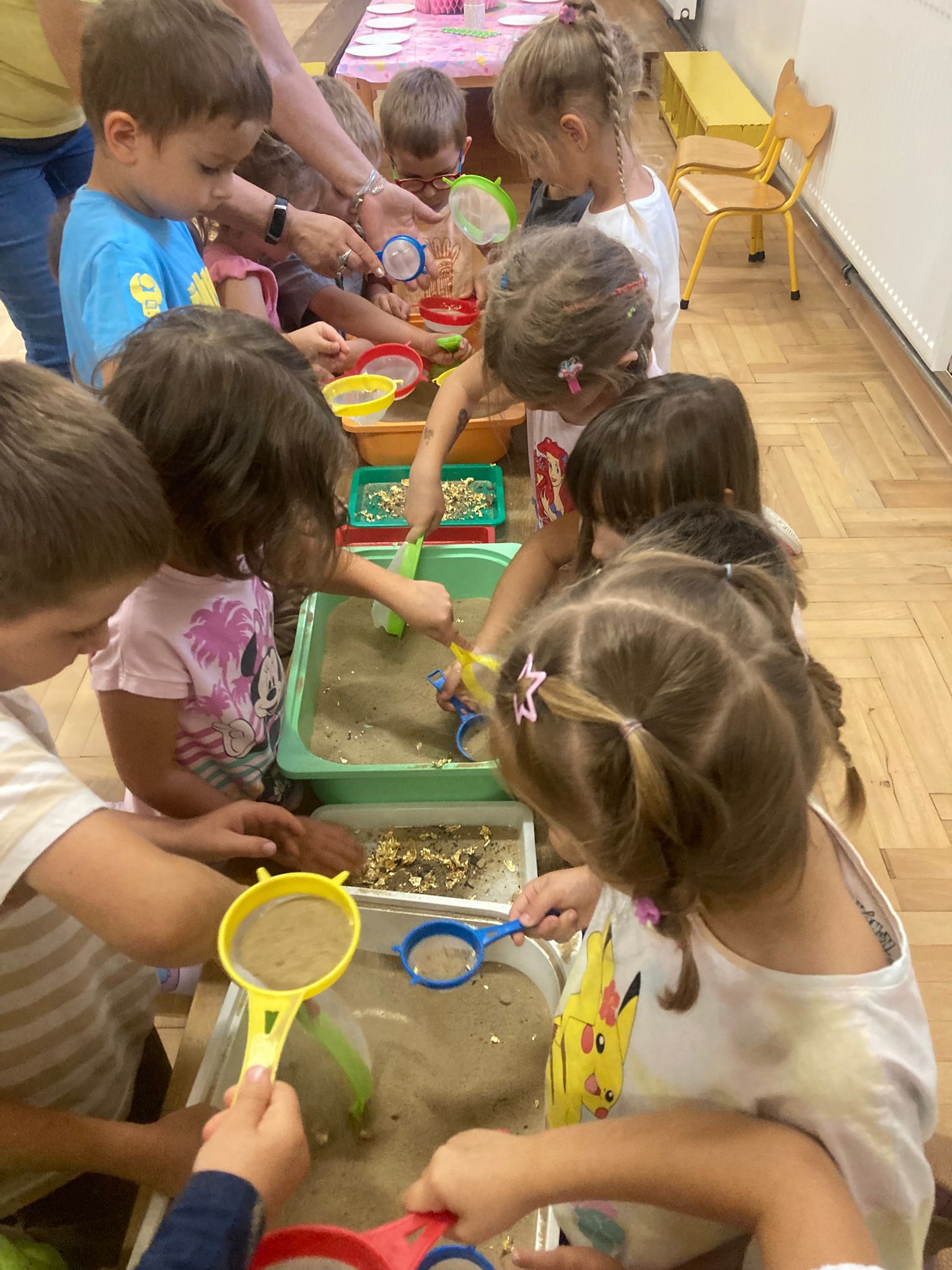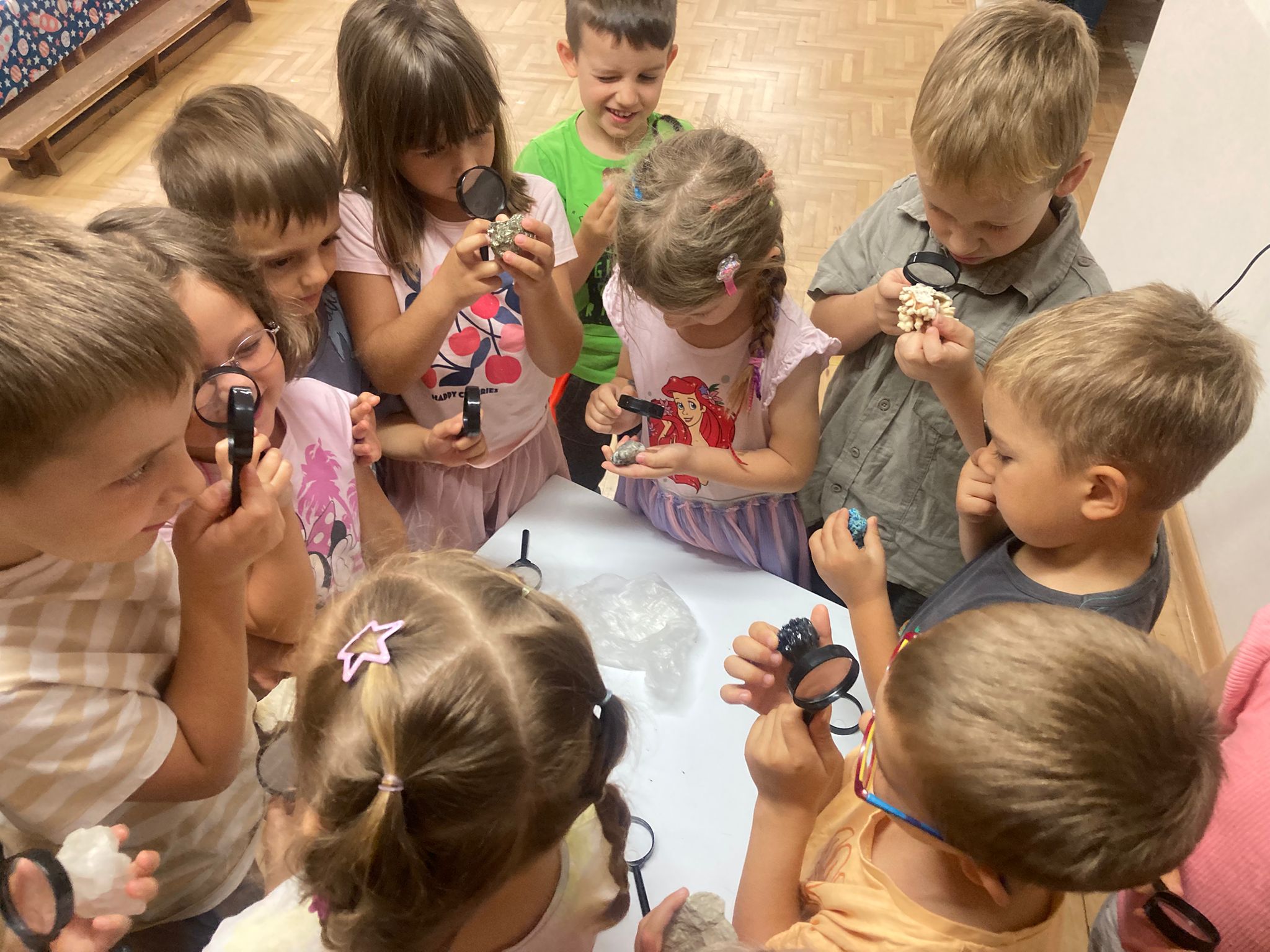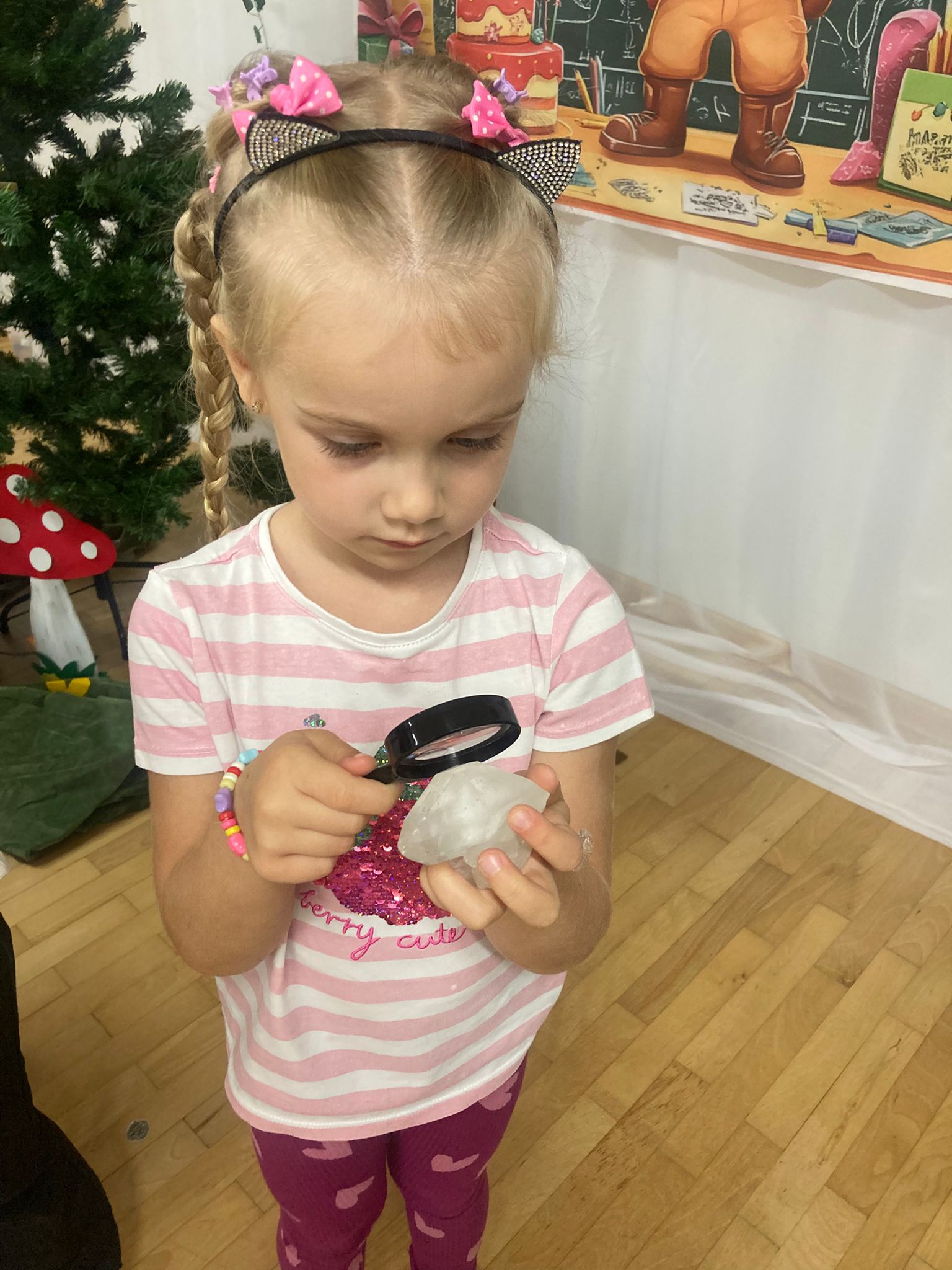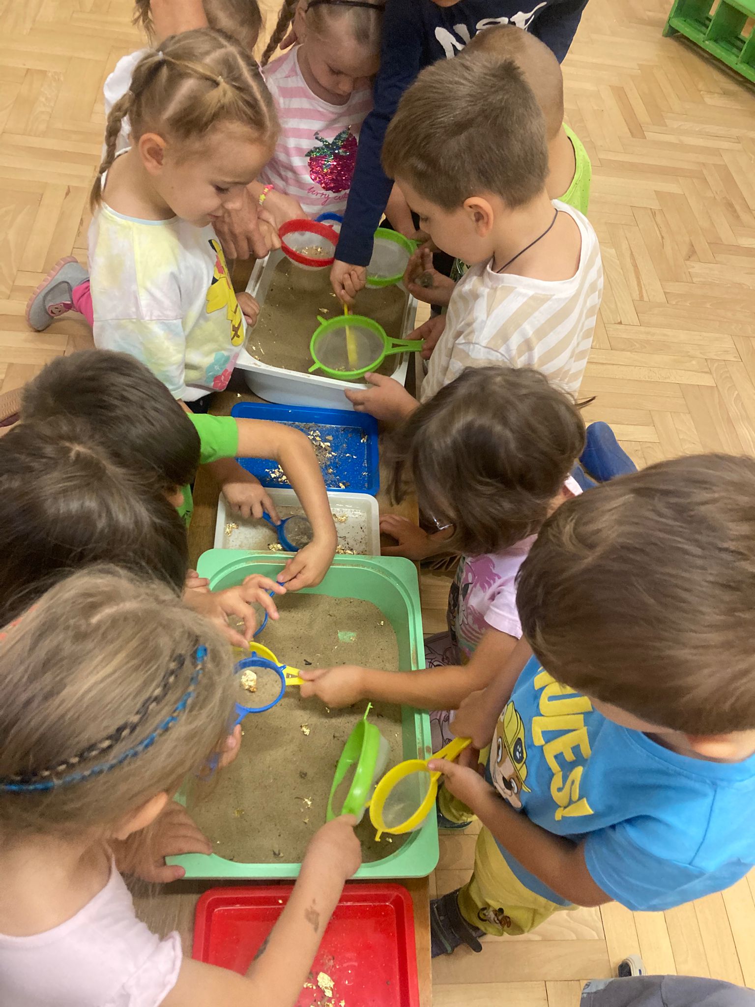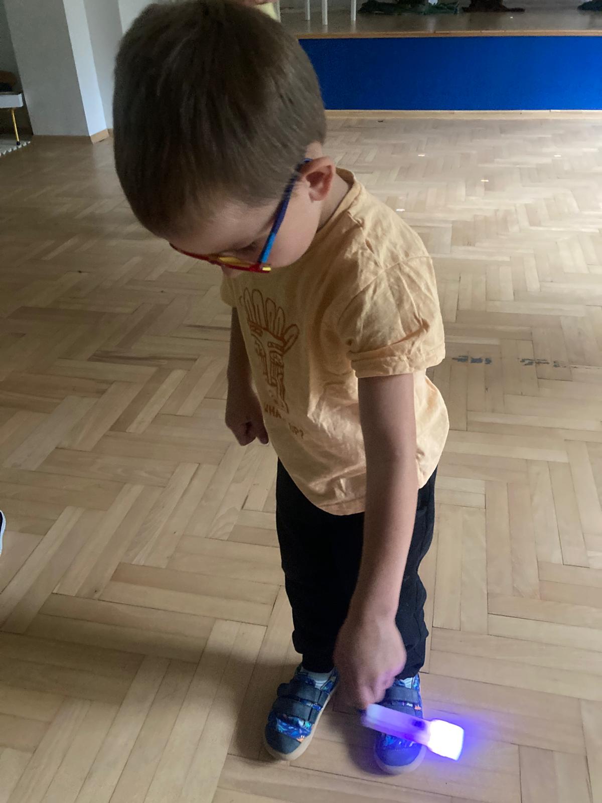 Ten dzień był pełen ciekawych zdarzeń. Pani Dyrektor pasowala dzieciaki na prawdziwych przedszkolakóŵ z grupy ODKRYWCY! Jak nazwa mówi odkrywlismy dziś świat wielozmysłowo sensorycznie.Ogladaliśmy skalne okazy przez lupę, odzyskiwalismy cząsteczki "złota"z piasku,bawiliśmy się światłem, puszczaliśmy zajączki na ścianie , tworzyliśmy obrazy na podświetlanym stoliku svhowani w namiocie.W leśnej scenografii szukaliśmy skarbu do ktorego doprowadziły nas zabawy z leśnymi zwierzątkami.Urodziny grupy ODKRYWCÓW uczcliśmy słodkosciami za które dziękujemy kochanym Rodzicom.Oczywiście nie brakło pamiątkowych fotek do których oglądania serdecznie zapraszamy.