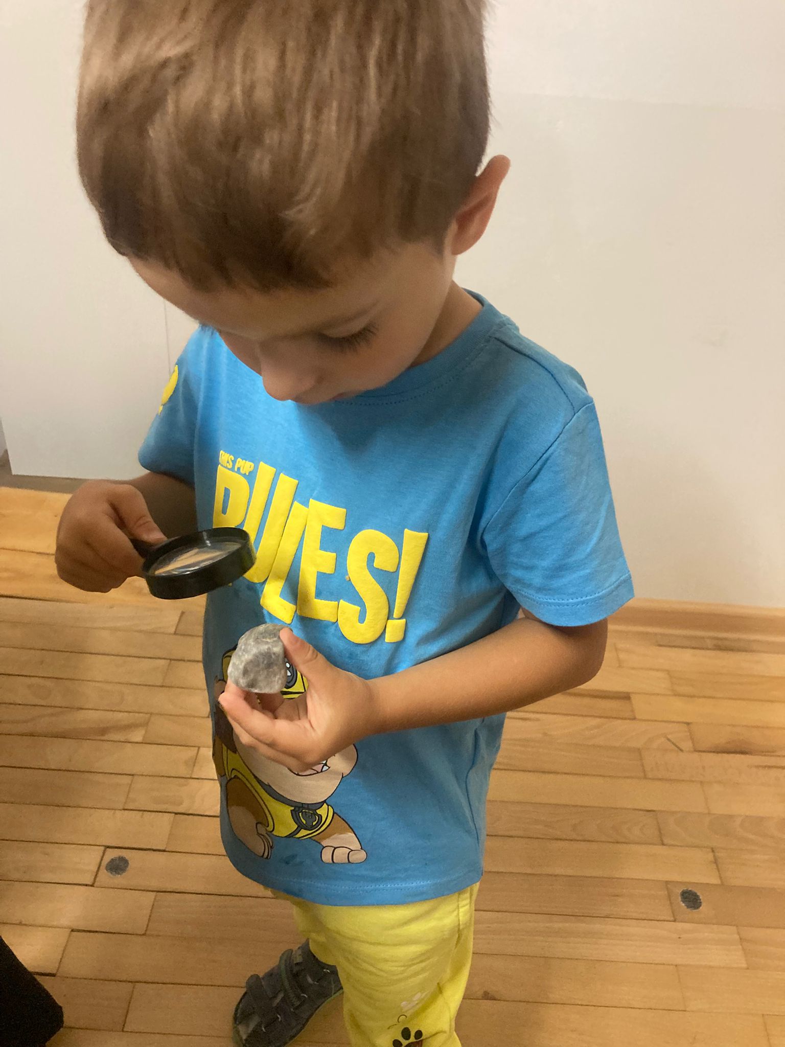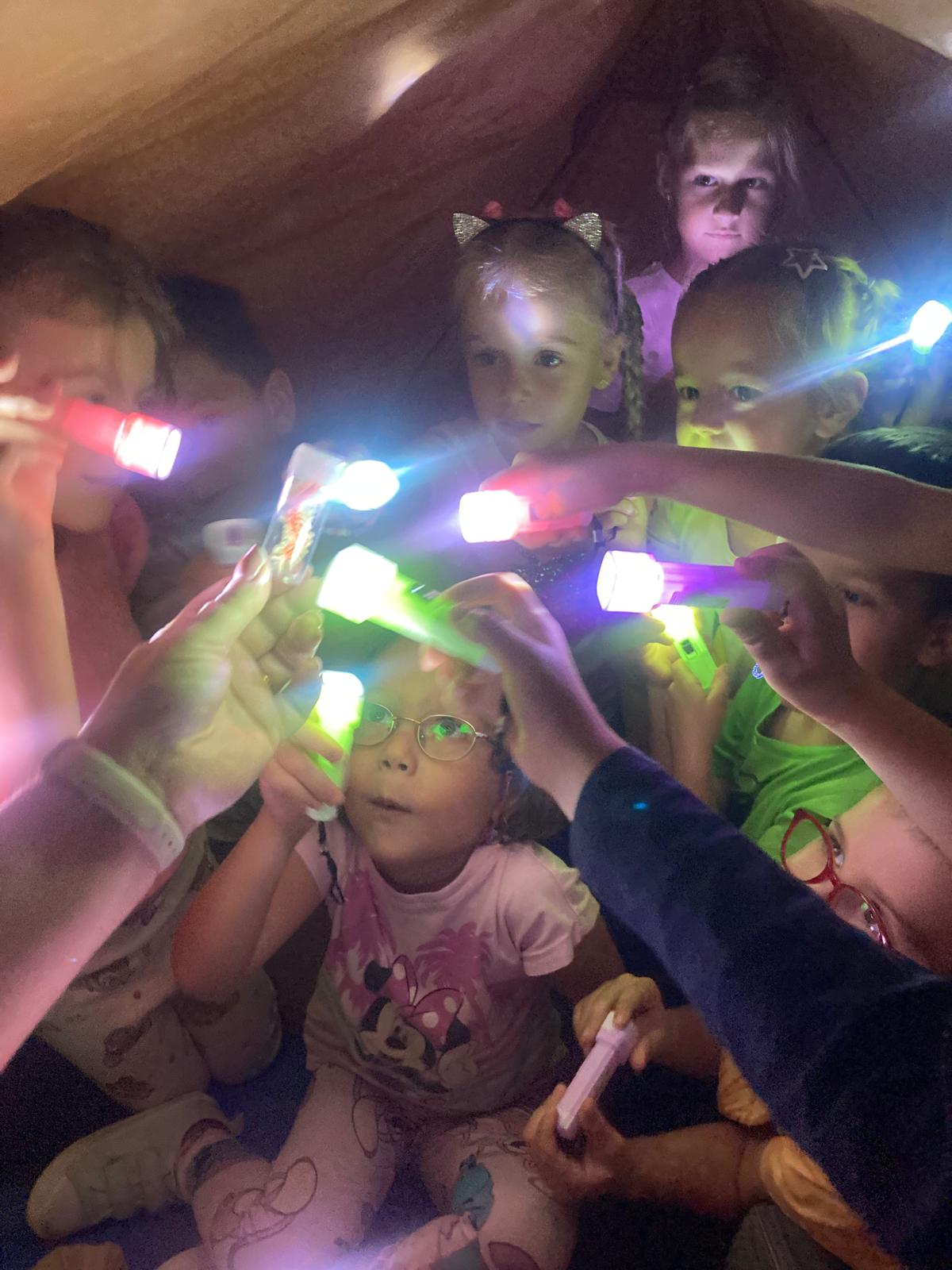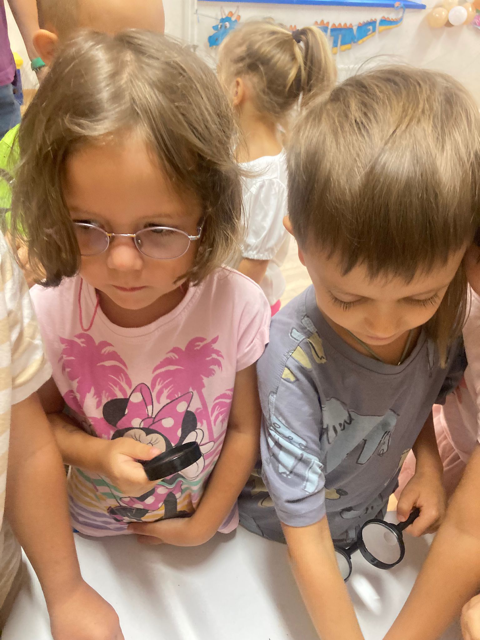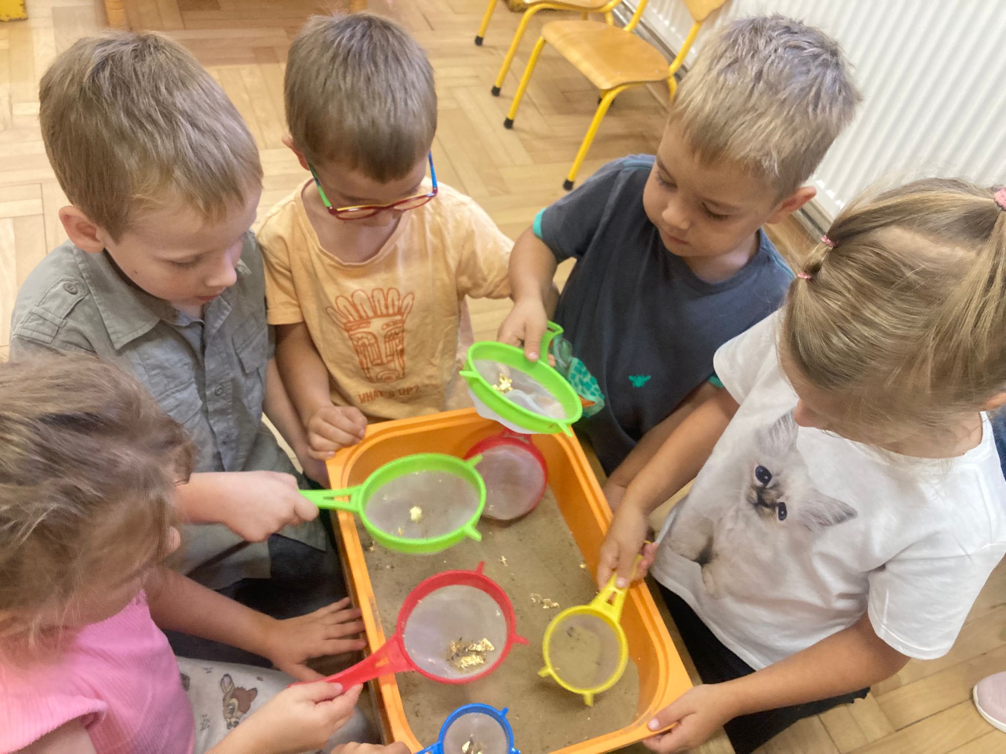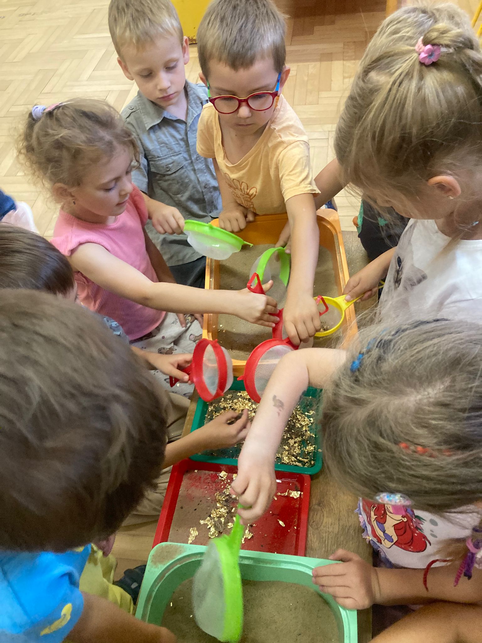 Ten dzień był pełen ciekawych zdarzeń. Pani Dyrektor pasowala dzieciaki na prawdziwych przedszkolakóŵ z grupy ODKRYWCY! Jak nazwa mówi odkrywlismy dziś świat wielozmysłowo sensorycznie.Ogladaliśmy skalne okazy przez lupę, odzyskiwalismy cząsteczki "złota"z piasku,bawiliśmy się światłem, puszczaliśmy zajączki na ścianie , tworzyliśmy obrazy na podświetlanym stoliku svhowani w namiocie.W leśnej scenografii szukaliśmy skarbu do ktorego doprowadziły nas zabawy z leśnymi zwierzątkami.Urodziny grupy ODKRYWCÓW uczcliśmy słodkosciami za które dziękujemy kochanym Rodzicom.Oczywiście nie brakło pamiątkowych fotek do których oglądania serdecznie zapraszamy.