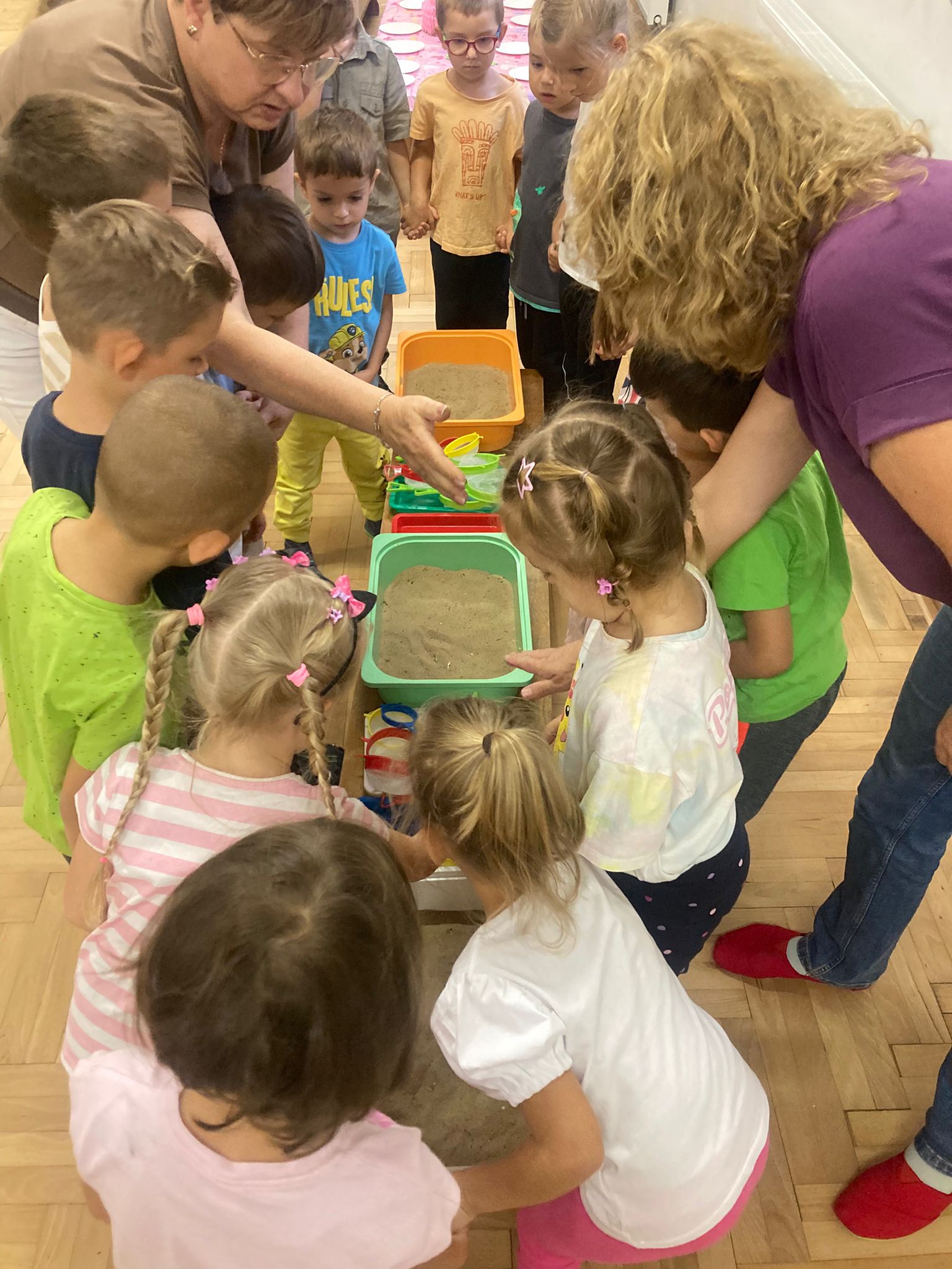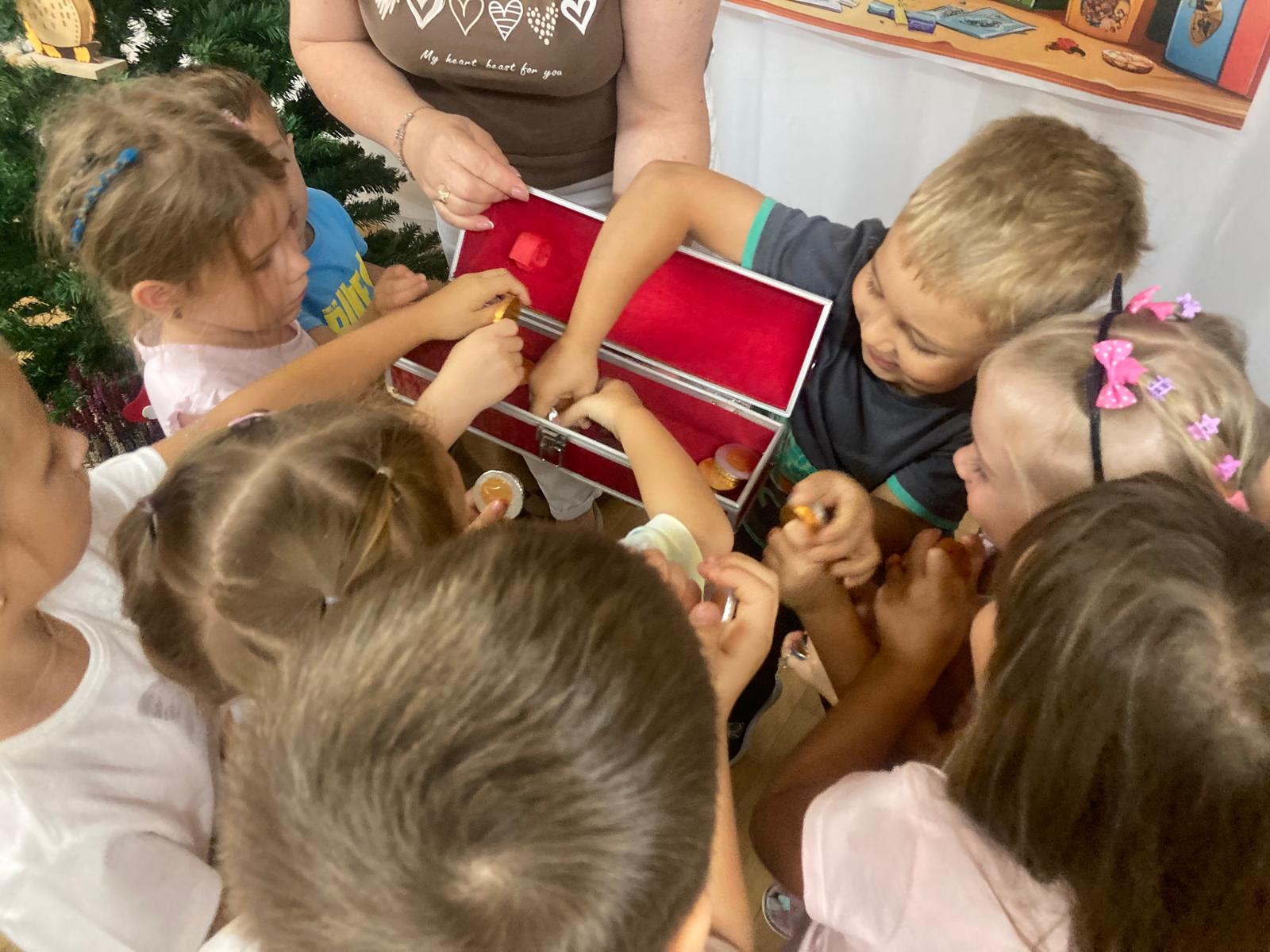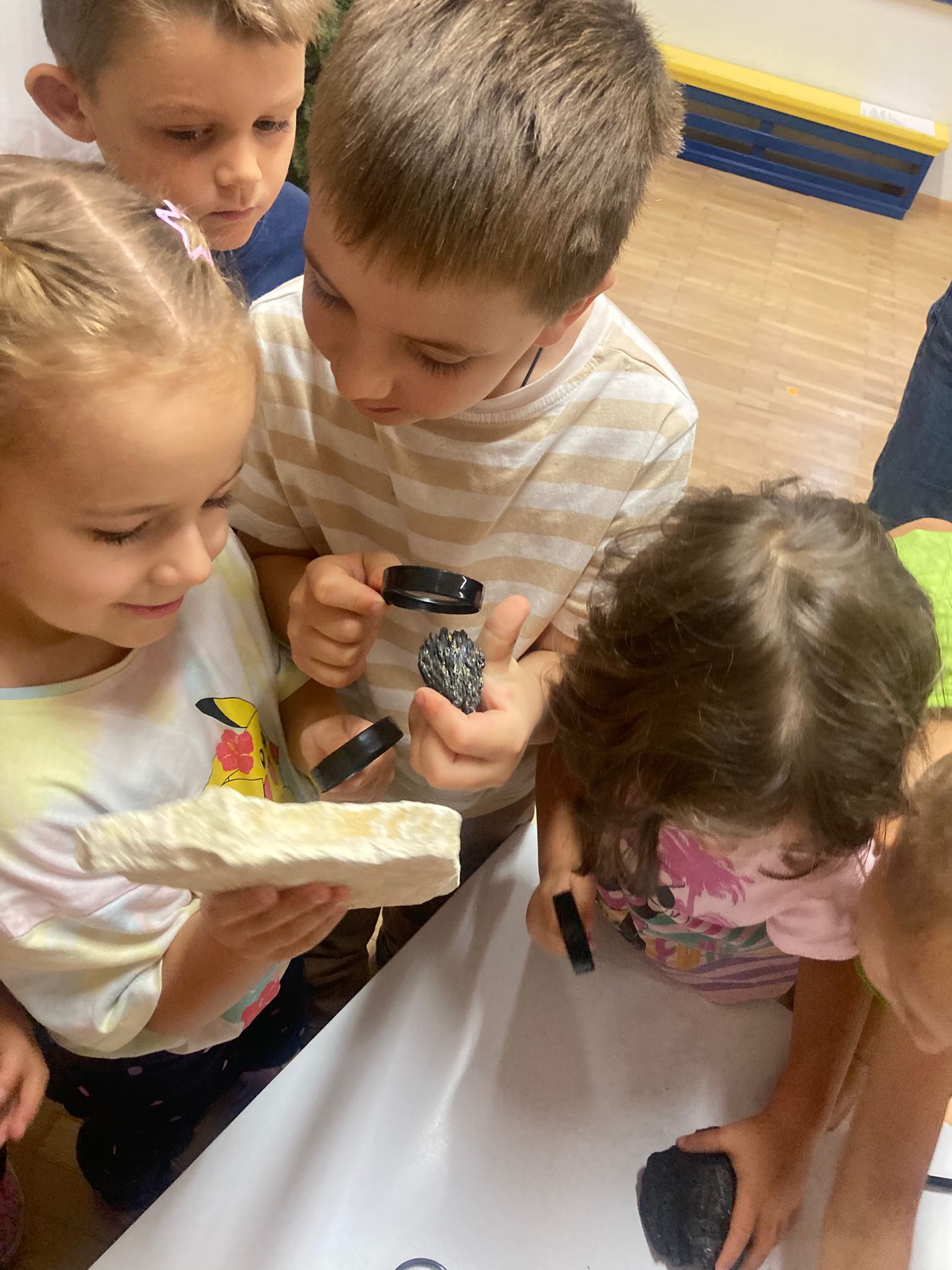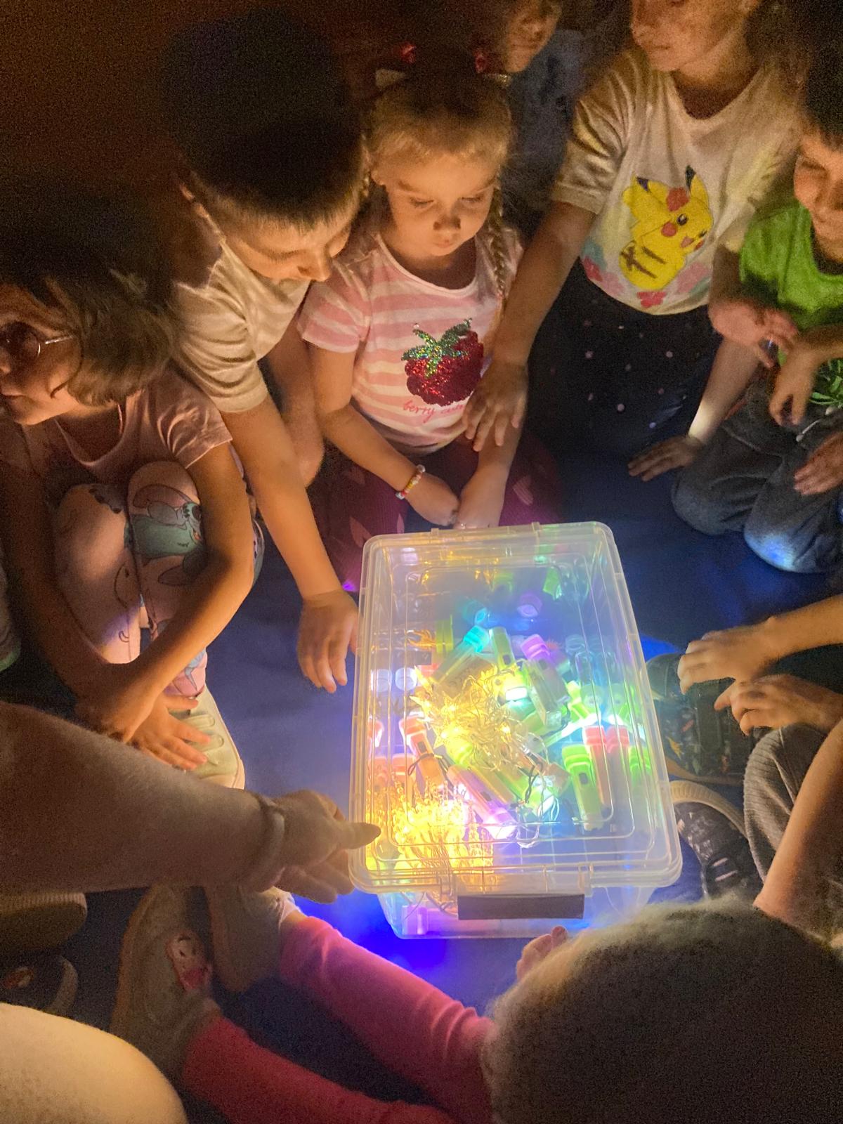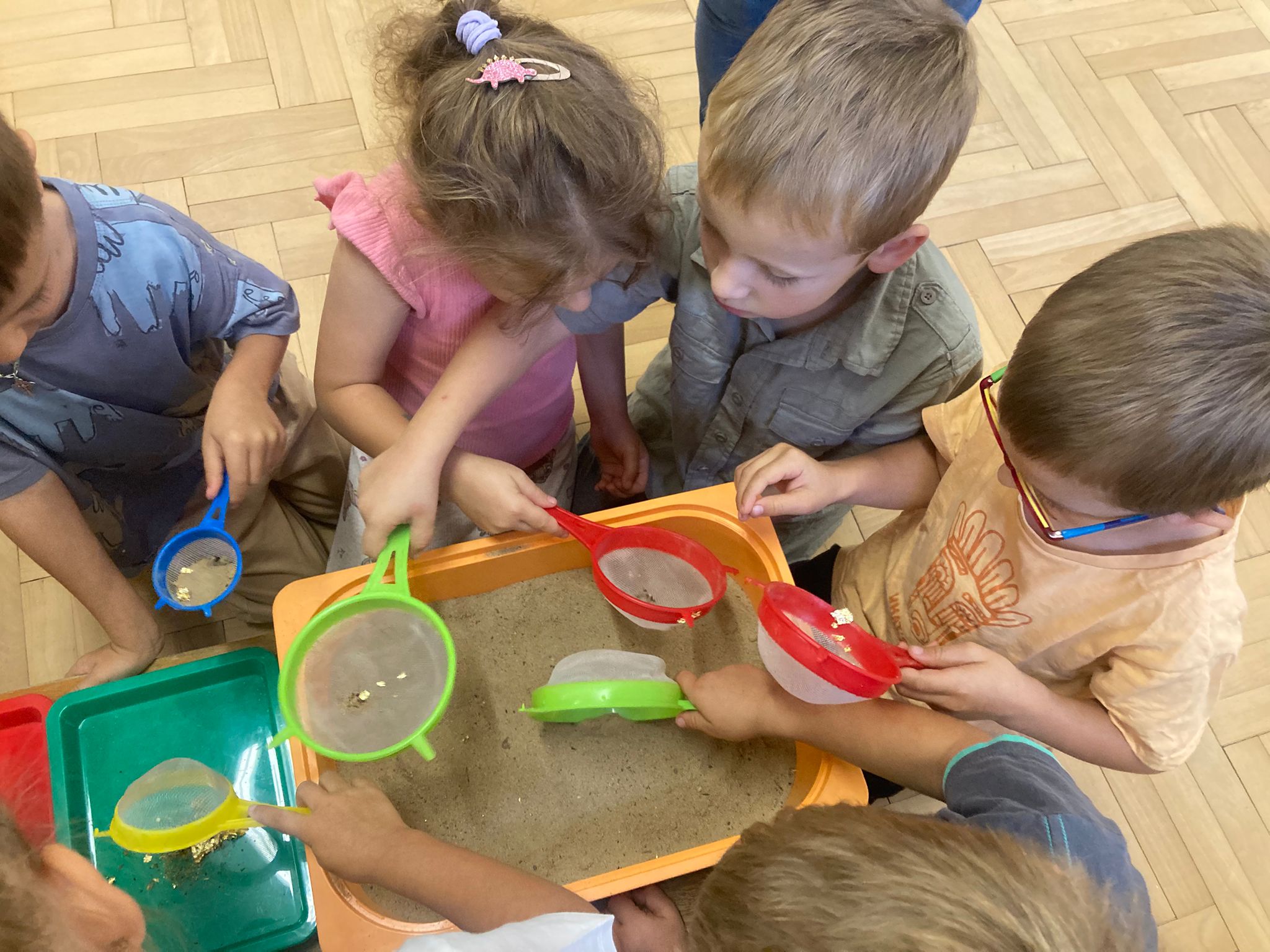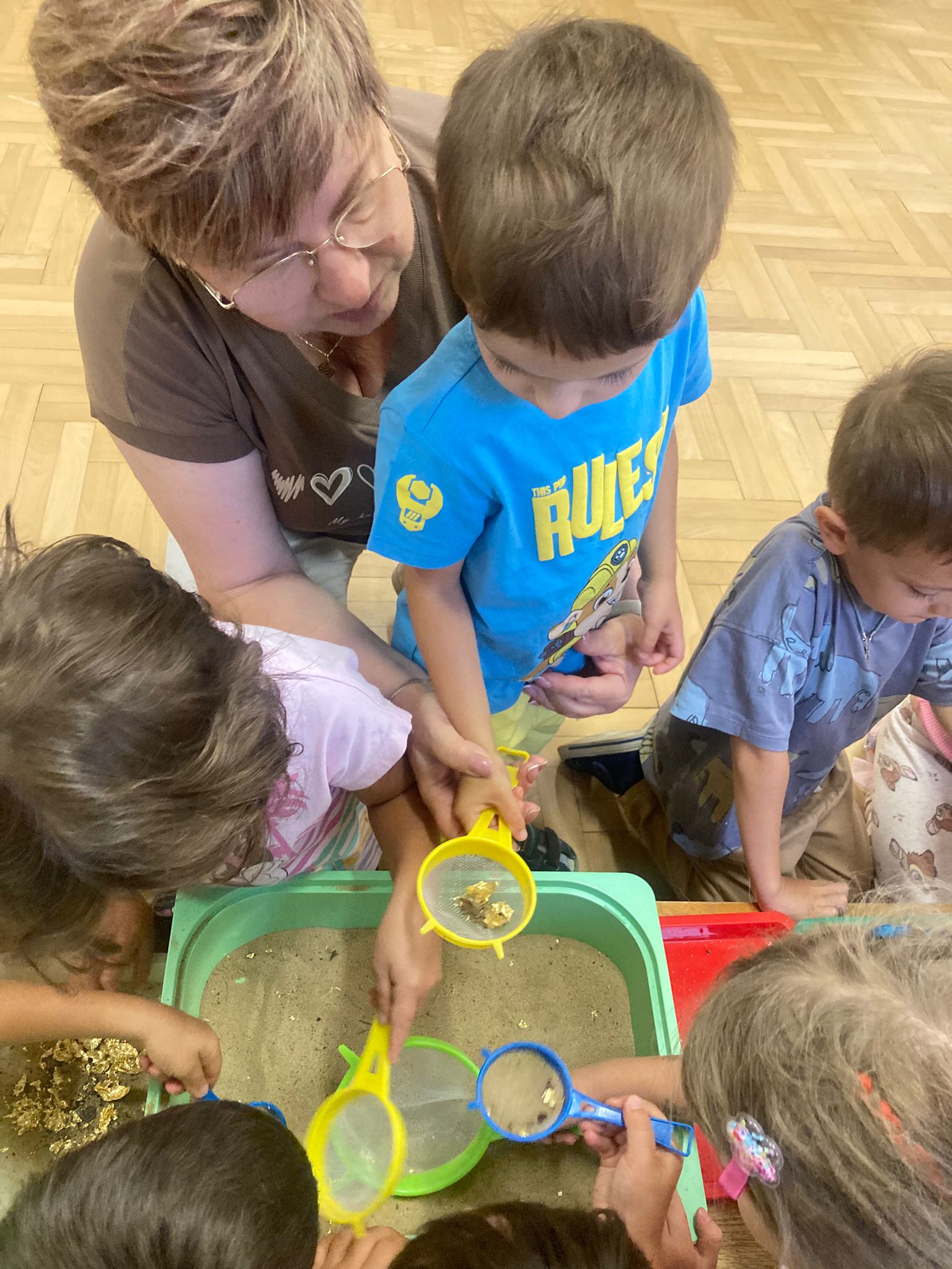 Ten dzień był pełen ciekawych zdarzeń. Pani Dyrektor pasowala dzieciaki na prawdziwych przedszkolakóŵ z grupy ODKRYWCY! Jak nazwa mówi odkrywlismy dziś świat wielozmysłowo sensorycznie.Ogladaliśmy skalne okazy przez lupę, odzyskiwalismy cząsteczki "złota"z piasku,bawiliśmy się światłem, puszczaliśmy zajączki na ścianie , tworzyliśmy obrazy na podświetlanym stoliku svhowani w namiocie.W leśnej scenografii szukaliśmy skarbu do ktorego doprowadziły nas zabawy z leśnymi zwierzątkami.Urodziny grupy ODKRYWCÓW uczcliśmy słodkosciami za które dziękujemy kochanym Rodzicom.Oczywiście nie brakło pamiątkowych fotek do których oglądania serdecznie zapraszamy.