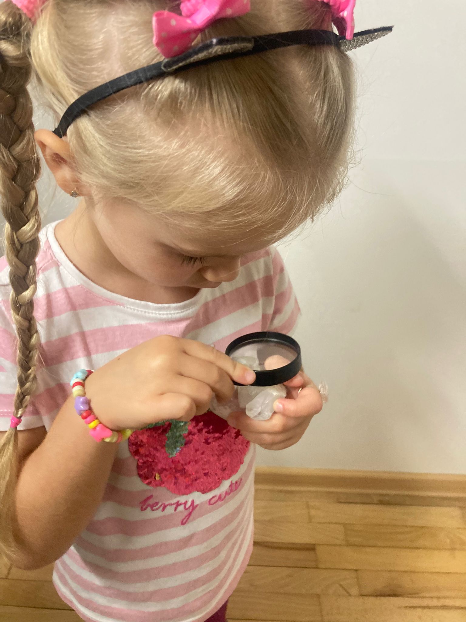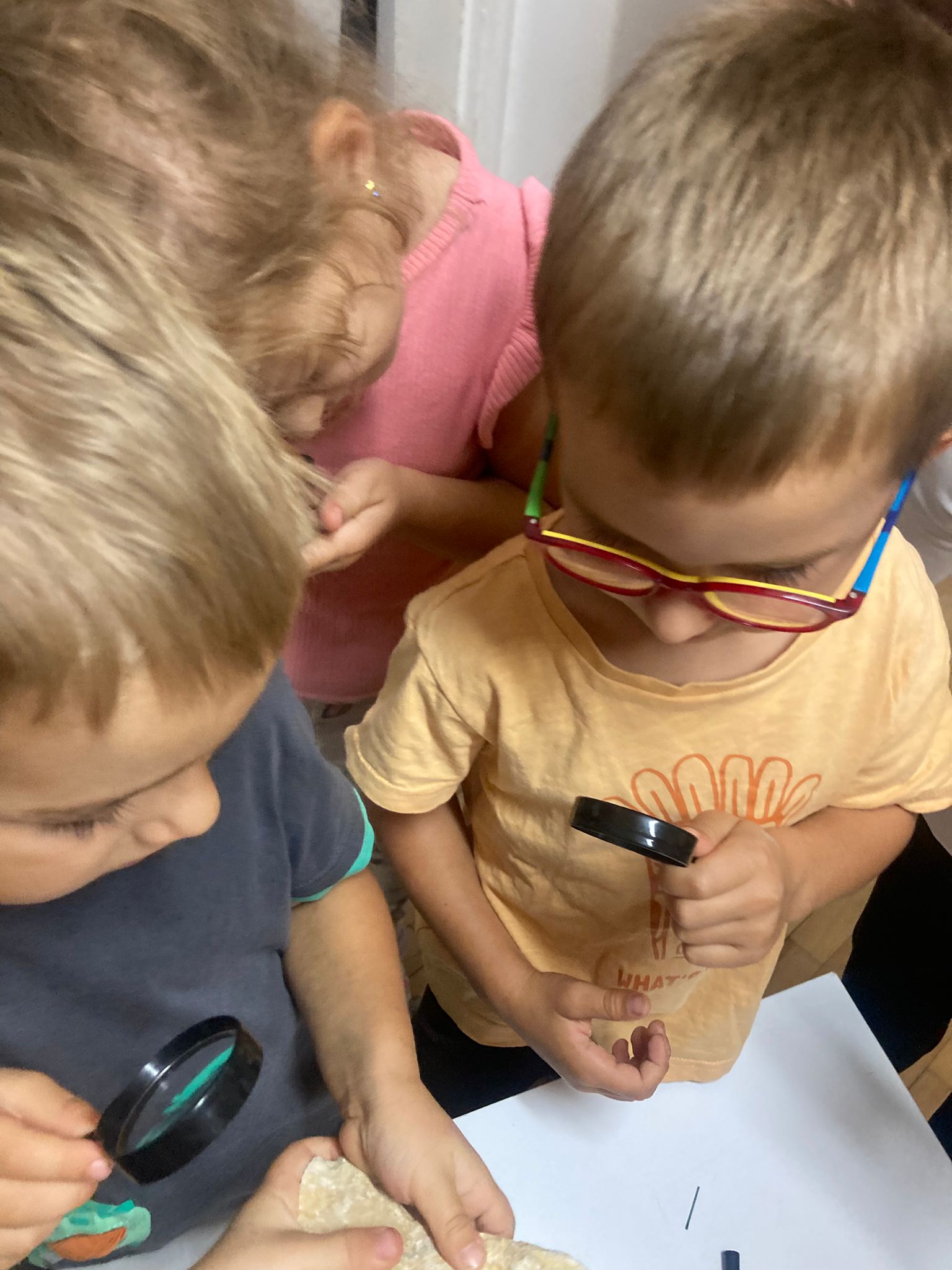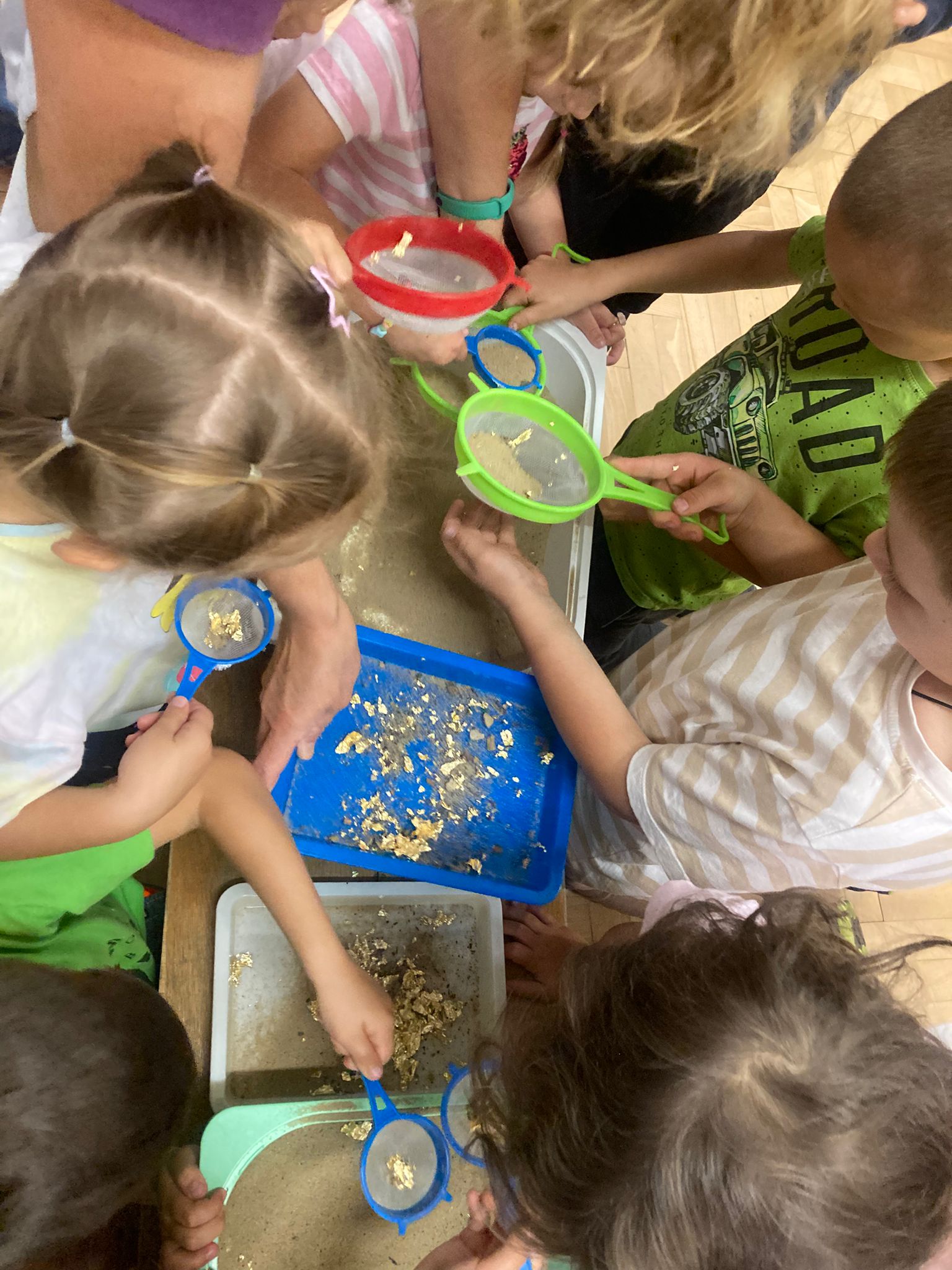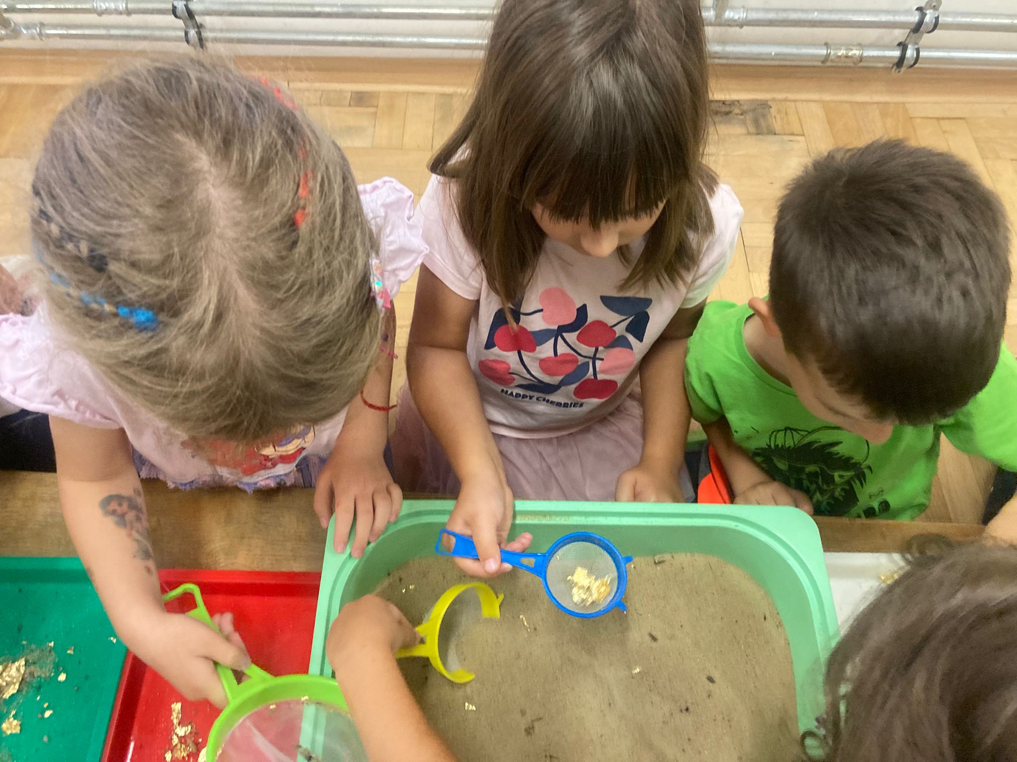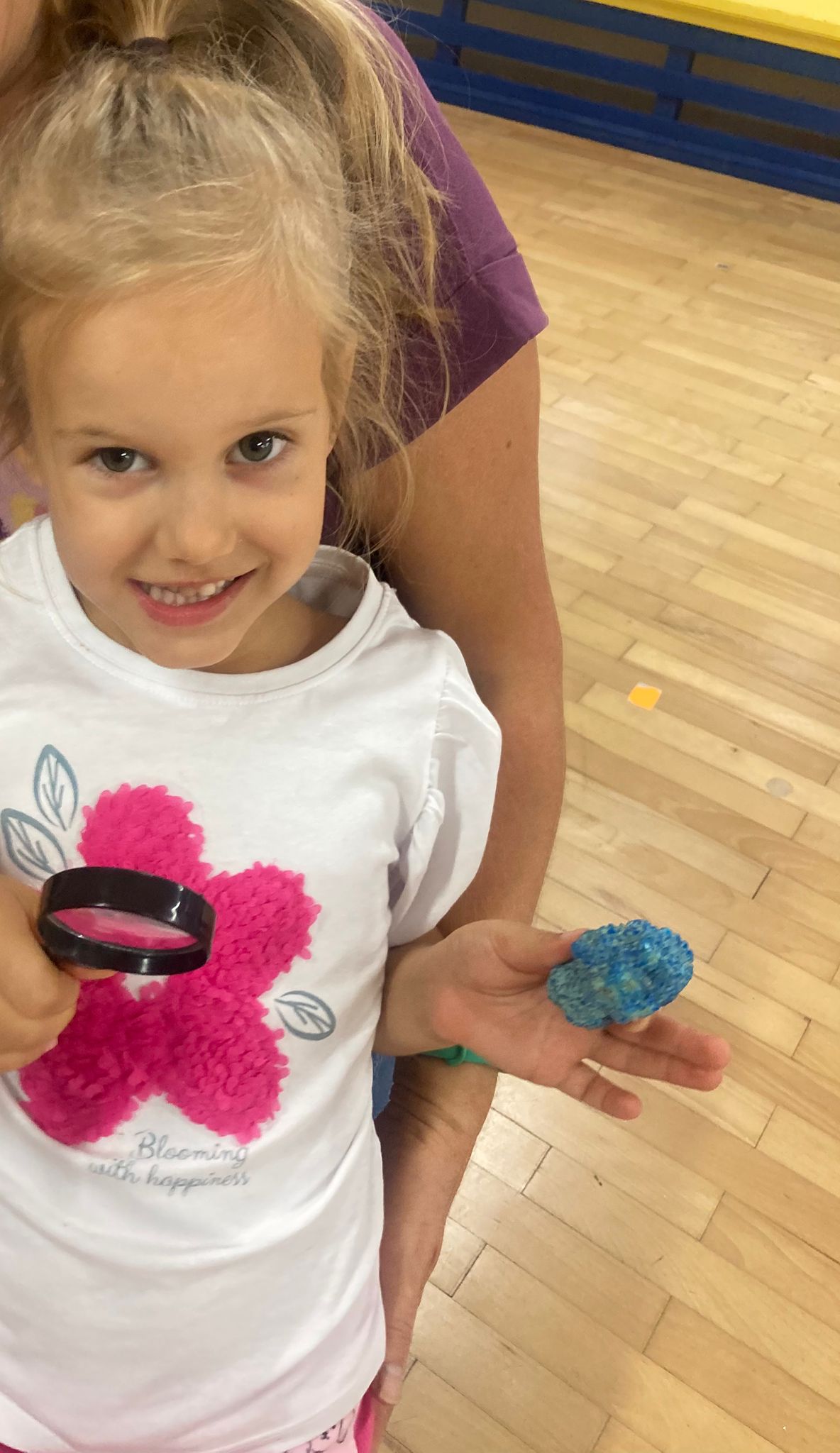 Ten dzień był pełen ciekawych zdarzeń. Pani Dyrektor pasowala dzieciaki na prawdziwych przedszkolakóŵ z grupy ODKRYWCY! Jak nazwa mówi odkrywlismy dziś świat wielozmysłowo sensorycznie.Ogladaliśmy skalne okazy przez lupę, odzyskiwalismy cząsteczki "złota"z piasku,bawiliśmy się światłem, puszczaliśmy zajączki na ścianie , tworzyliśmy obrazy na podświetlanym stoliku svhowani w namiocie.W leśnej scenografii szukaliśmy skarbu do ktorego doprowadziły nas zabawy z leśnymi zwierzątkami.Urodziny grupy ODKRYWCÓW uczcliśmy słodkosciami za które dziękujemy kochanym Rodzicom.Oczywiście nie brakło pamiątkowych fotek do których oglądania serdecznie zapraszamy.