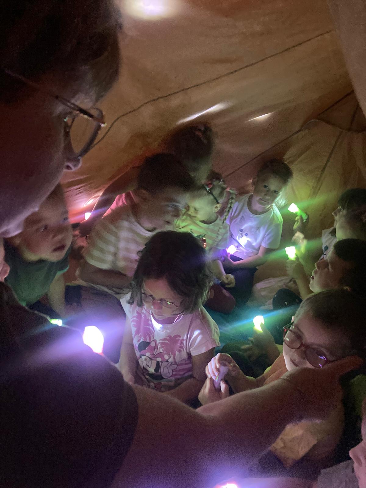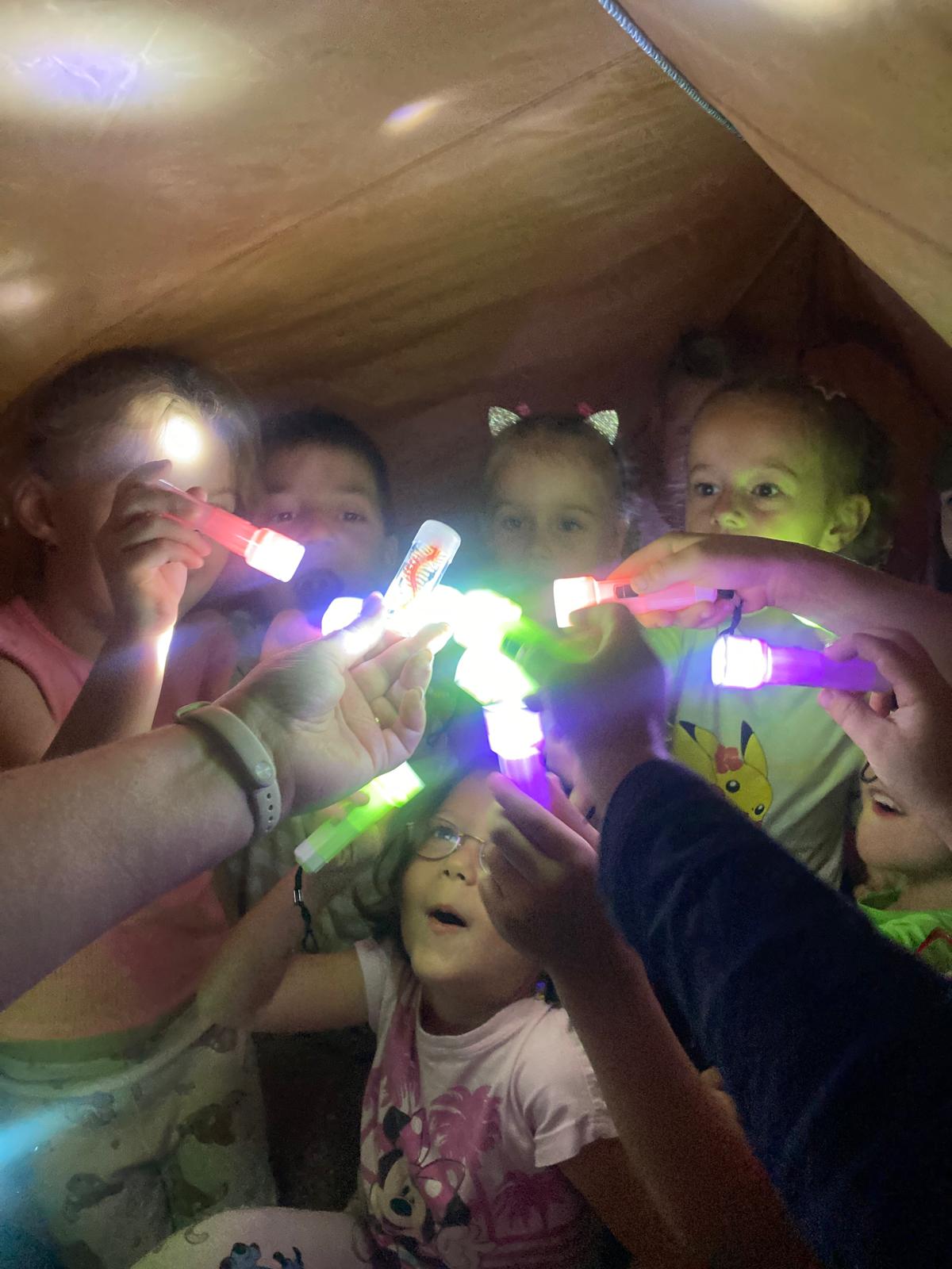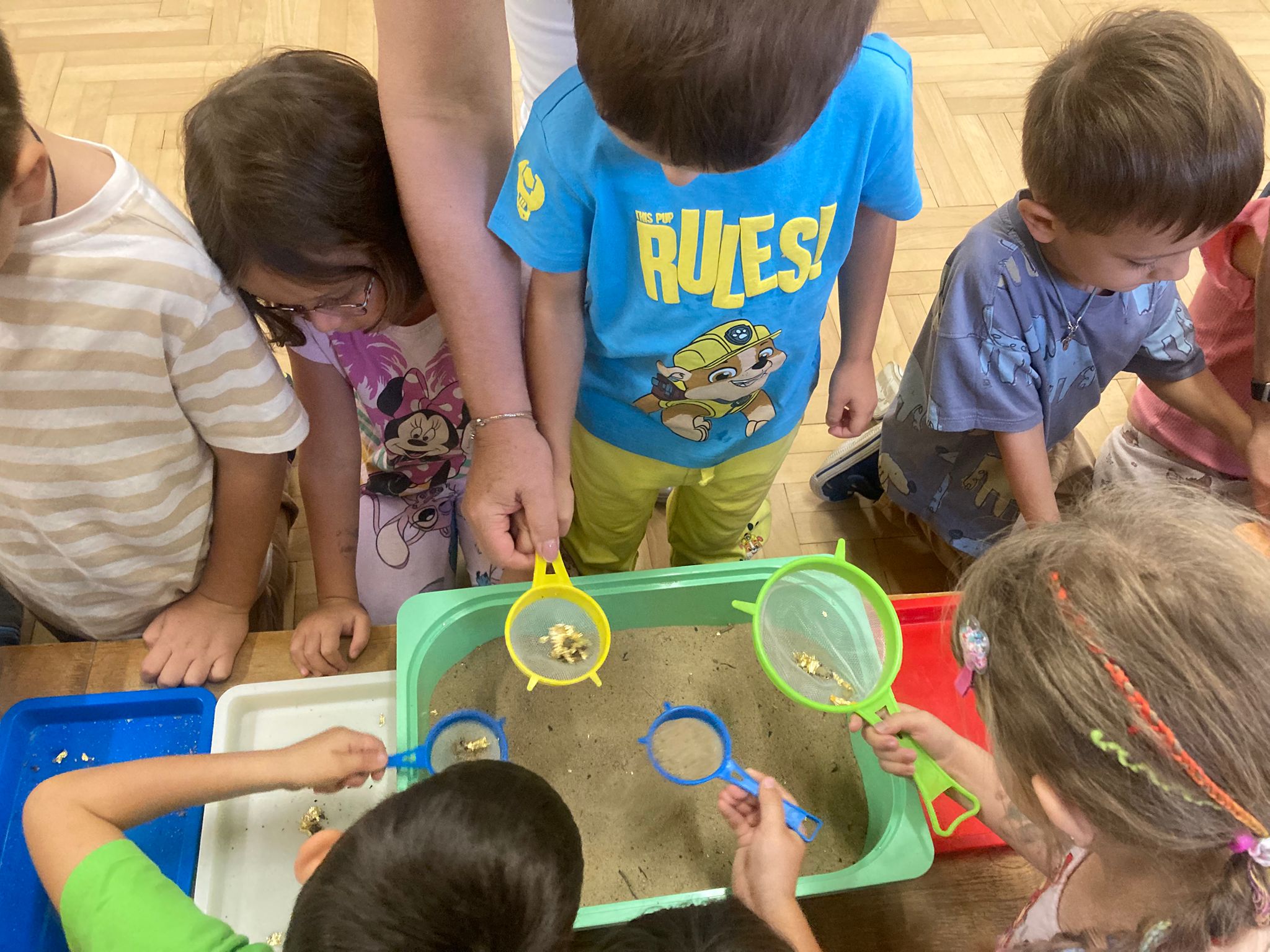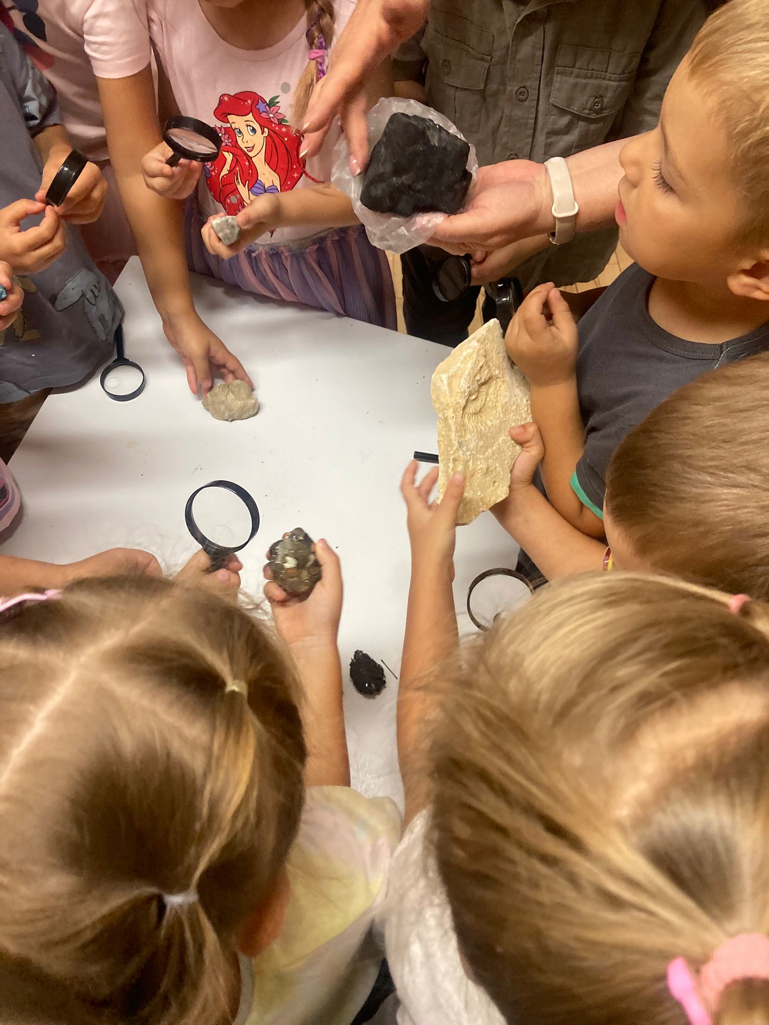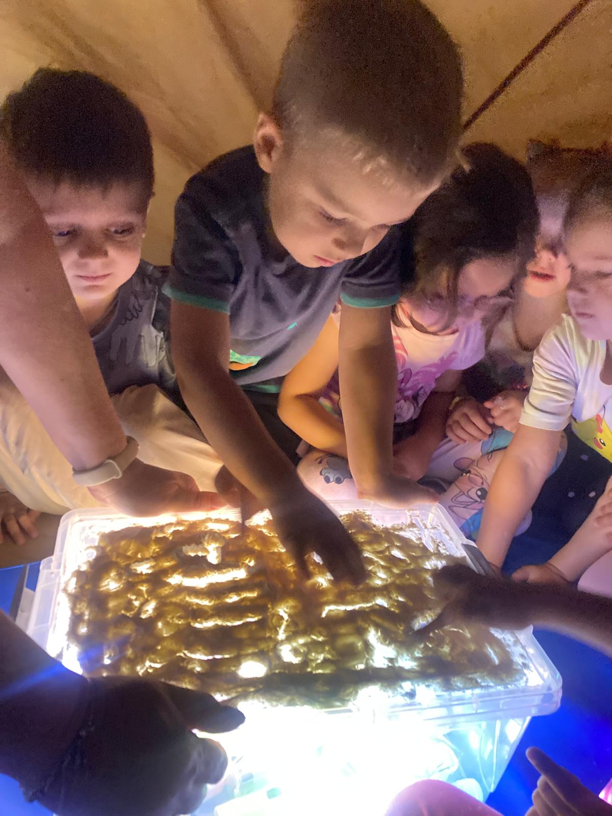Ten dzień był pełen ciekawych zdarzeń. Pani Dyrektor pasowala dzieciaki na prawdziwych przedszkolakóŵ z grupy ODKRYWCY! Jak nazwa mówi odkrywlismy dziś świat wielozmysłowo sensorycznie.Ogladaliśmy skalne okazy przez lupę, odzyskiwalismy cząsteczki "złota"z piasku,bawiliśmy się światłem, puszczaliśmy zajączki na ścianie , tworzyliśmy obrazy na podświetlanym stoliku svhowani w namiocie.W leśnej scenografii szukaliśmy skarbu do ktorego doprowadziły nas zabawy z leśnymi zwierzątkami.Urodziny grupy ODKRYWCÓW uczcliśmy słodkosciami za które dziękujemy kochanym Rodzicom.Oczywiście nie brakło pamiątkowych fotek do których oglądania serdecznie zapraszamy.
