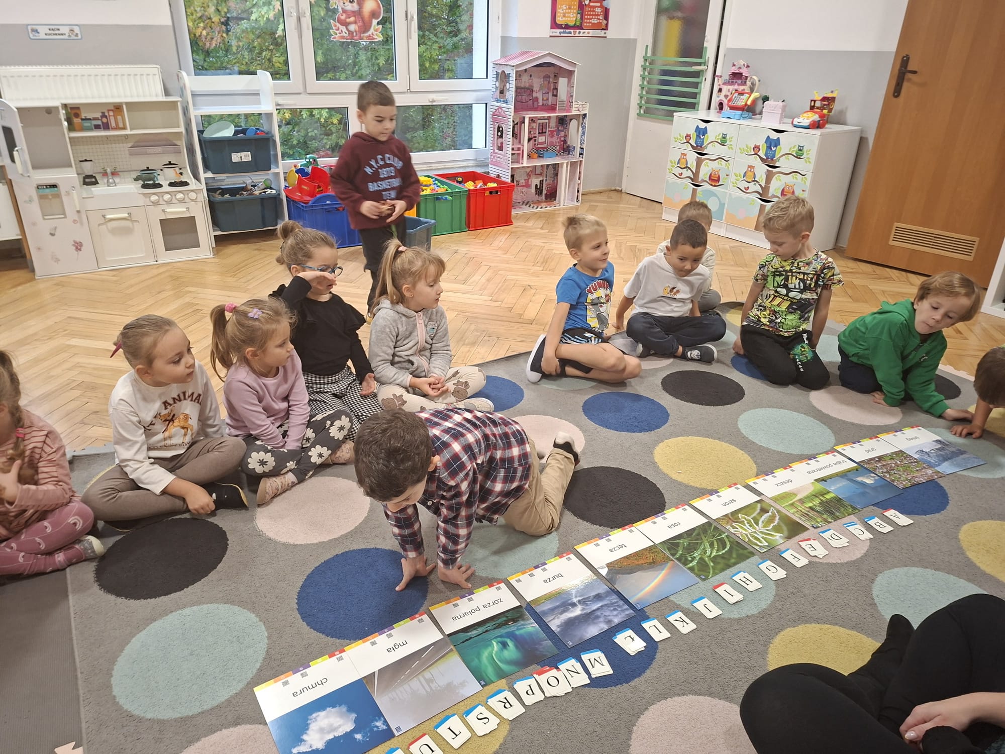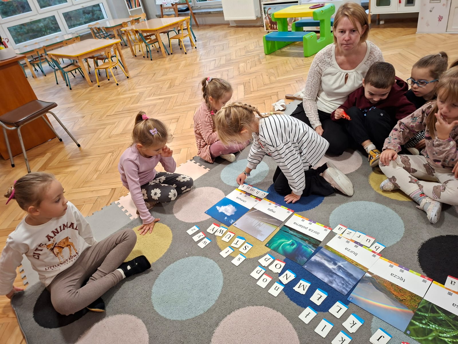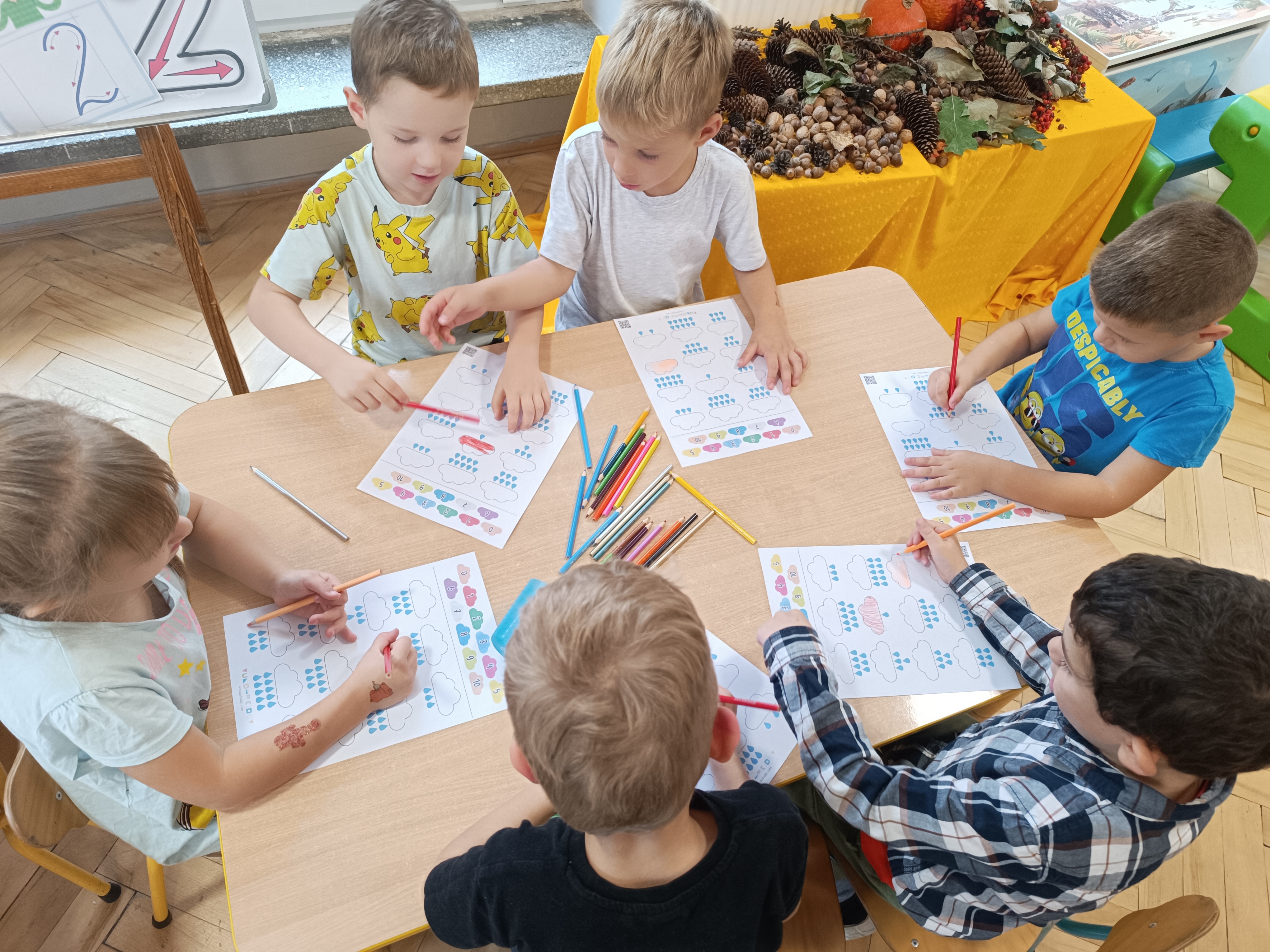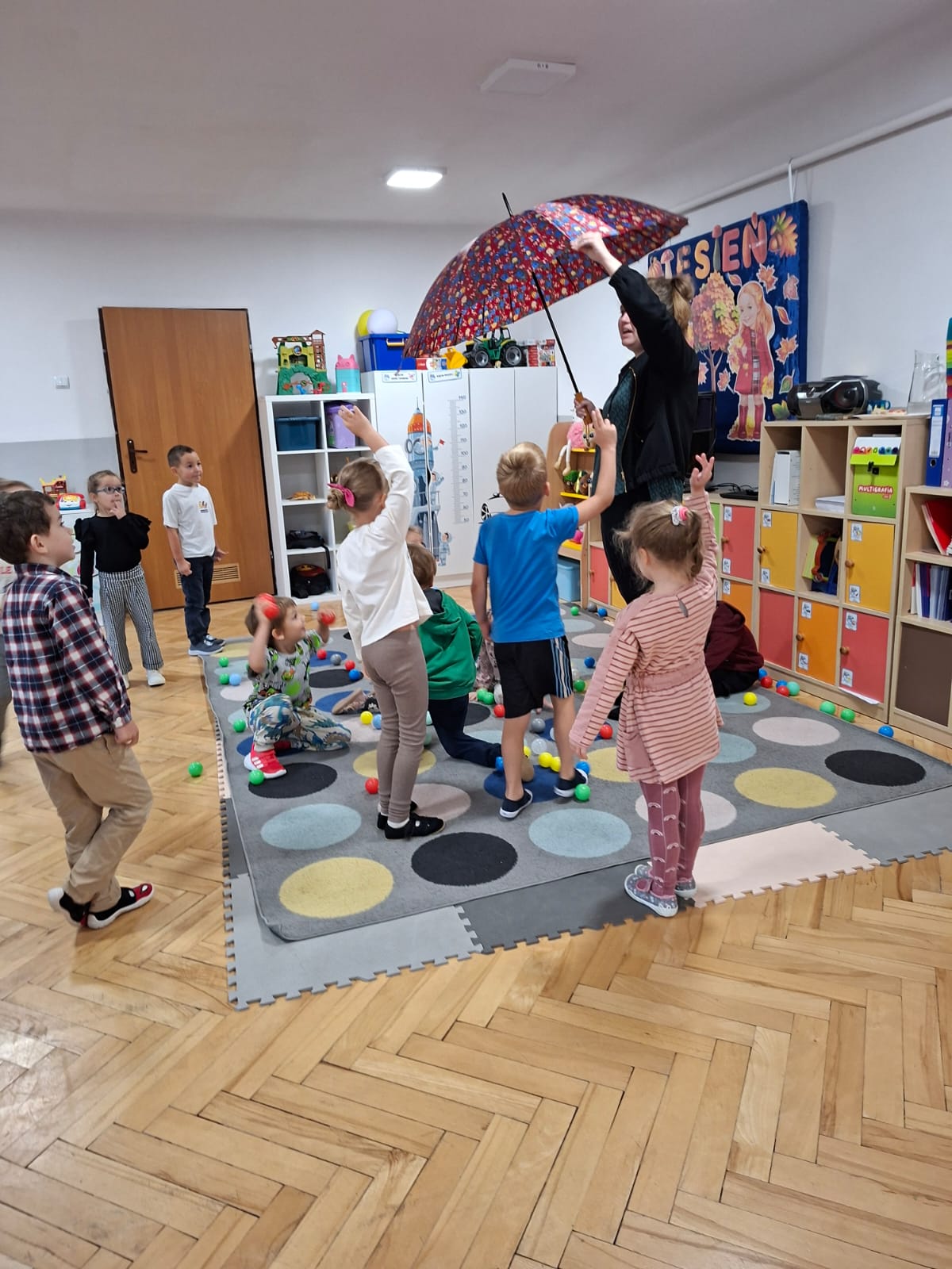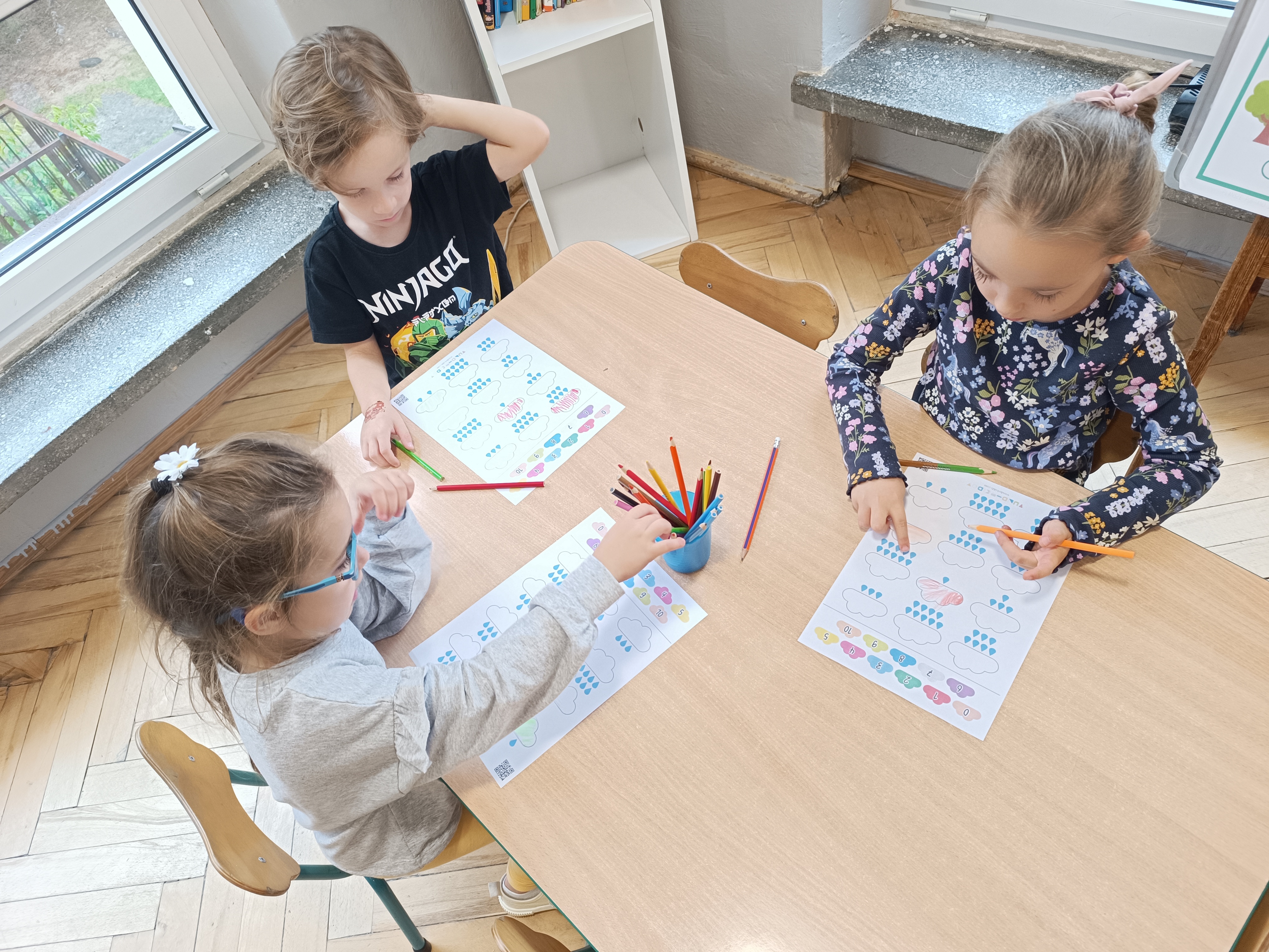 W minionych tygodniach dzieci zgłębiały tematy dotyczące pogody, jej uwarunkowań czy wahań pogodowych. Poznały nazwy zjawisk atmosferycznych. Nauczyły się piosenki "Pada, pada deszczyk..."