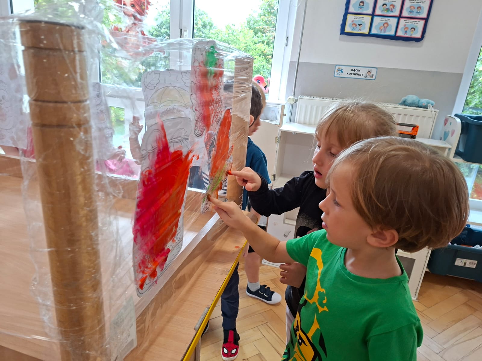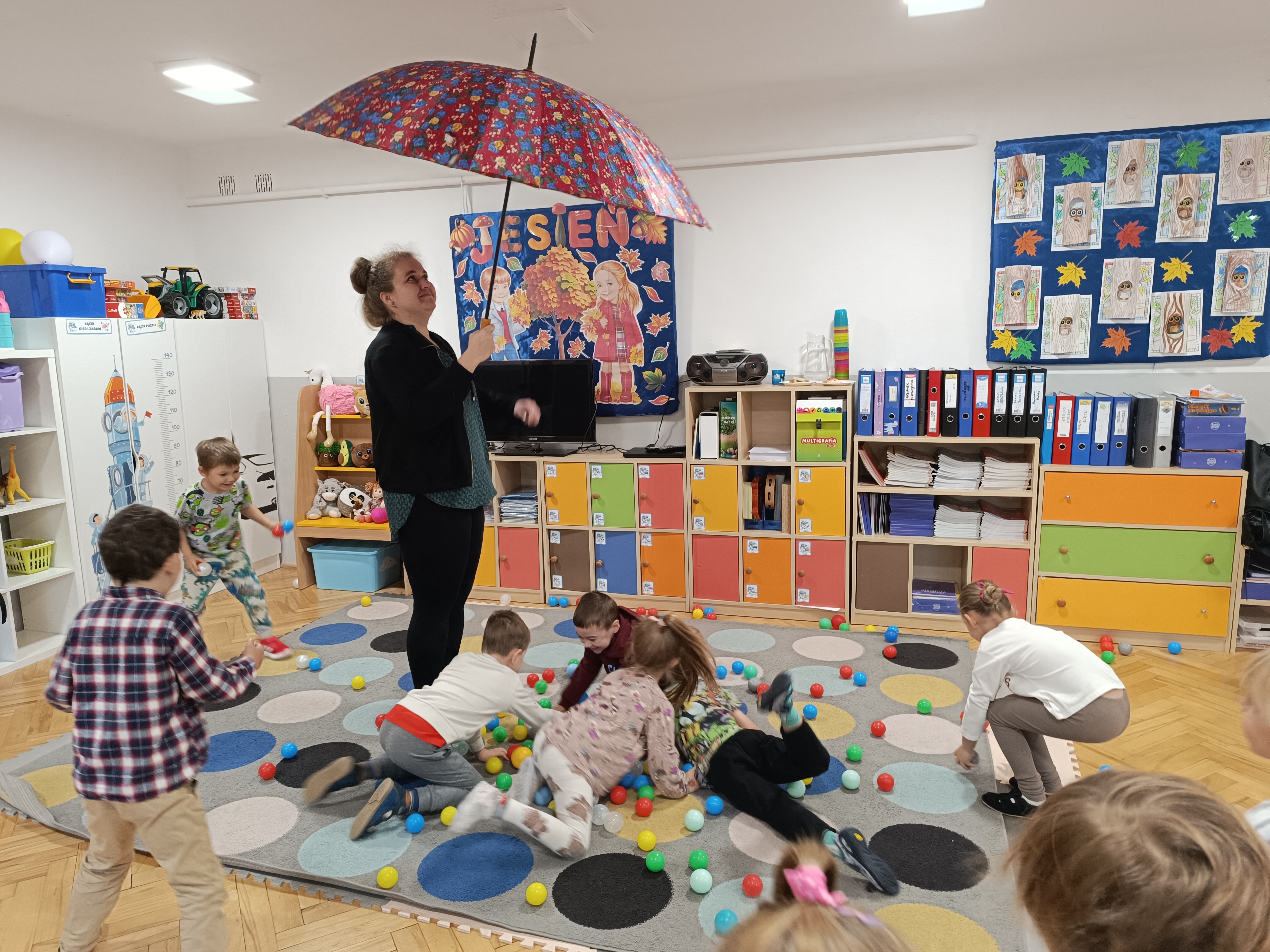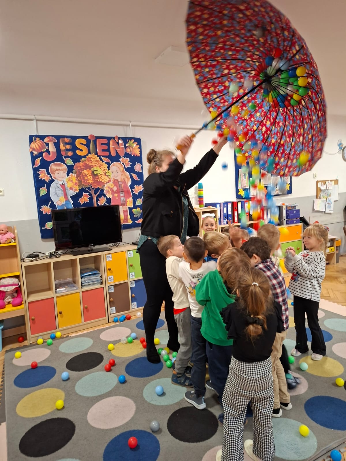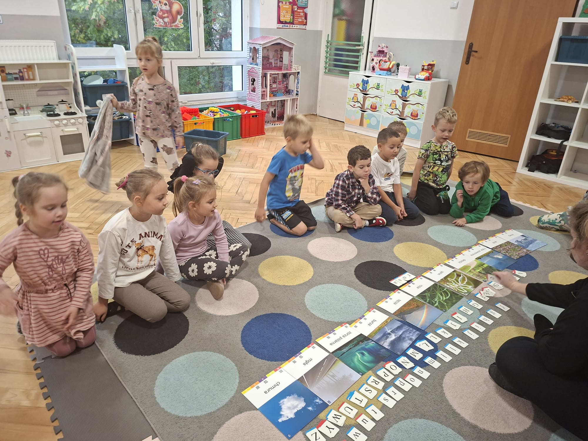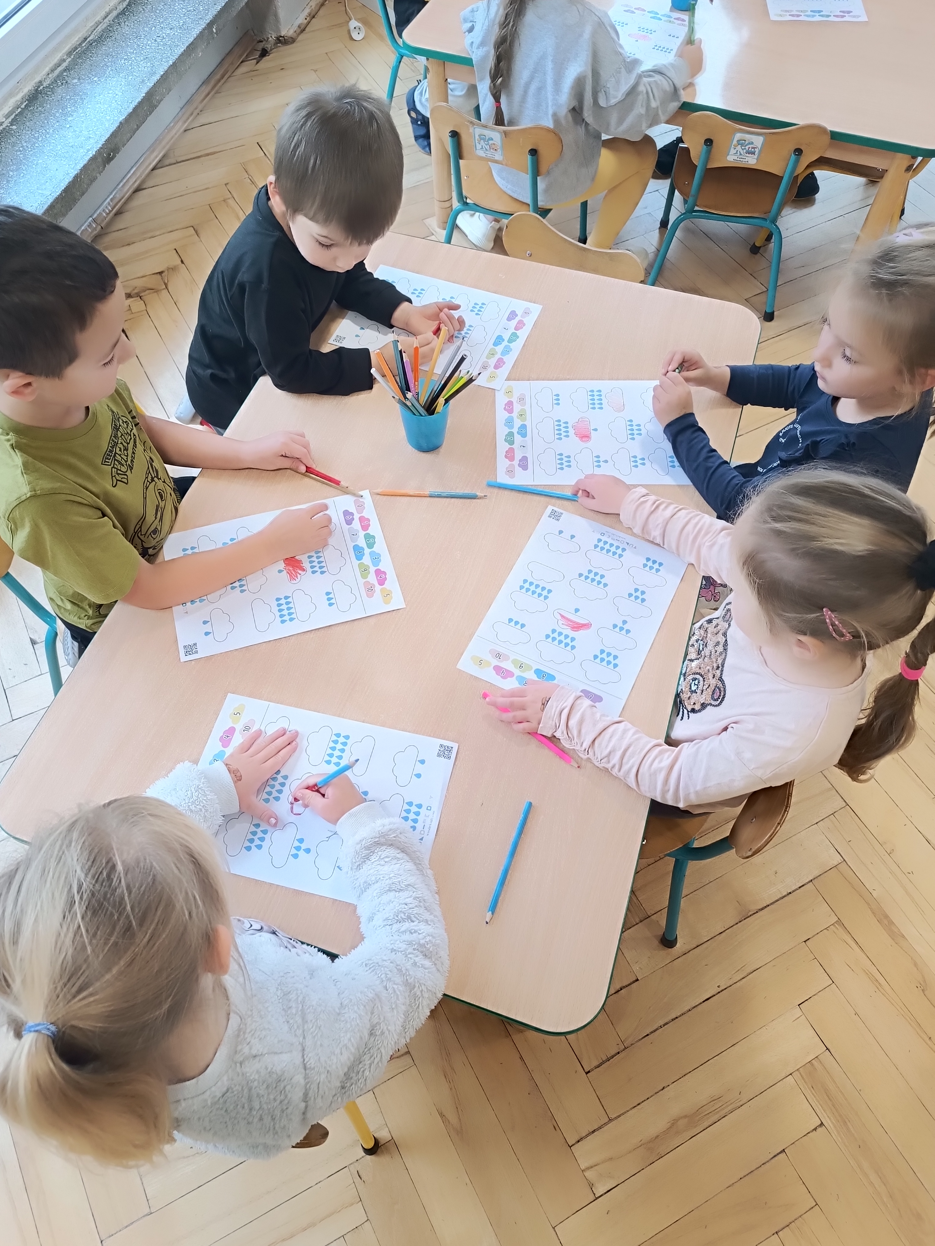 W minionych tygodniach dzieci zgłębiały tematy dotyczące pogody, jej uwarunkowań czy wahań pogodowych. Poznały nazwy zjawisk atmosferycznych. Nauczyły się piosenki "Pada, pada deszczyk..."