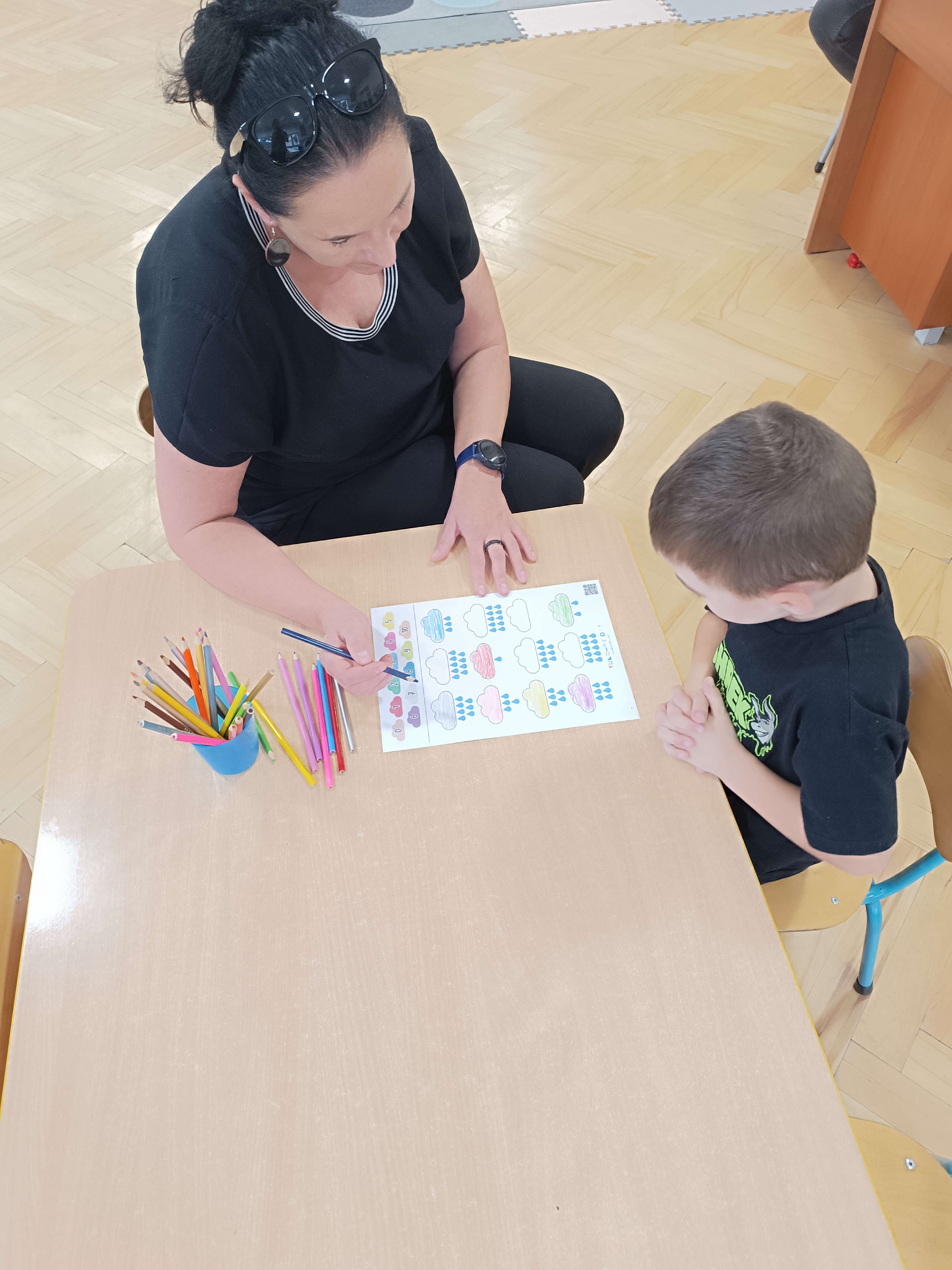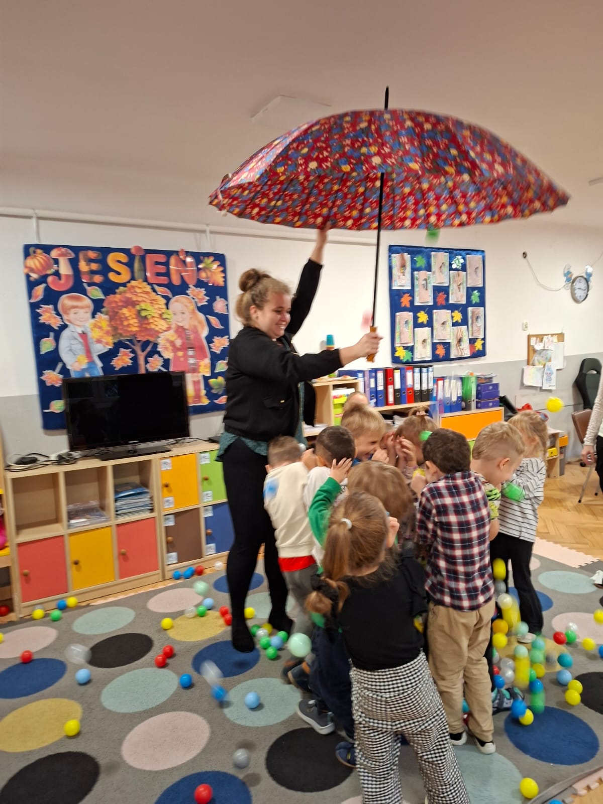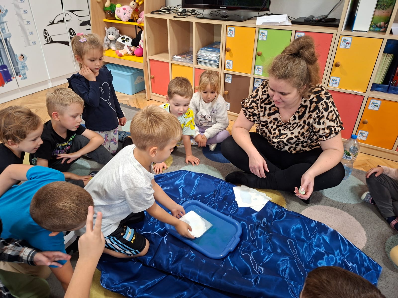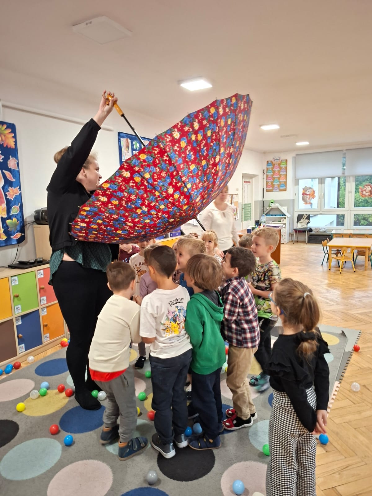 W minionych tygodniach dzieci zgłębiały tematy dotyczące pogody, jej uwarunkowań czy wahań pogodowych. Poznały nazwy zjawisk atmosferycznych. Nauczyły się piosenki "Pada, pada deszczyk..."