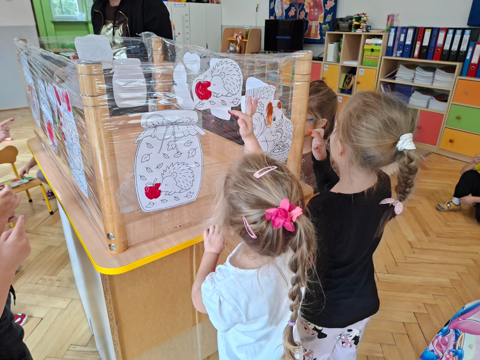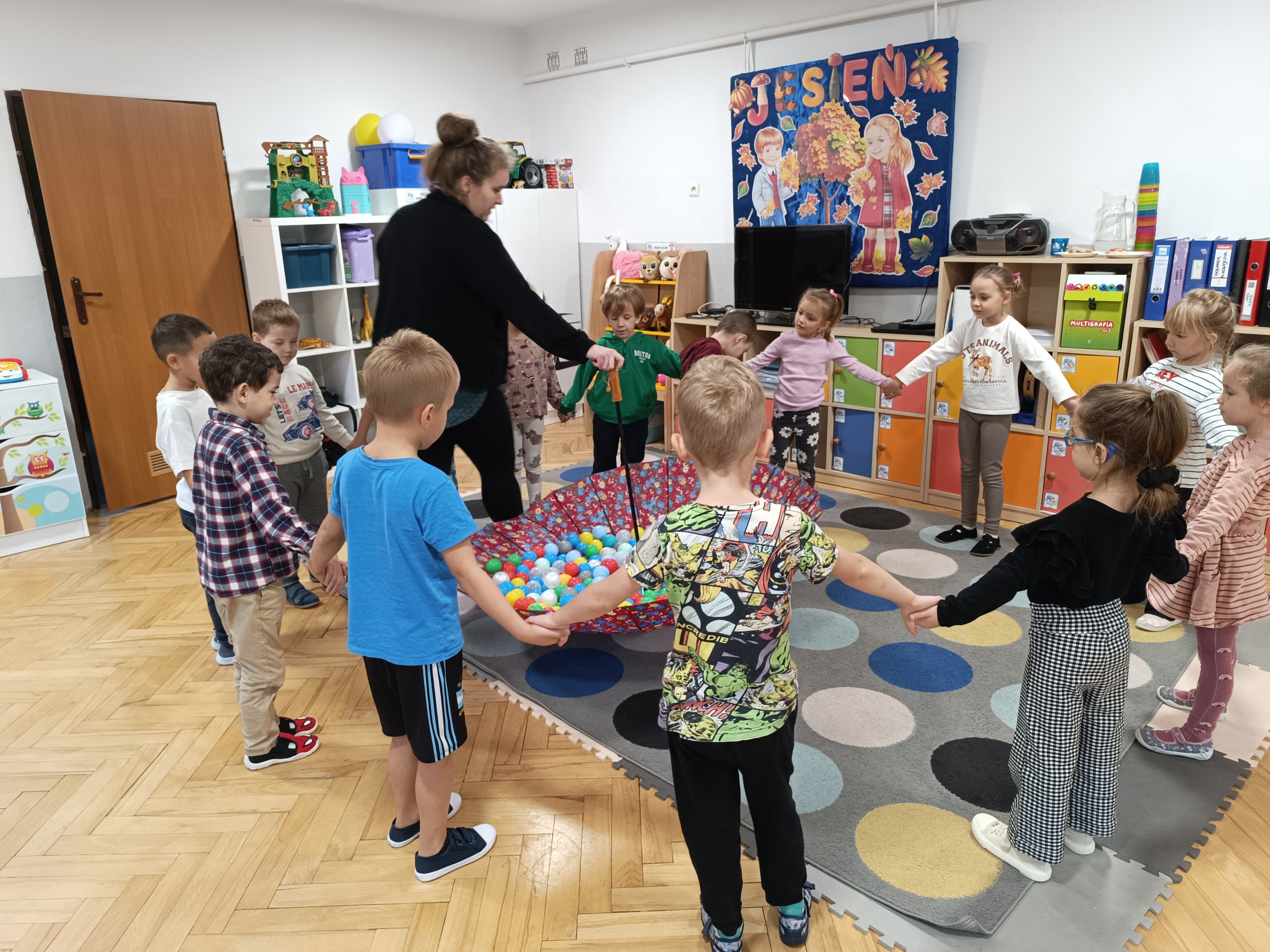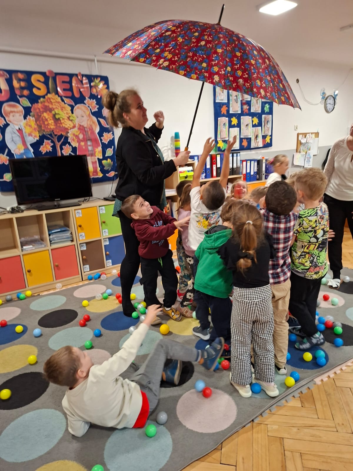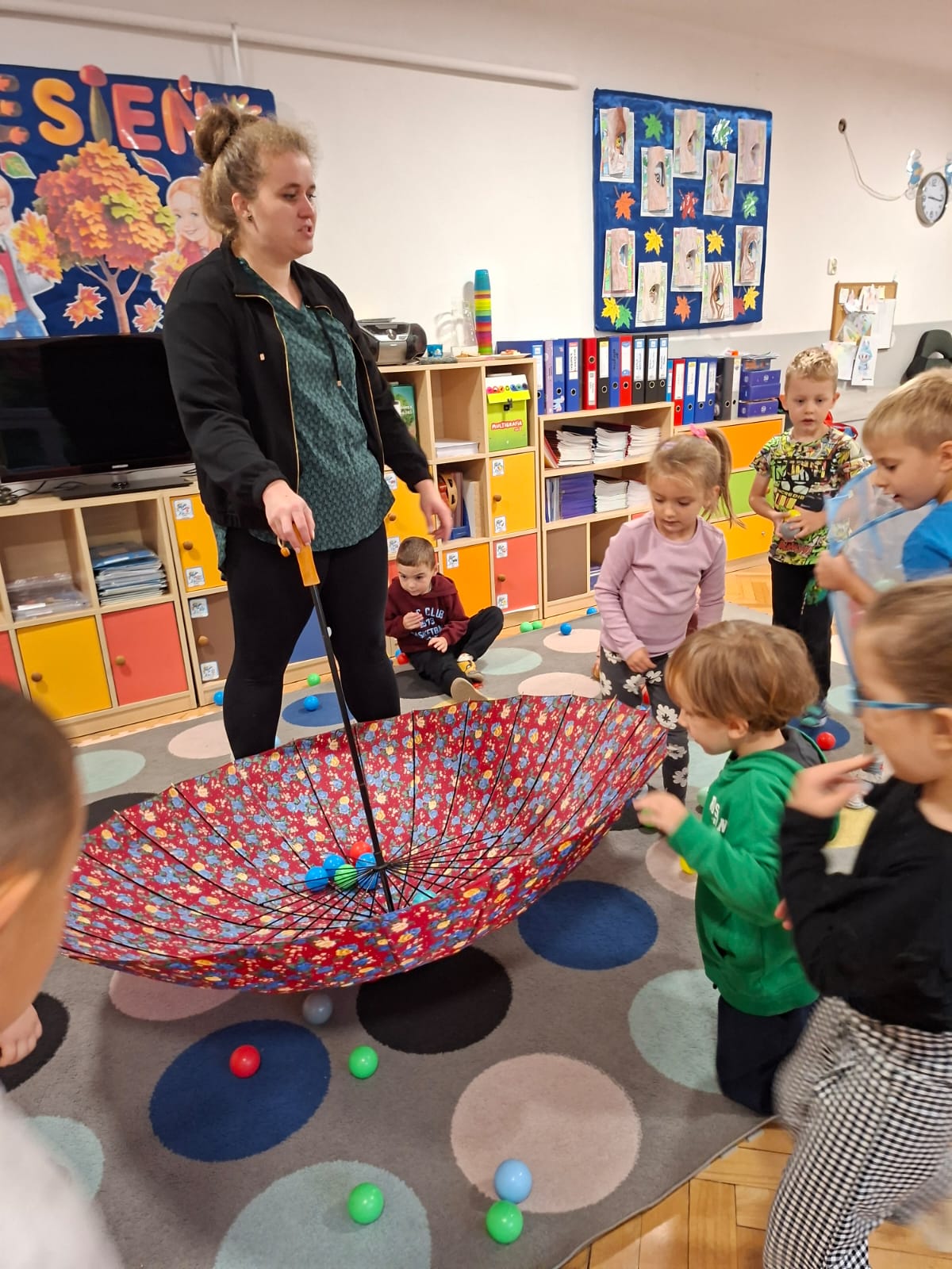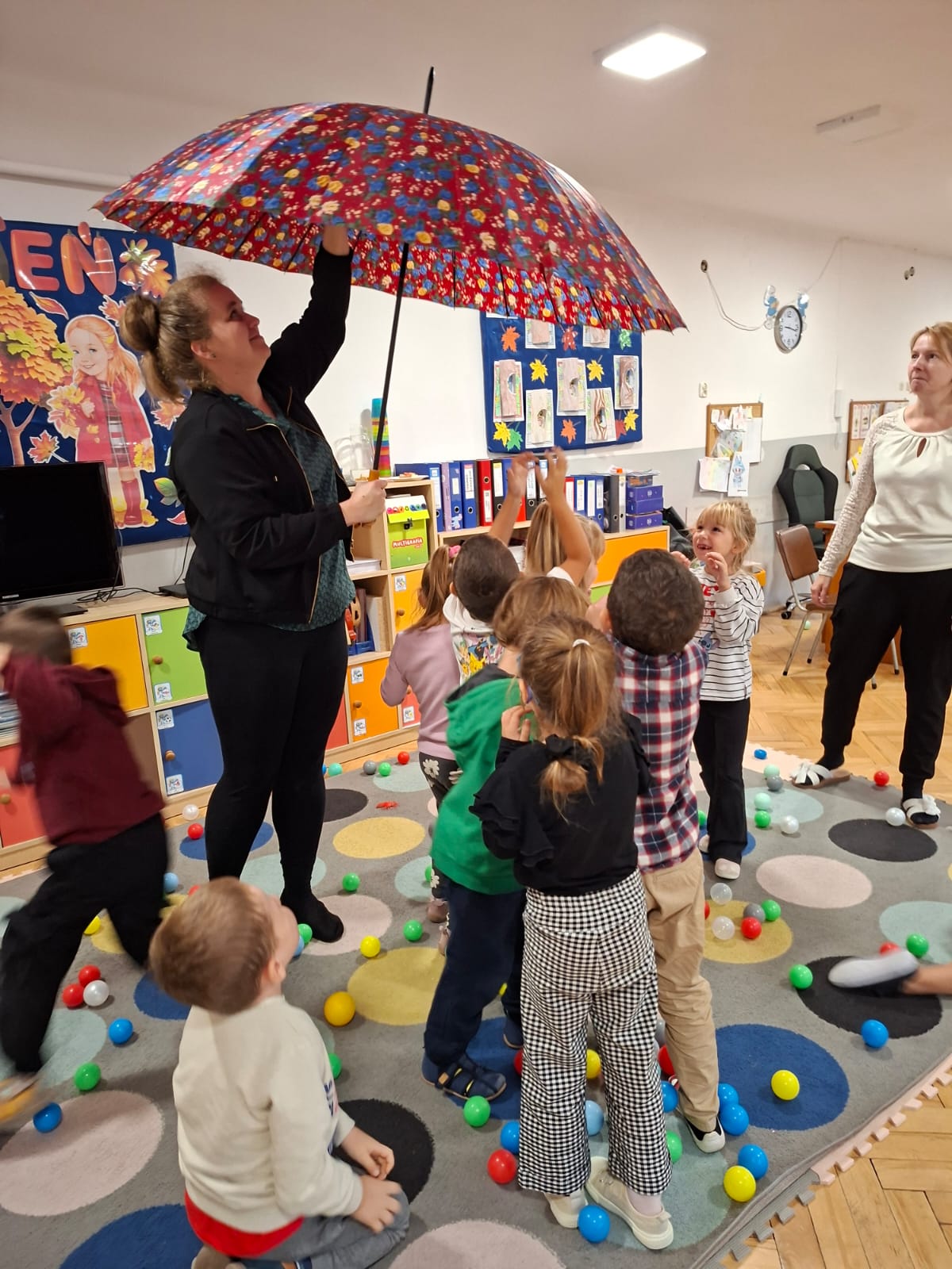 W minionych tygodniach dzieci zgłębiały tematy dotyczące pogody, jej uwarunkowań czy wahań pogodowych. Poznały nazwy zjawisk atmosferycznych. Nauczyły się piosenki "Pada, pada deszczyk..."