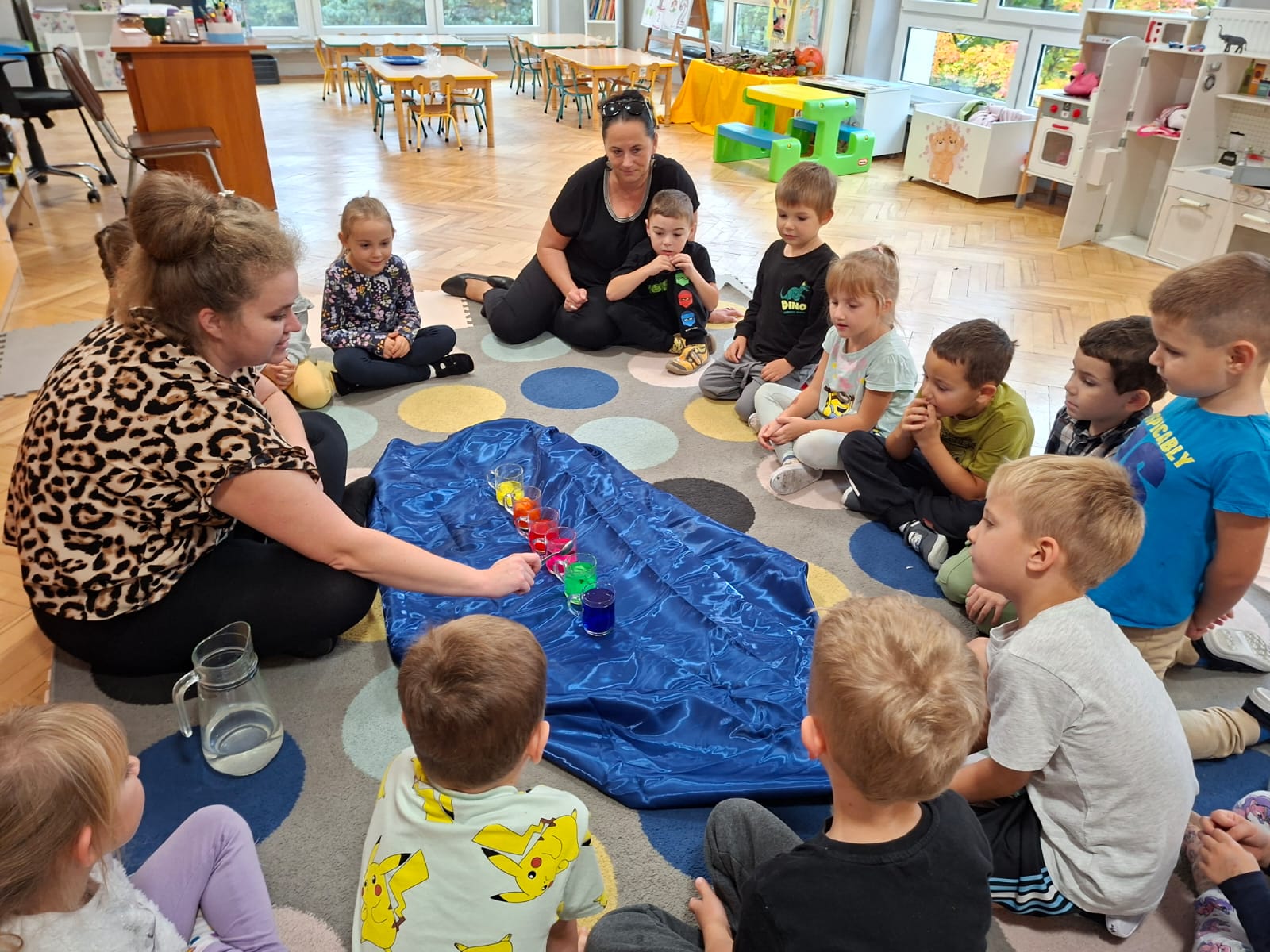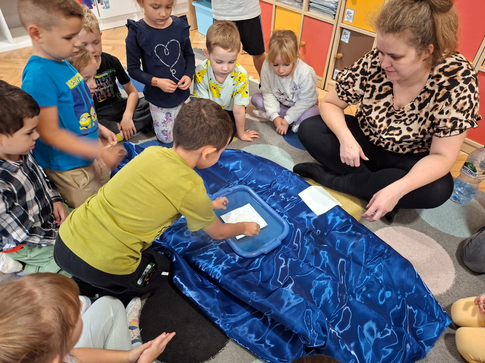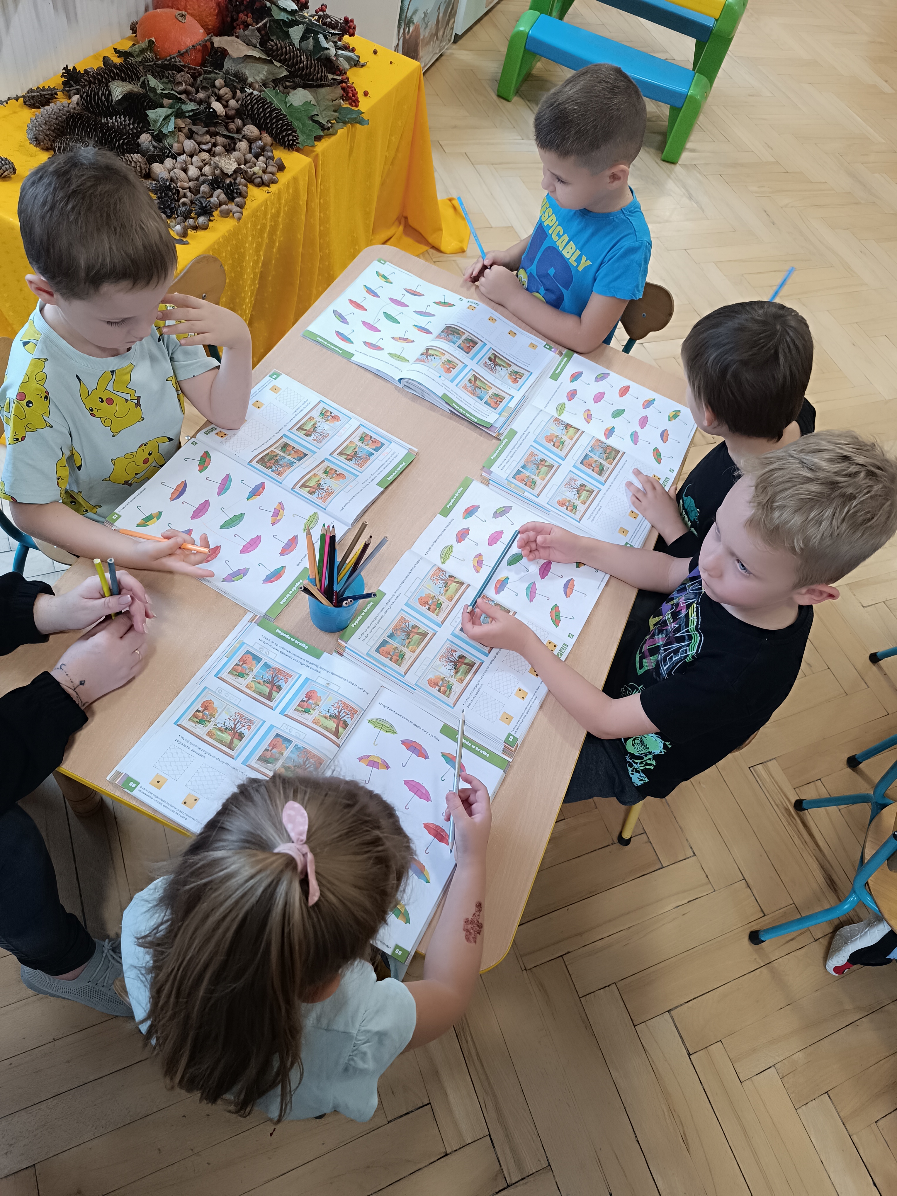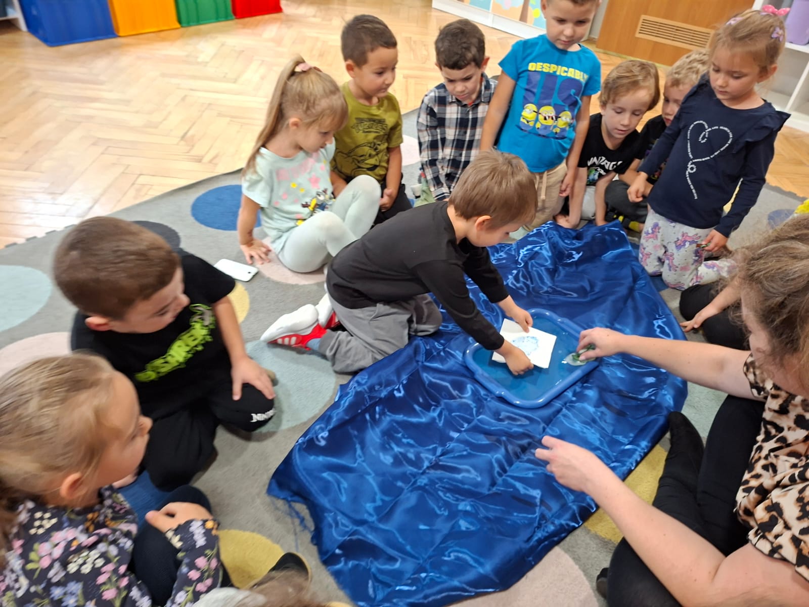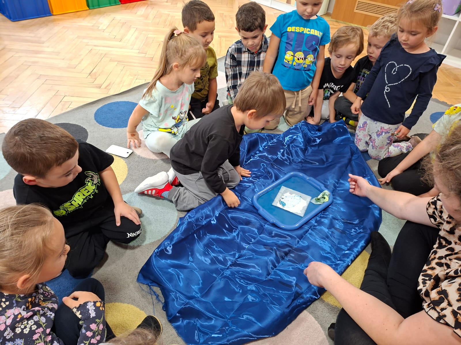 W minionych tygodniach dzieci zgłębiały tematy dotyczące pogody, jej uwarunkowań czy wahań pogodowych. Poznały nazwy zjawisk atmosferycznych. Nauczyły się piosenki "Pada, pada deszczyk..."